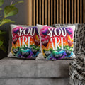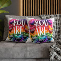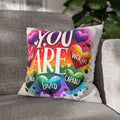 Affirmation Pillow — "You Are" Rainbow Heart Inspirational Throw Pillowcase