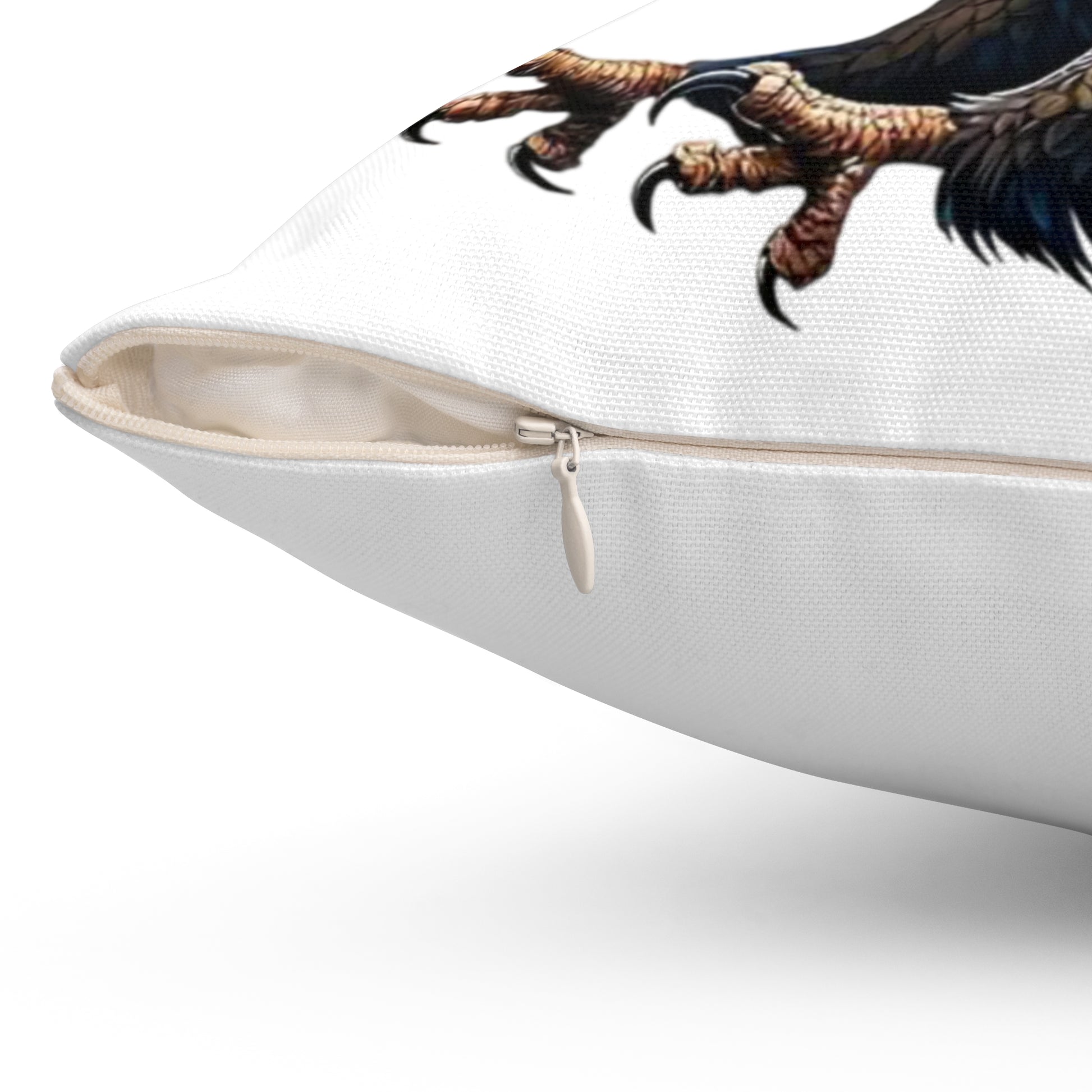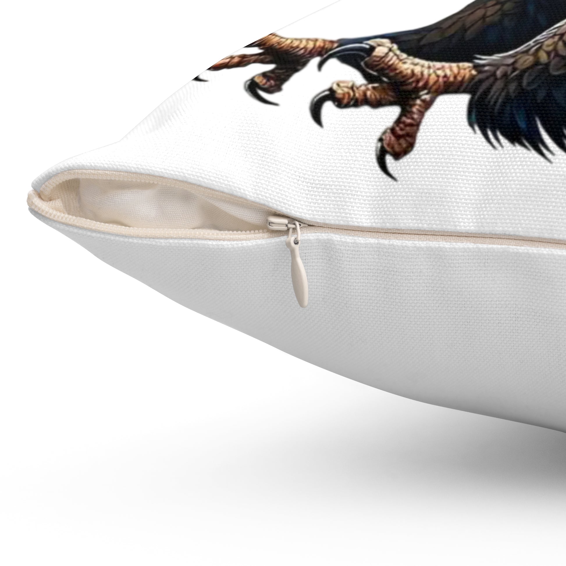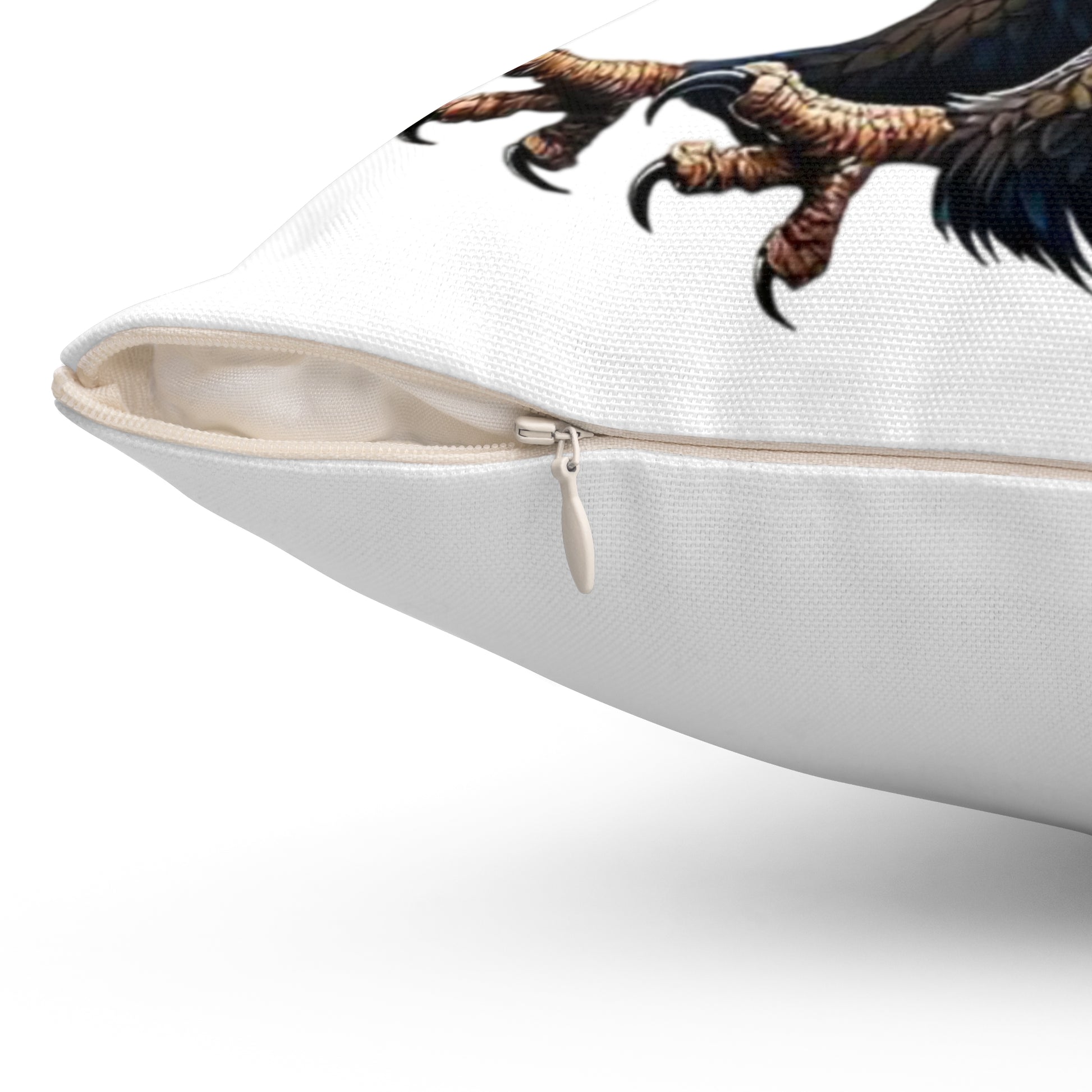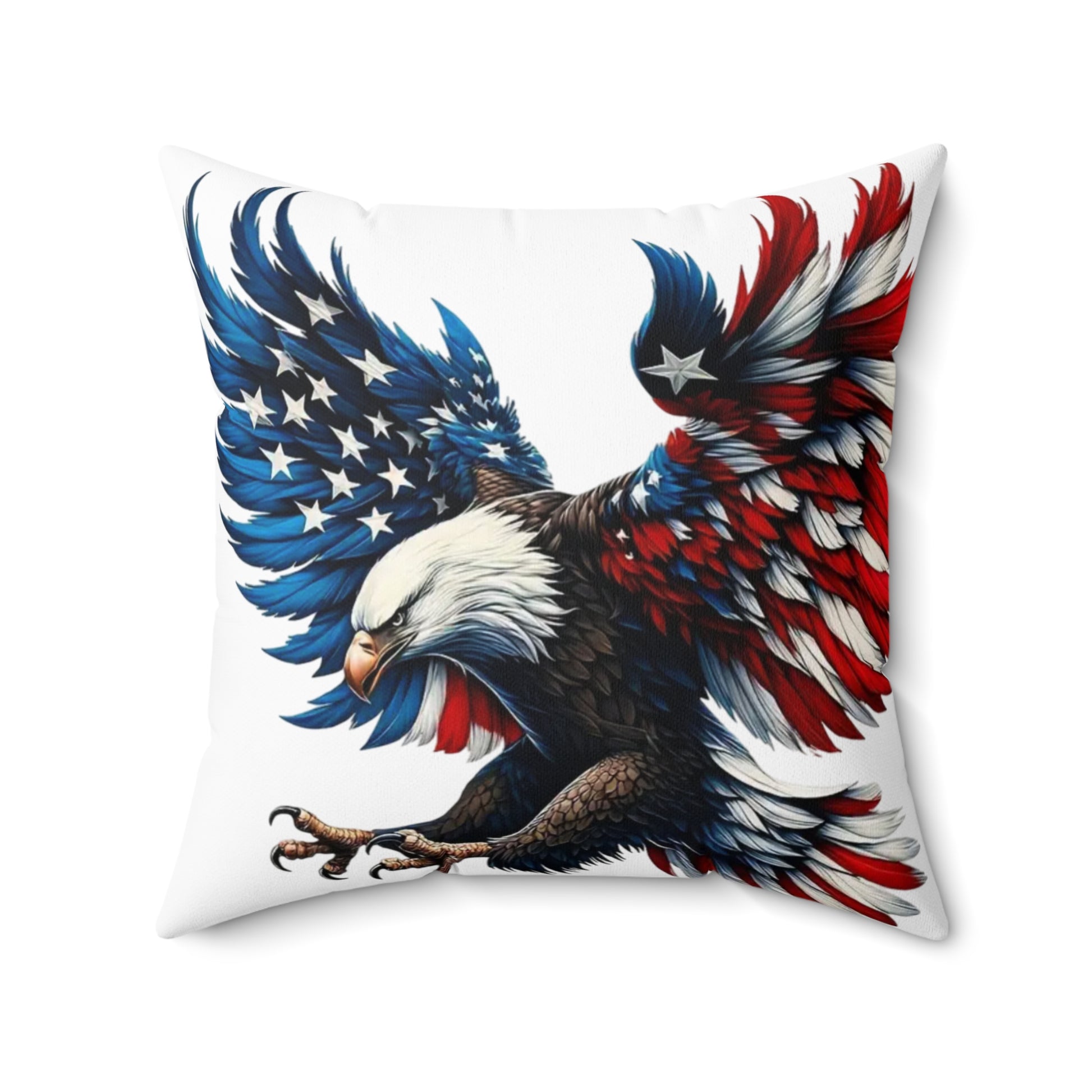 Bring bold, patriotic energy into your living space with this double-sided spun polyester pillow. Clean white fabric puts a hand-drawn eagle motif front and center — feathers painted in stars-and-stripes blues and reds that feel both rugged and artful. The cushion arrives as a cover plus a recycled polyester insert (vacuum-packed) so the cover ships crease-free and fills out into a plump, gallery-look pillow once assembled. Subtle details like a concealed beige zipper with a metal head keep the silhouette sleek while durable spun polyester resists wrinkles and keeps the print vibrant through everyday use. Place it on a porch bench, a reading chair, or layered on a neutral sofa to add a striking, Americana touch that reads handmade and heartfelt.