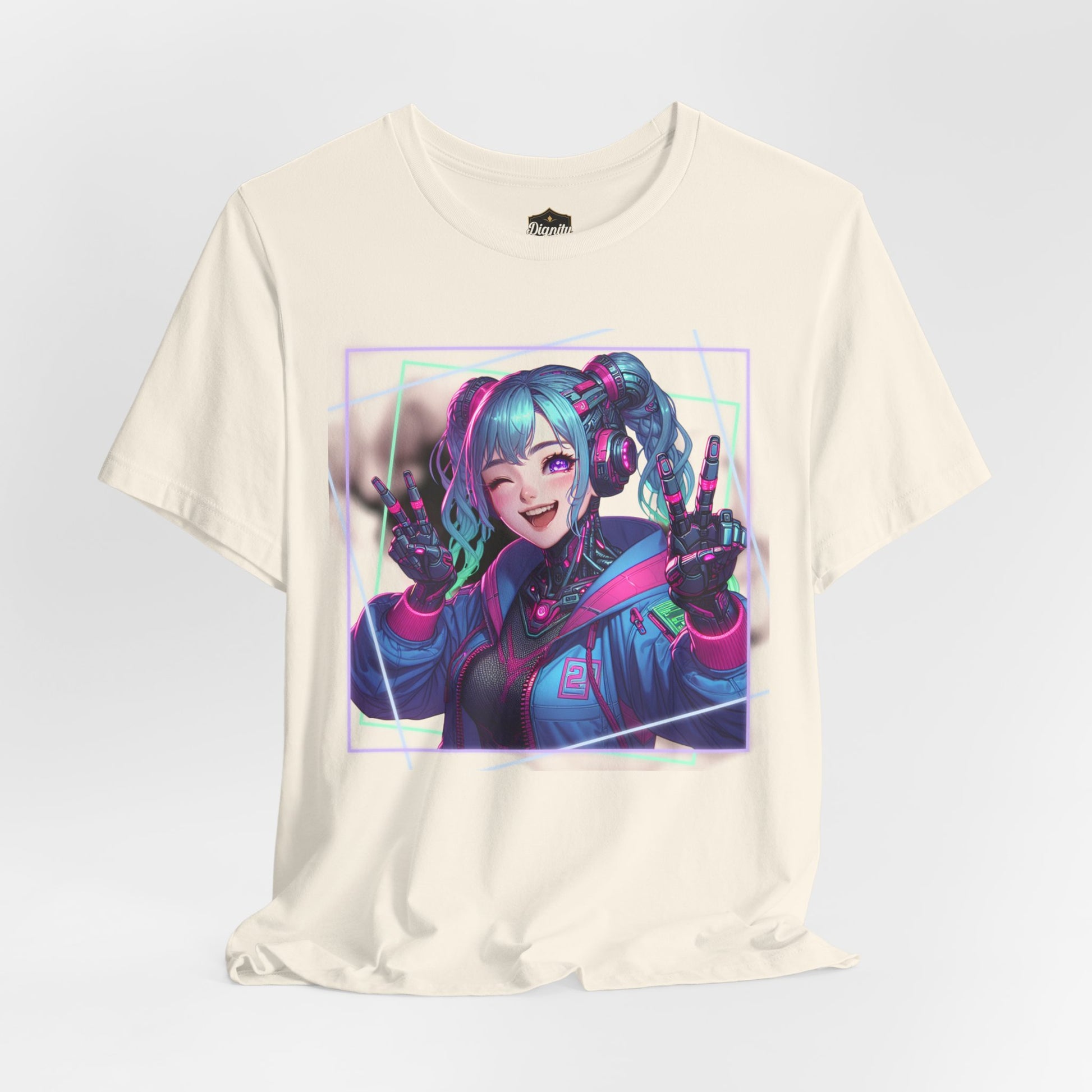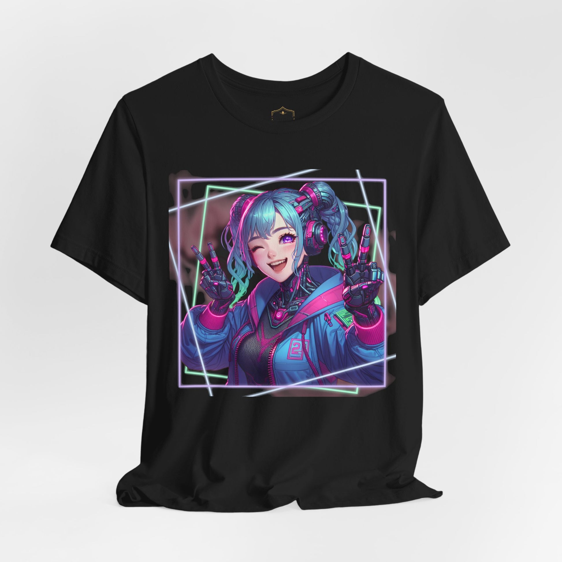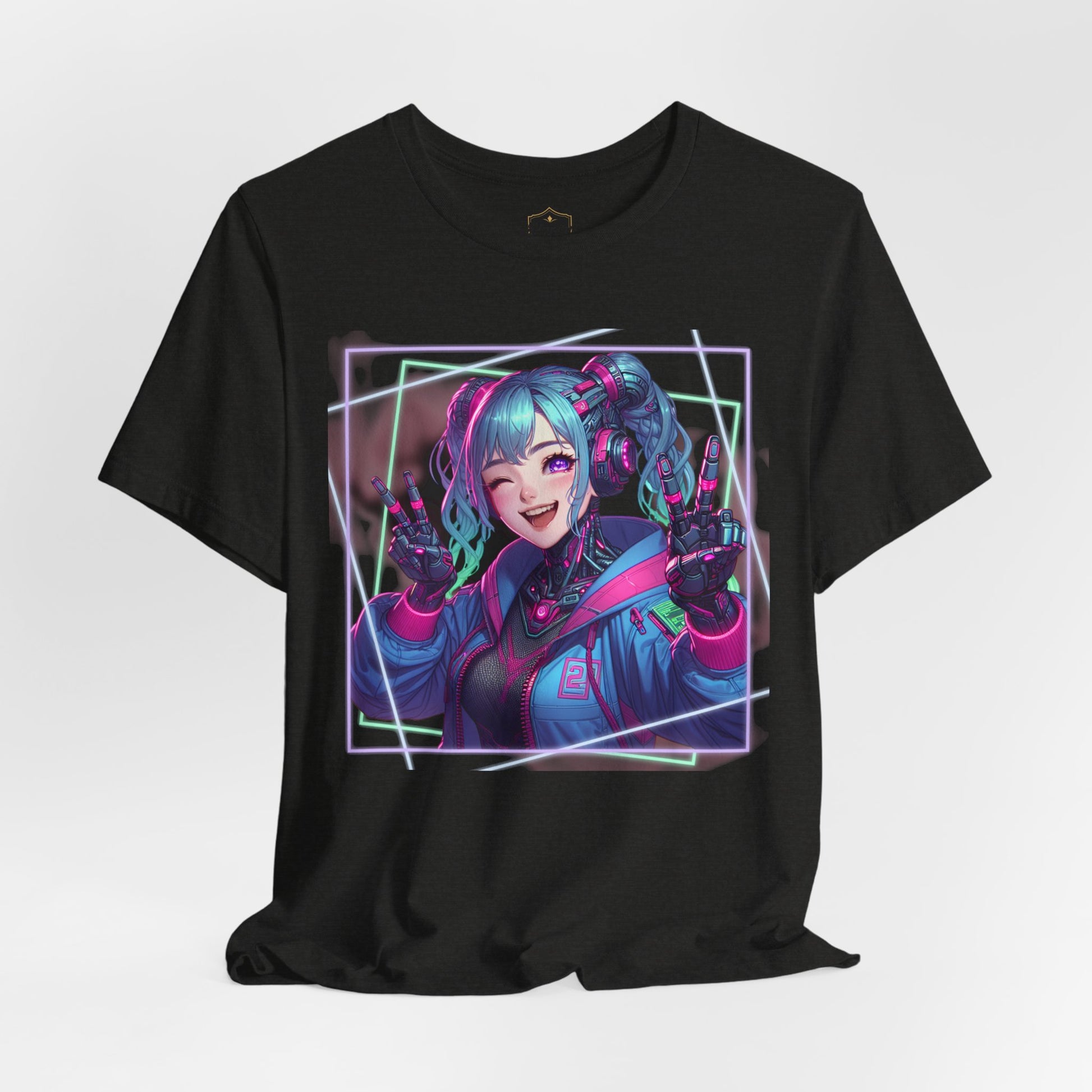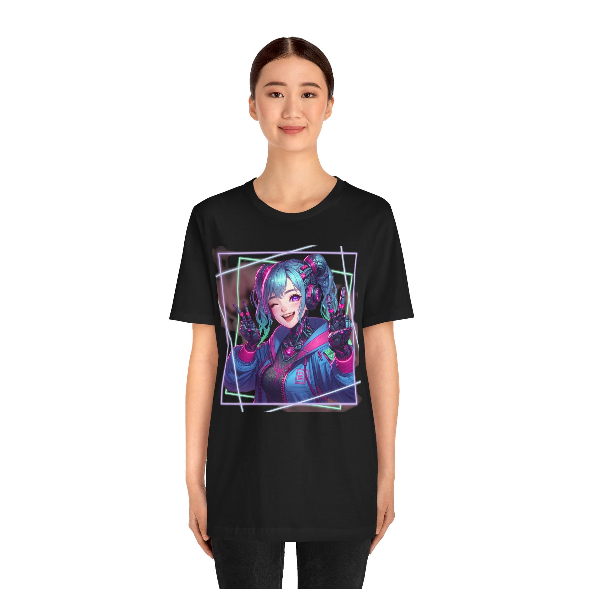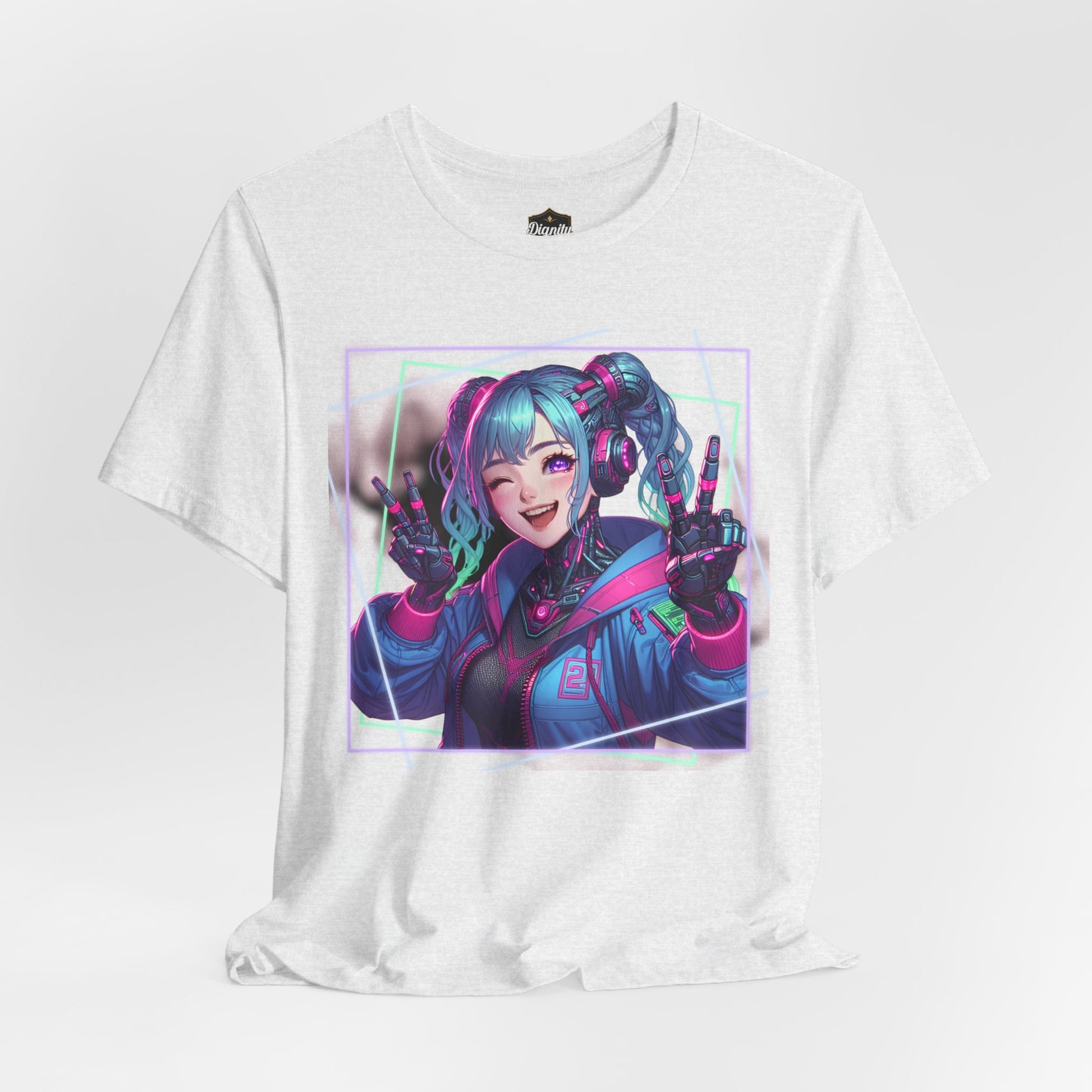 Anime Cyberpunk Girl Graphic Tee - Vibrant Kawaii Gamer T-Shirt