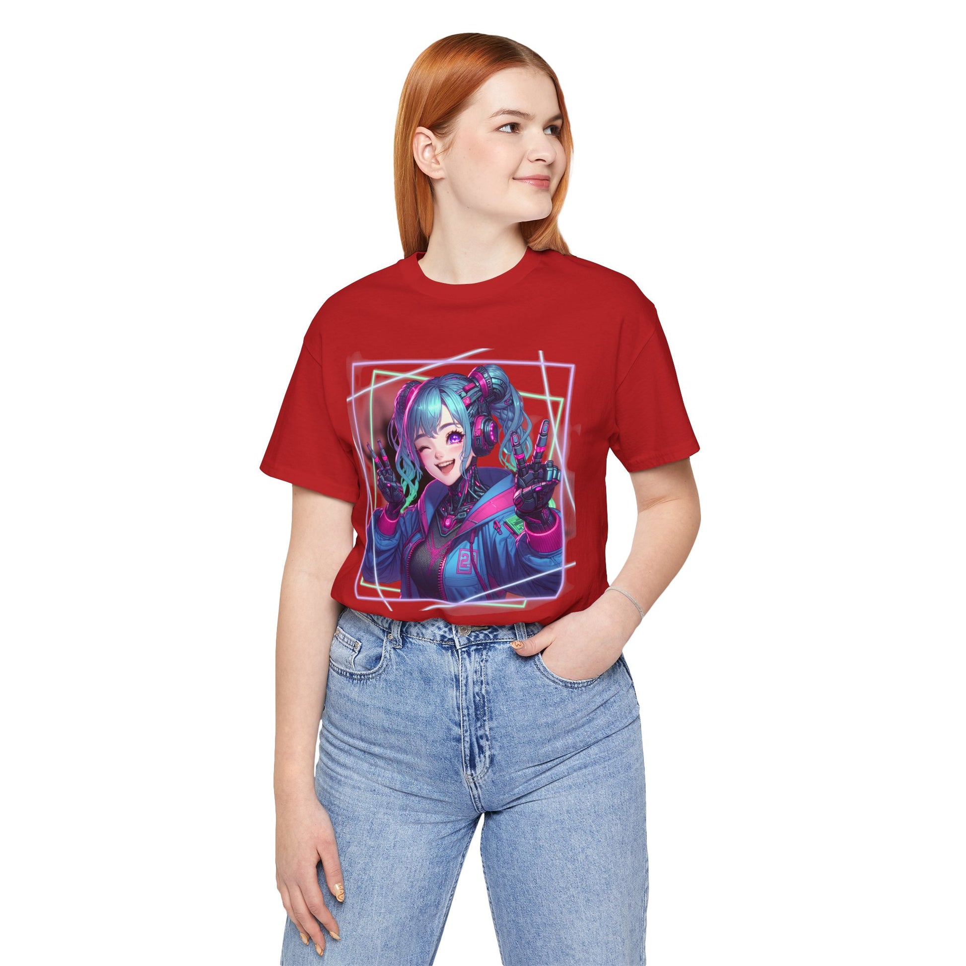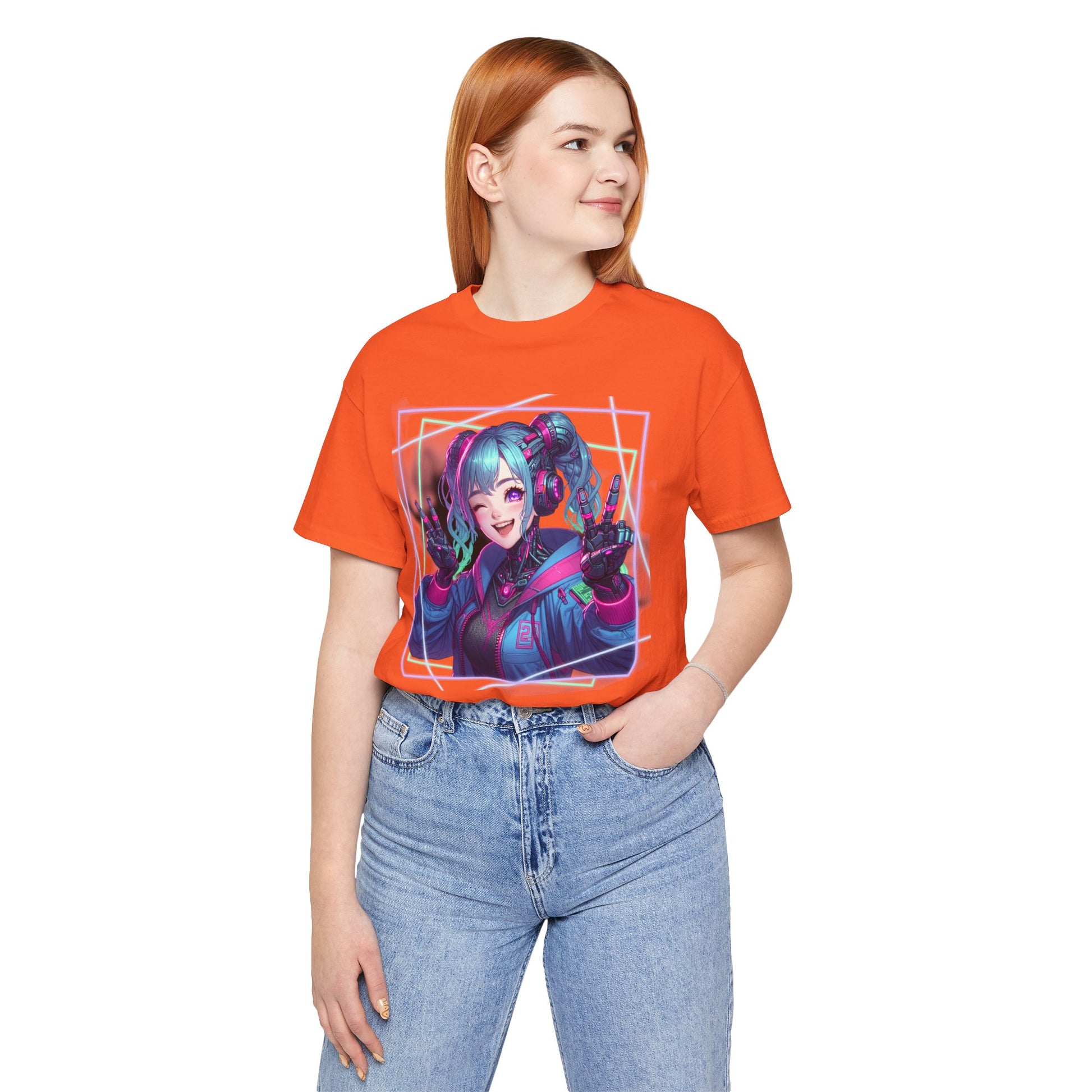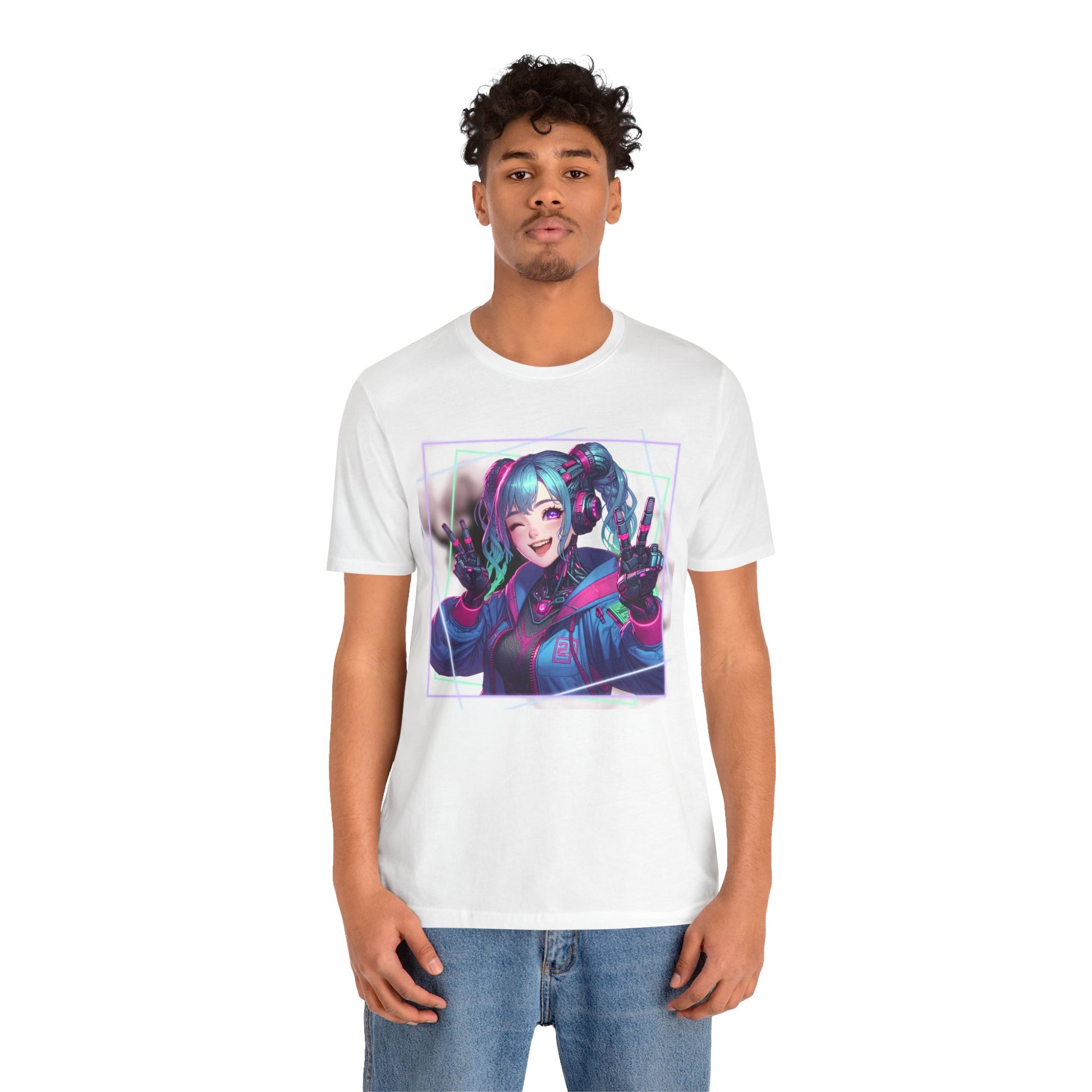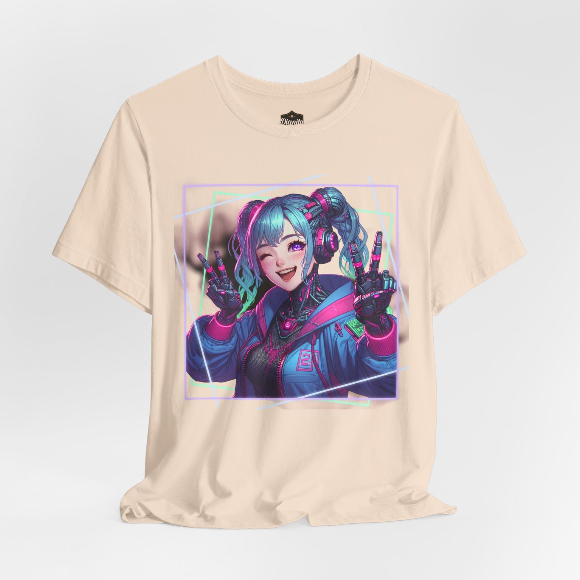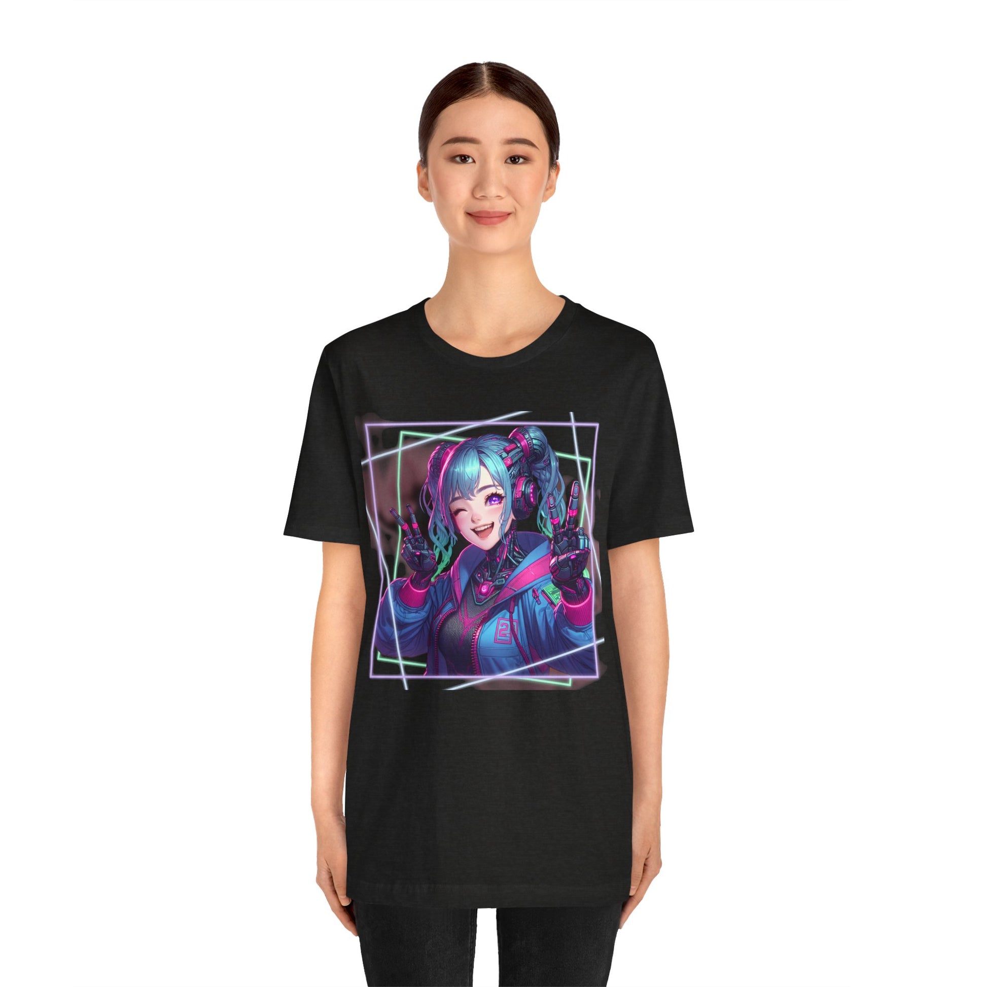 Anime Cyberpunk Girl Graphic Tee - Vibrant Kawaii Gamer T-Shirt