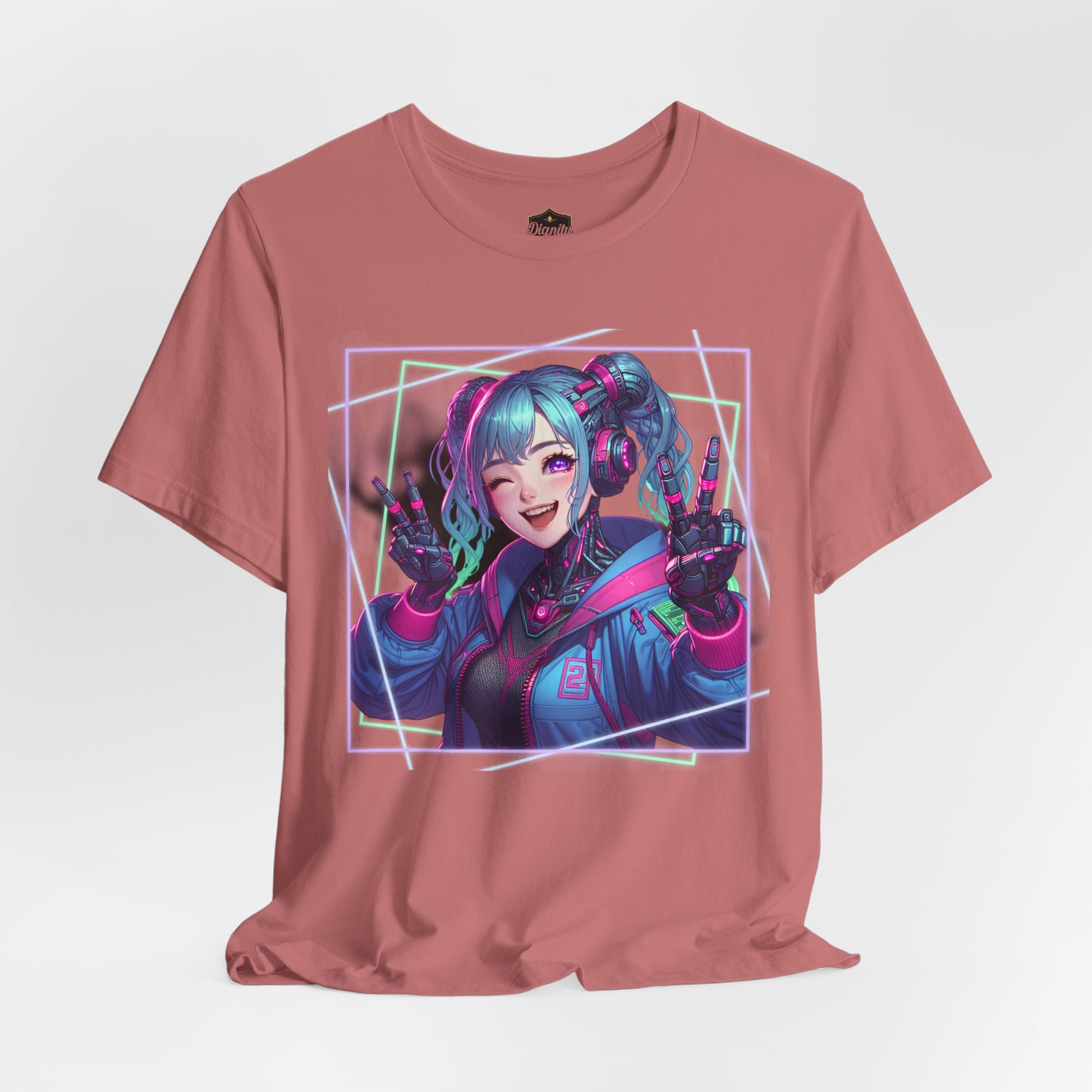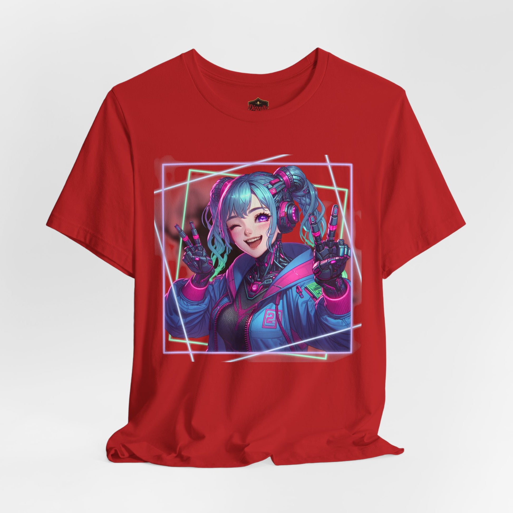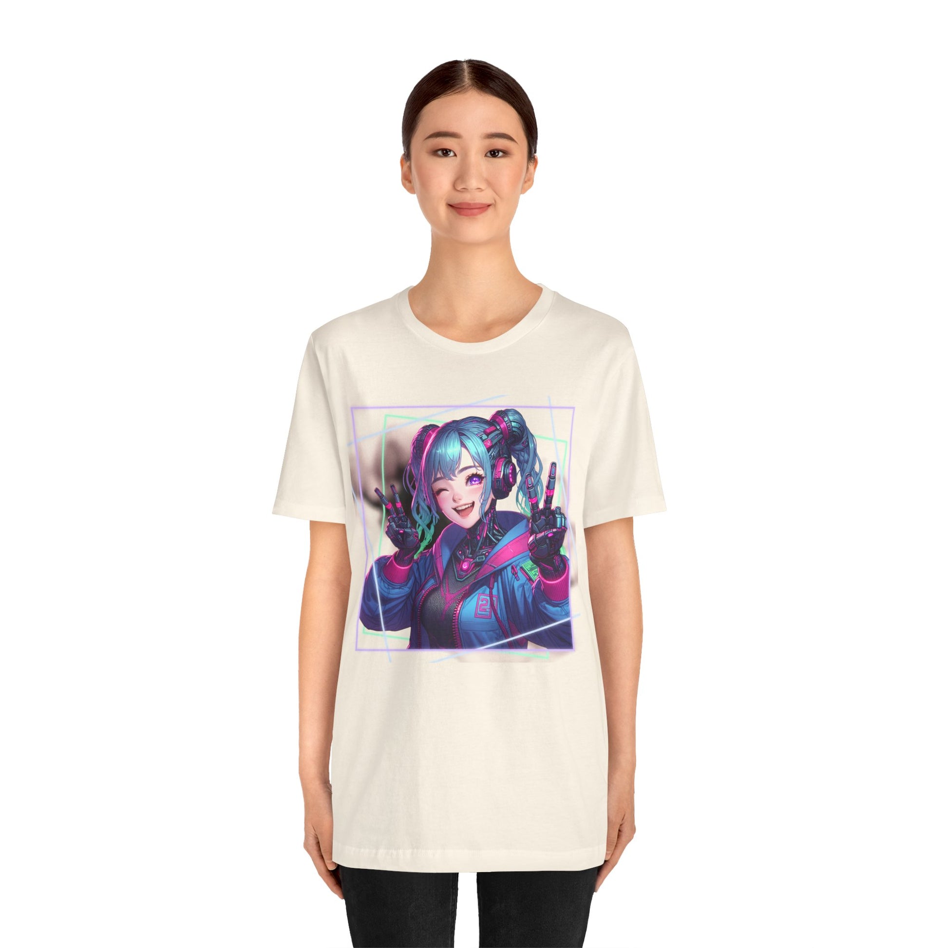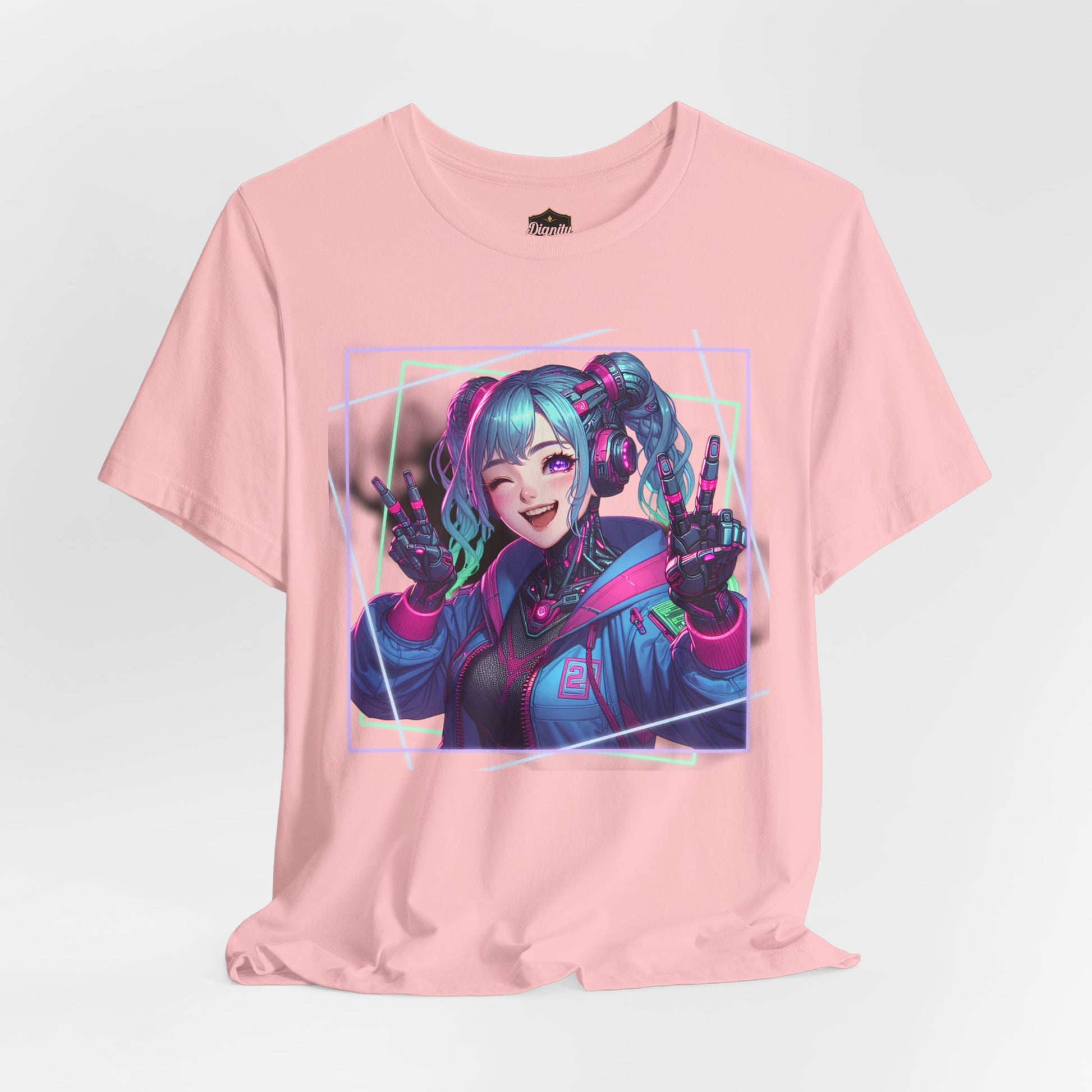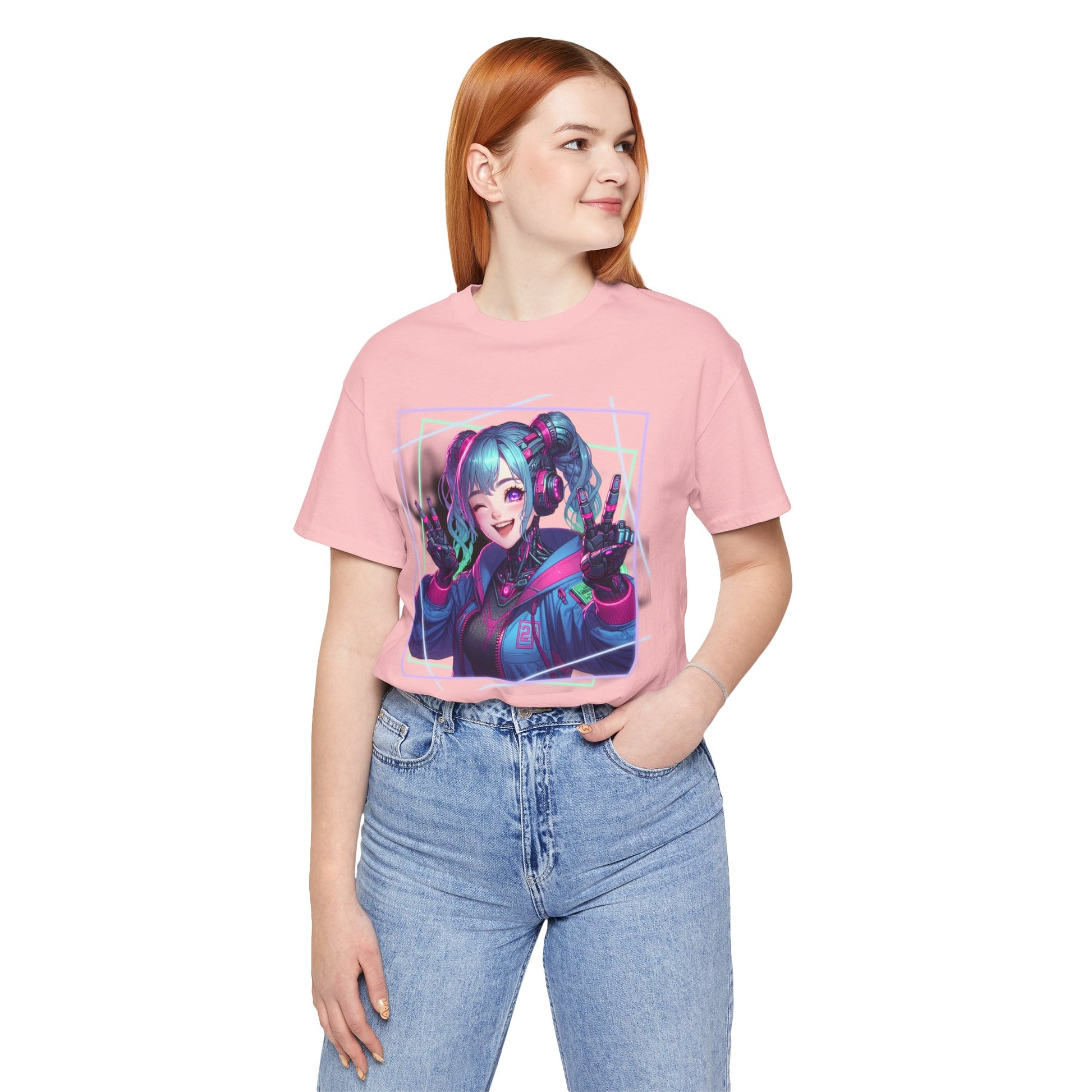 Anime Cyberpunk Girl Graphic Tee - Vibrant Kawaii Gamer T-Shirt