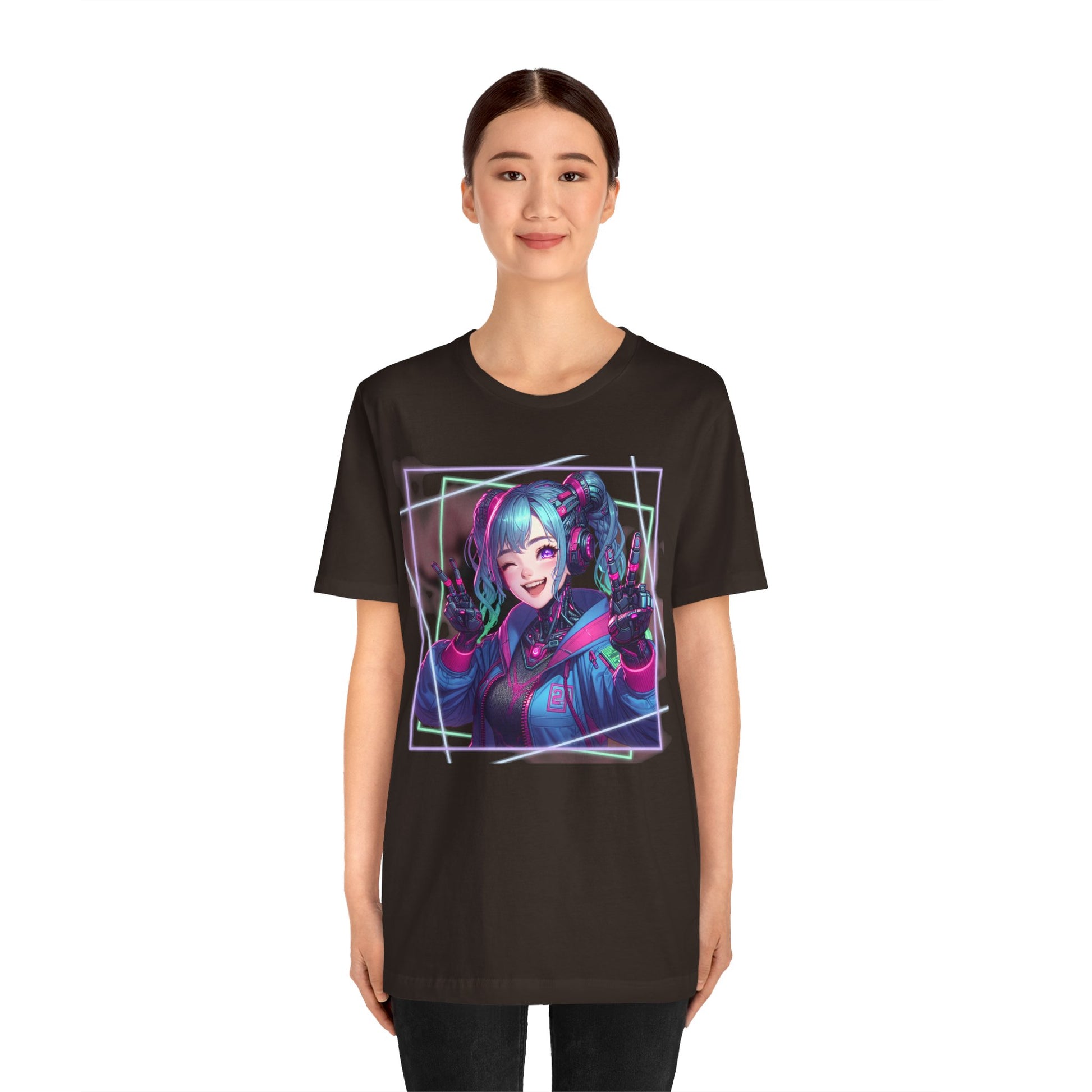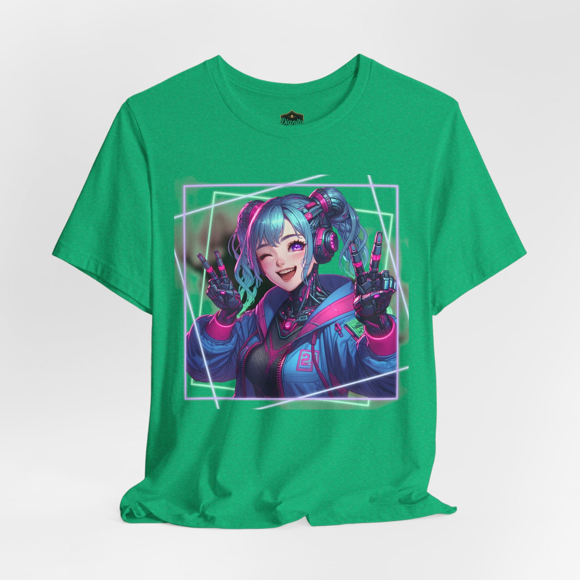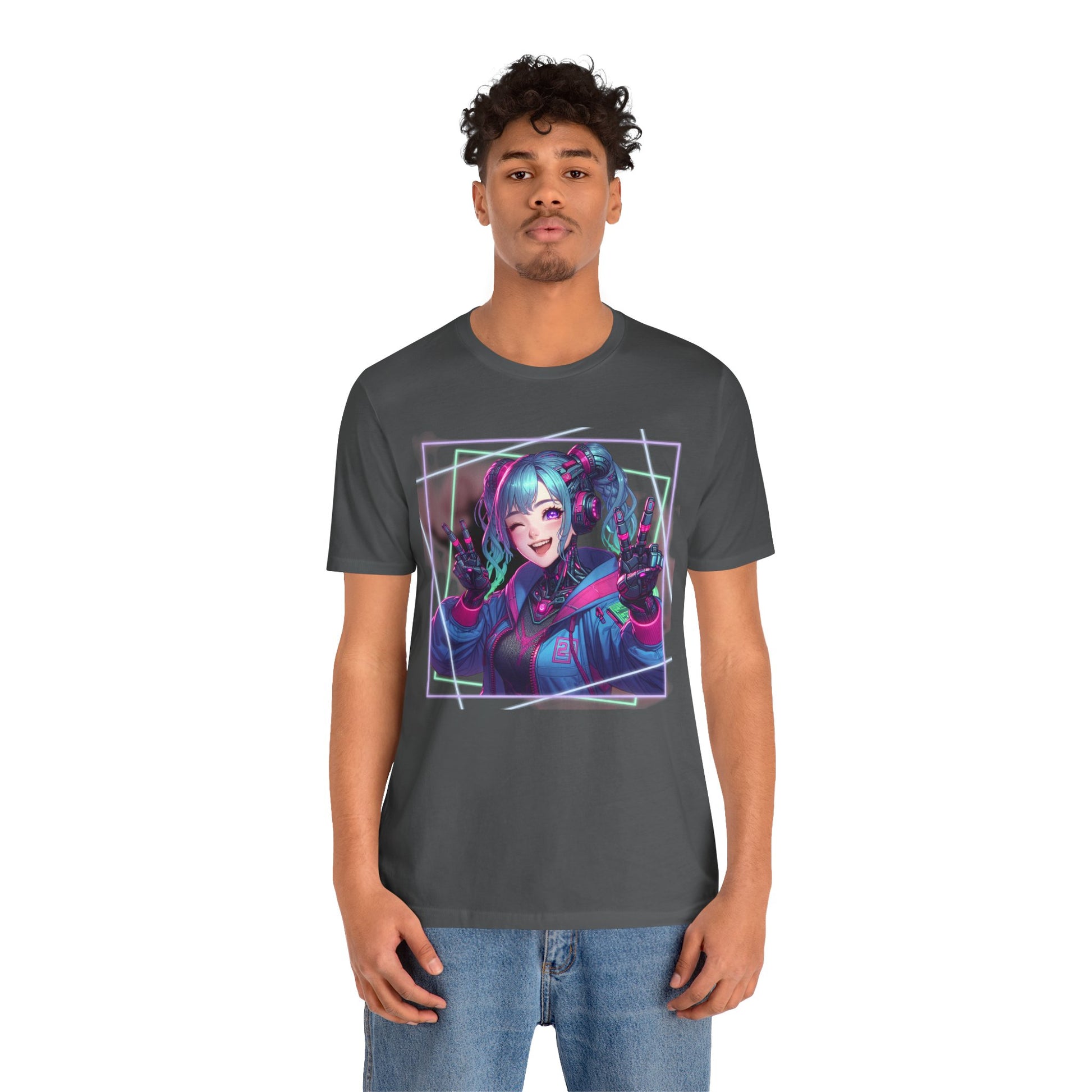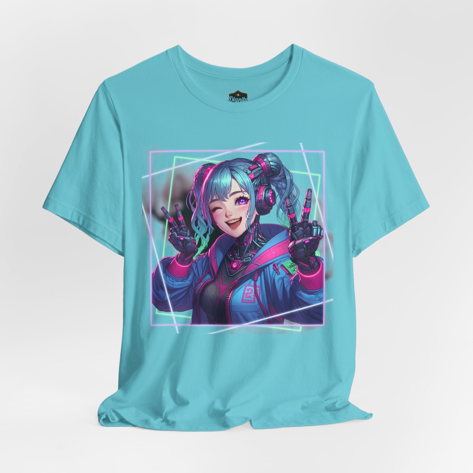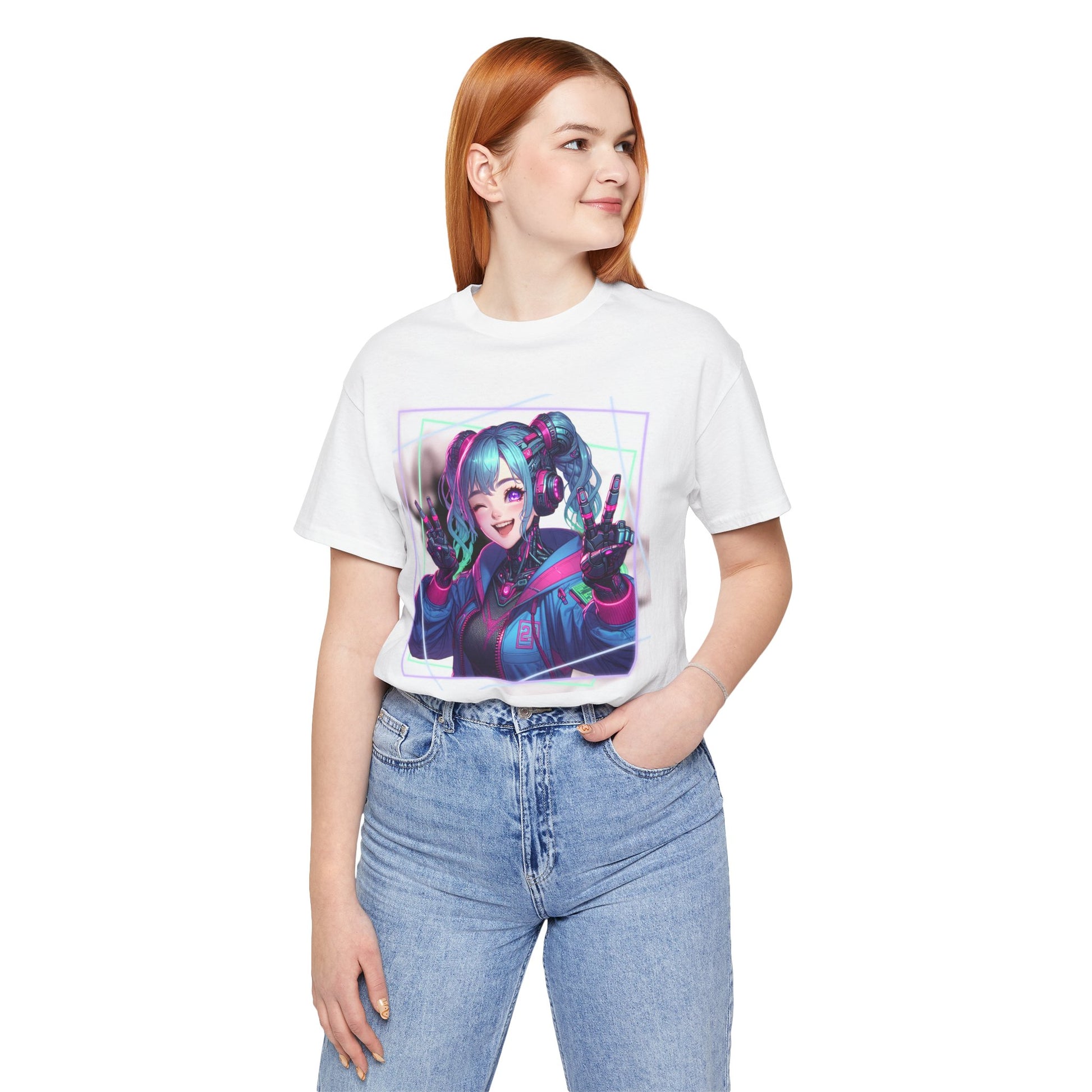 Anime Cyberpunk Girl Graphic Tee - Vibrant Kawaii Gamer T-Shirt