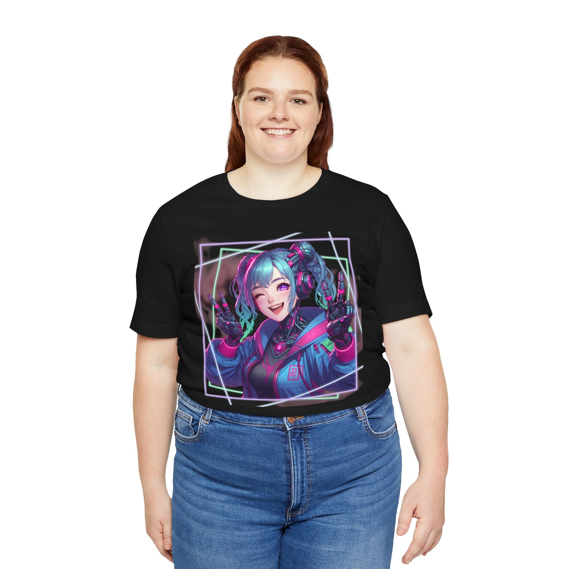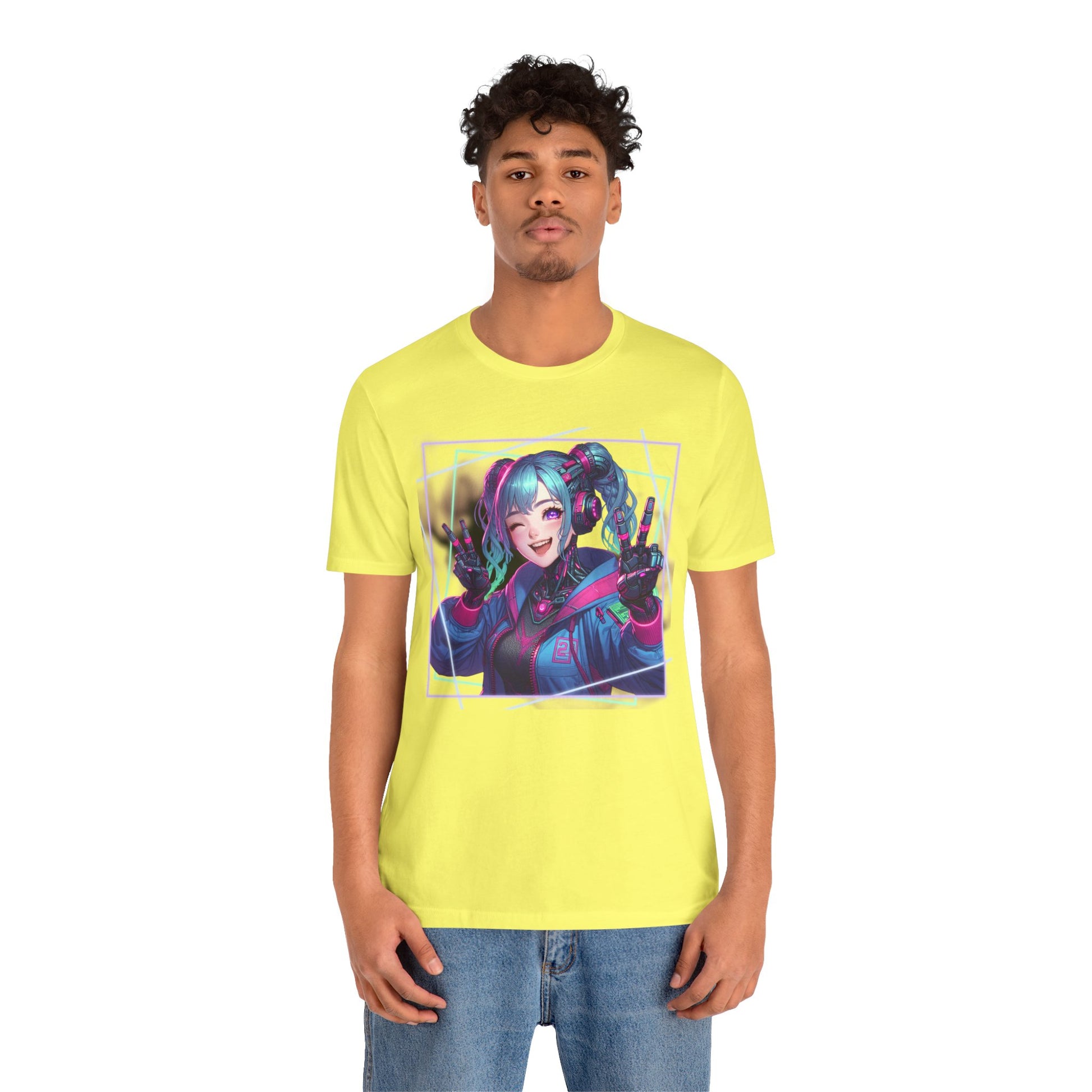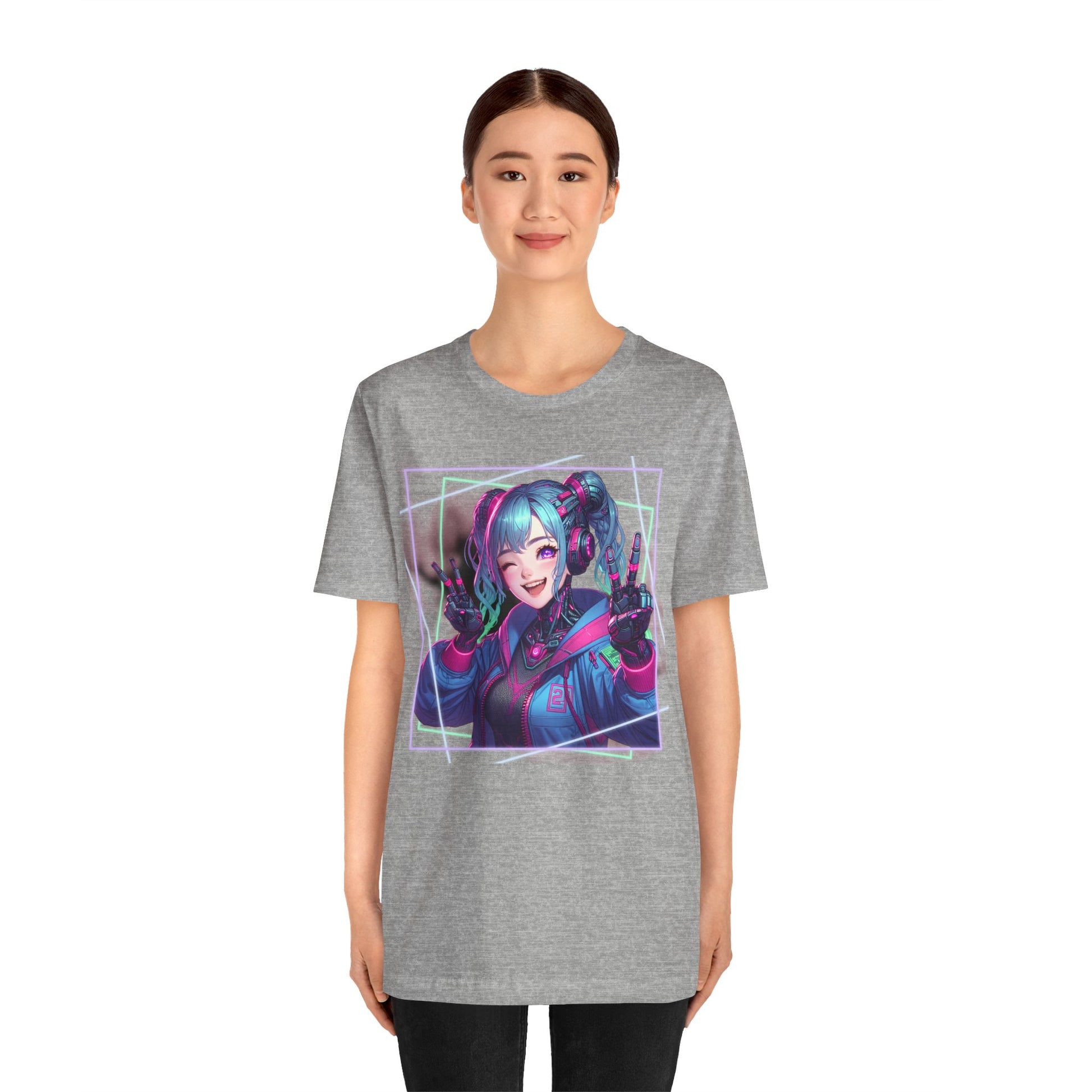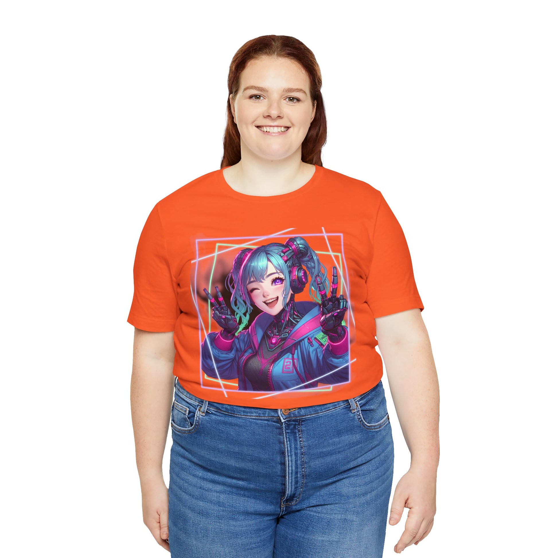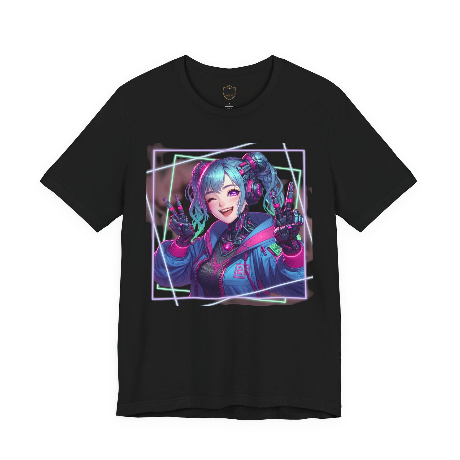 Anime Cyberpunk Girl Graphic Tee - Vibrant Kawaii Gamer T-Shirt