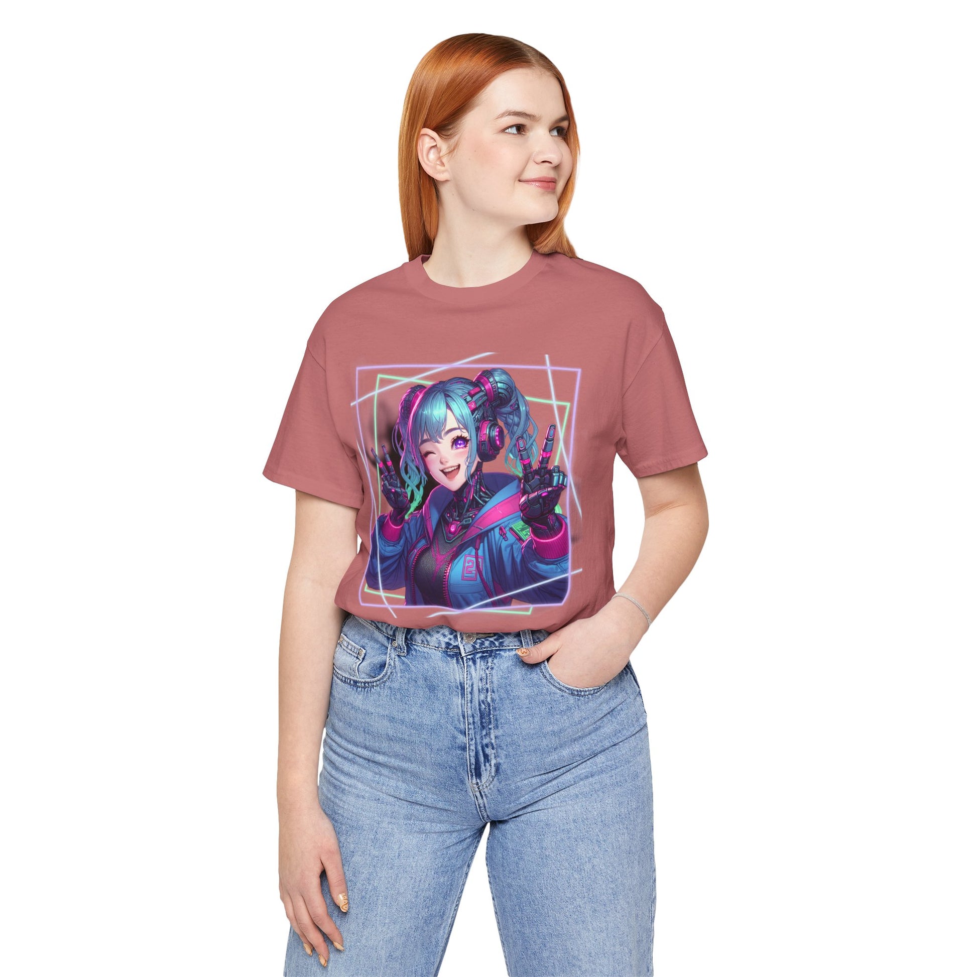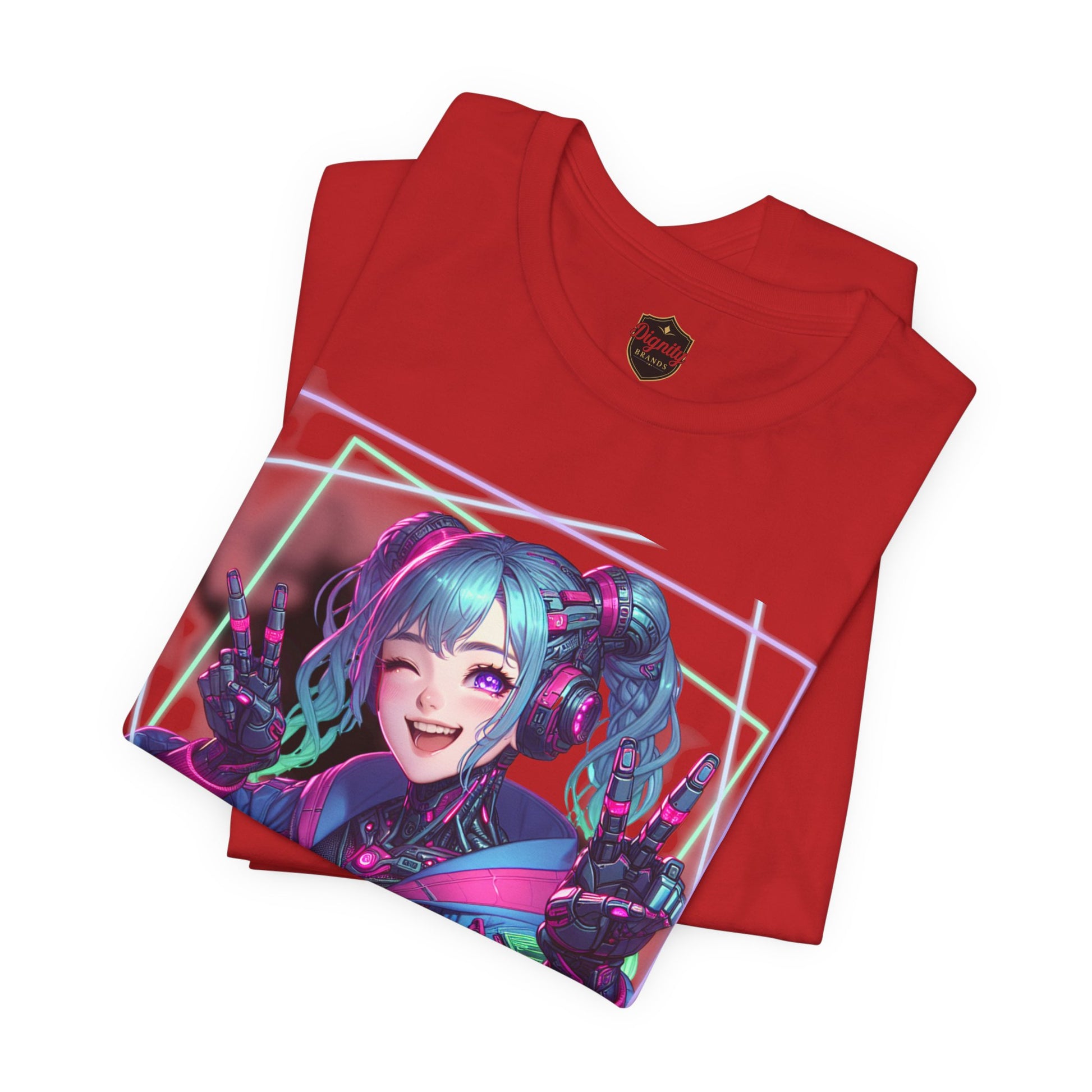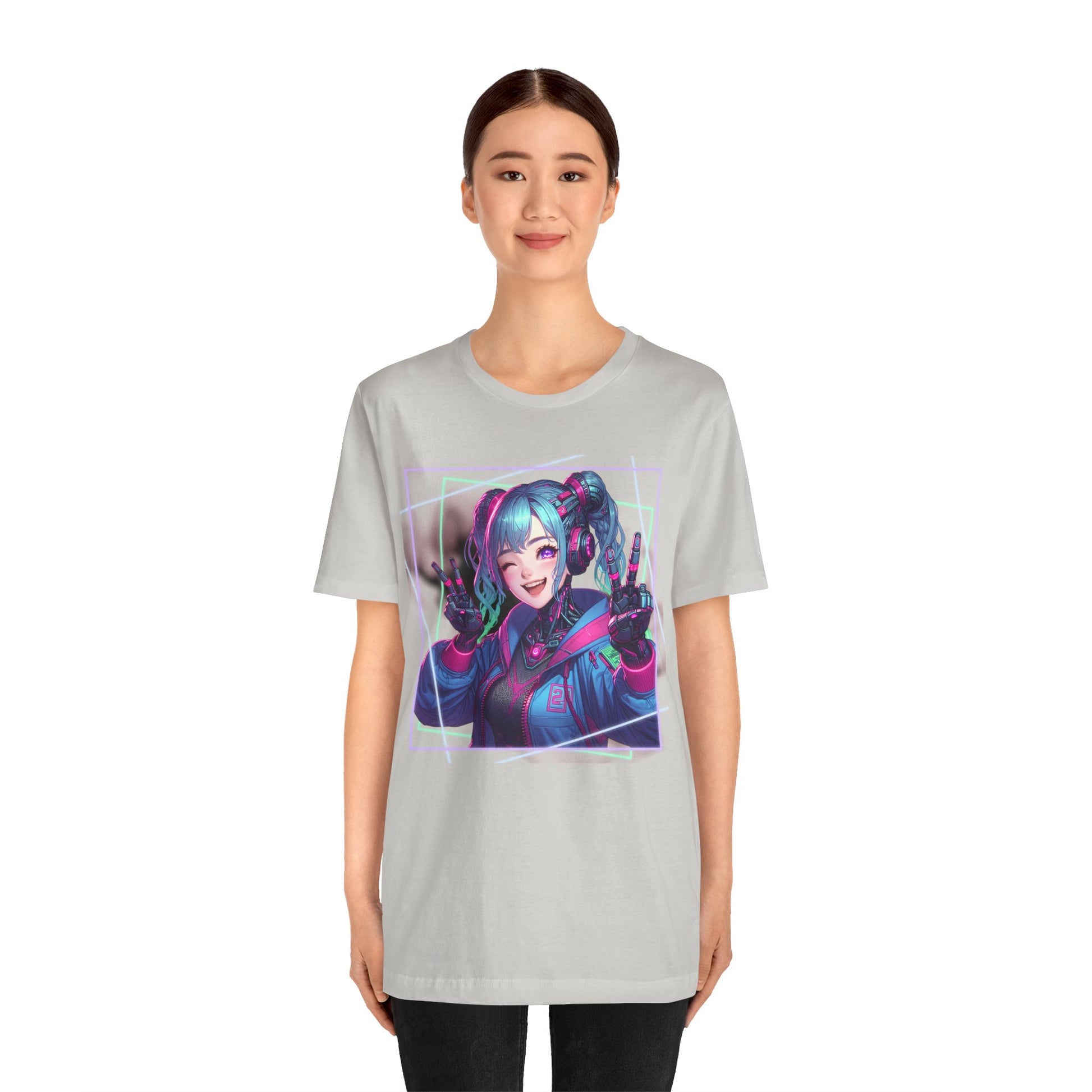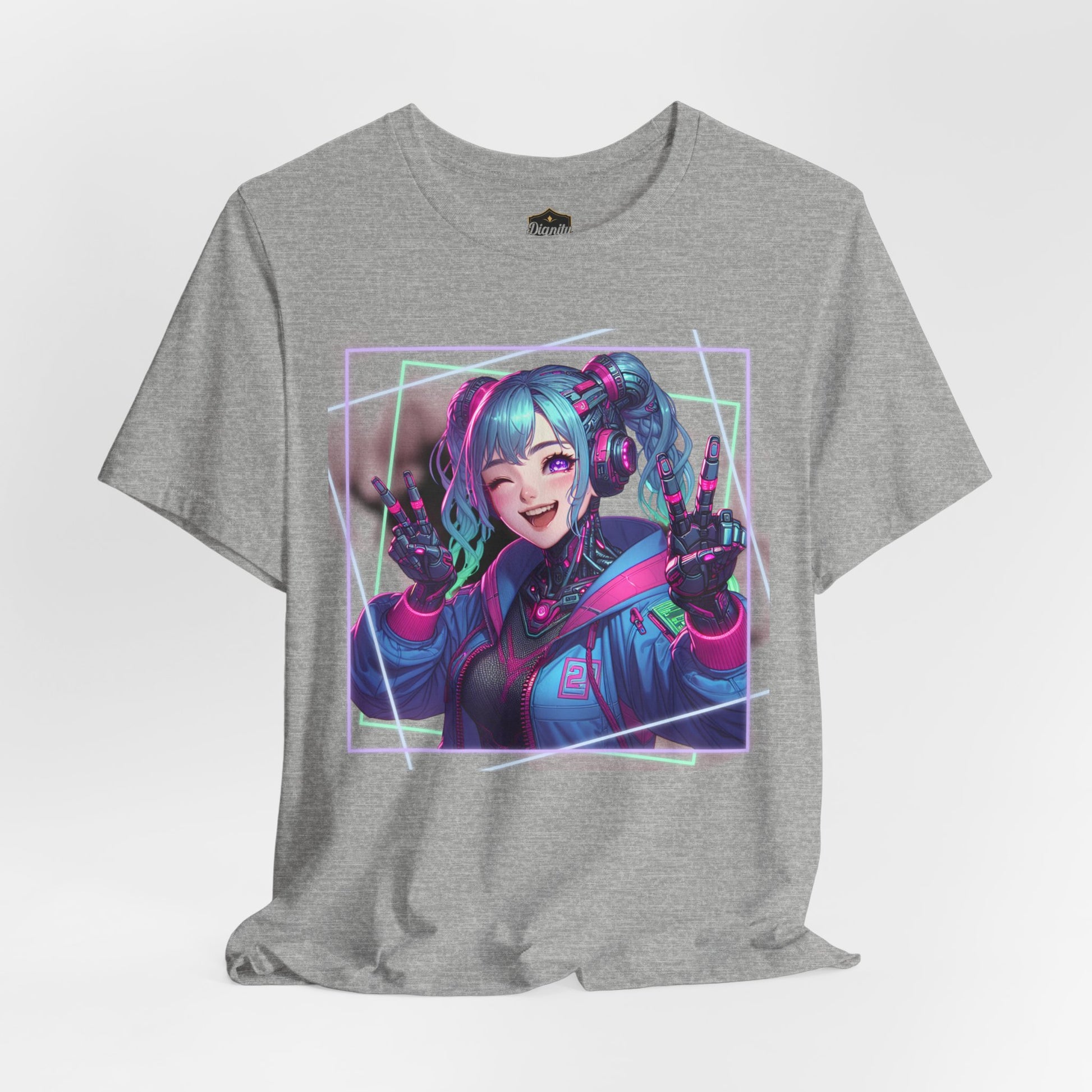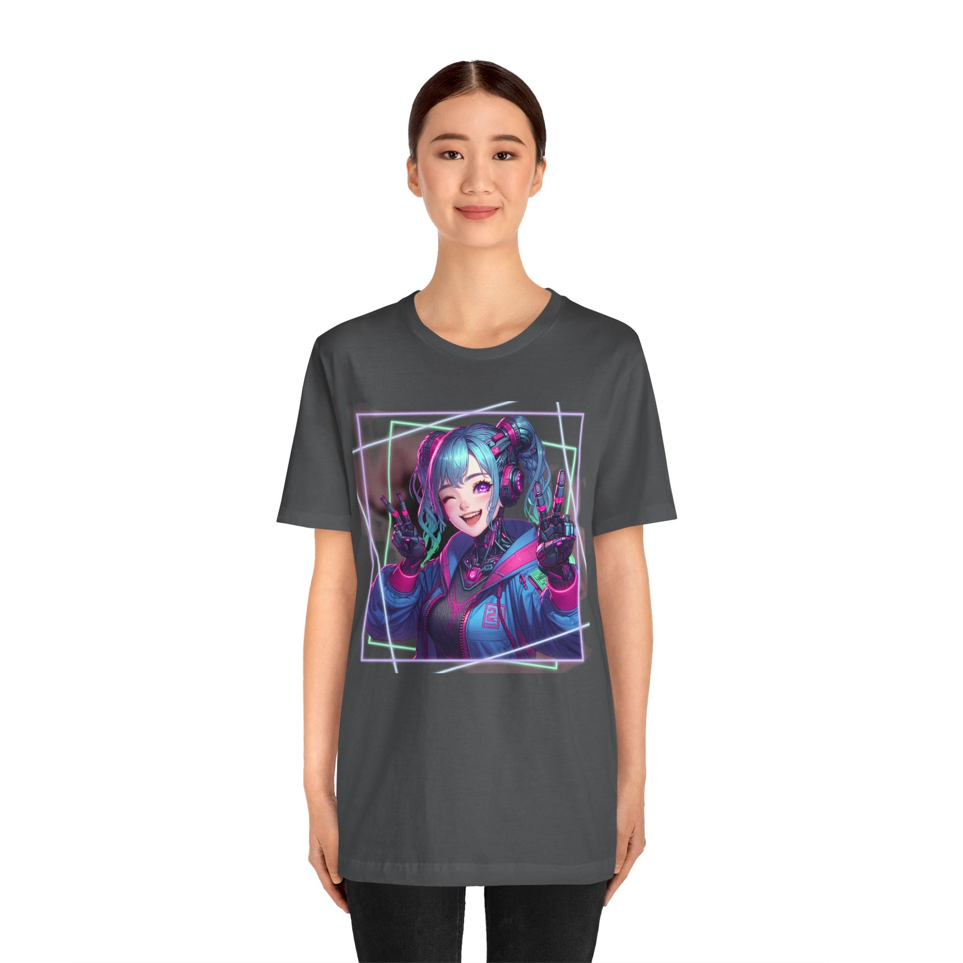 Anime Cyberpunk Girl Graphic Tee - Vibrant Kawaii Gamer T-Shirt