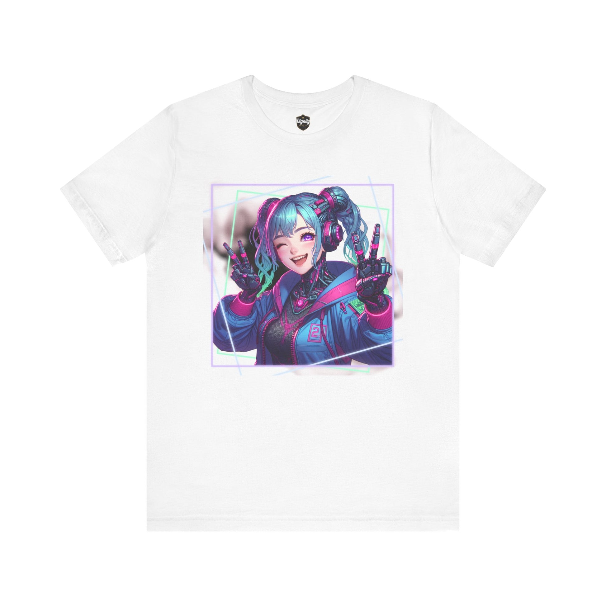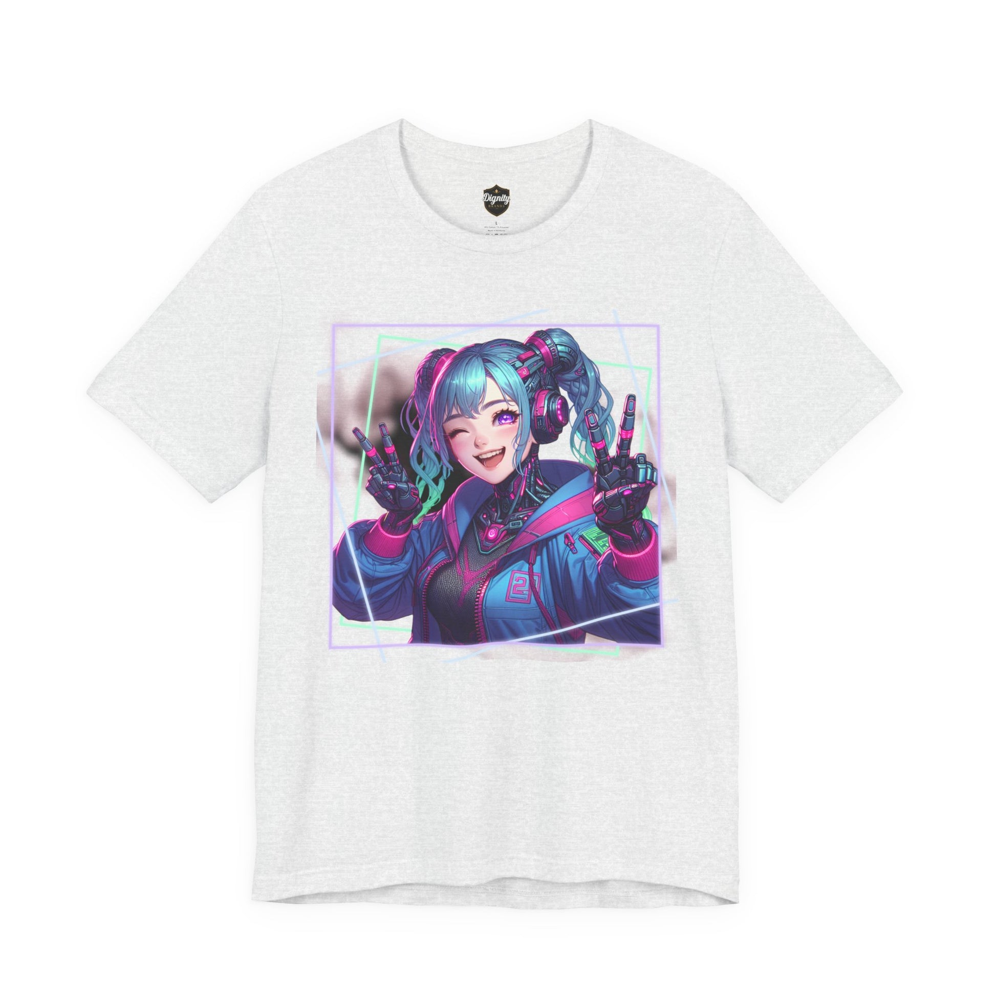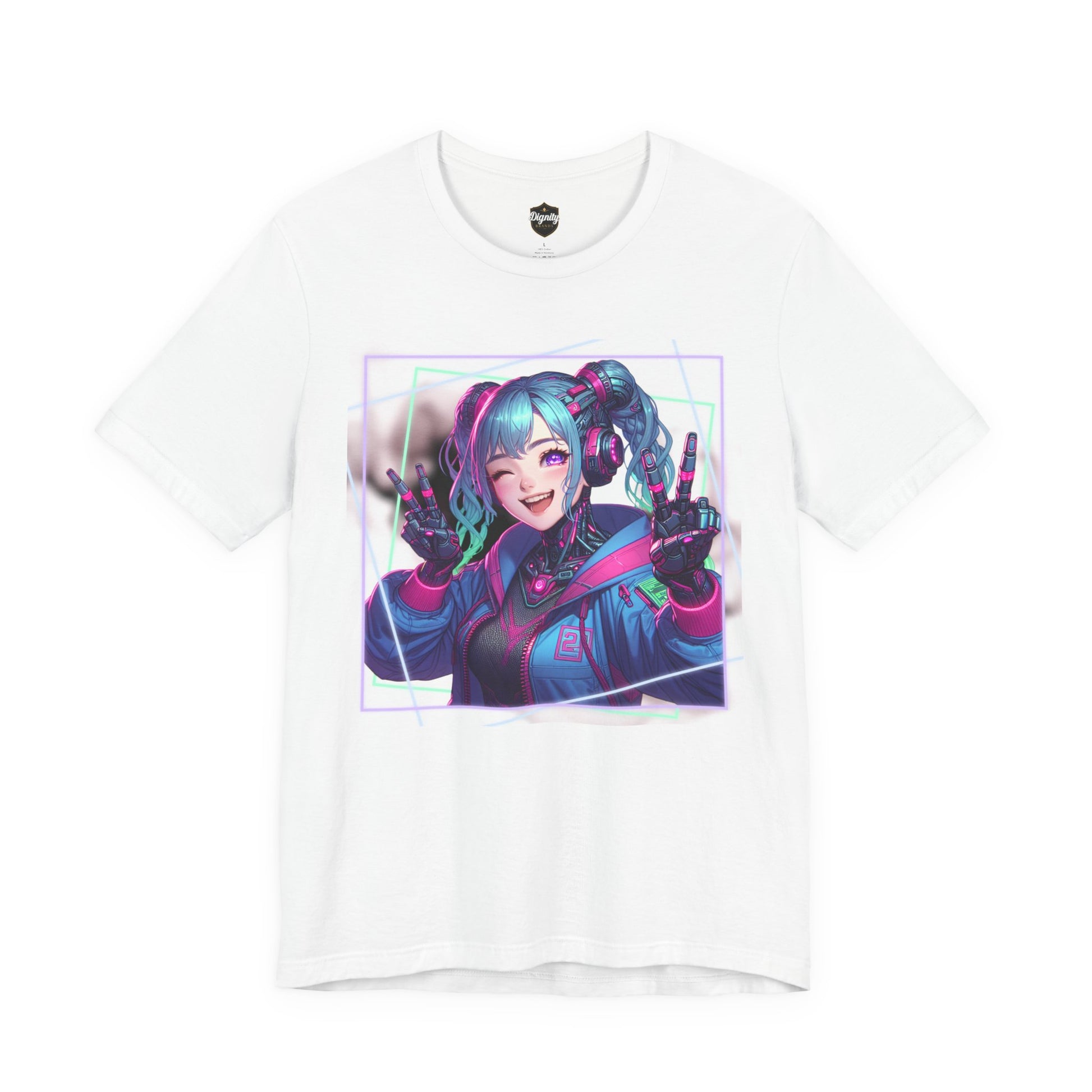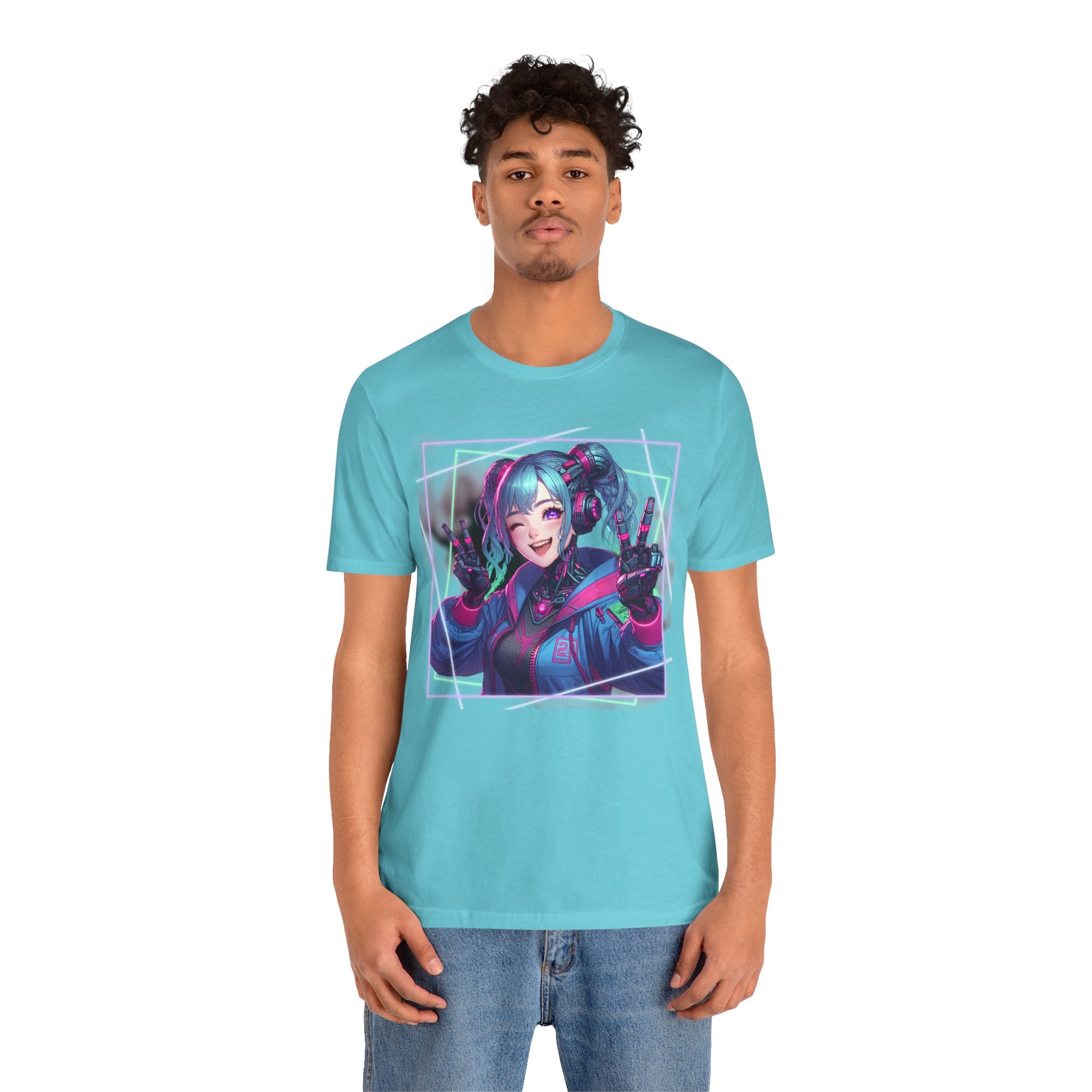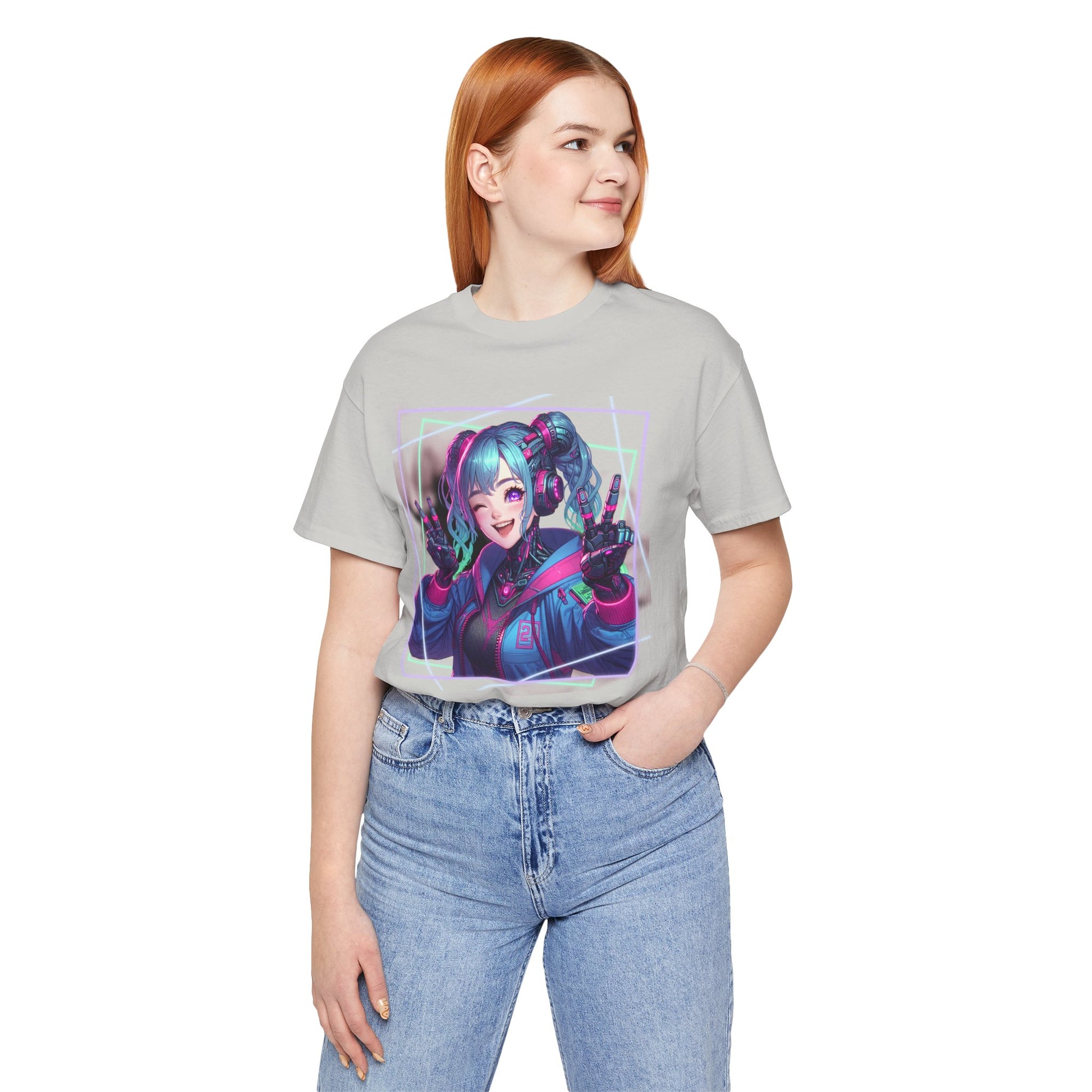 Anime Cyberpunk Girl Graphic Tee - Vibrant Kawaii Gamer T-Shirt