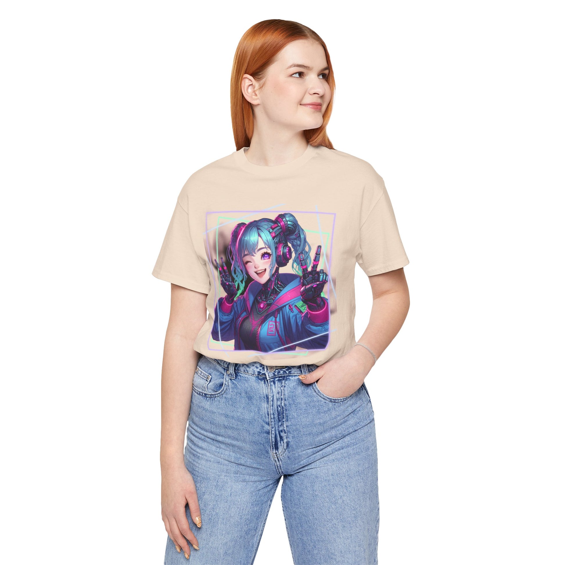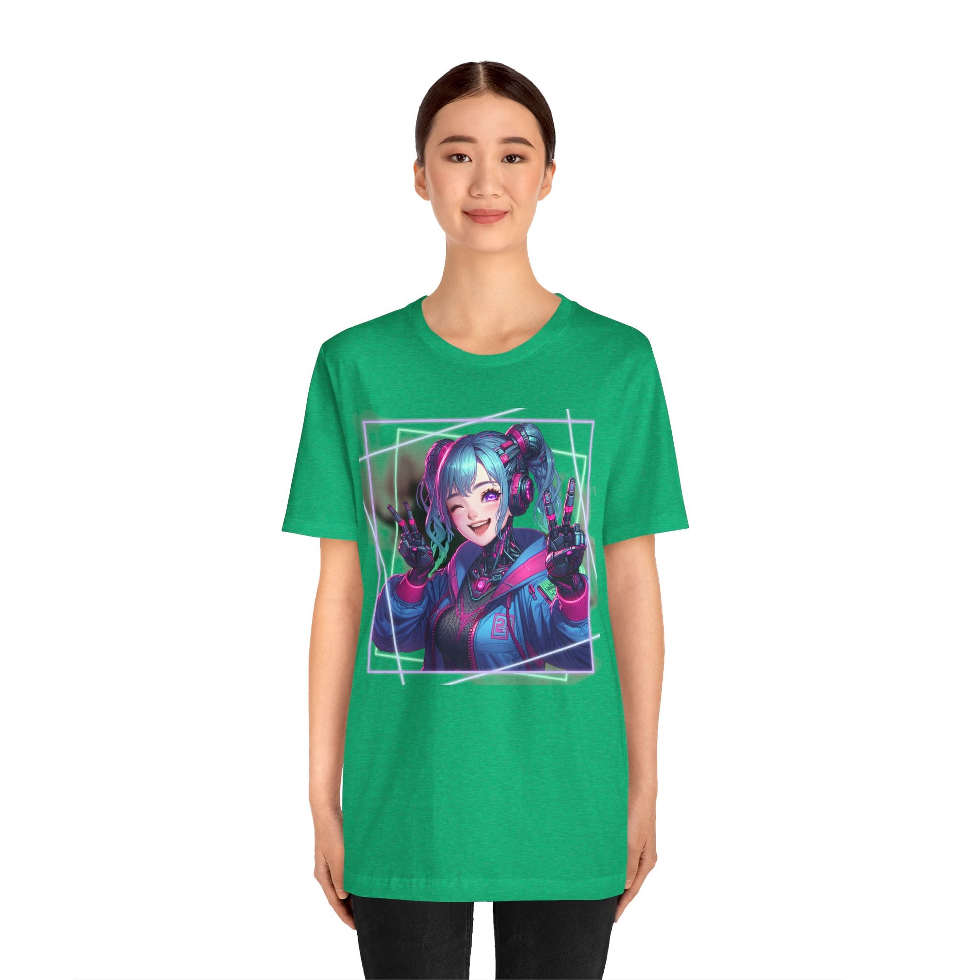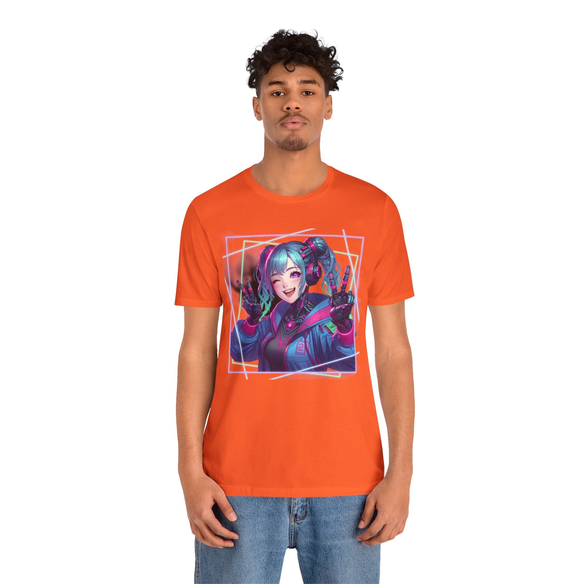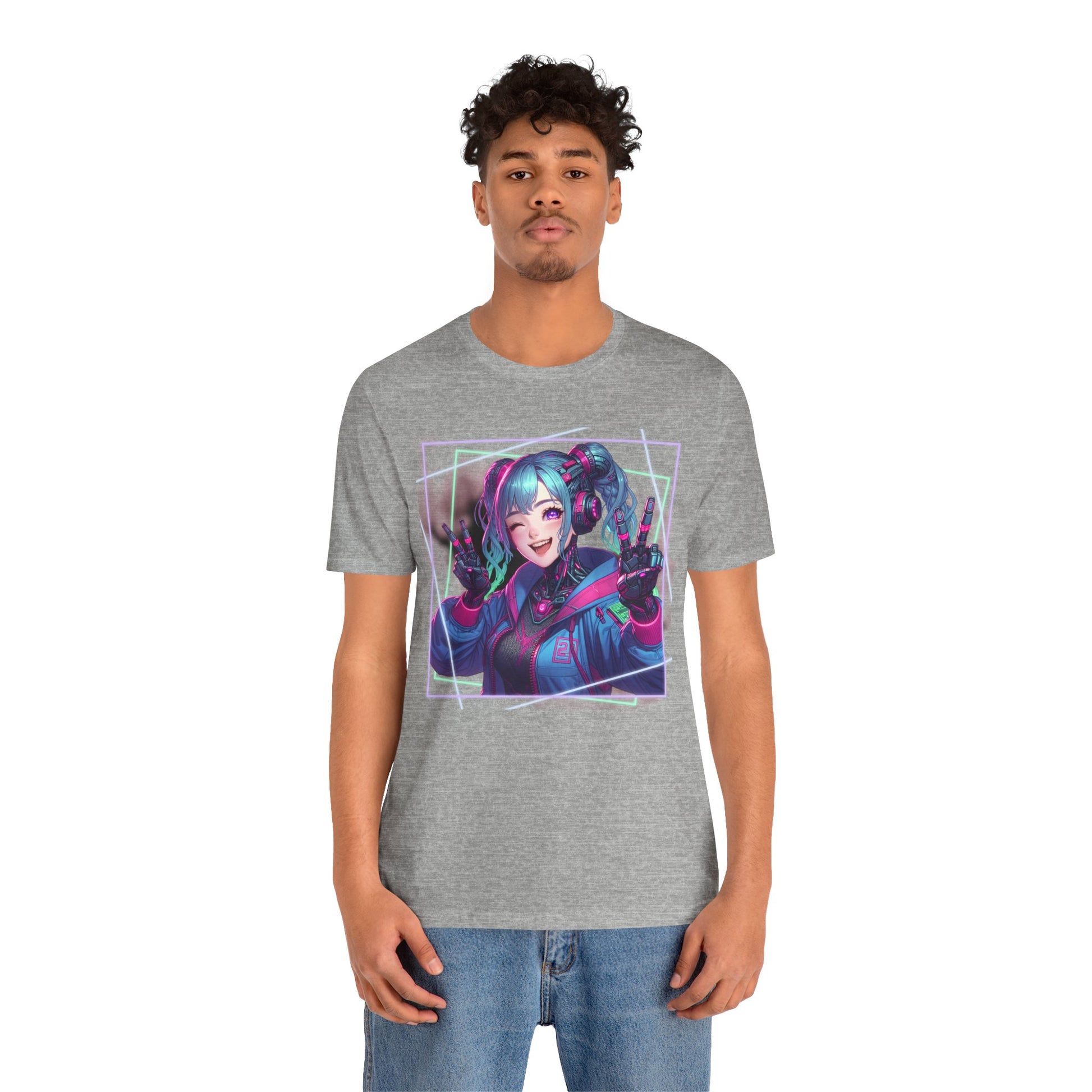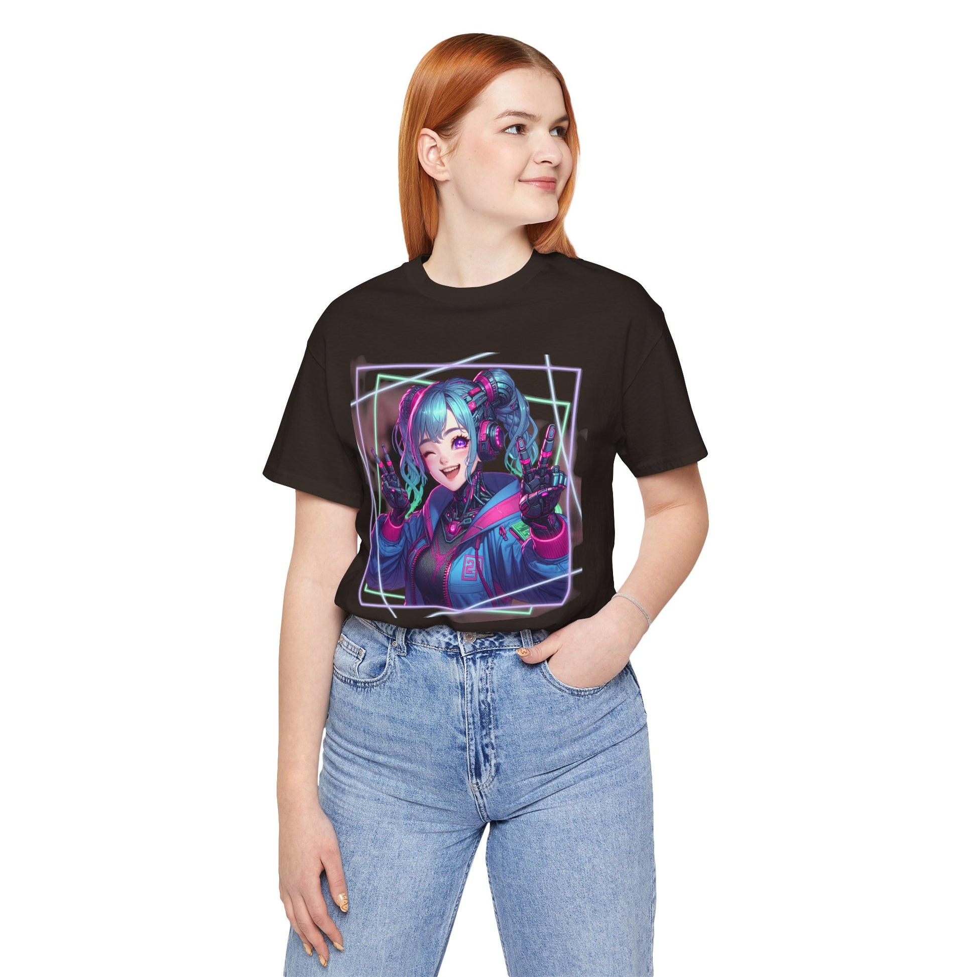 Anime Cyberpunk Girl Graphic Tee - Vibrant Kawaii Gamer T-Shirt