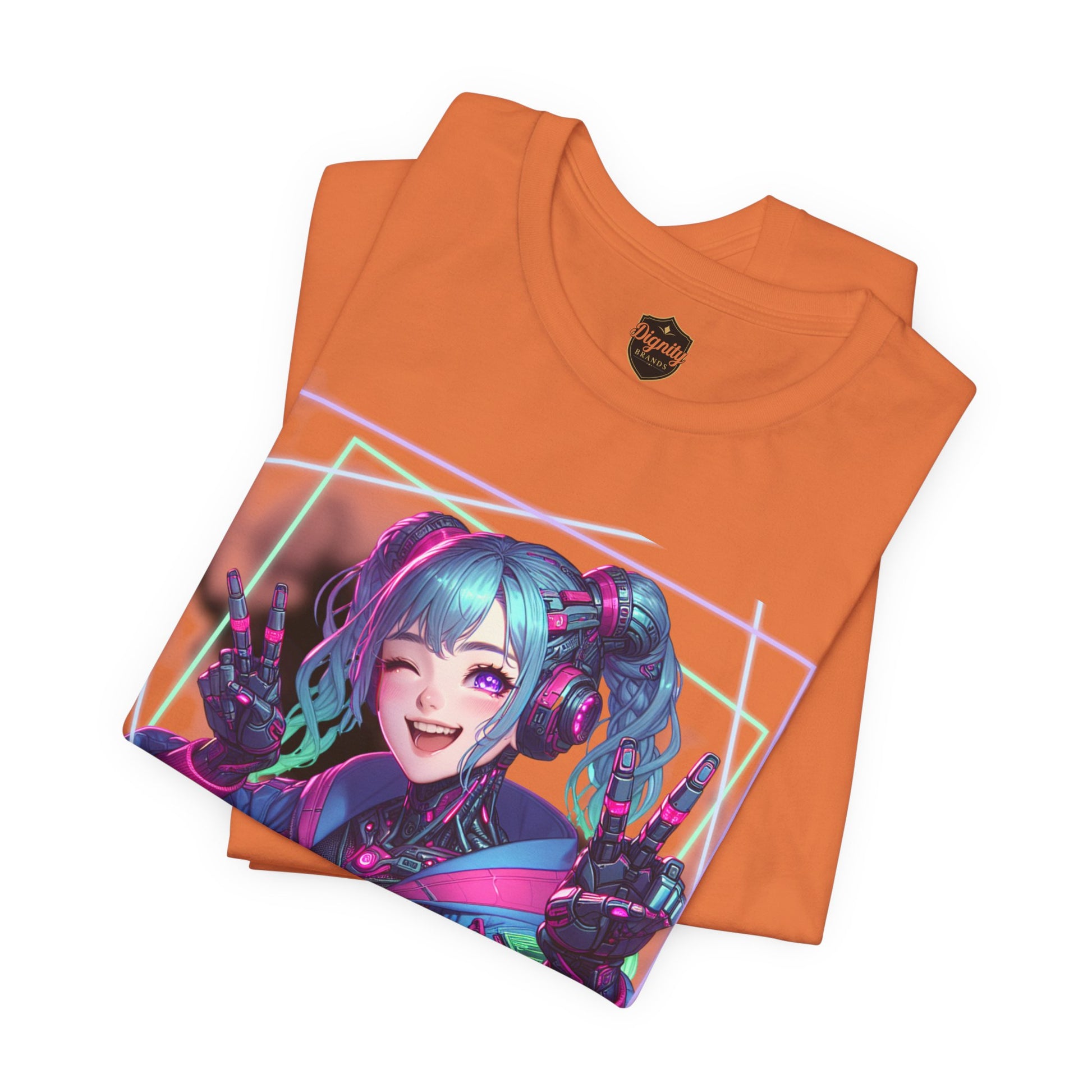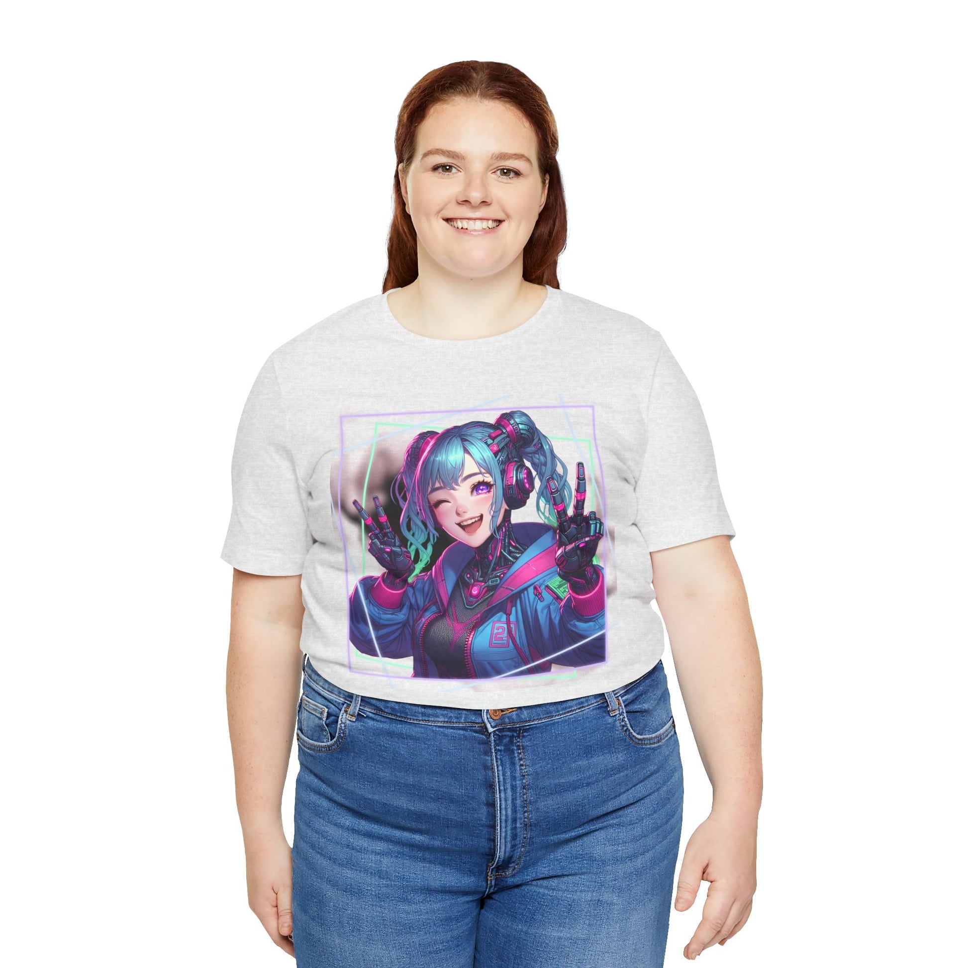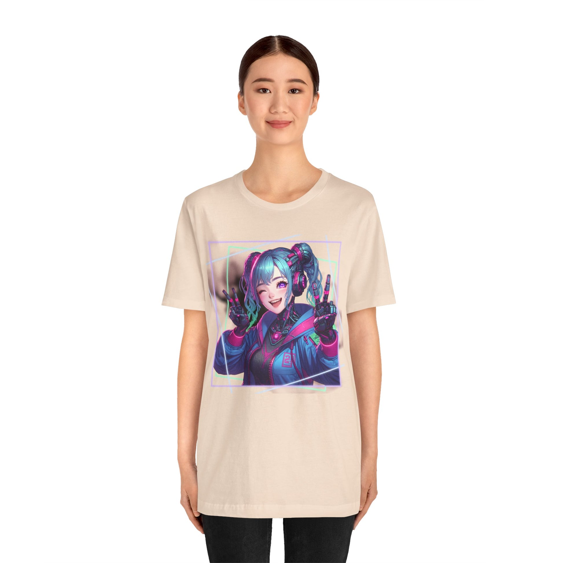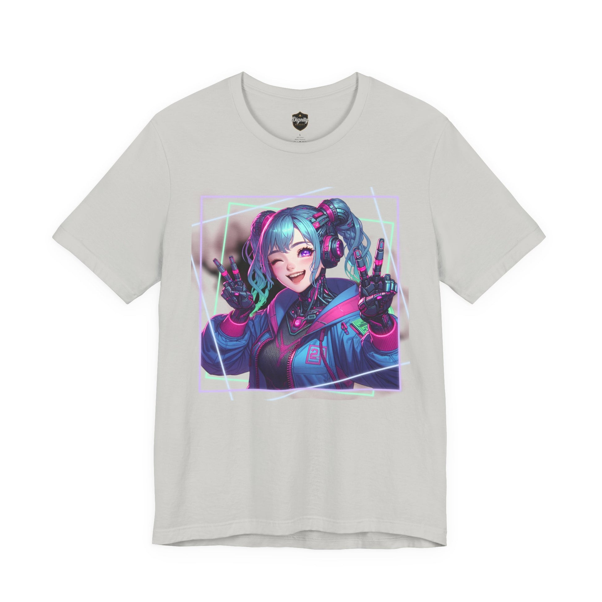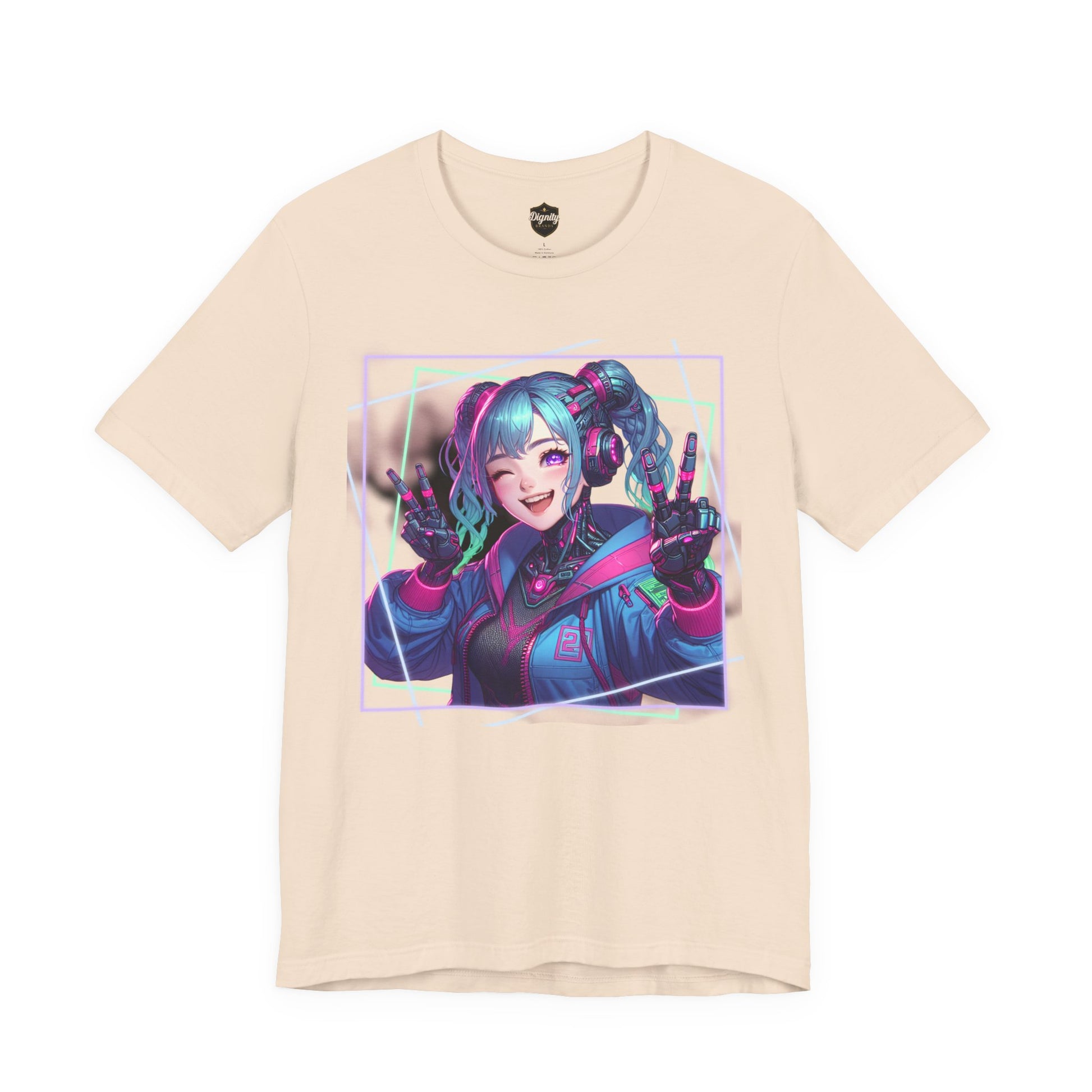 Anime Cyberpunk Girl Graphic Tee - Vibrant Kawaii Gamer T-Shirt