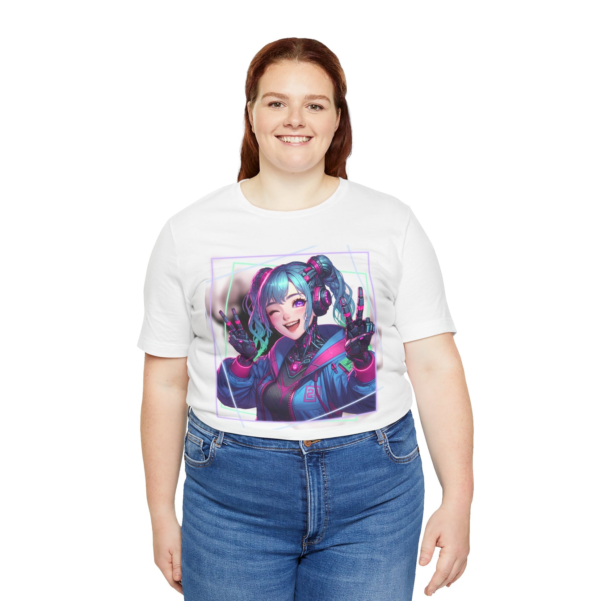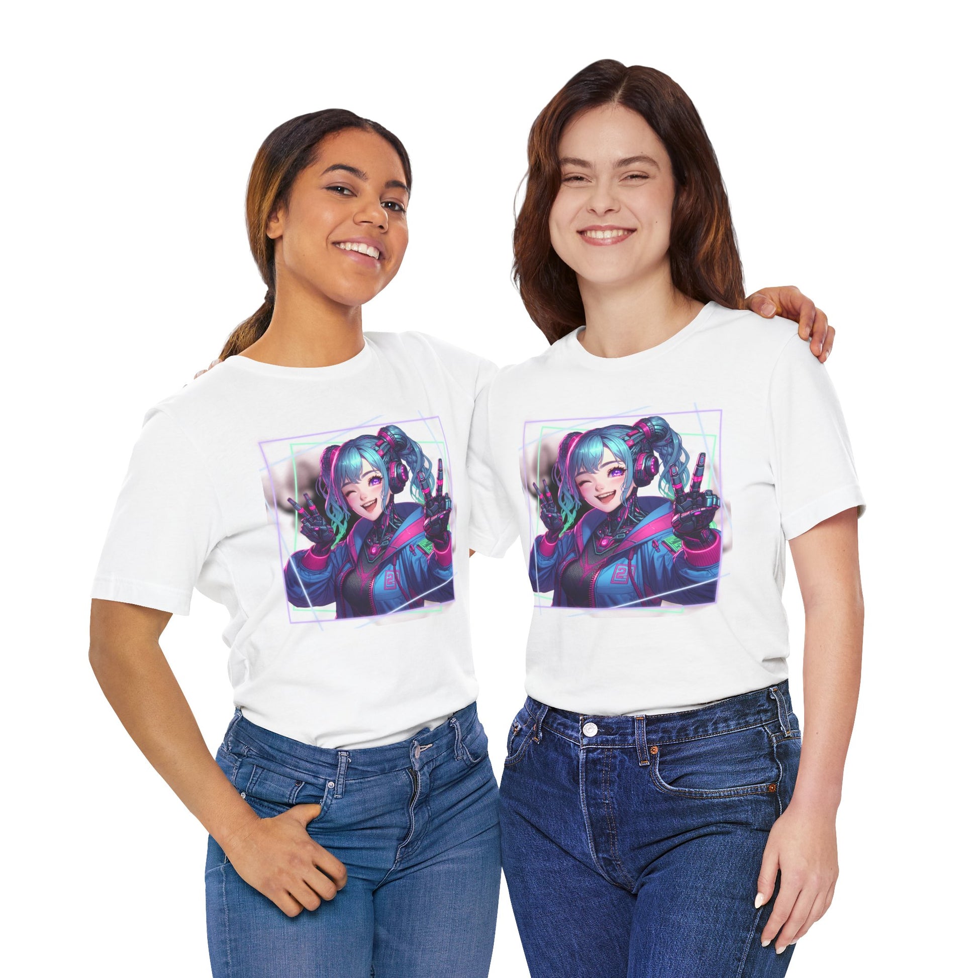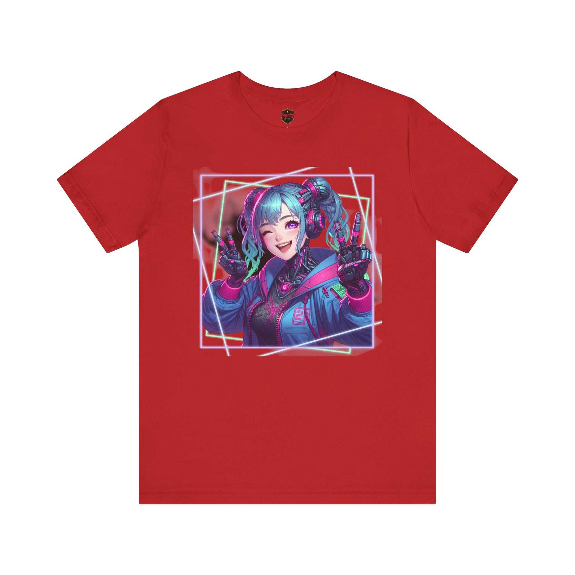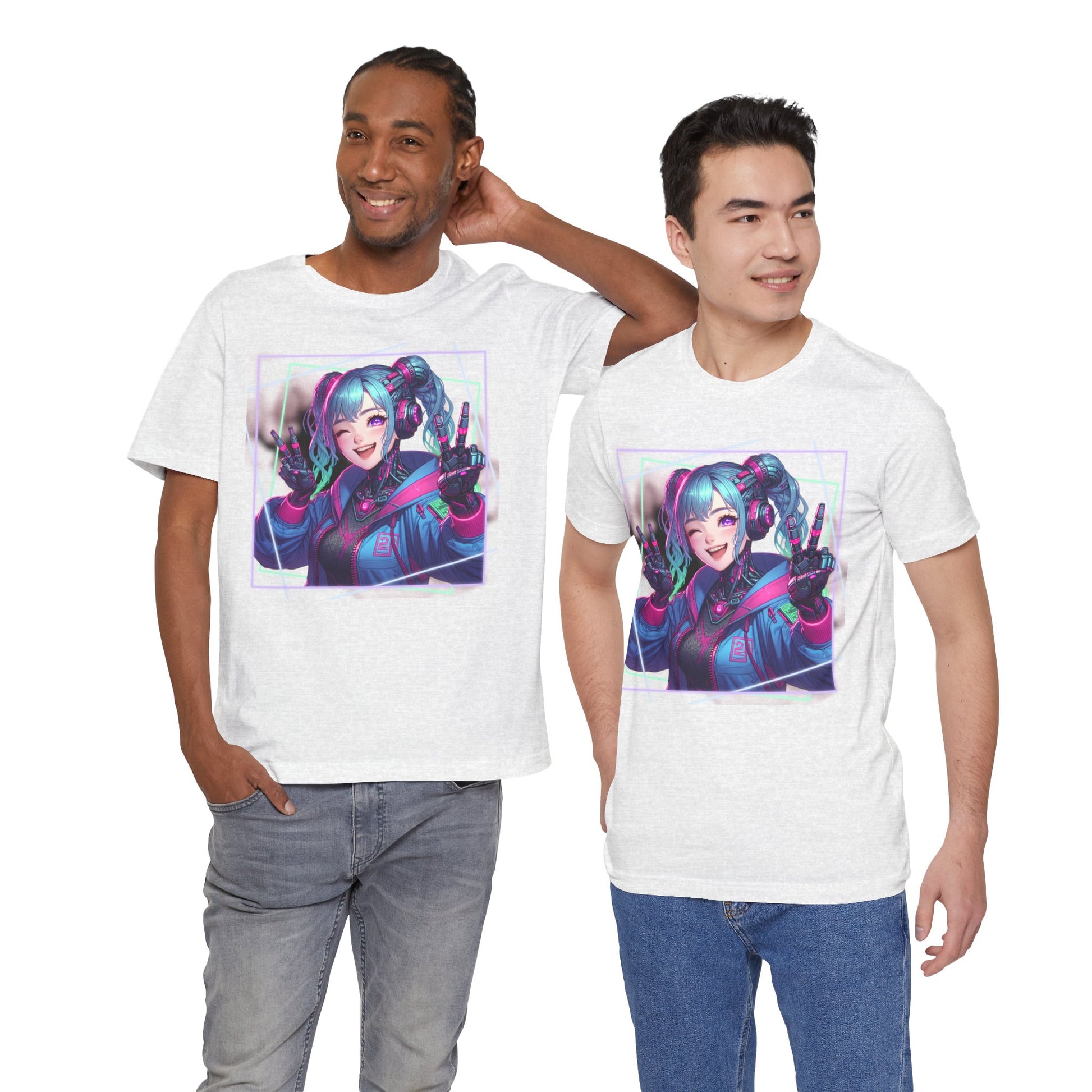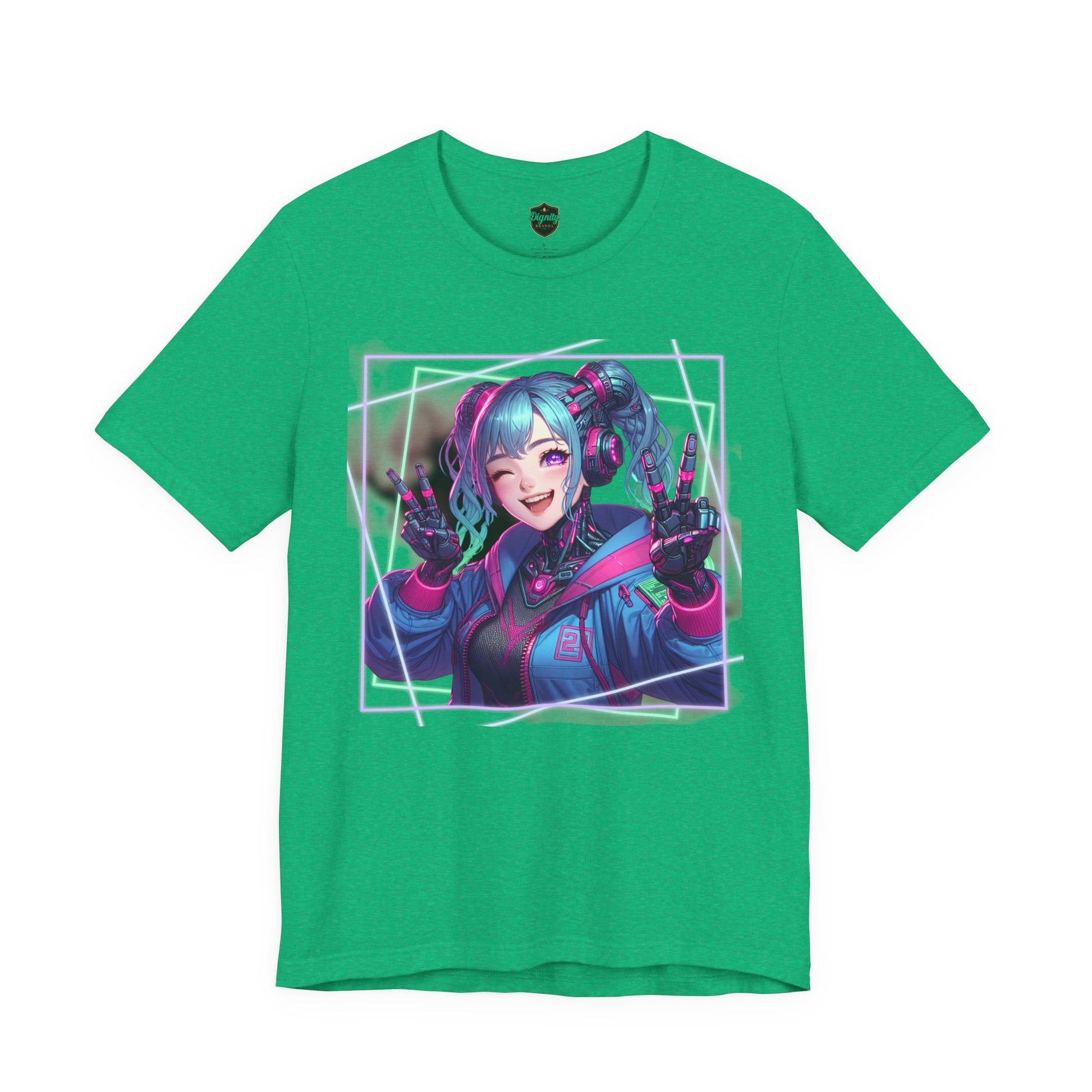 Anime Cyberpunk Girl Graphic Tee - Vibrant Kawaii Gamer T-Shirt