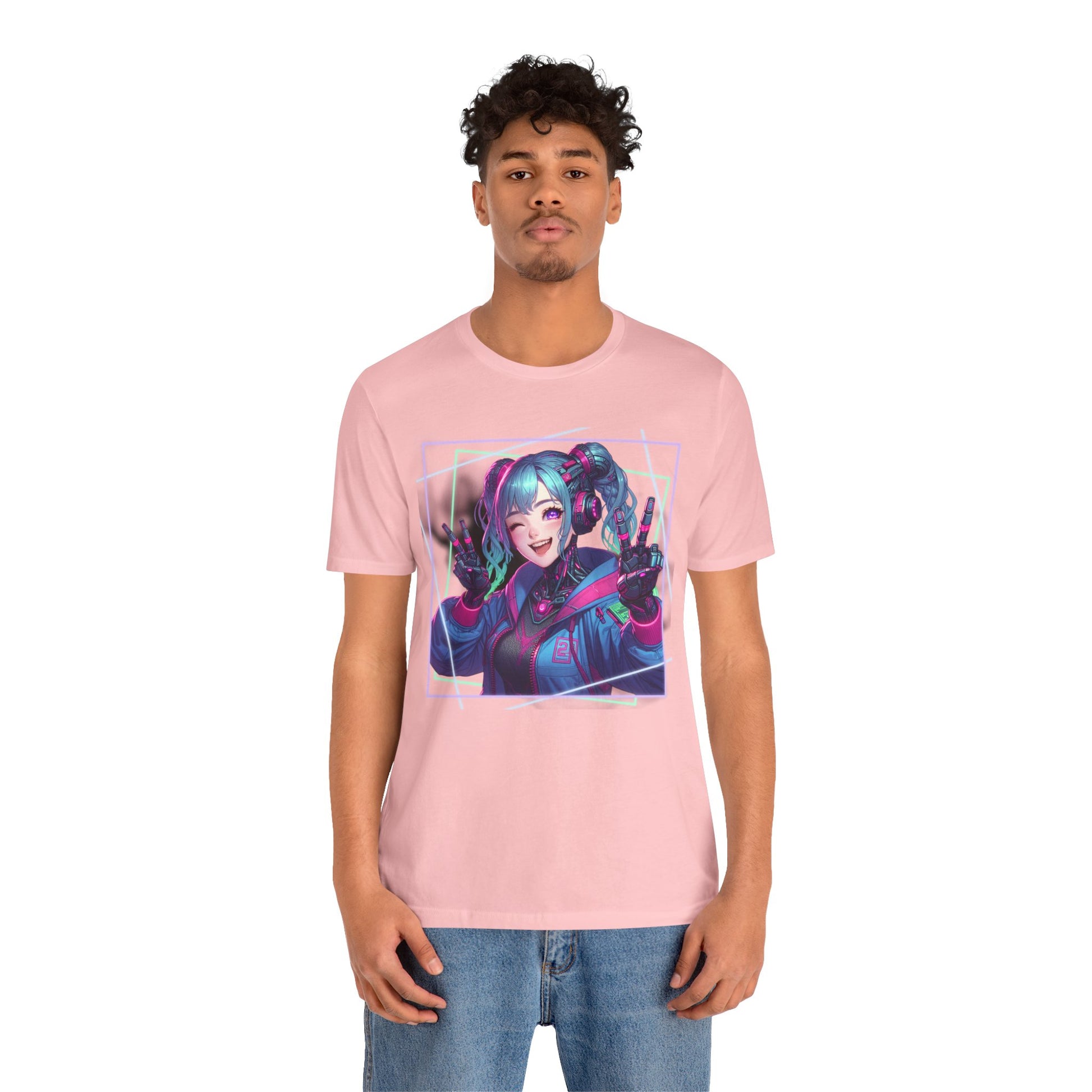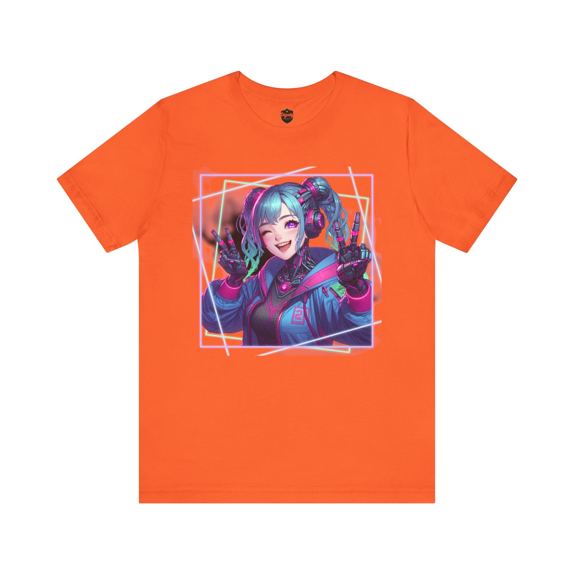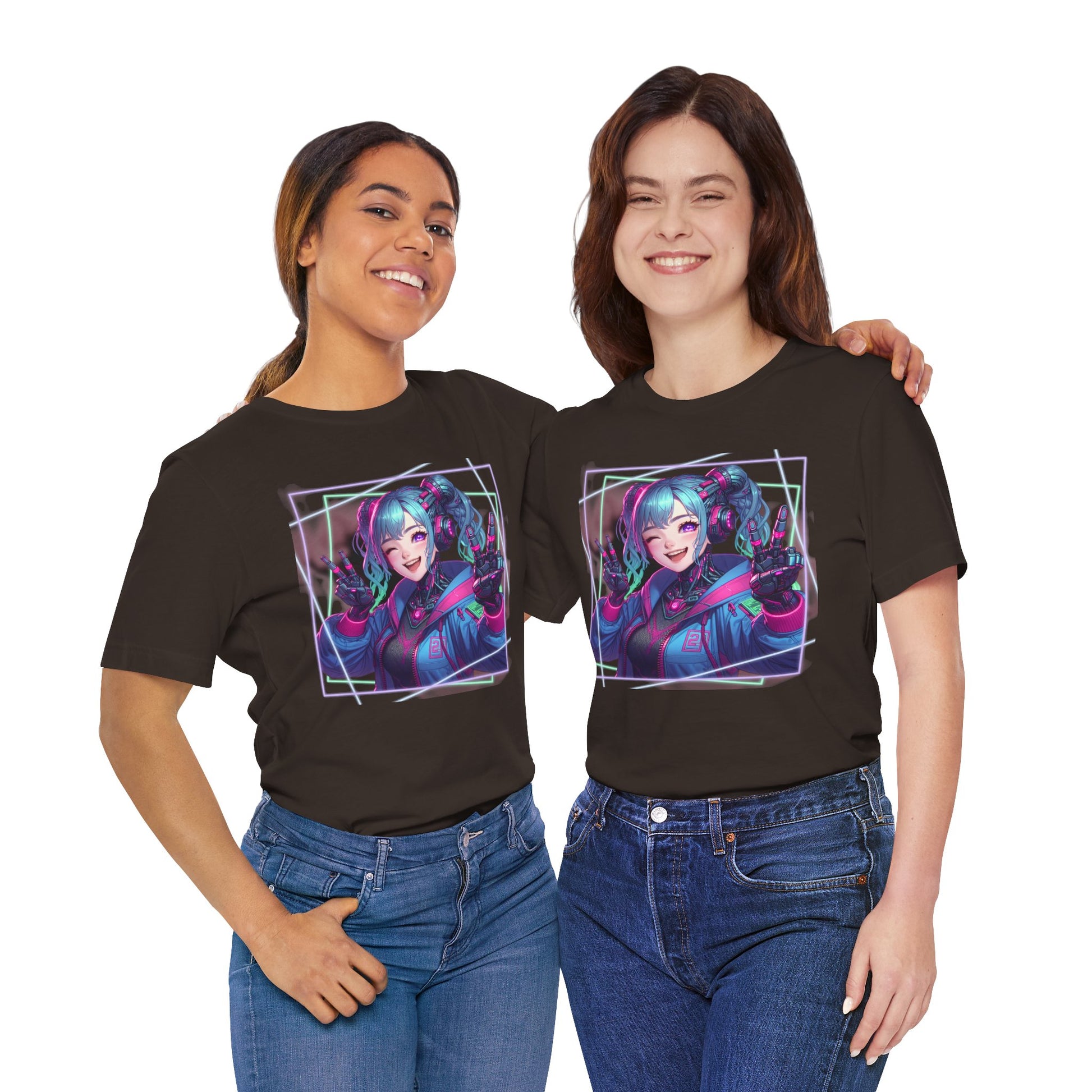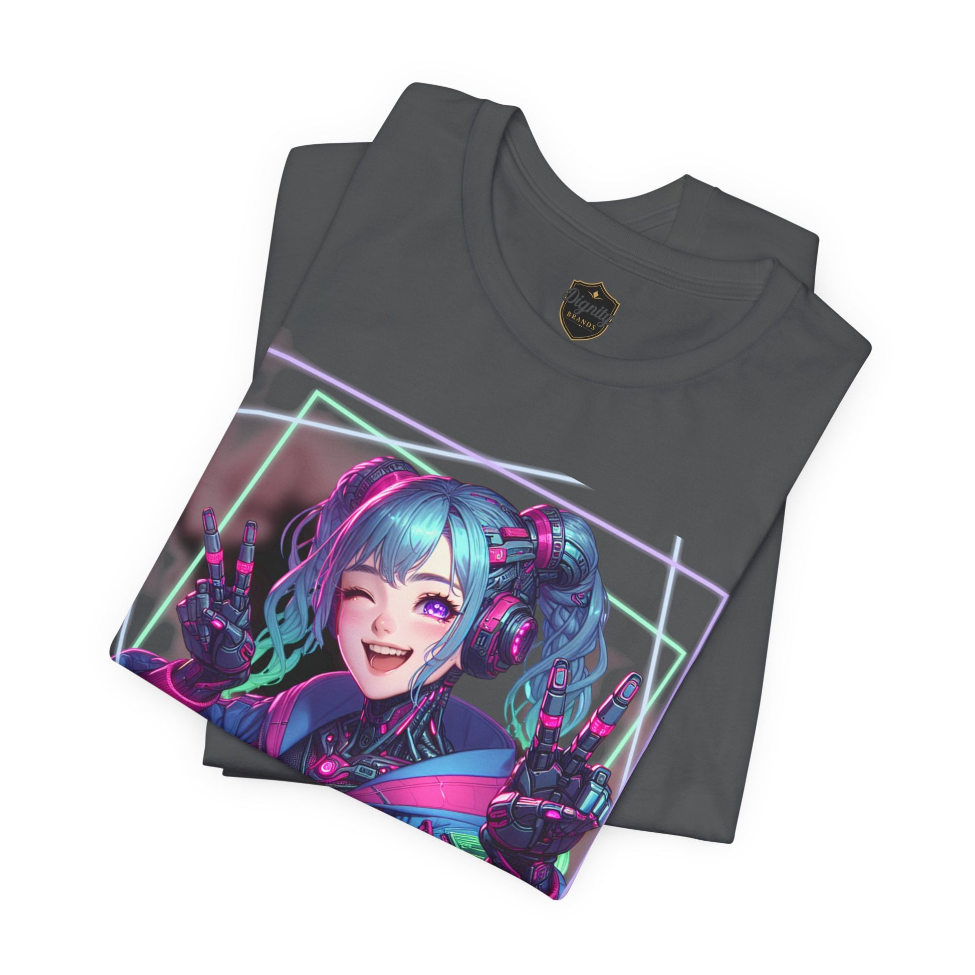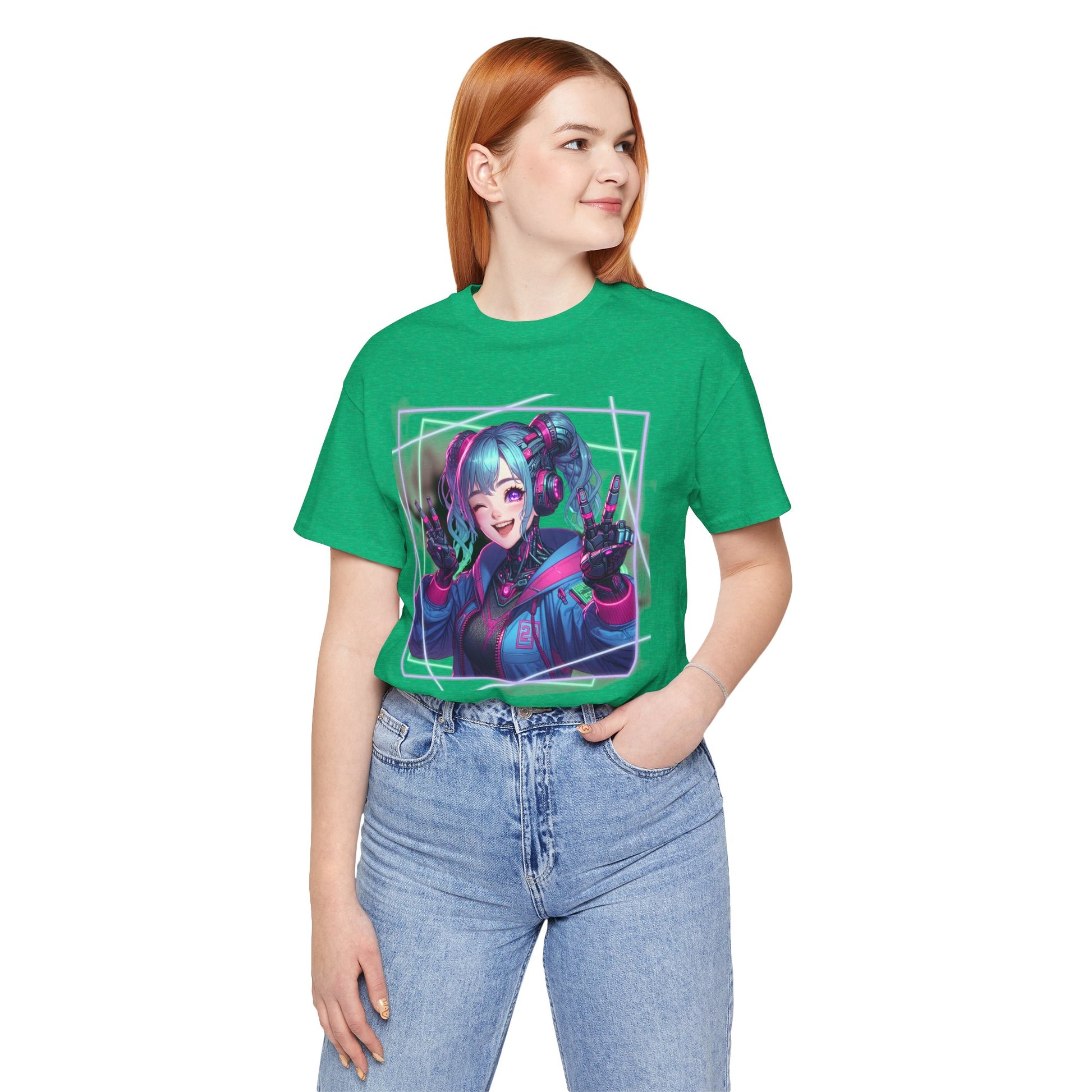 Anime Cyberpunk Girl Graphic Tee - Vibrant Kawaii Gamer T-Shirt