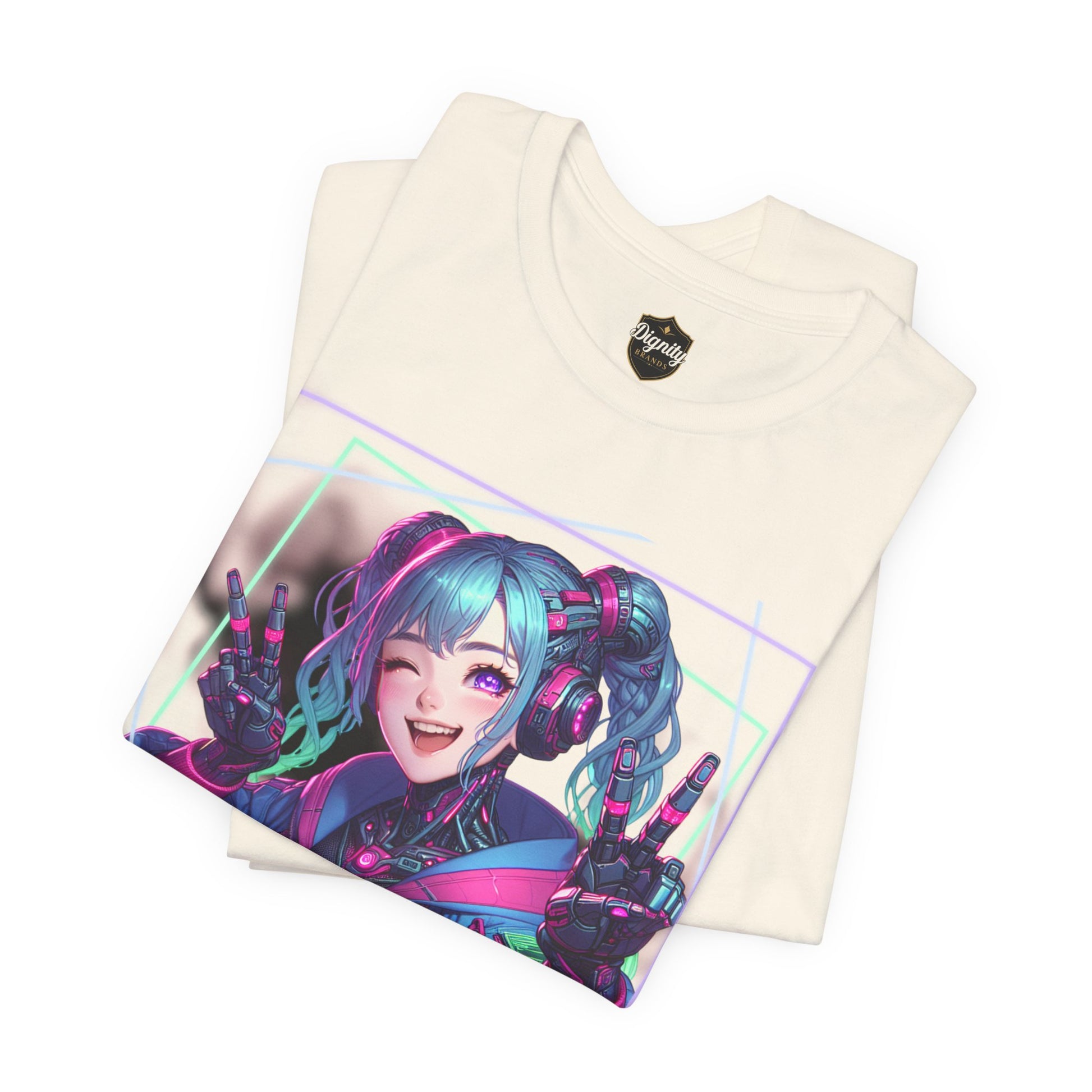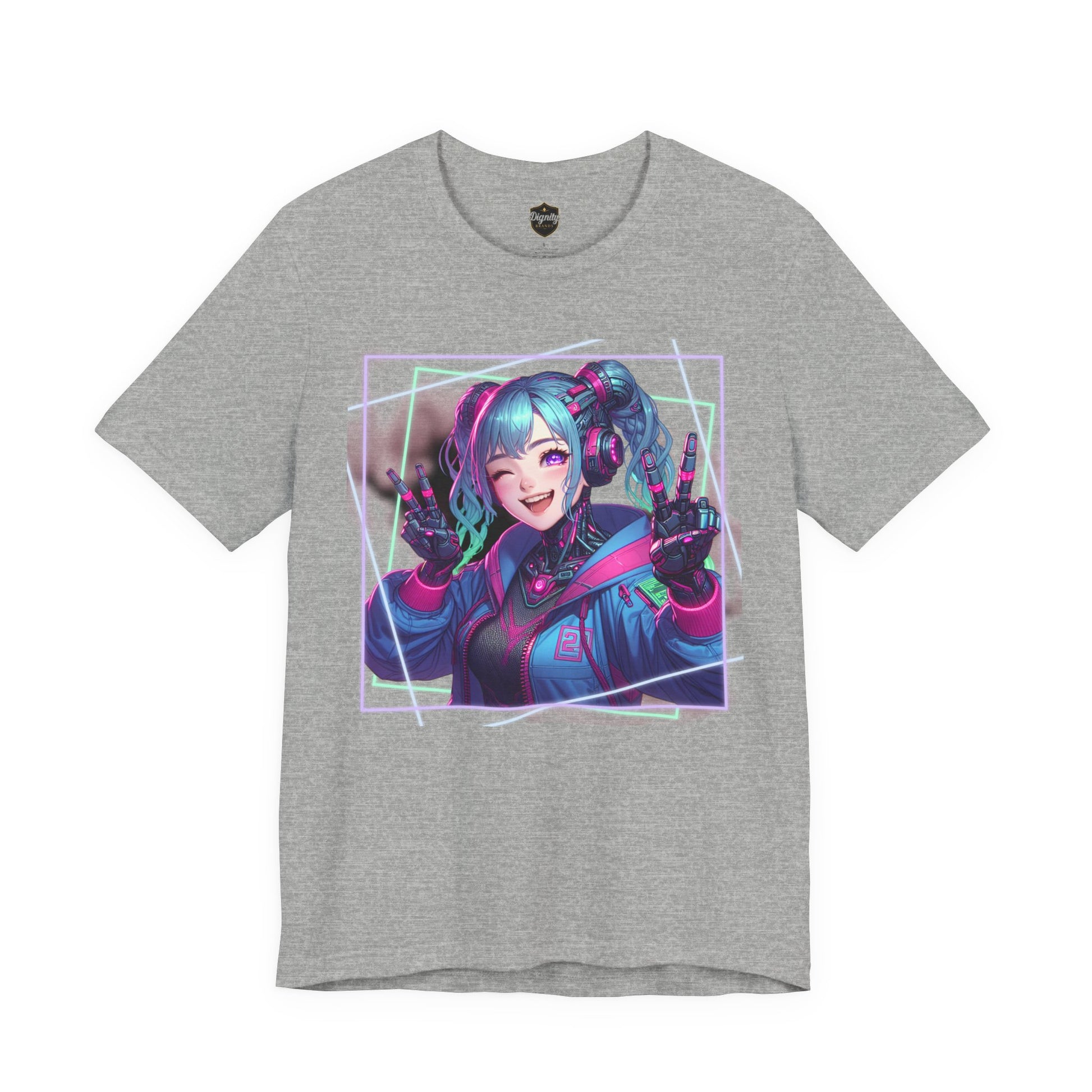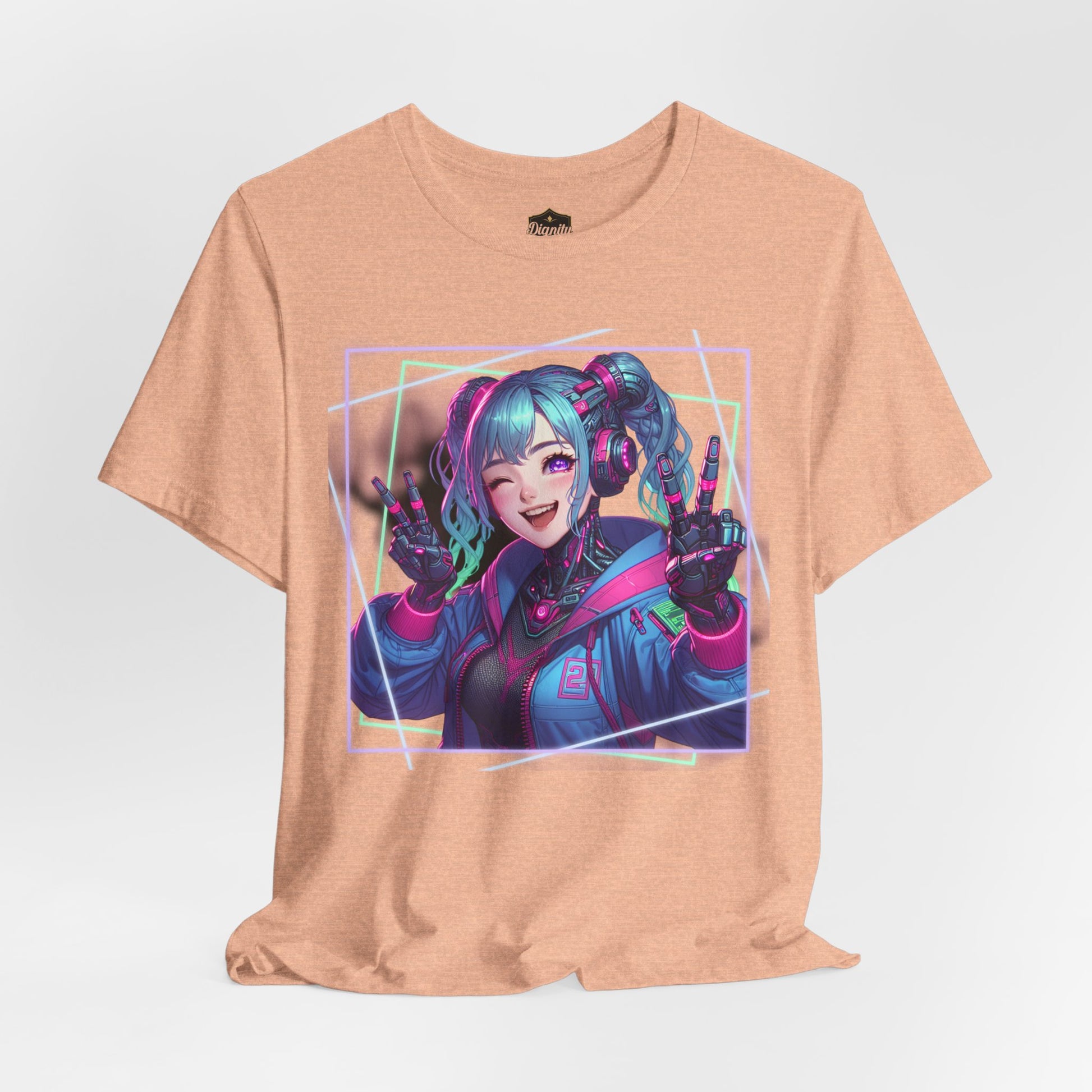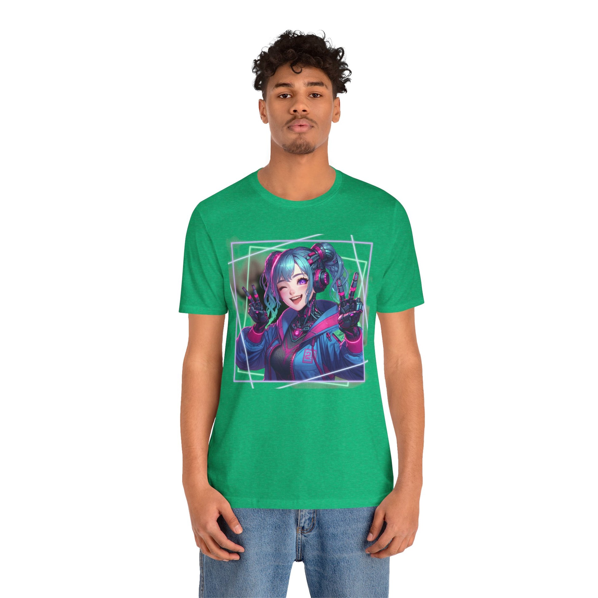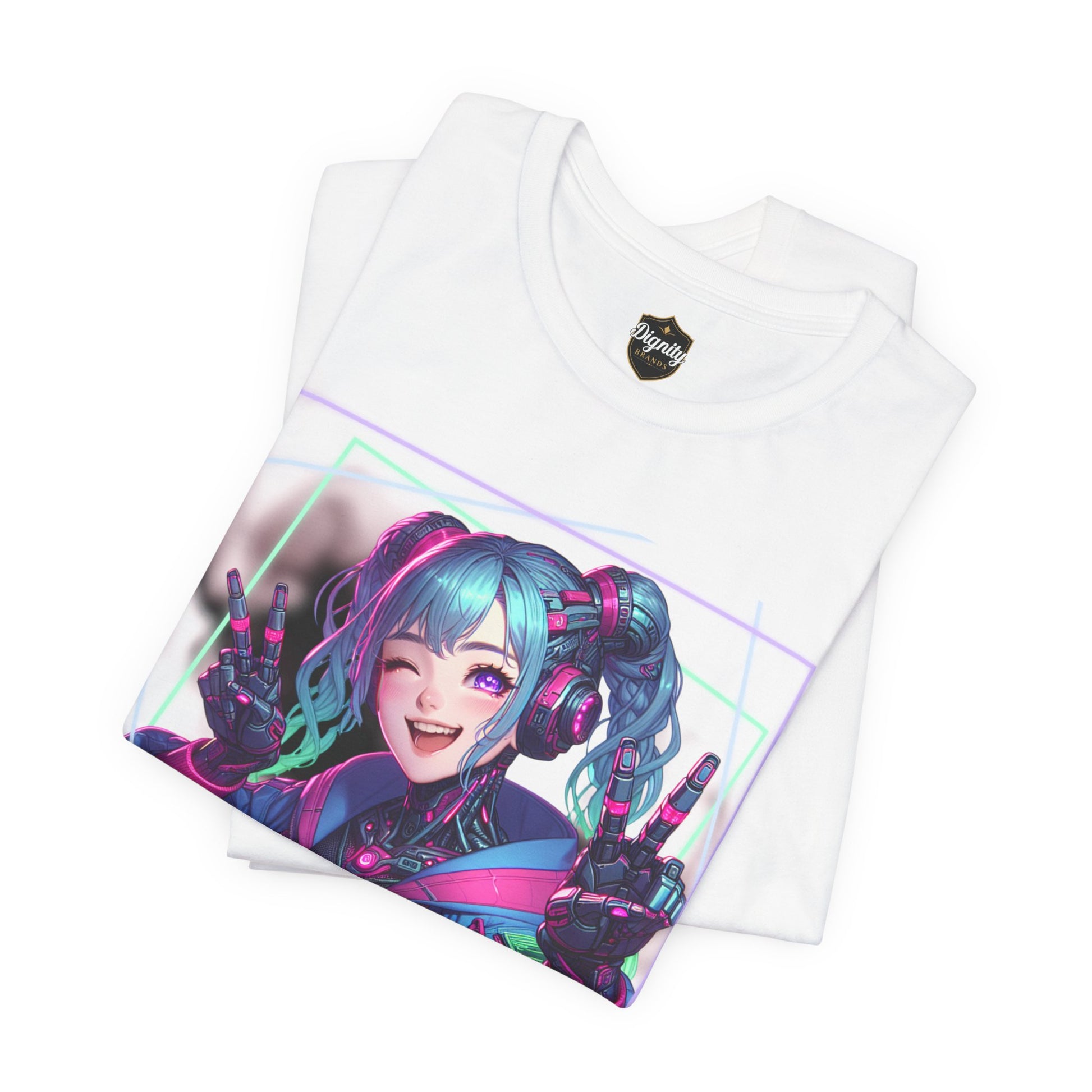 Anime Cyberpunk Girl Graphic Tee - Vibrant Kawaii Gamer T-Shirt