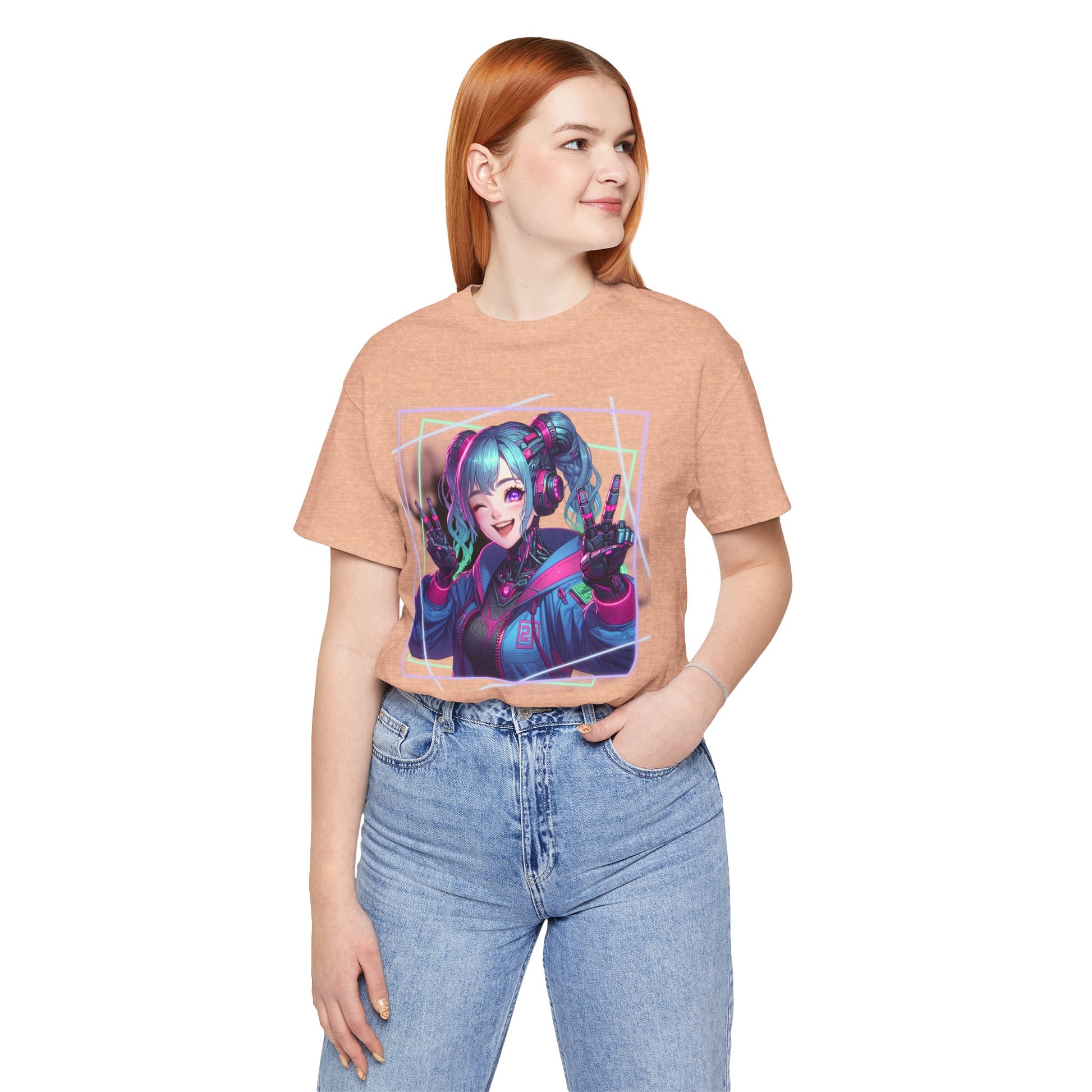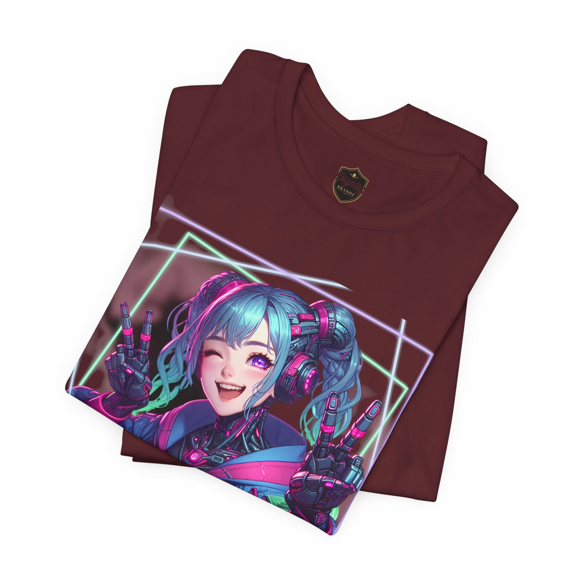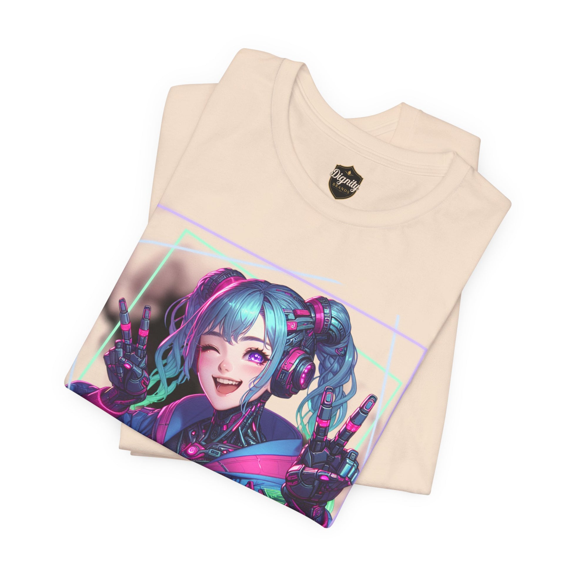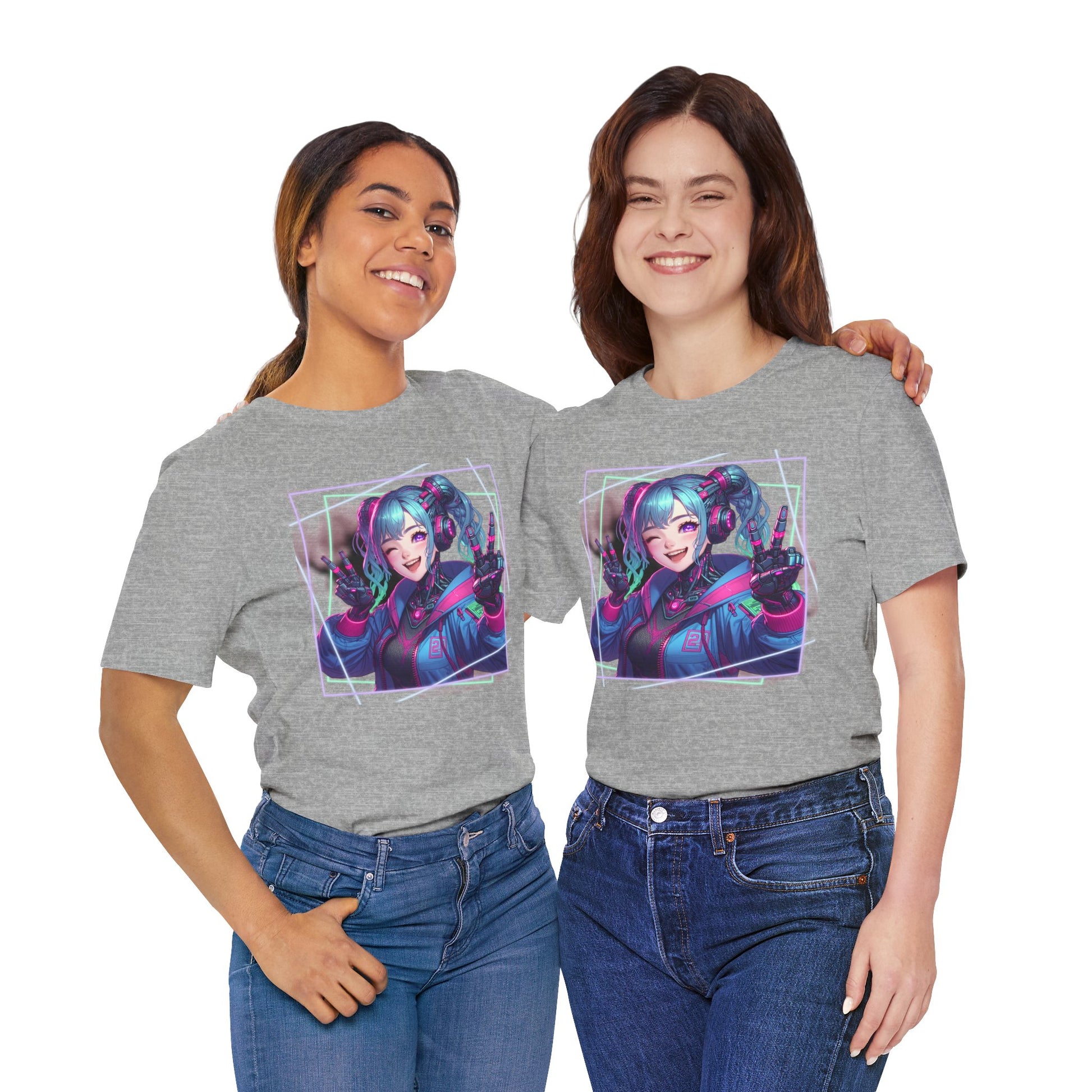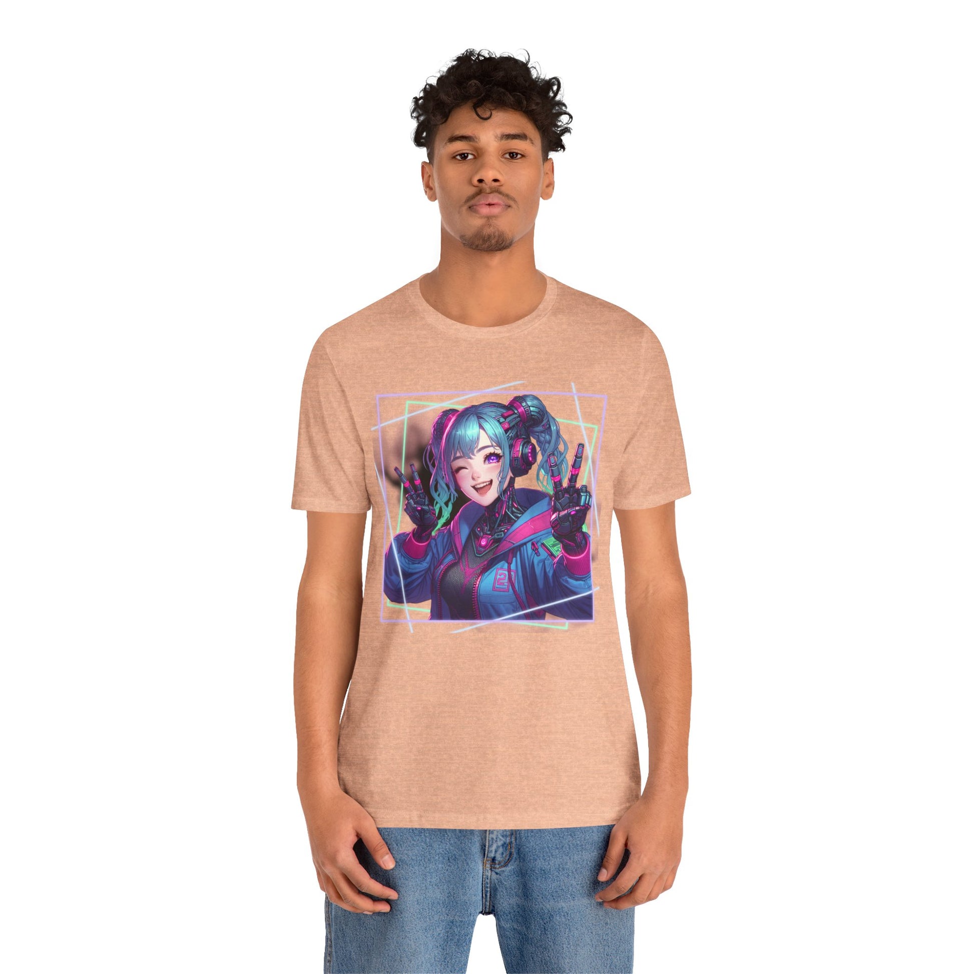 Anime Cyberpunk Girl Graphic Tee - Vibrant Kawaii Gamer T-Shirt