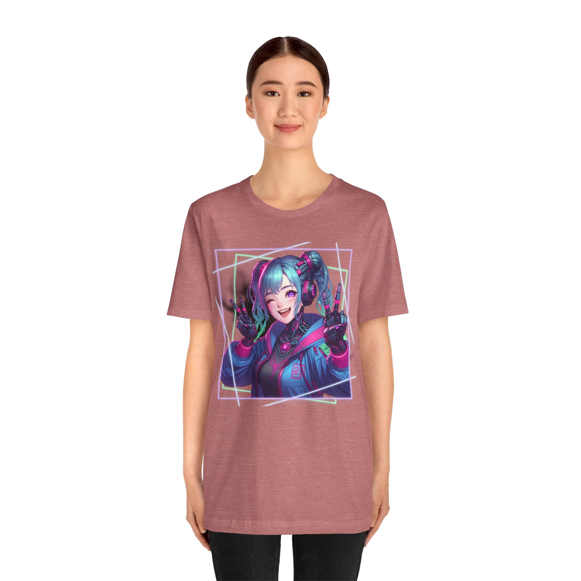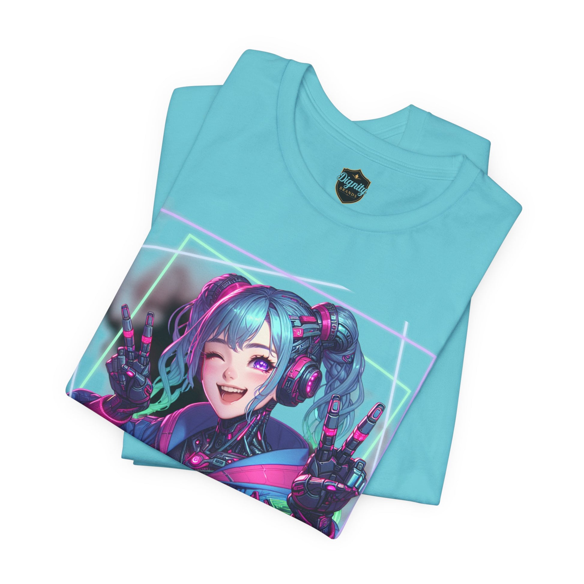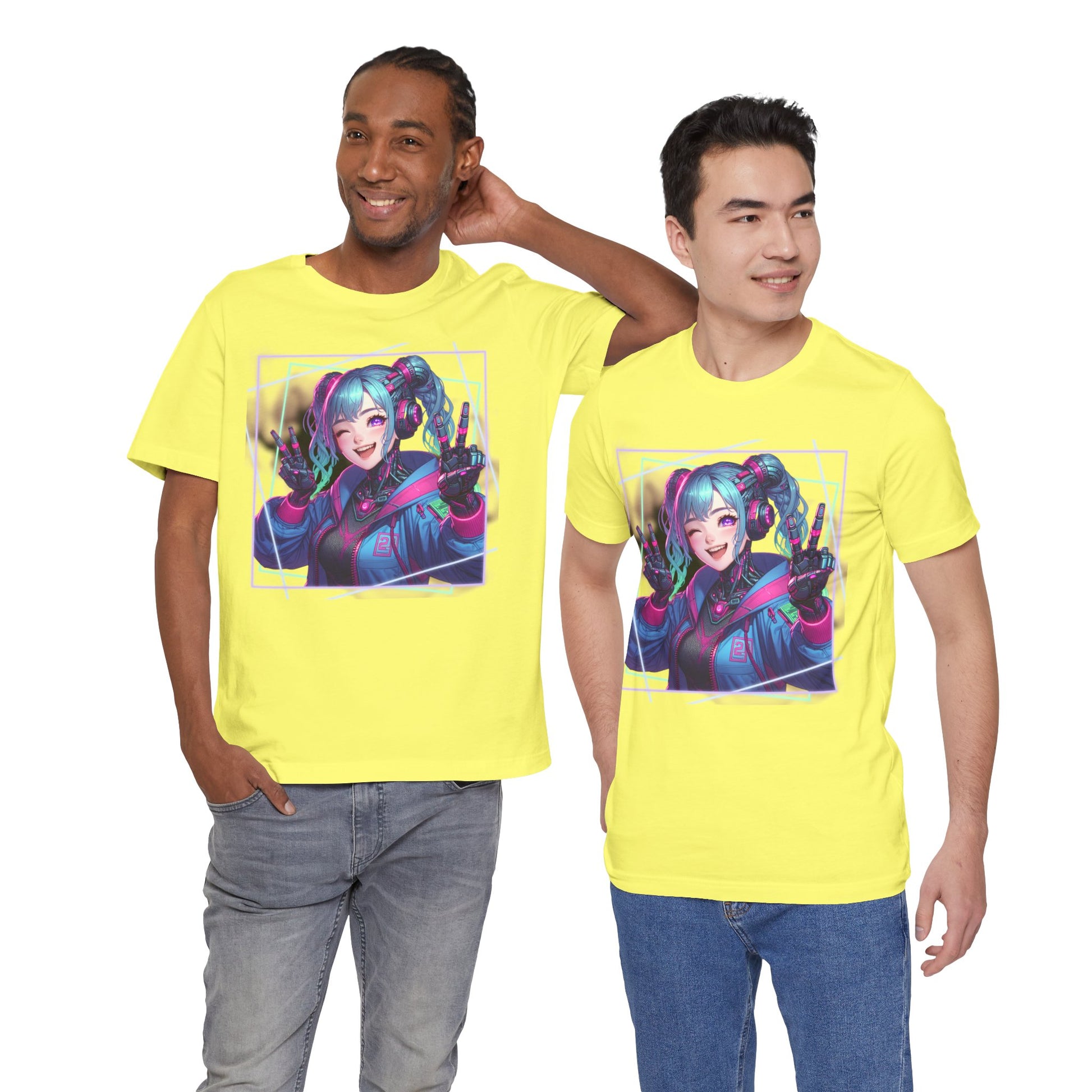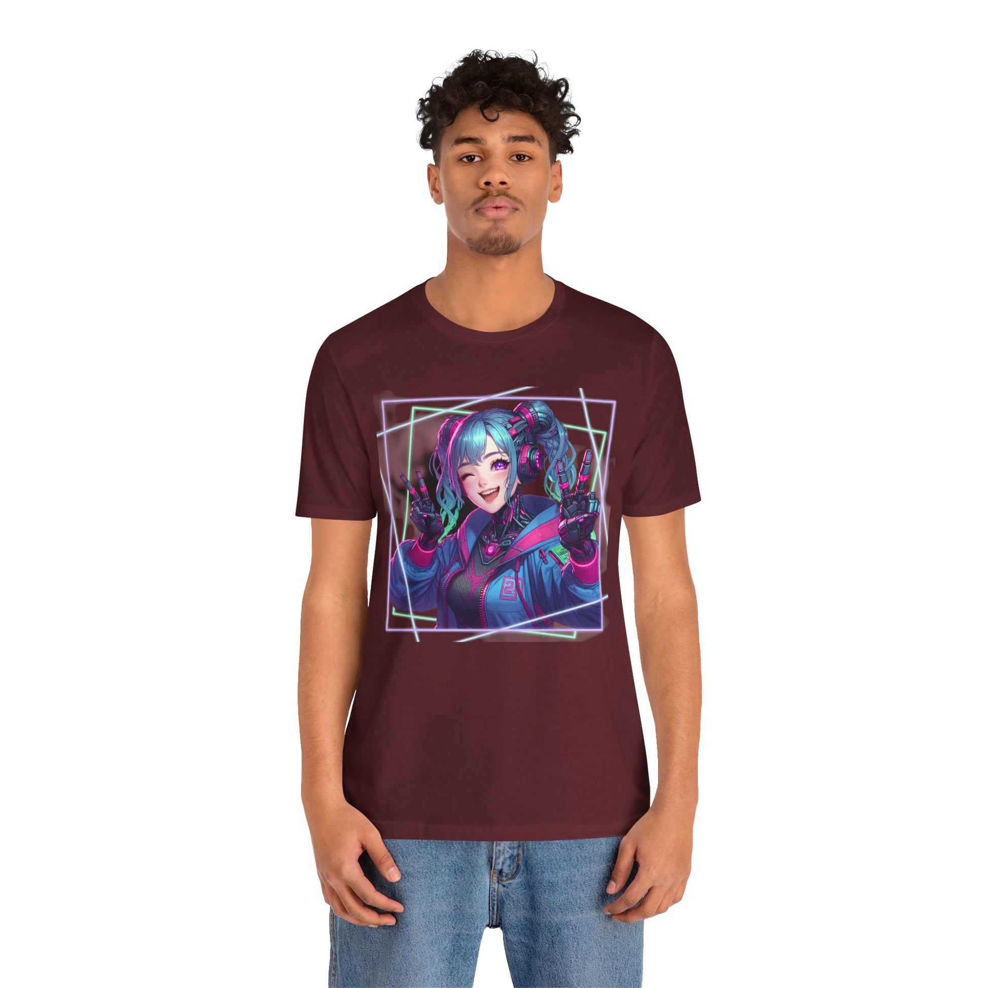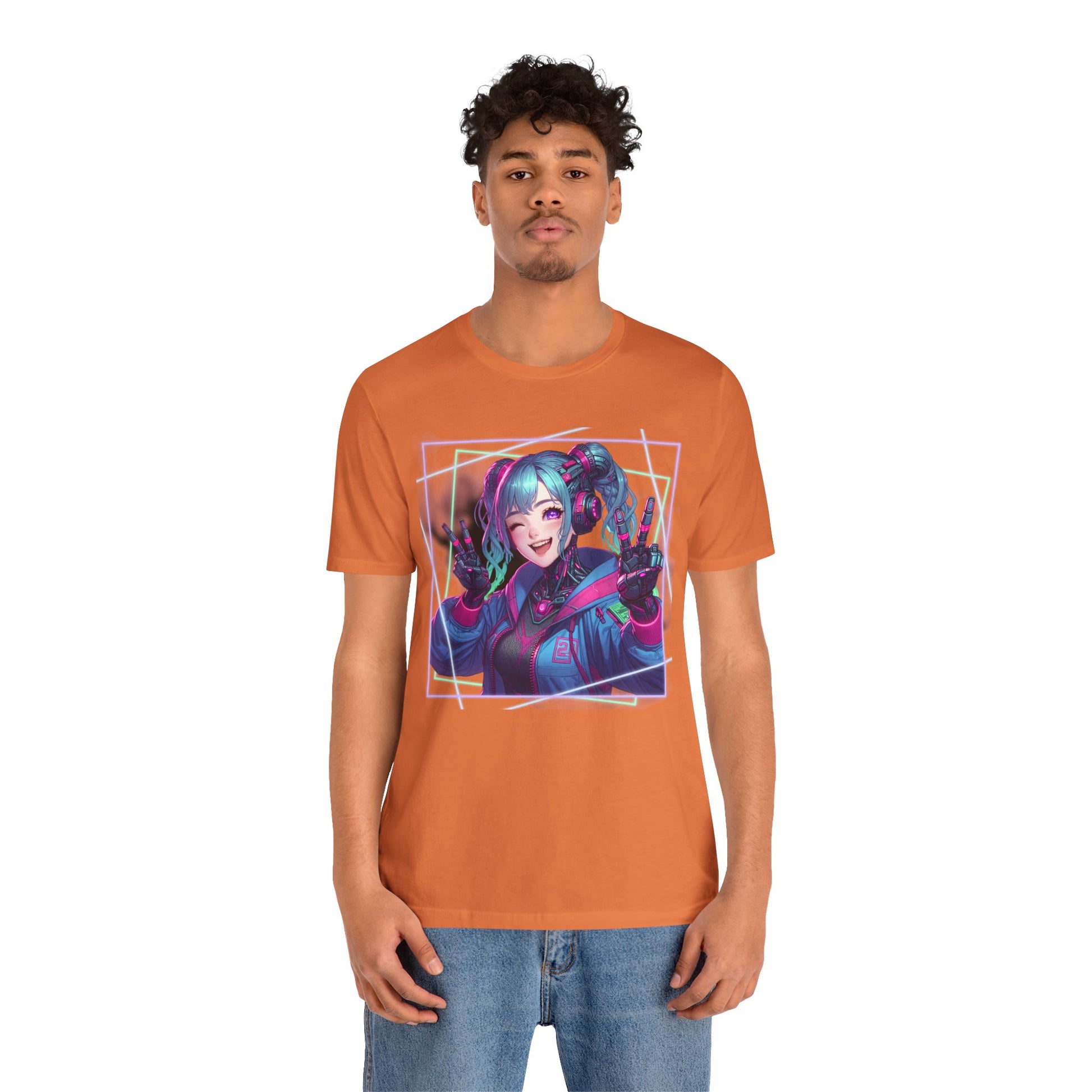 Anime Cyberpunk Girl Graphic Tee - Vibrant Kawaii Gamer T-Shirt