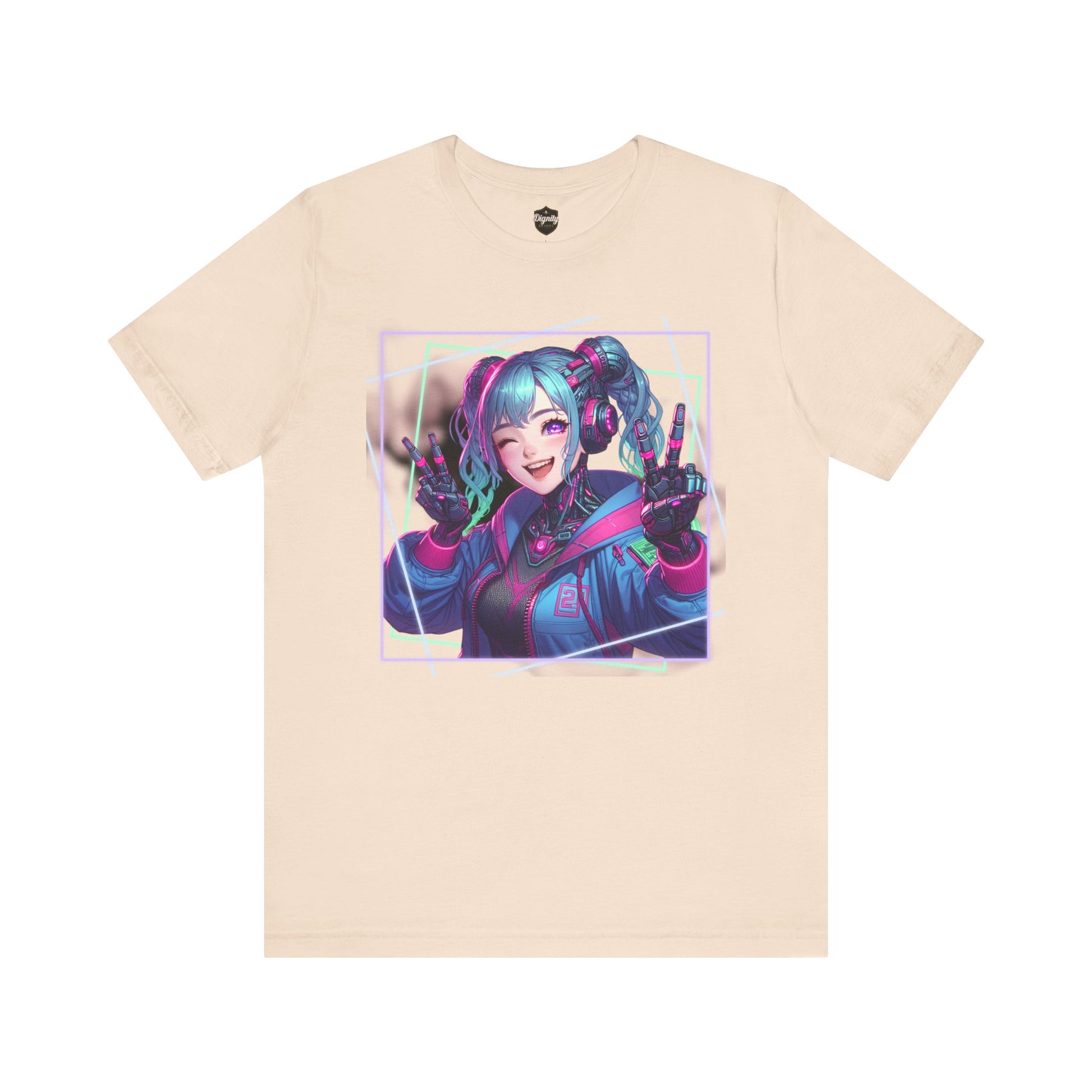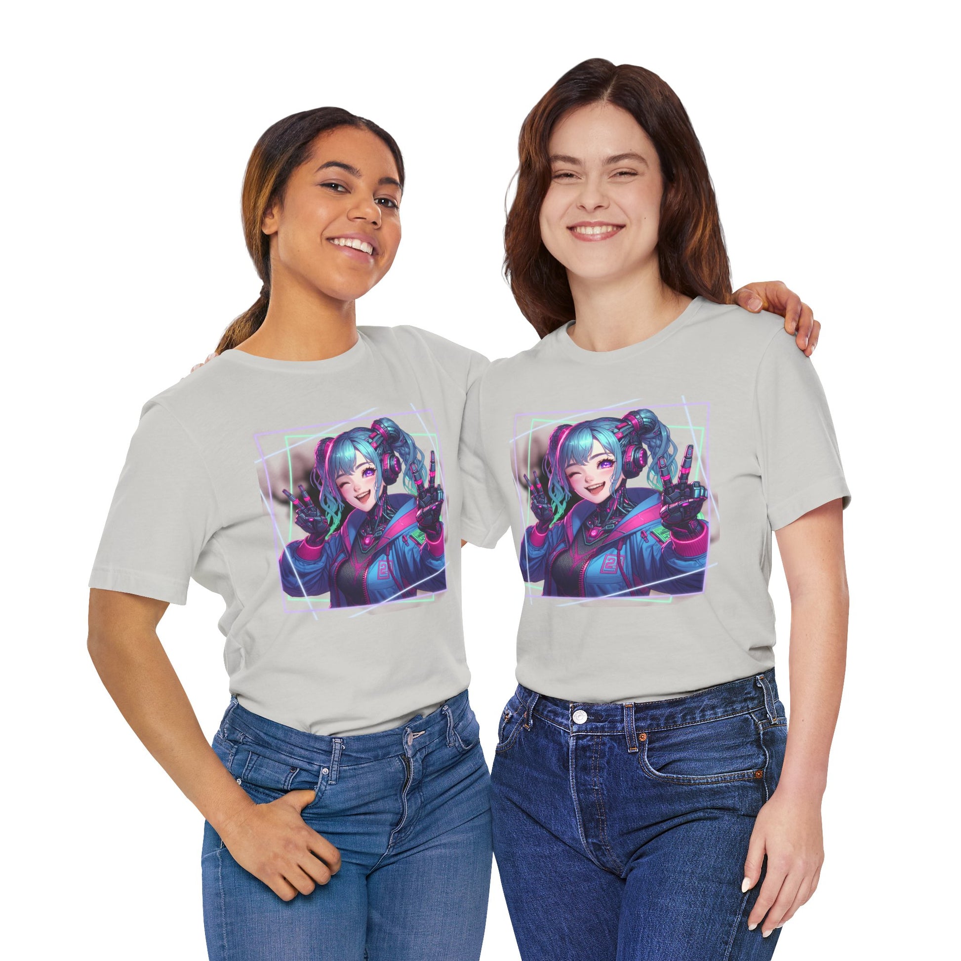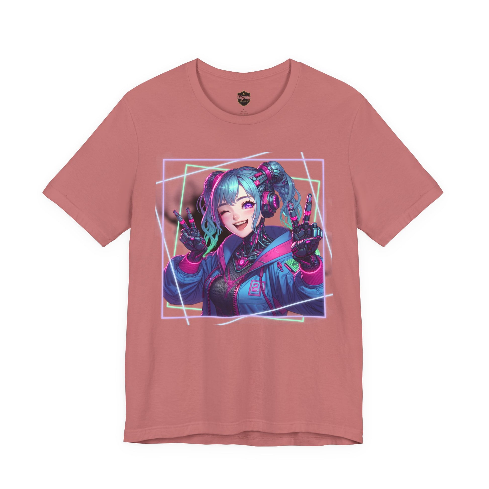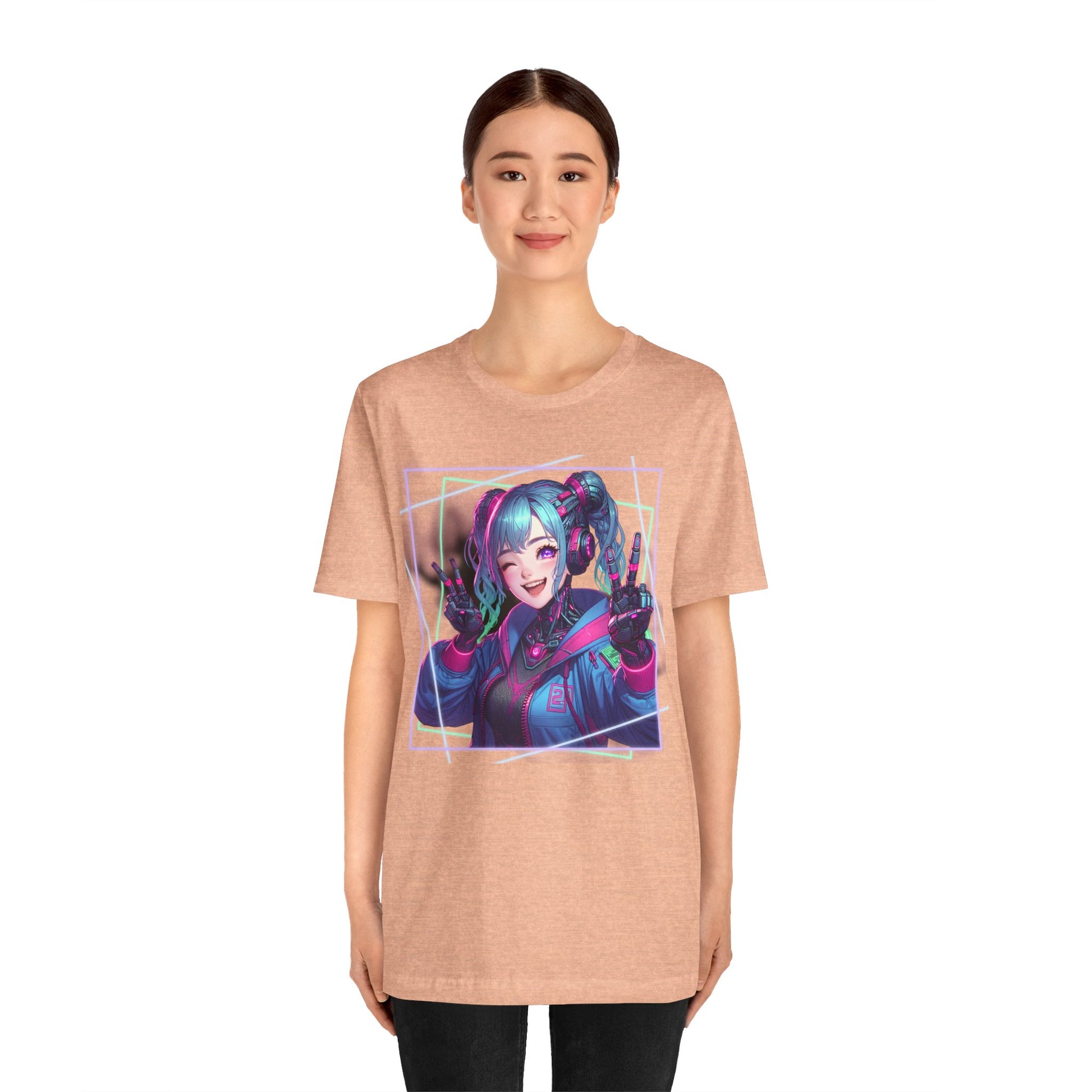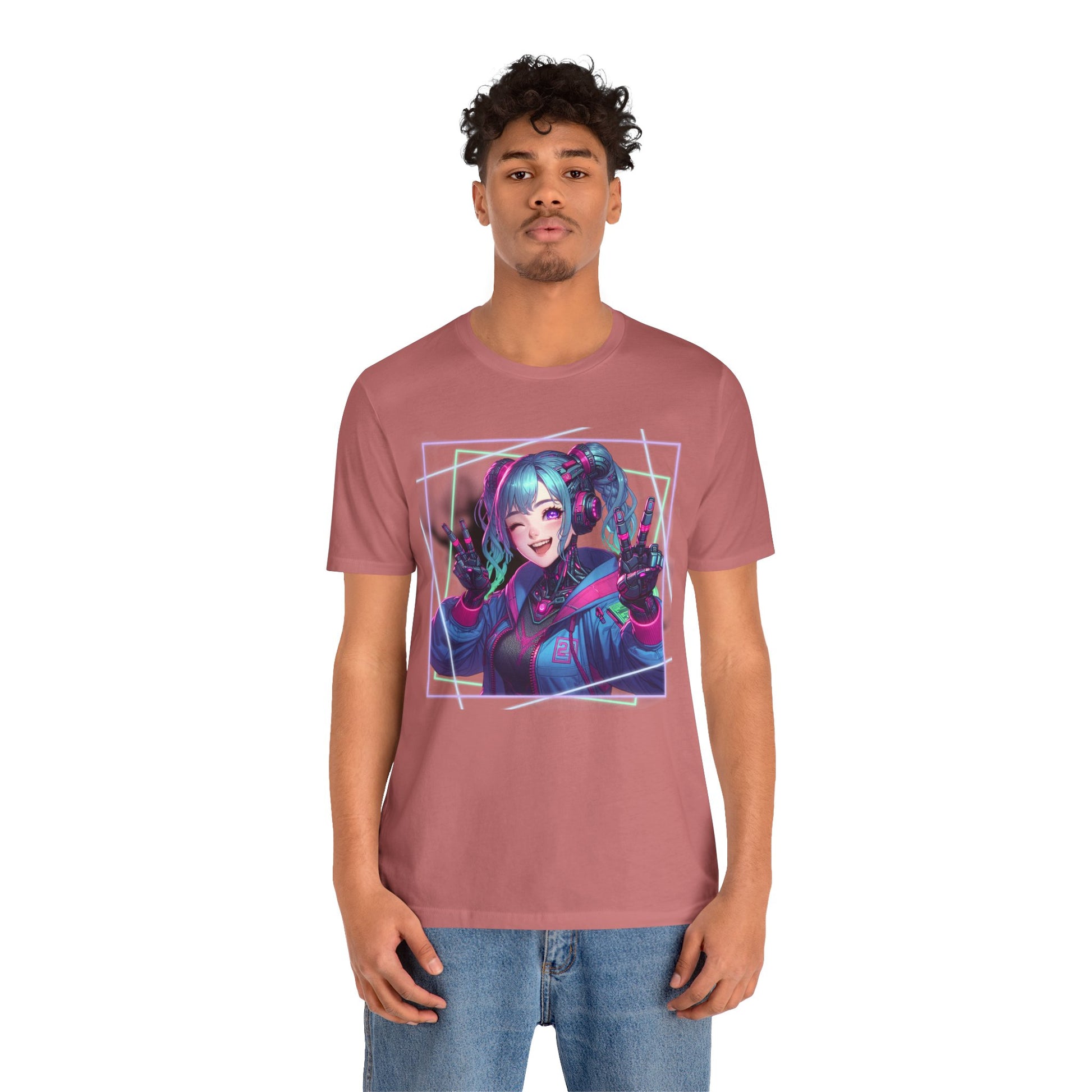 Anime Cyberpunk Girl Graphic Tee - Vibrant Kawaii Gamer T-Shirt