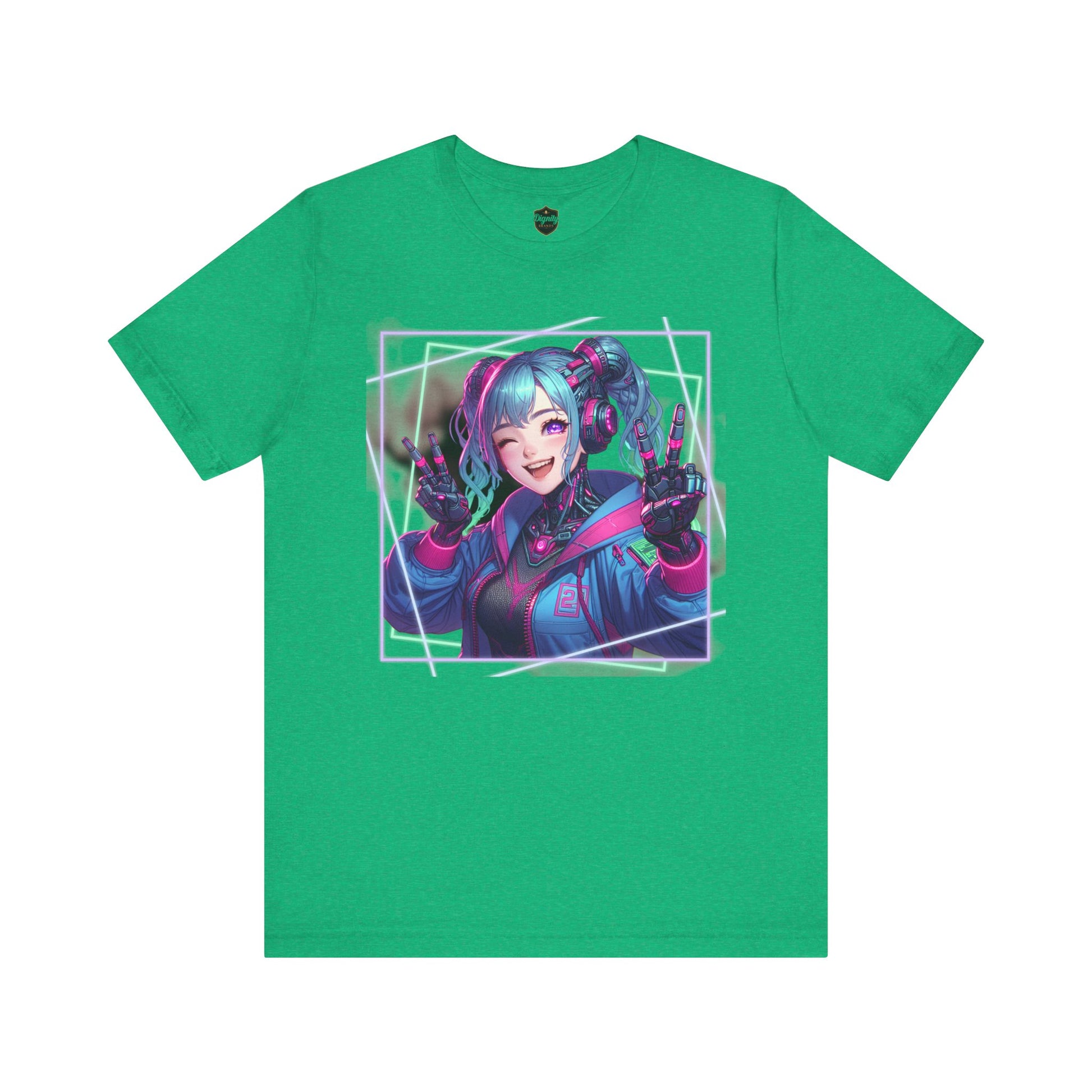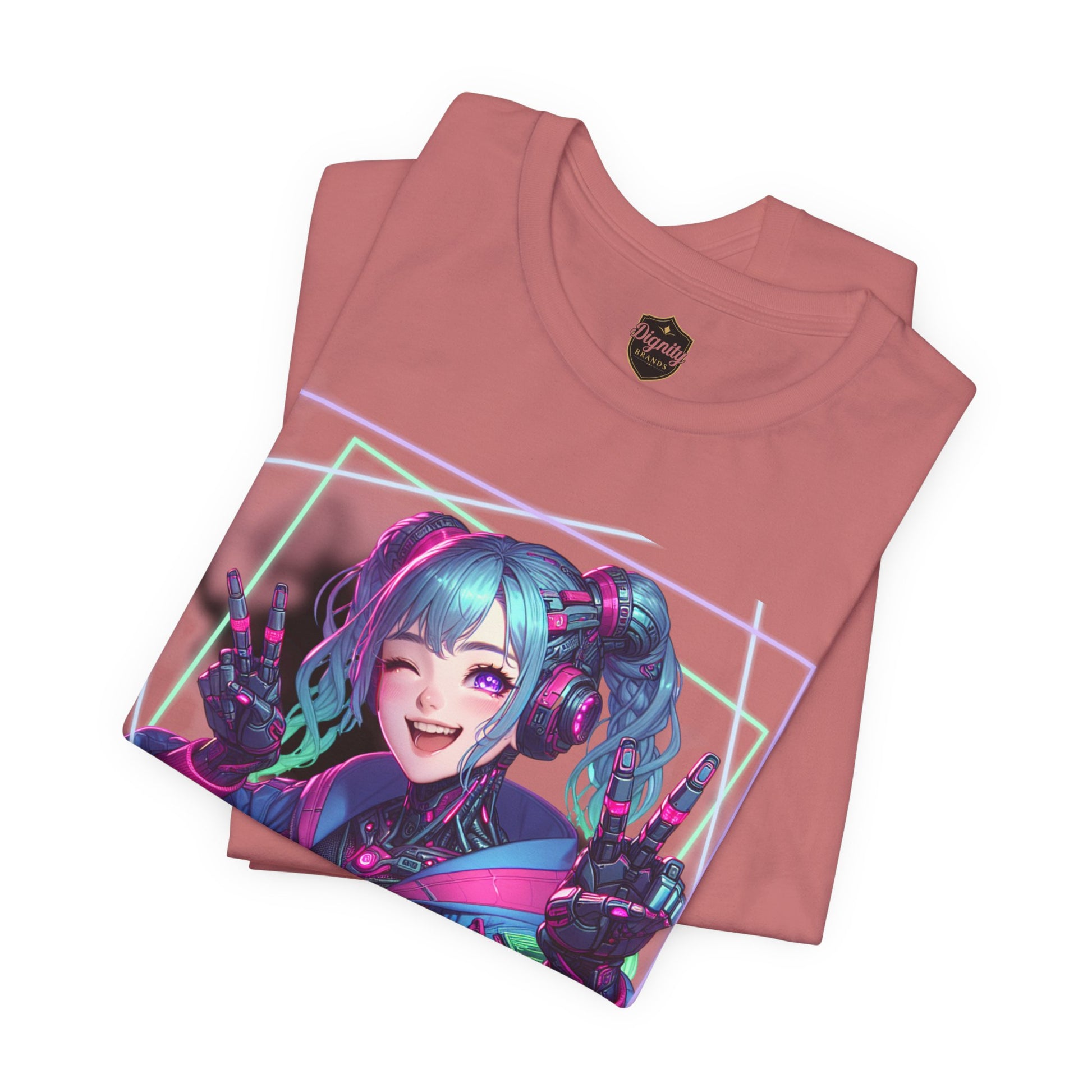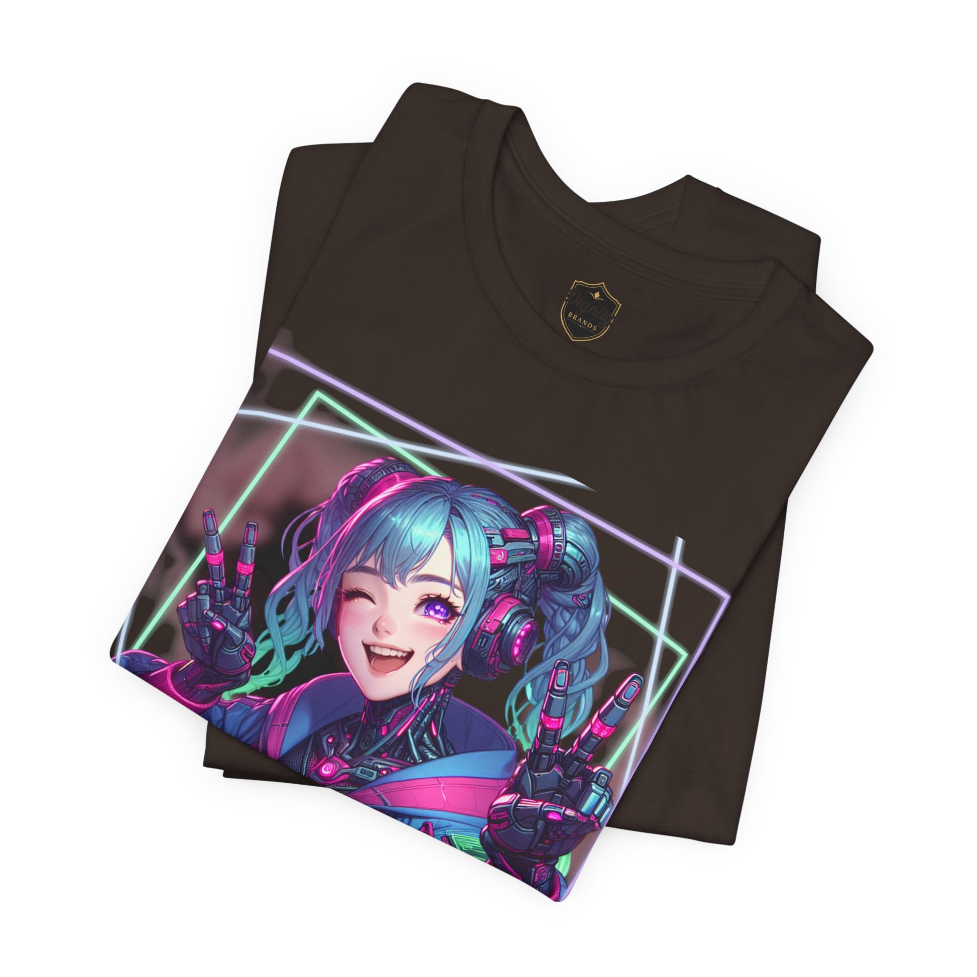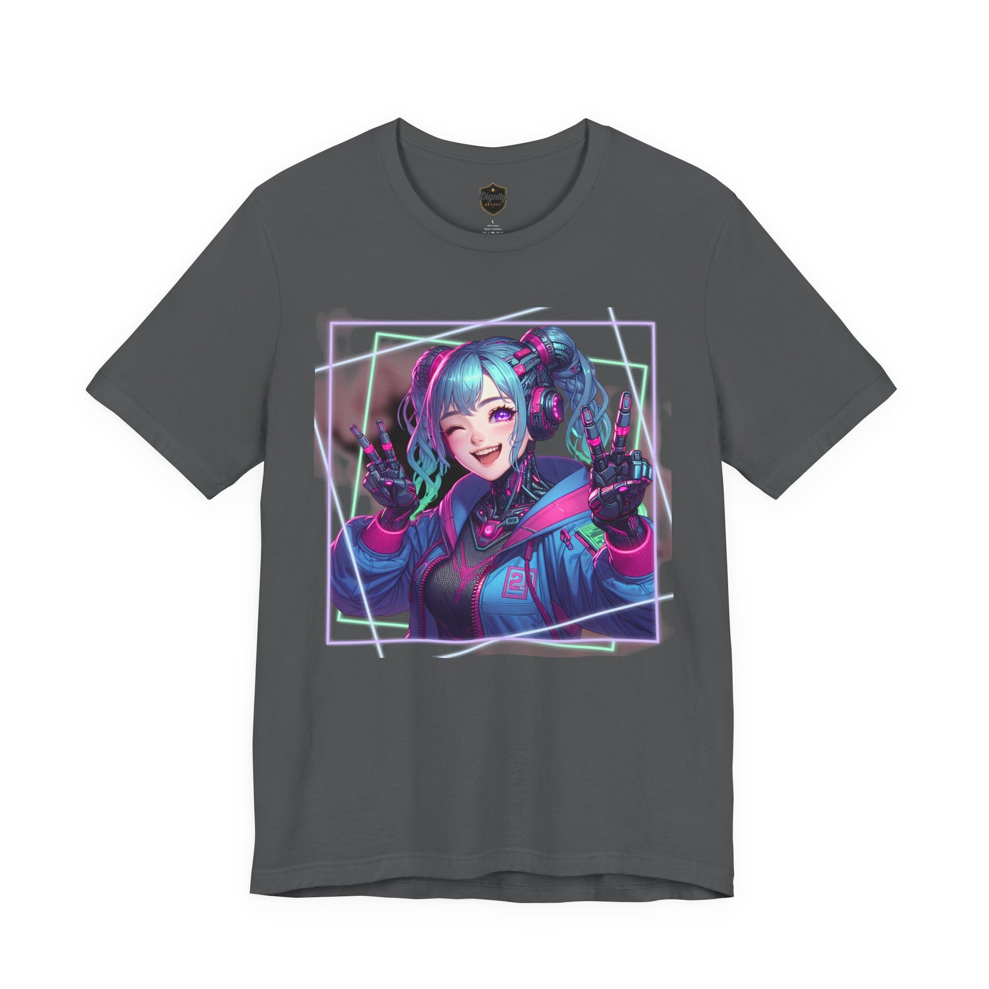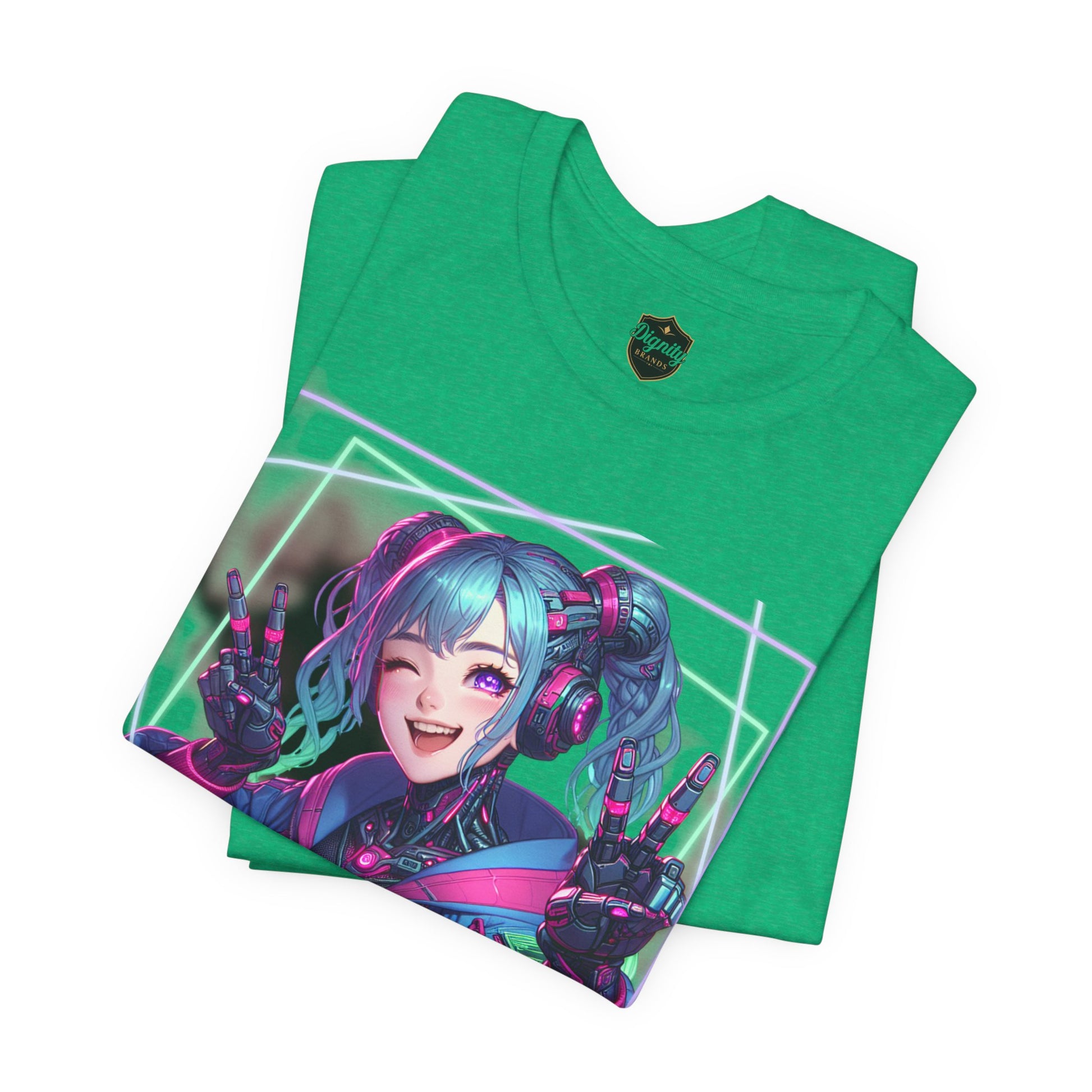 Anime Cyberpunk Girl Graphic Tee - Vibrant Kawaii Gamer T-Shirt