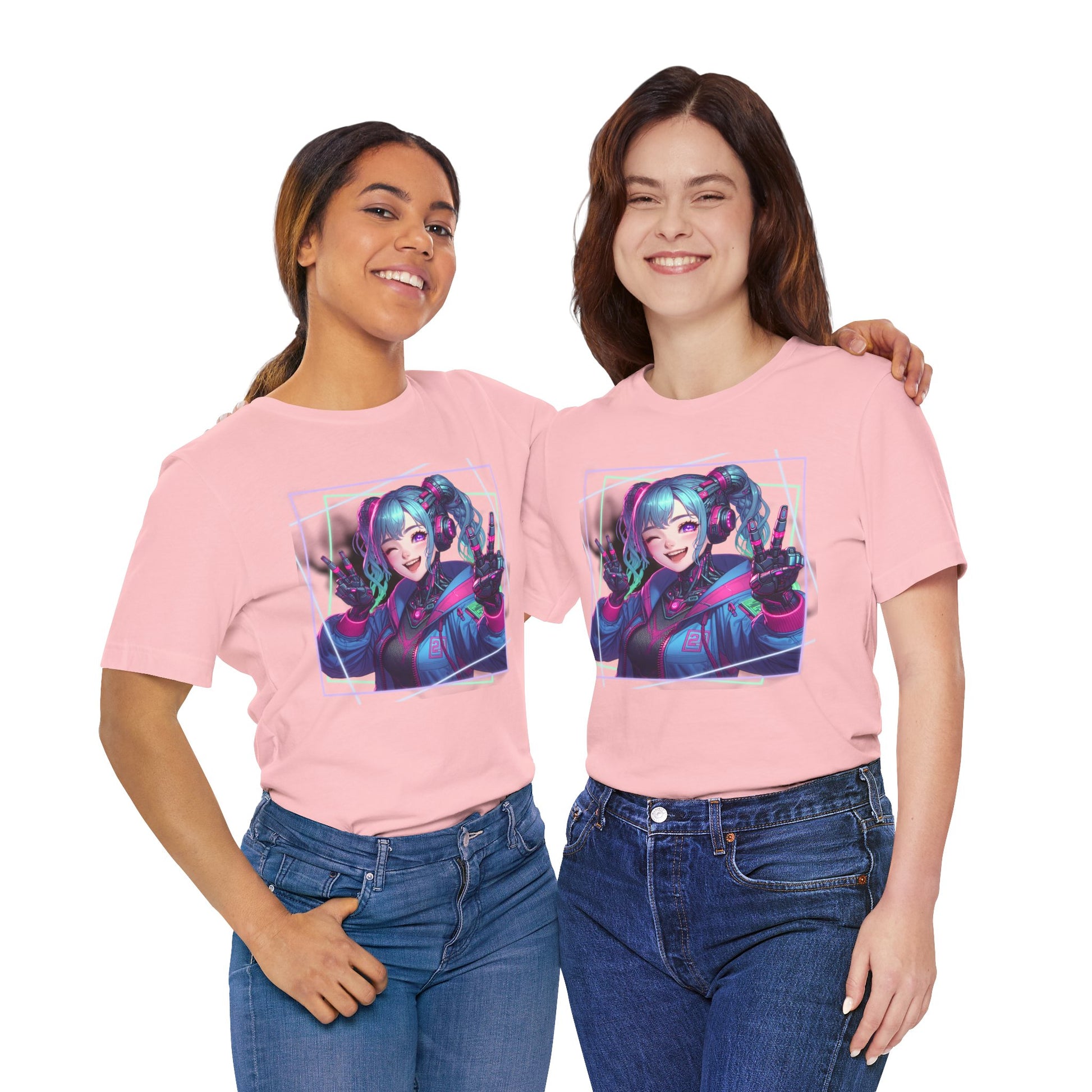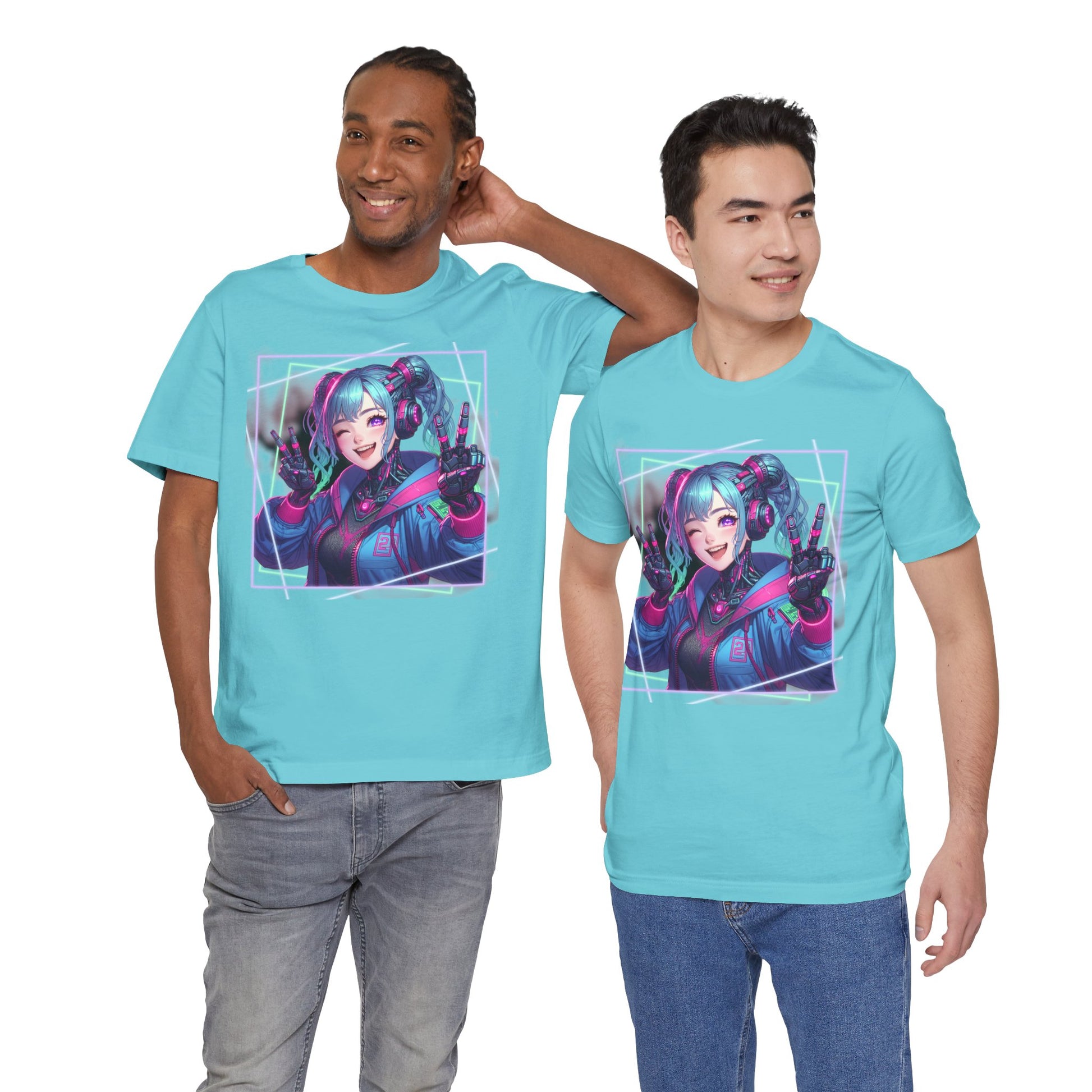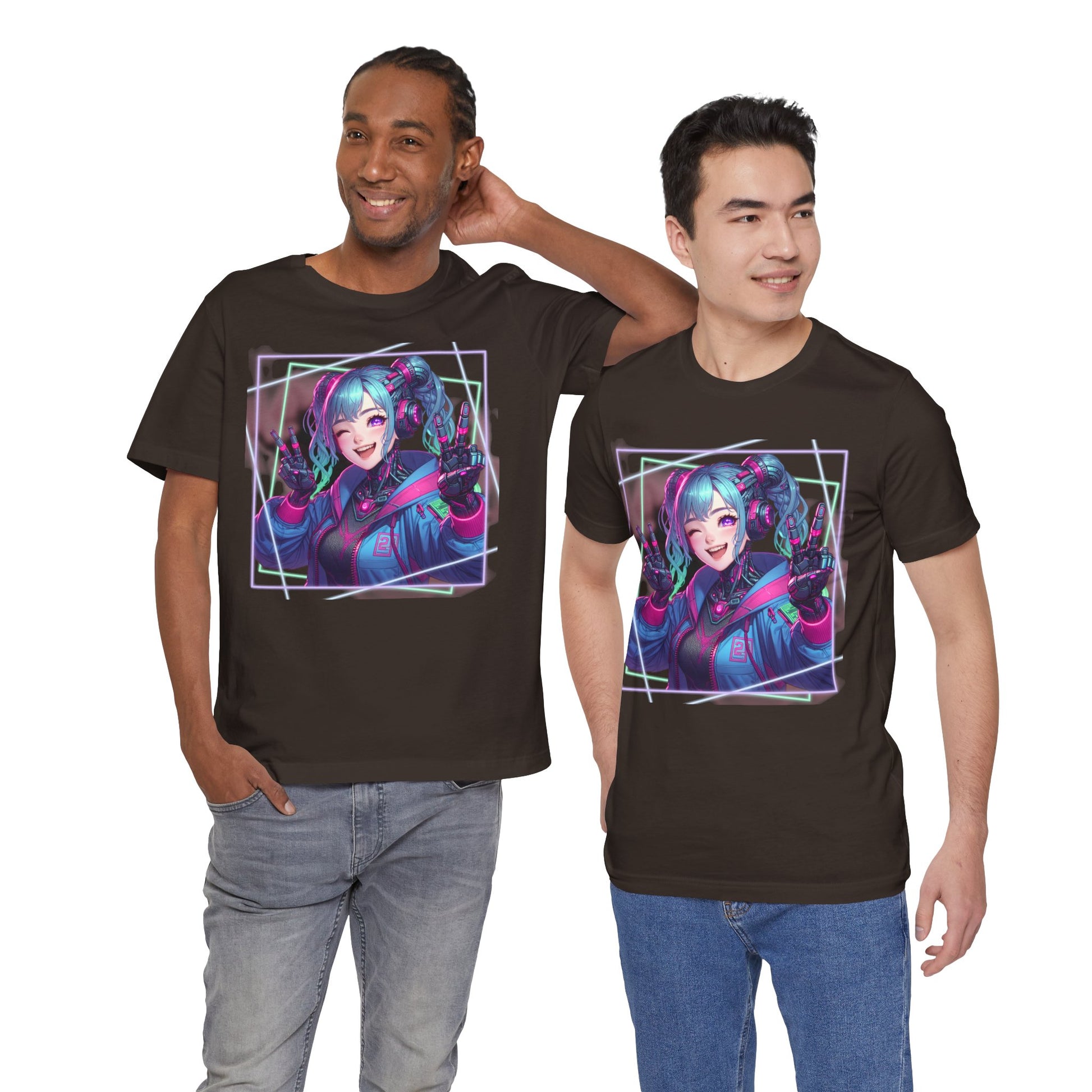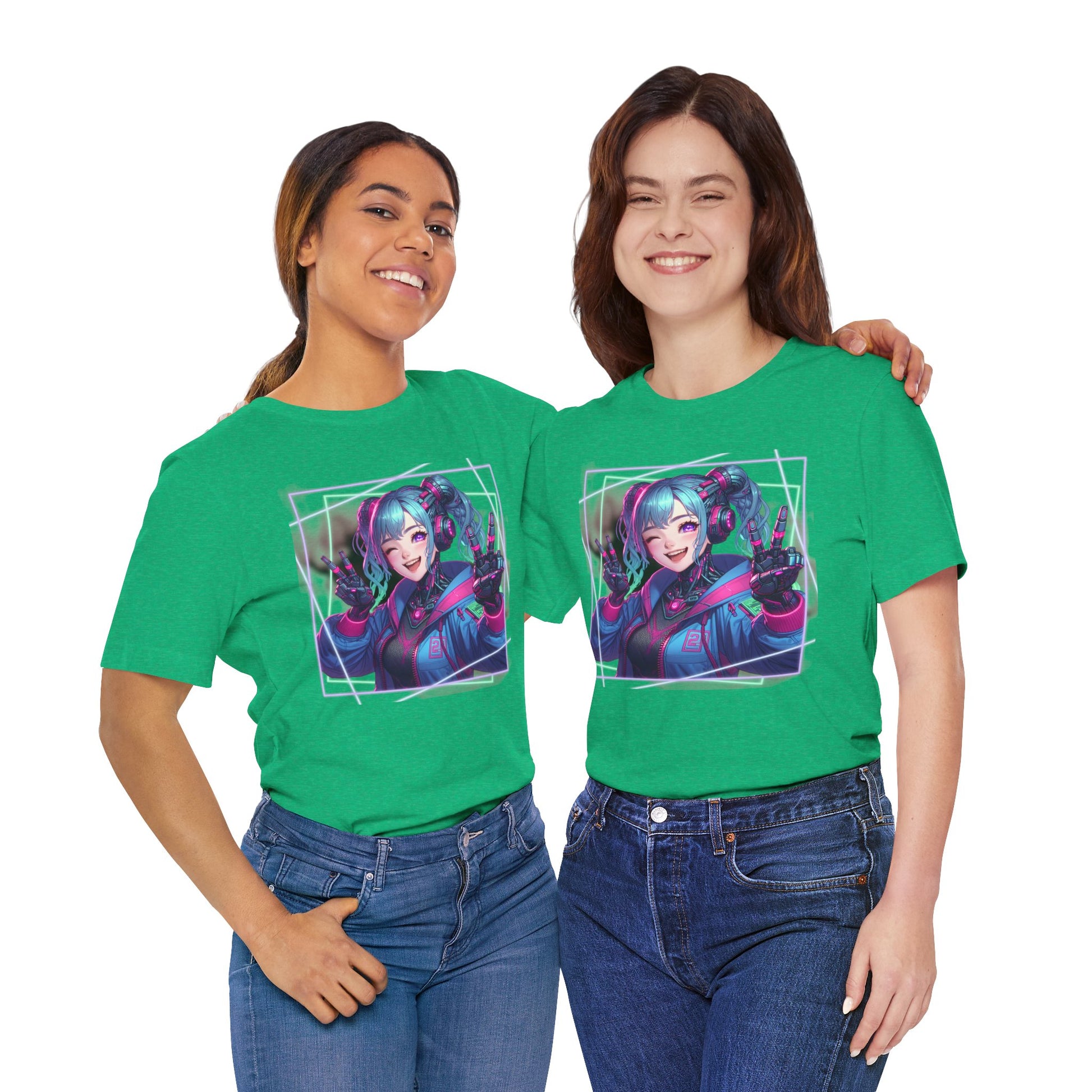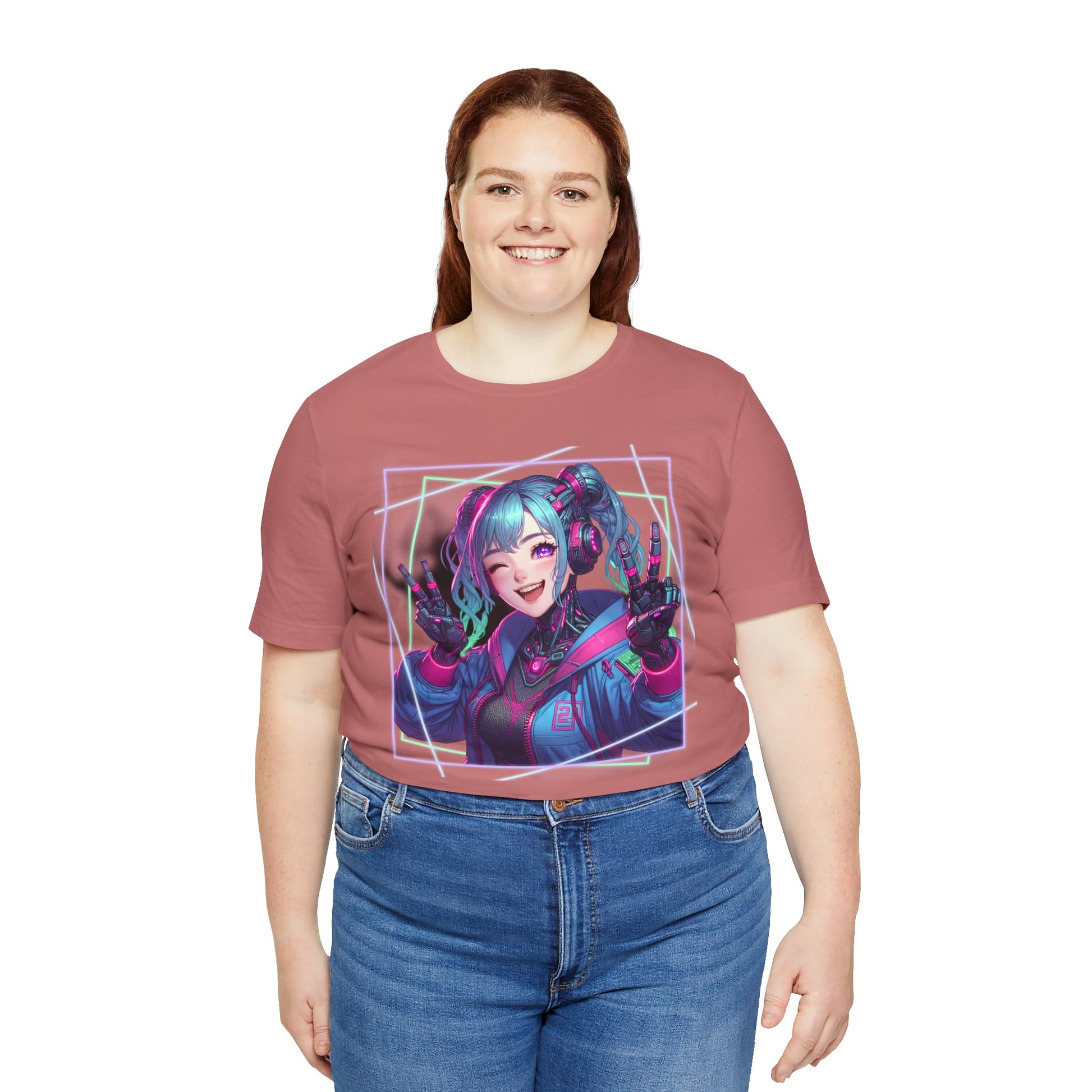 Anime Cyberpunk Girl Graphic Tee - Vibrant Kawaii Gamer T-Shirt