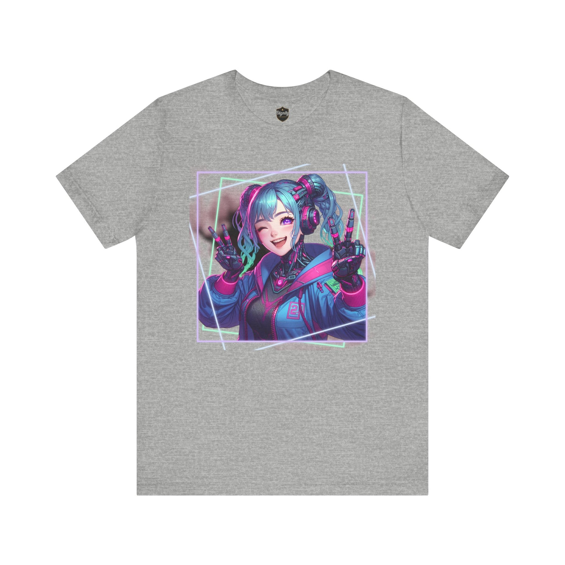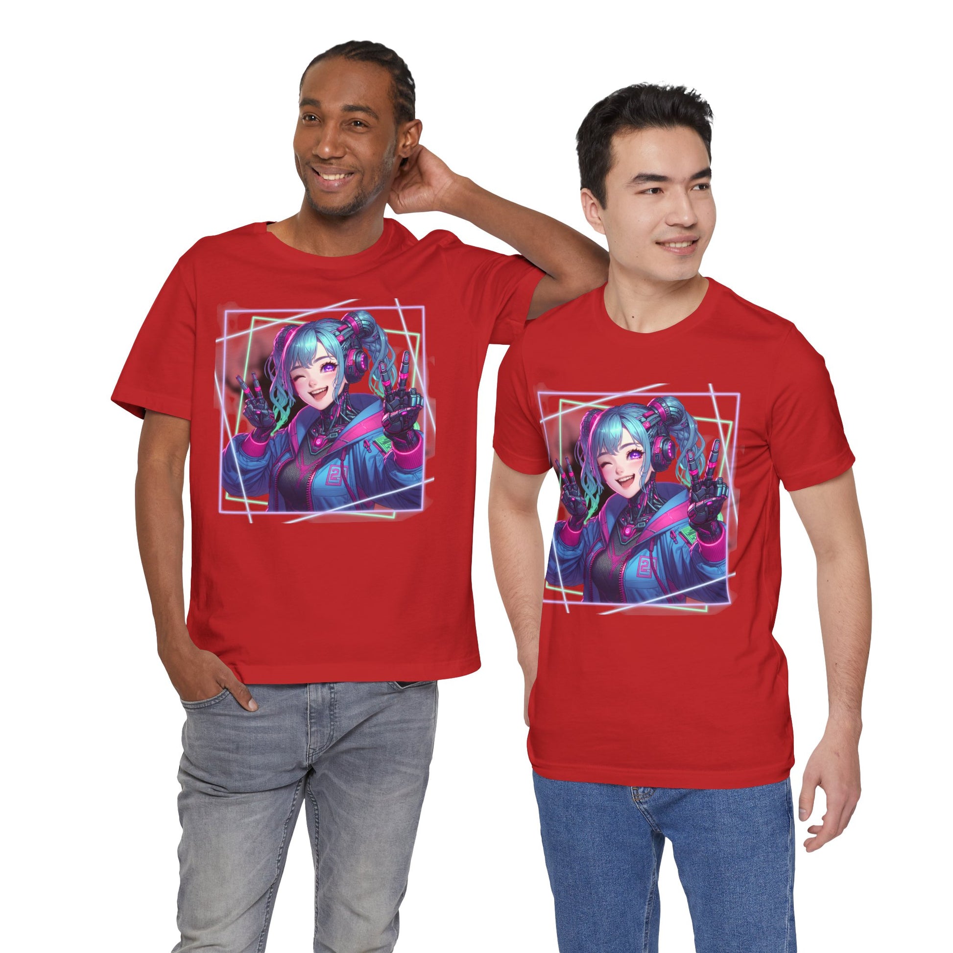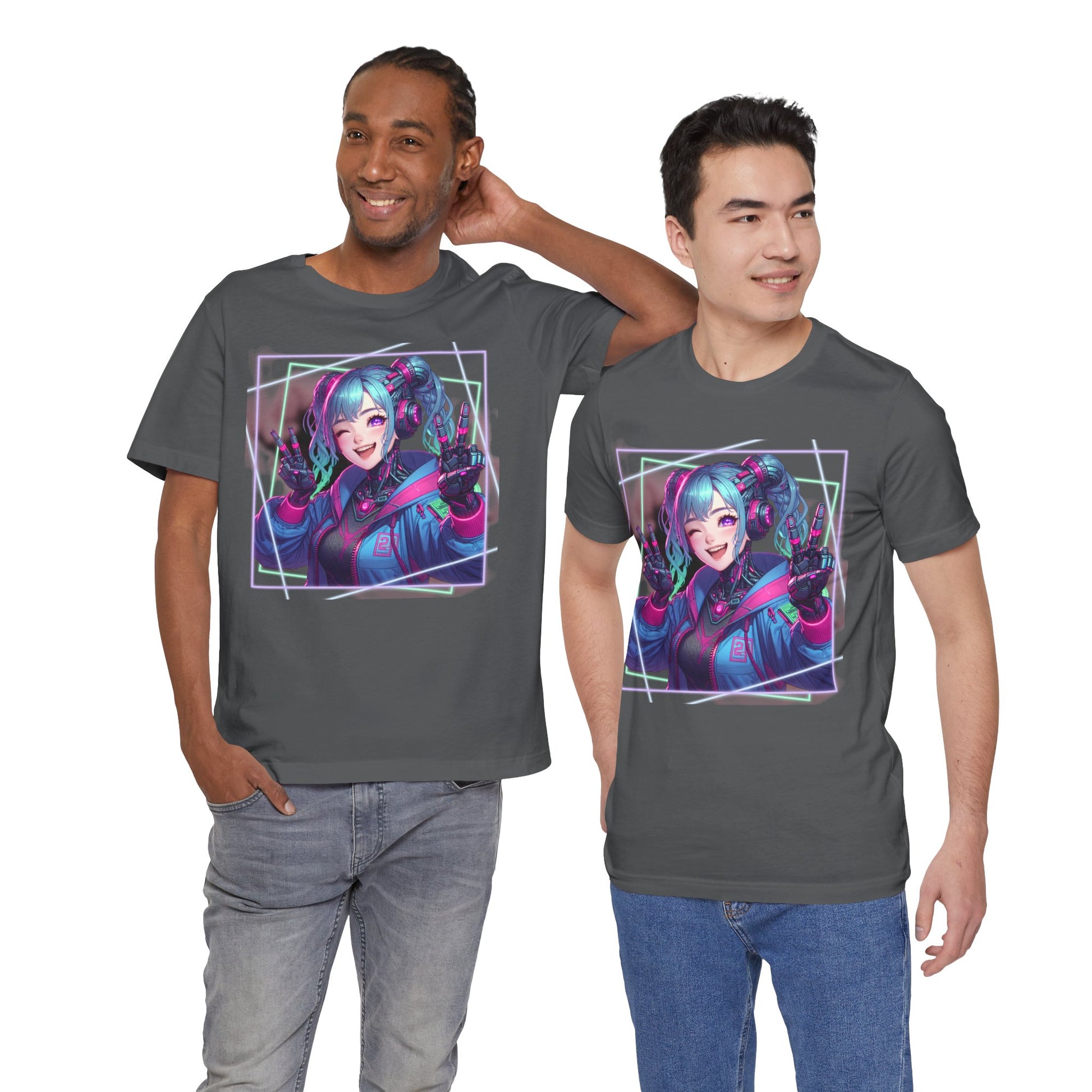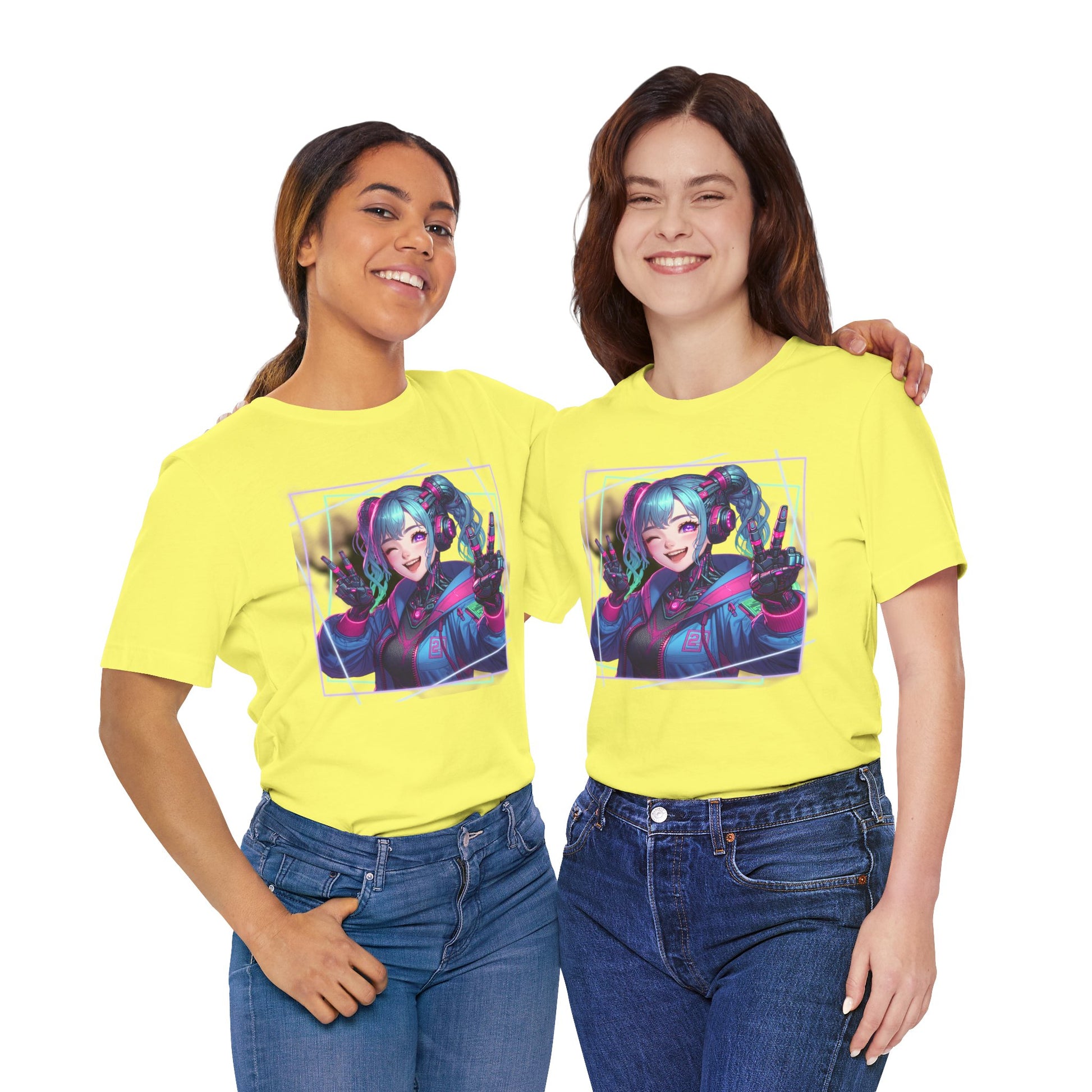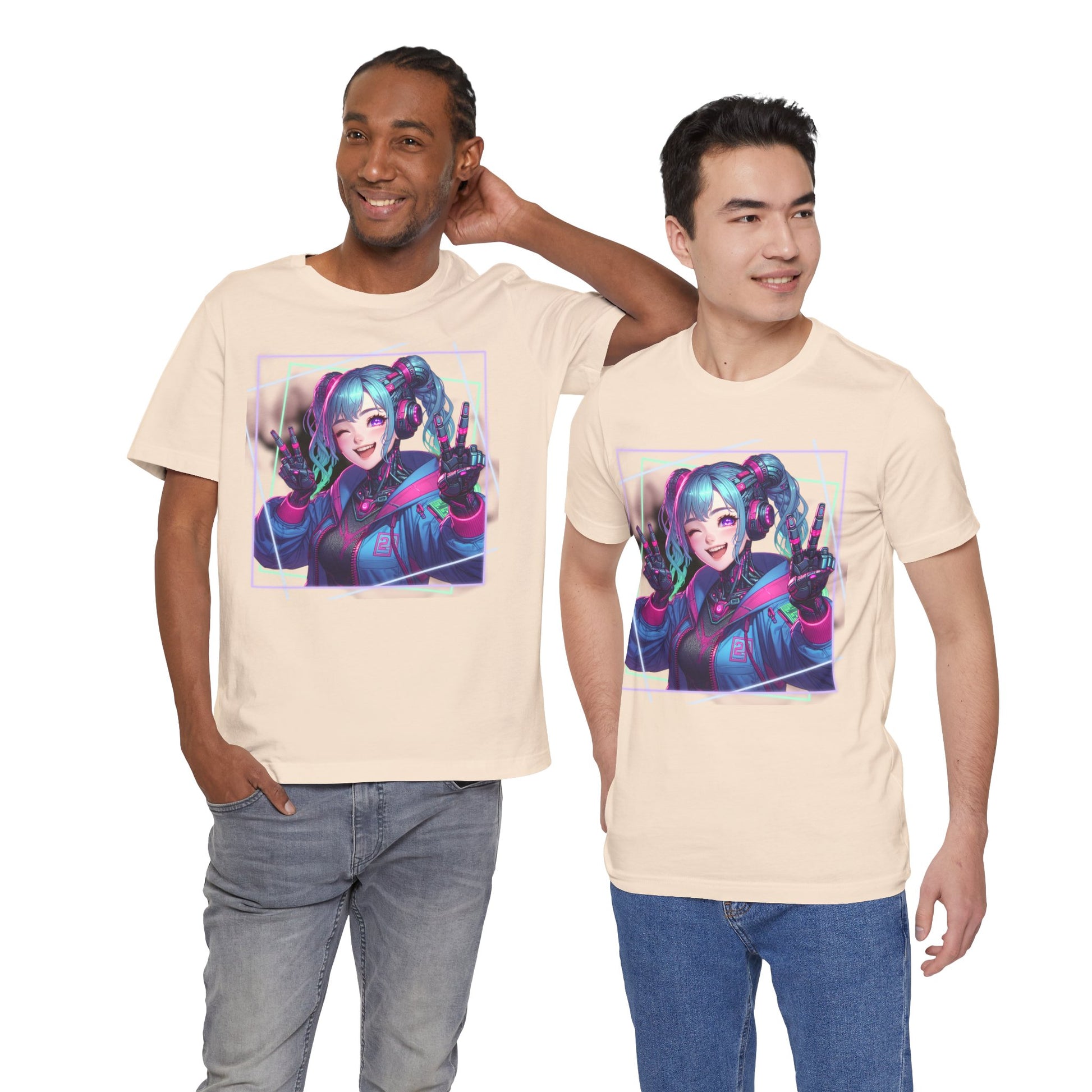 Anime Cyberpunk Girl Graphic Tee - Vibrant Kawaii Gamer T-Shirt