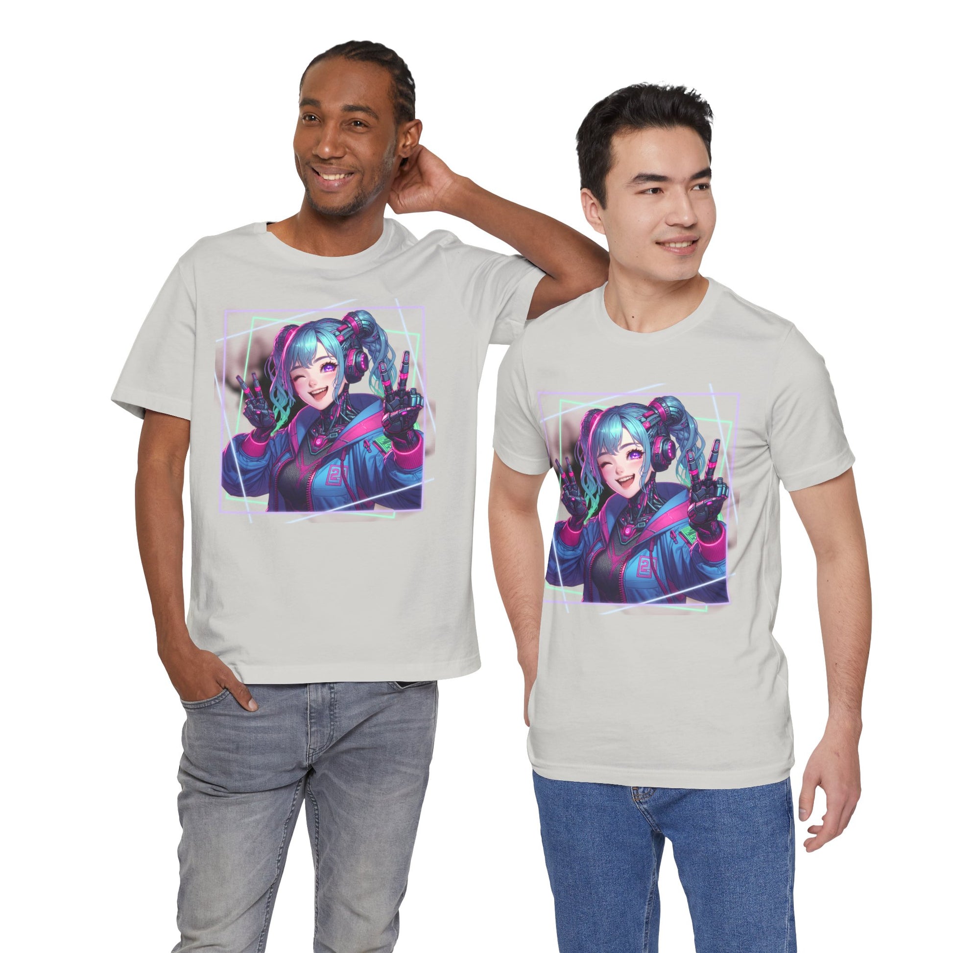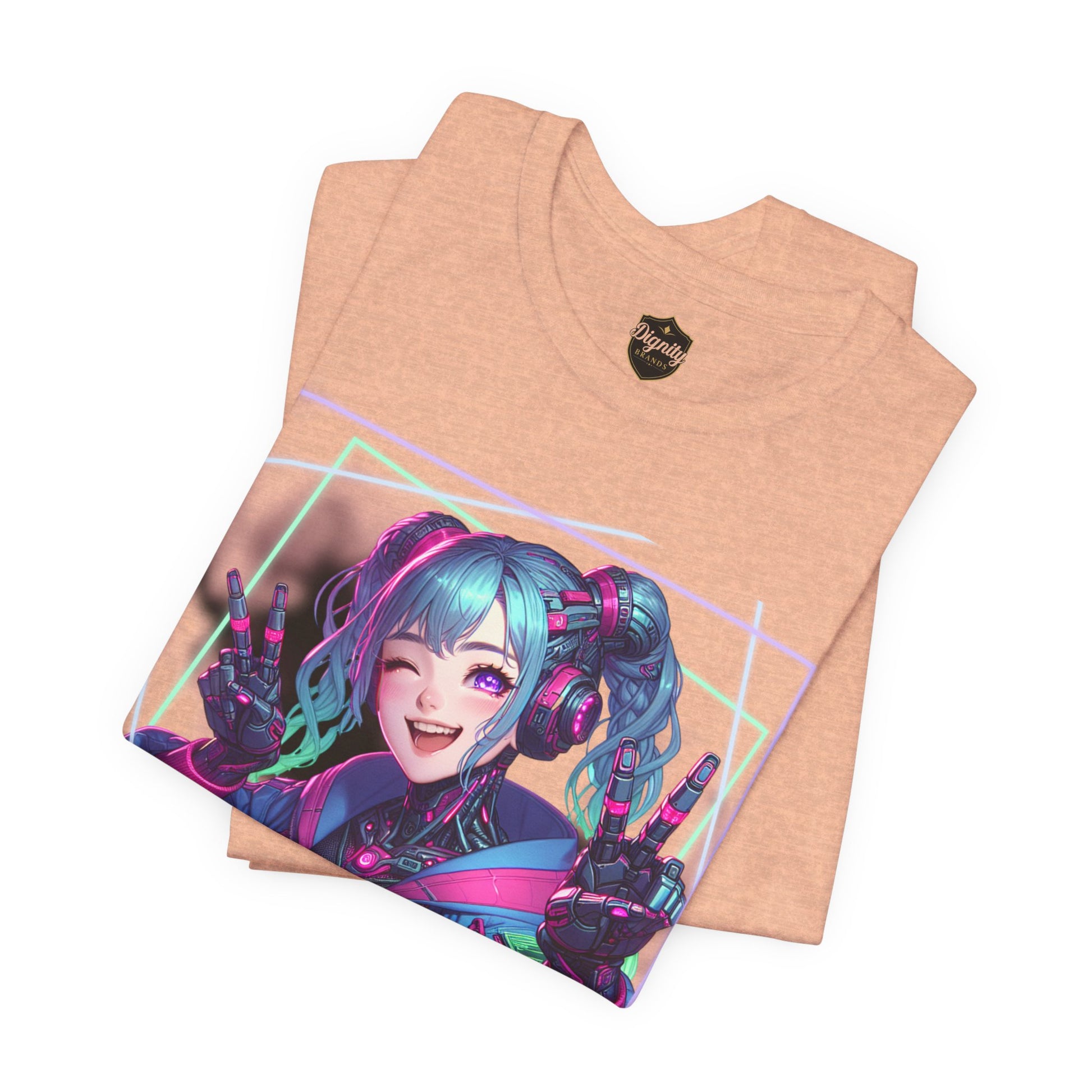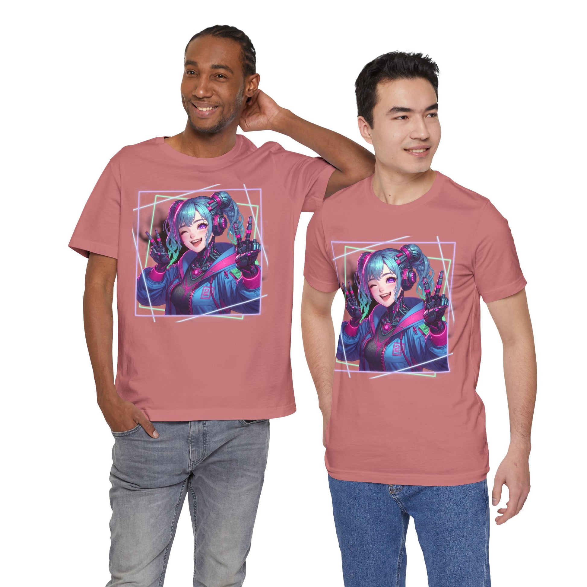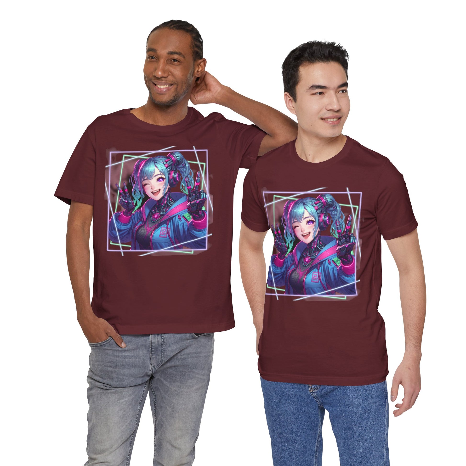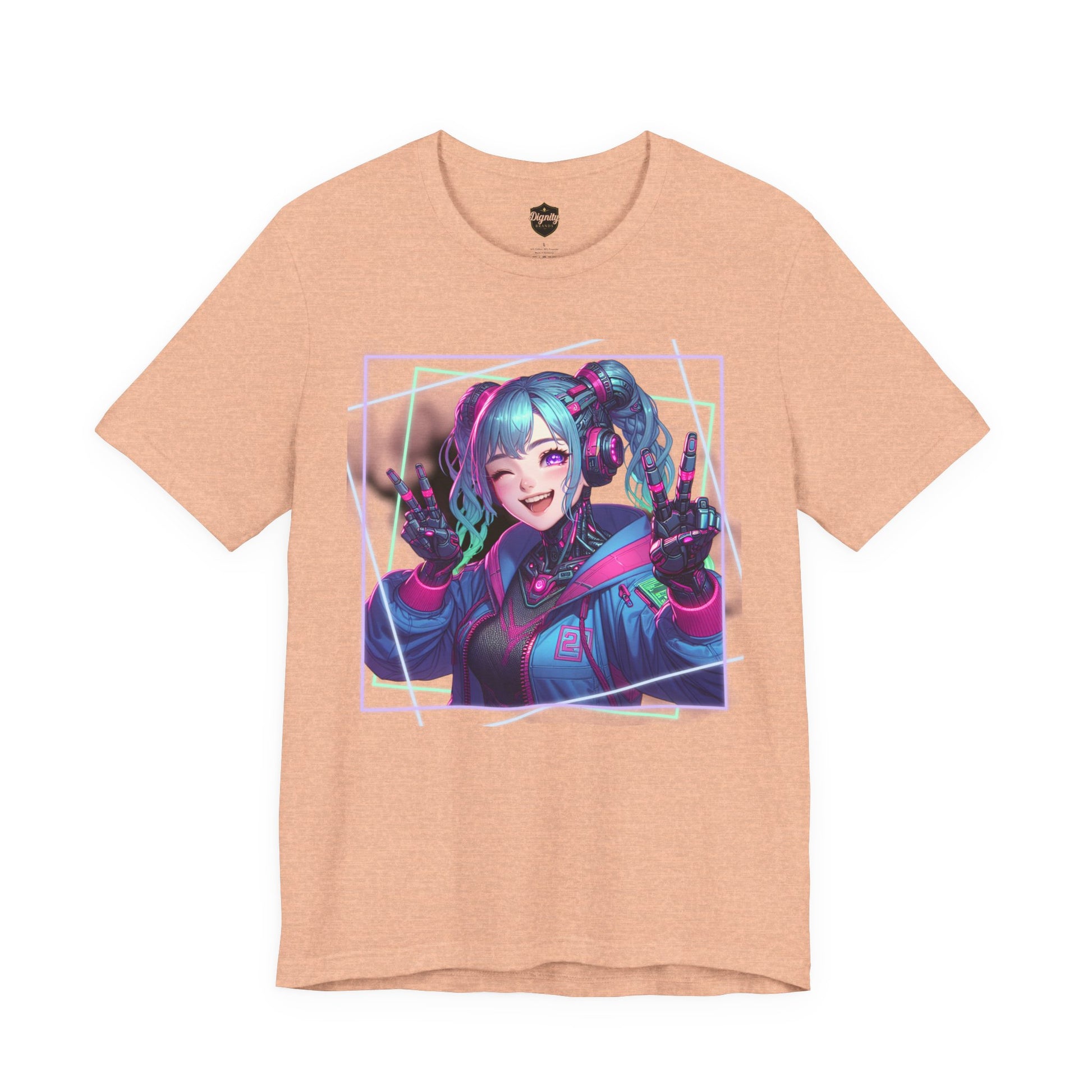 Anime Cyberpunk Girl Graphic Tee - Vibrant Kawaii Gamer T-Shirt