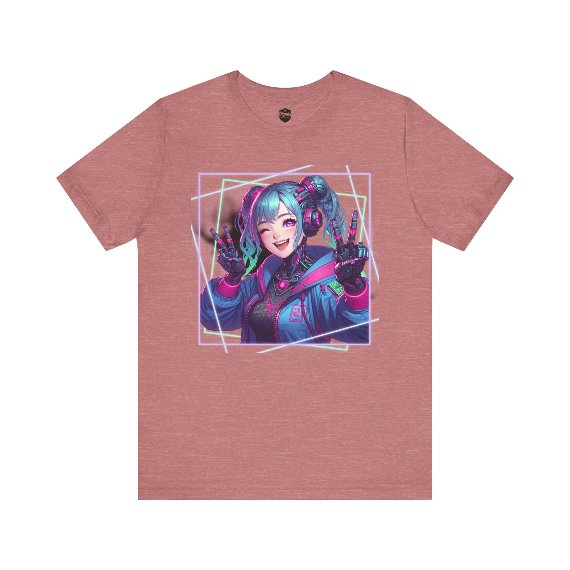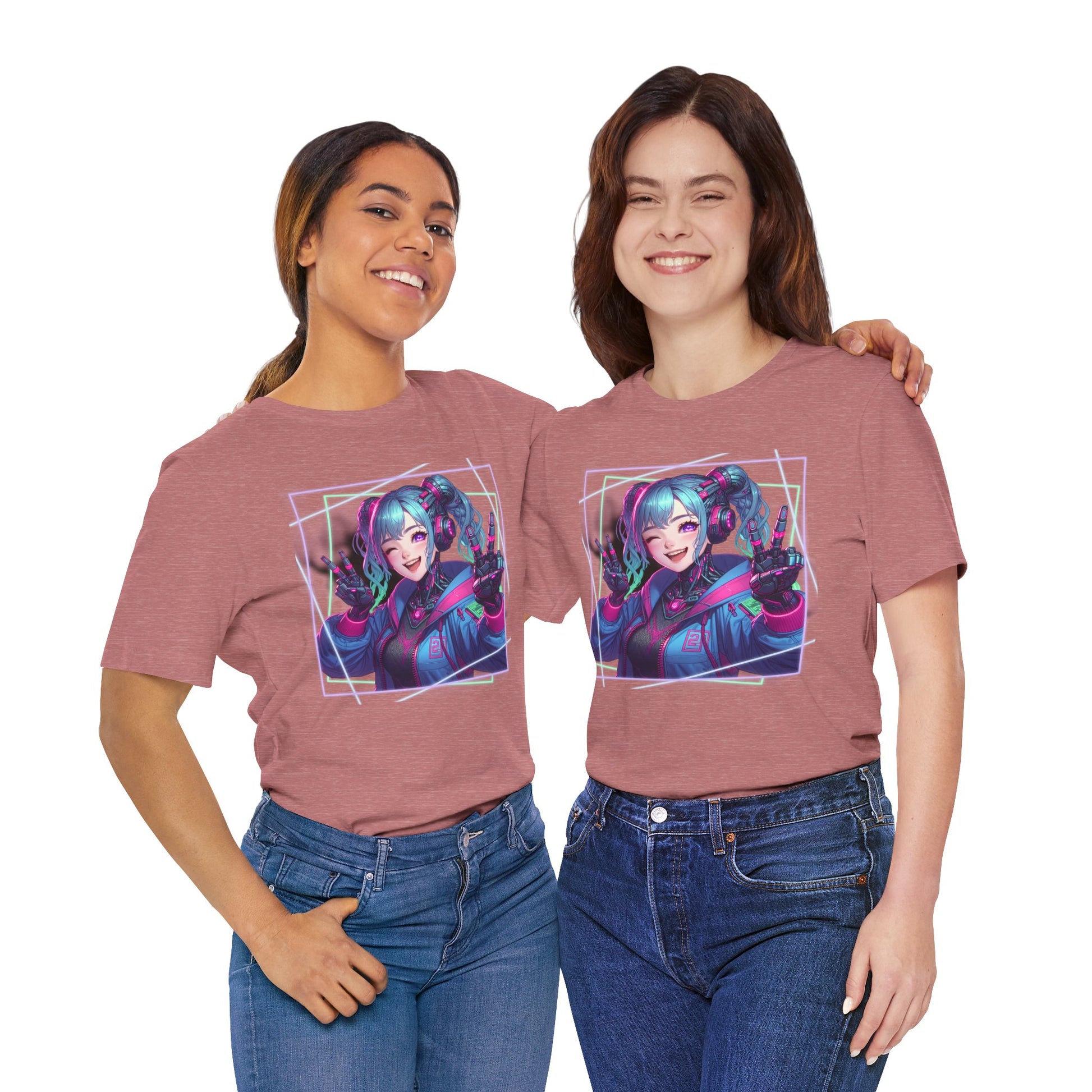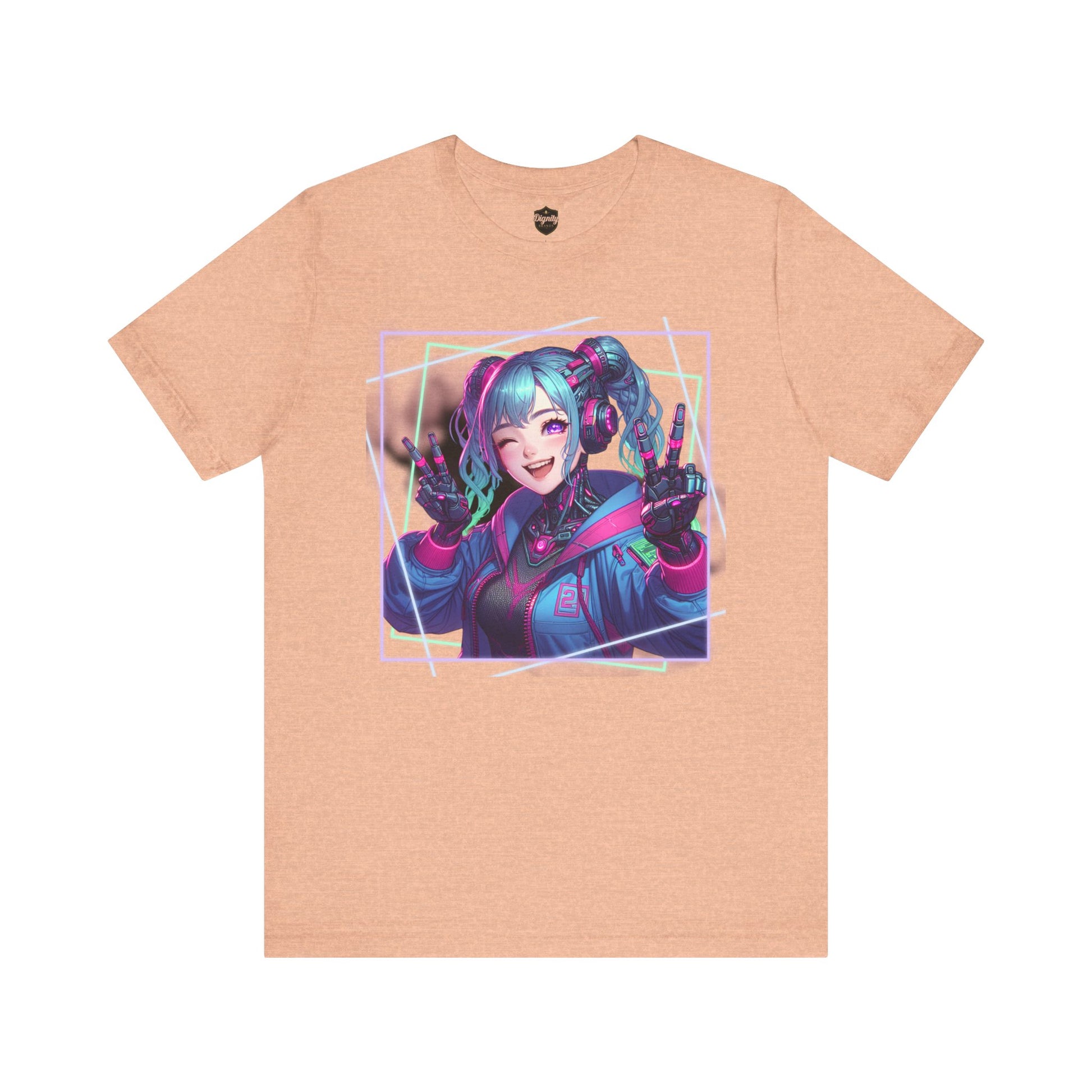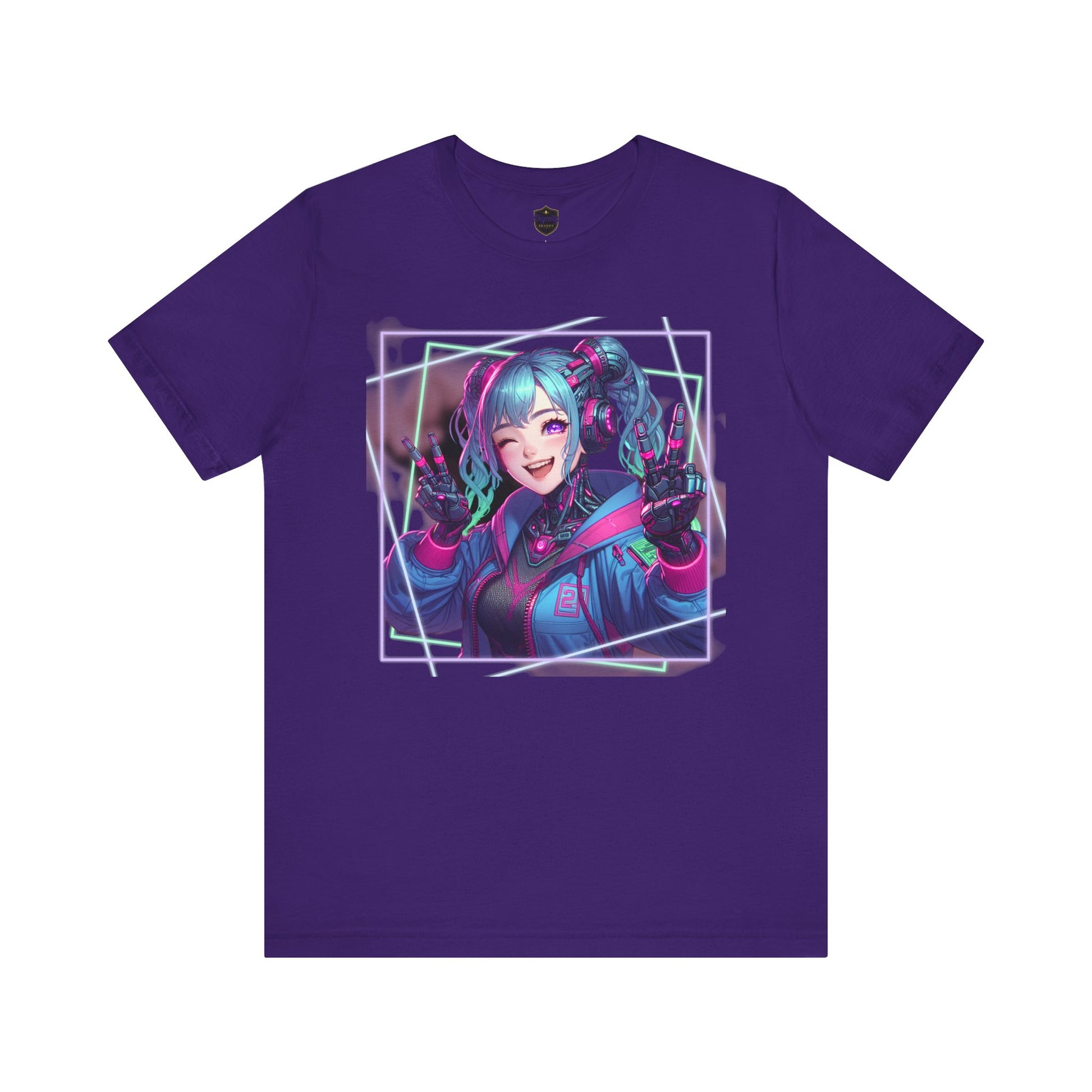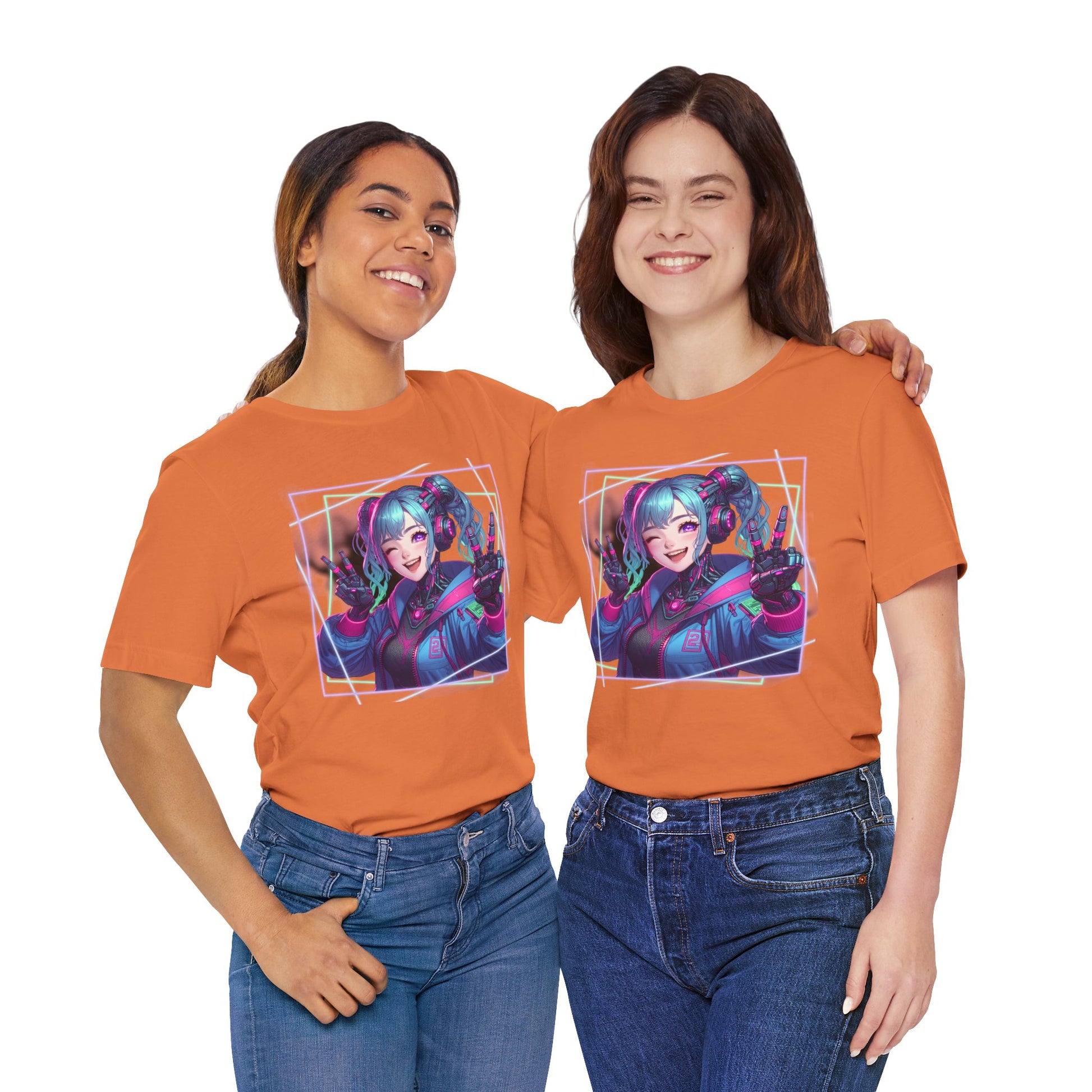 Anime Cyberpunk Girl Graphic Tee - Vibrant Kawaii Gamer T-Shirt