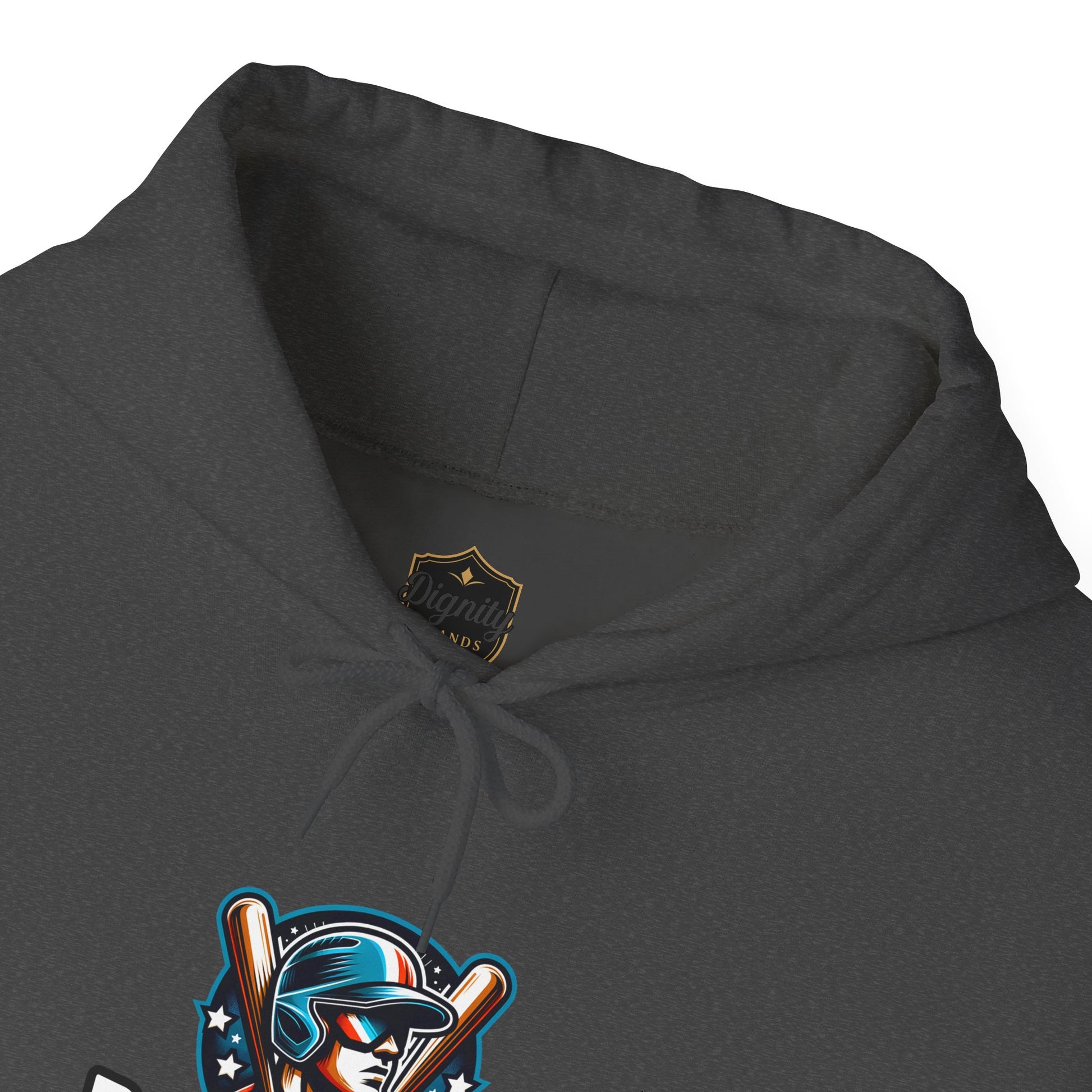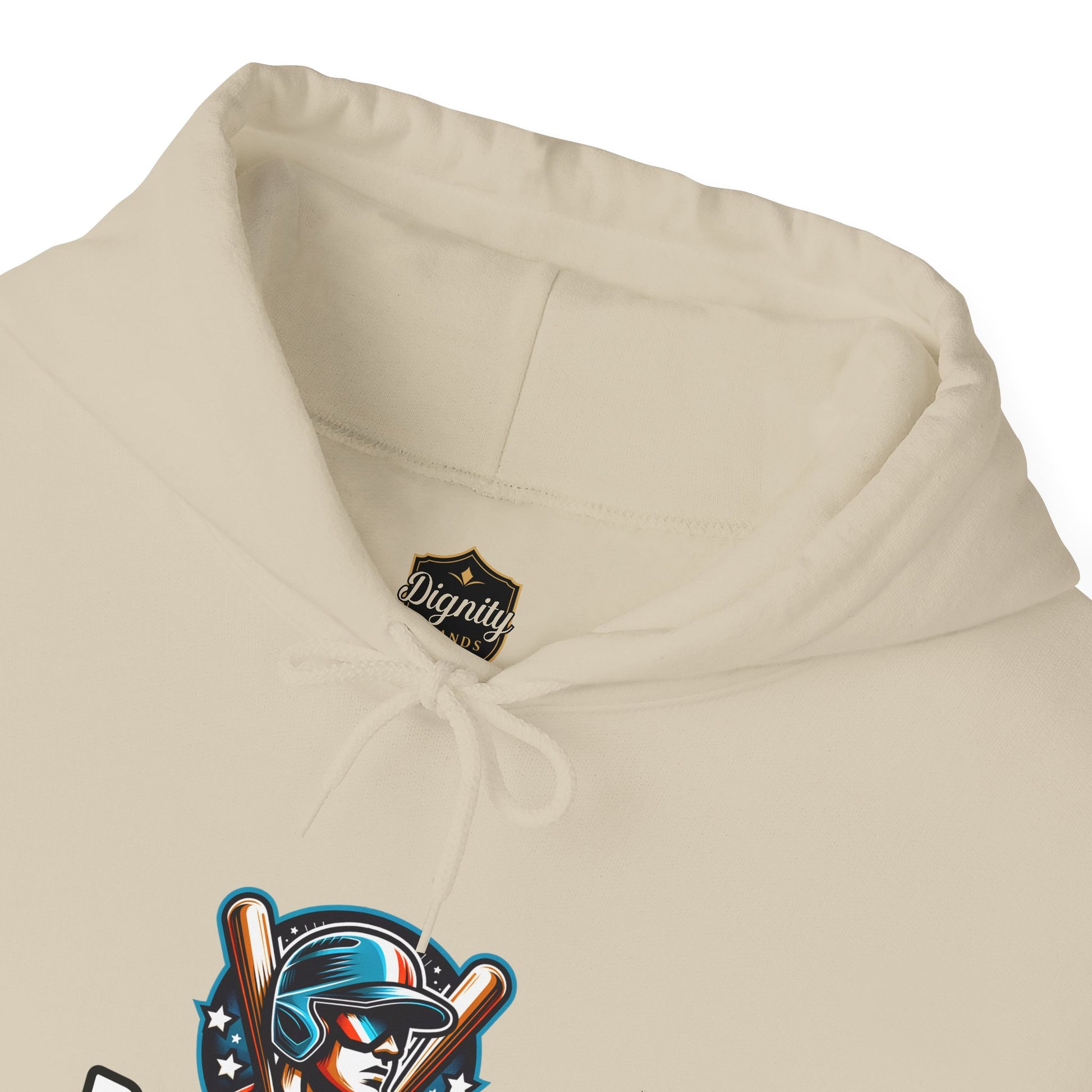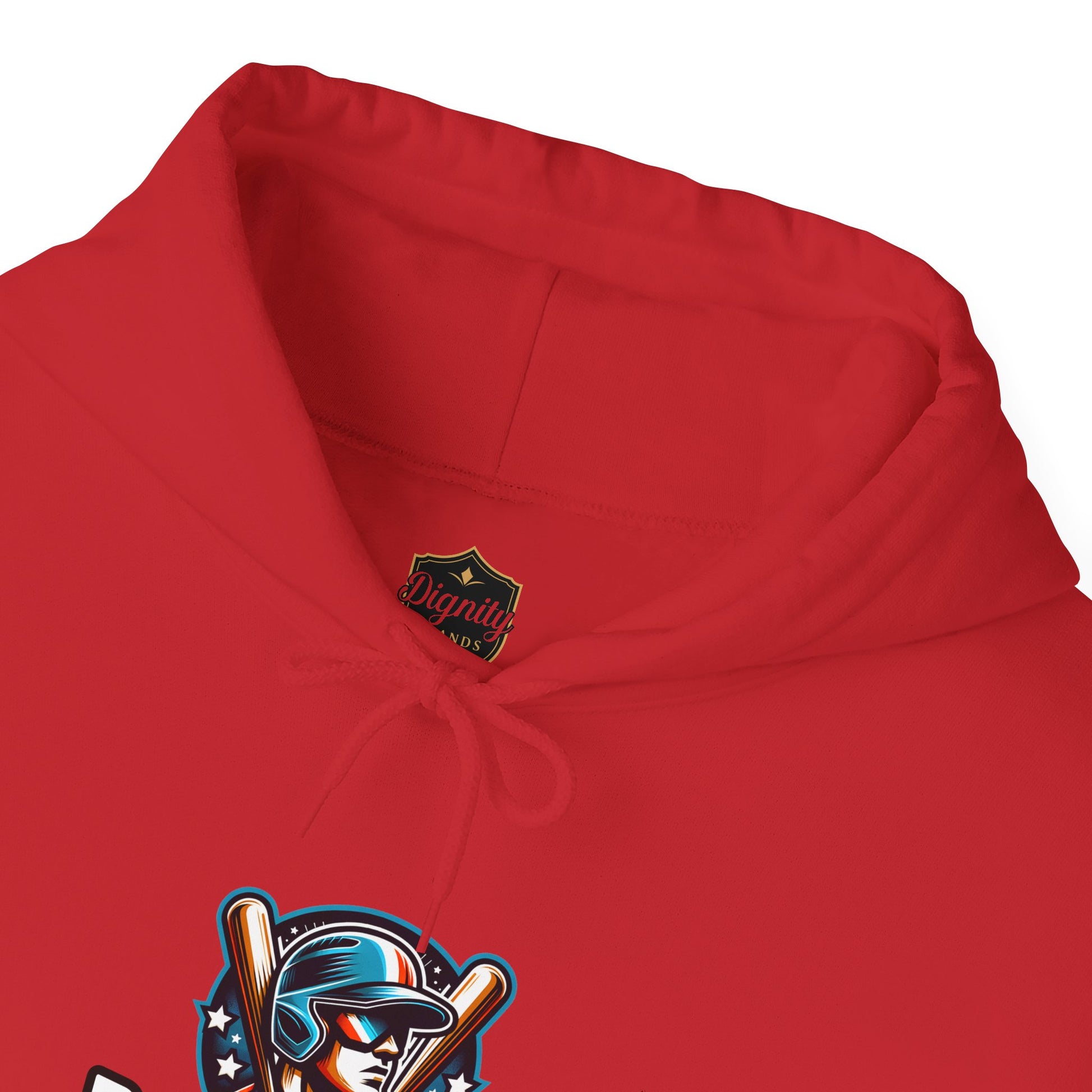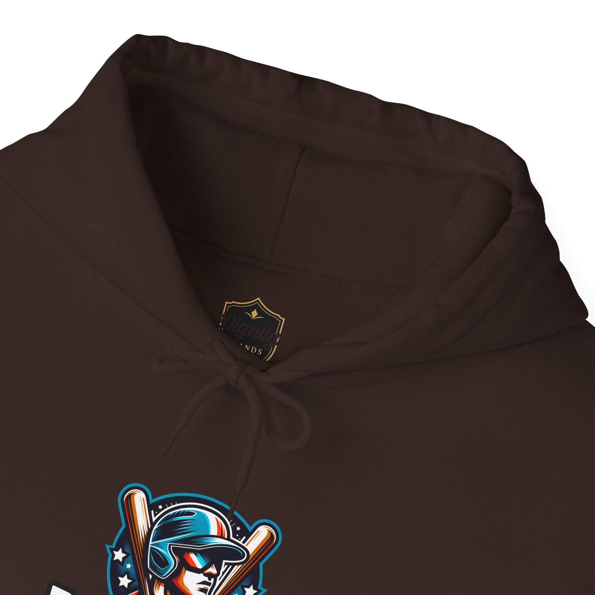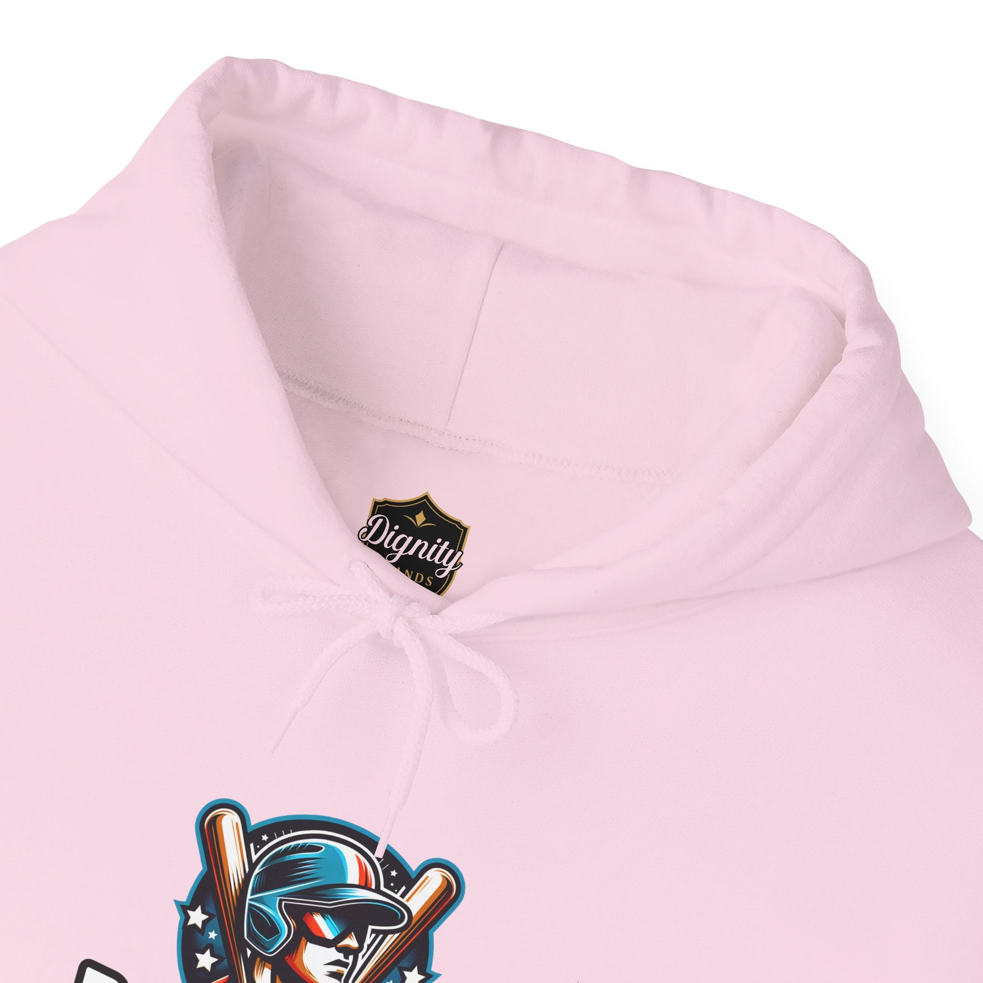 This cozy hooded sweatshirt brings game-day energy to everyday wear. A bold baseball graphic on the chest pairs with a playful “Eat Sleep Baseball Repeat” design on the back, so your love of the sport reads loud and clear from every angle. Built from a soft 50/50 cotton-poly blend with a double-lined hood and color-matched drawcord, it holds prints beautifully while staying warm through practices, early mornings, and post-game hangouts. The roomy kangaroo pocket and classic fit make it easy to layer over tees or under a jacket. Eye-catching, comfortable, and made with responsibly sourced materials — it’s the kind of sweatshirt players, coaches, and fans reach for when they want a casual piece that wears like part of the team.