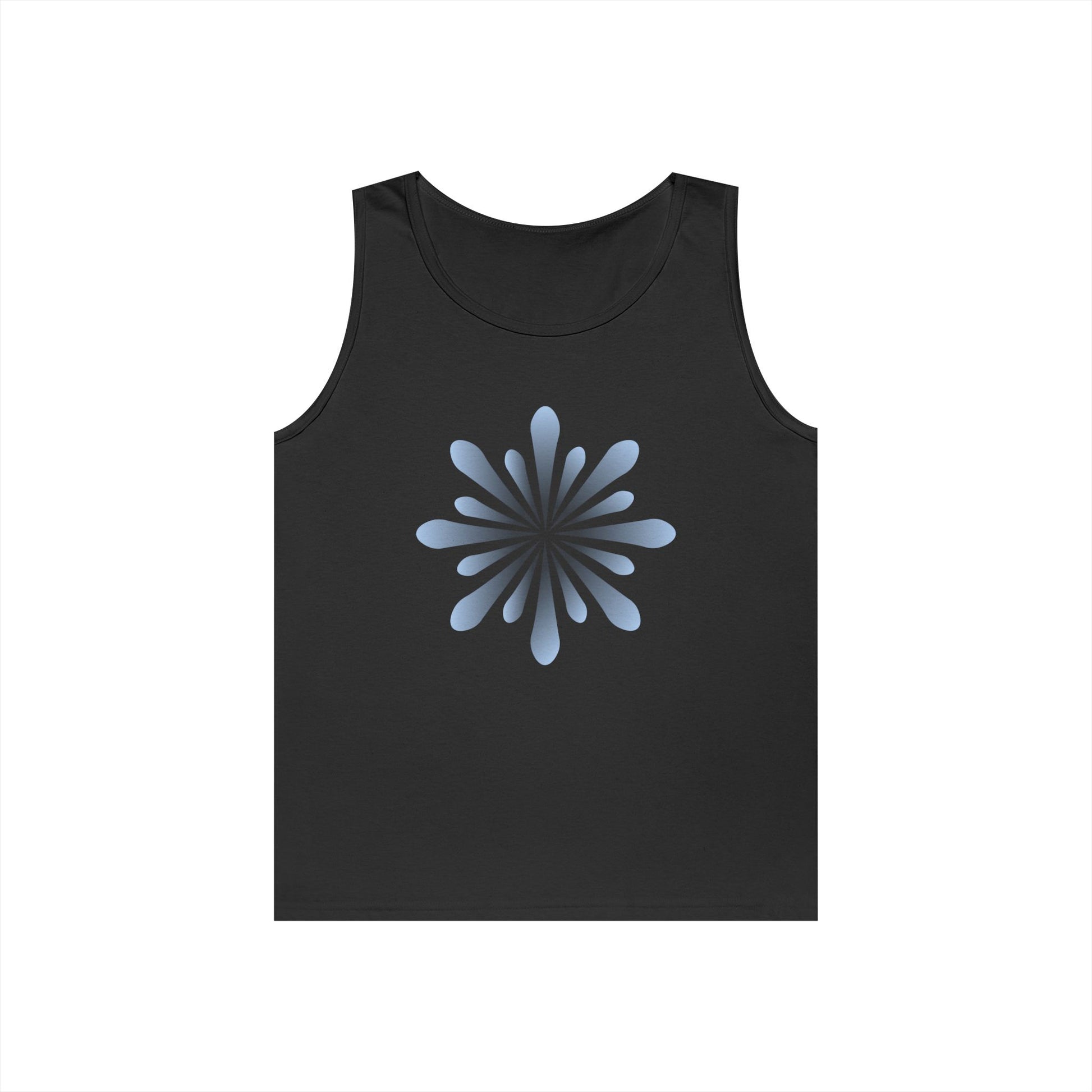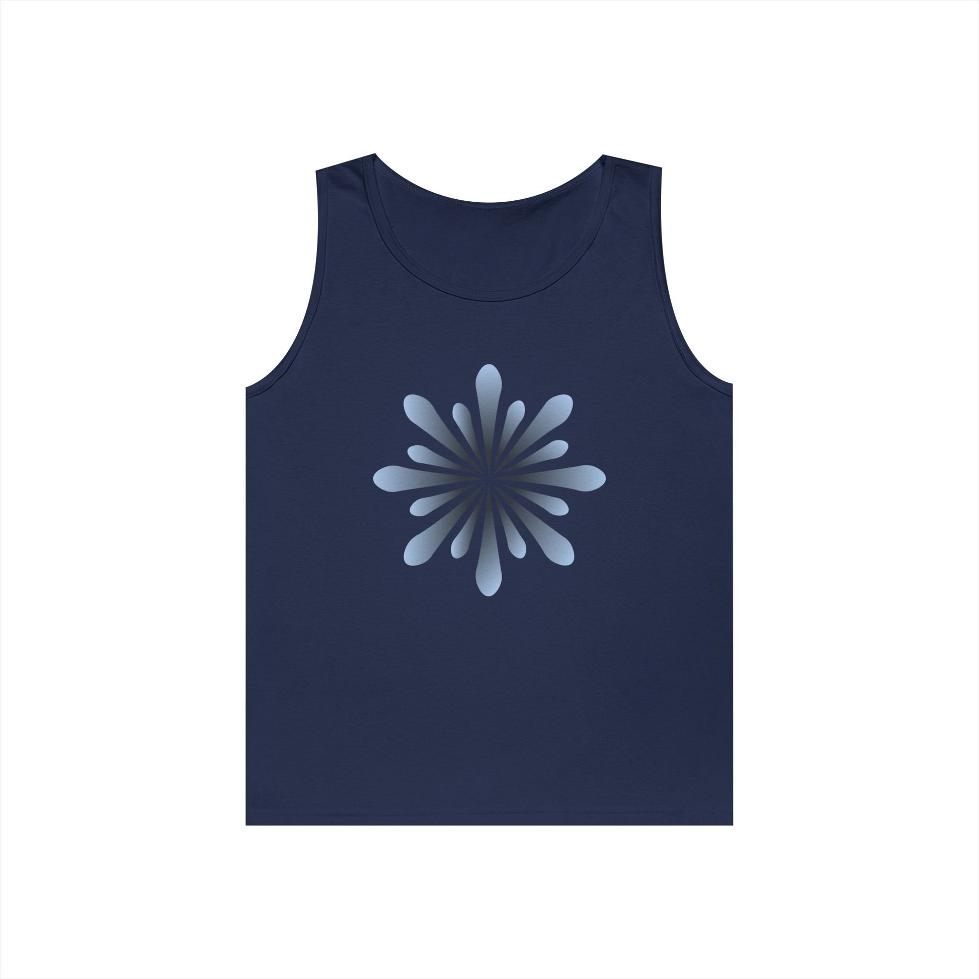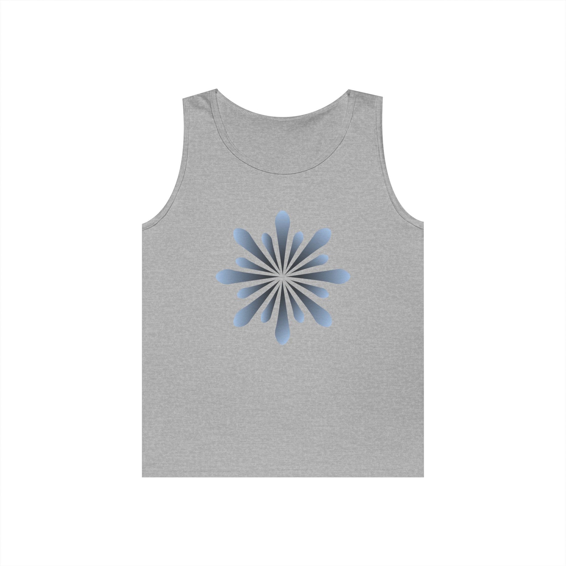 Blue Petal Burst Tank Top — Minimal Floral Sunburst Graphic
