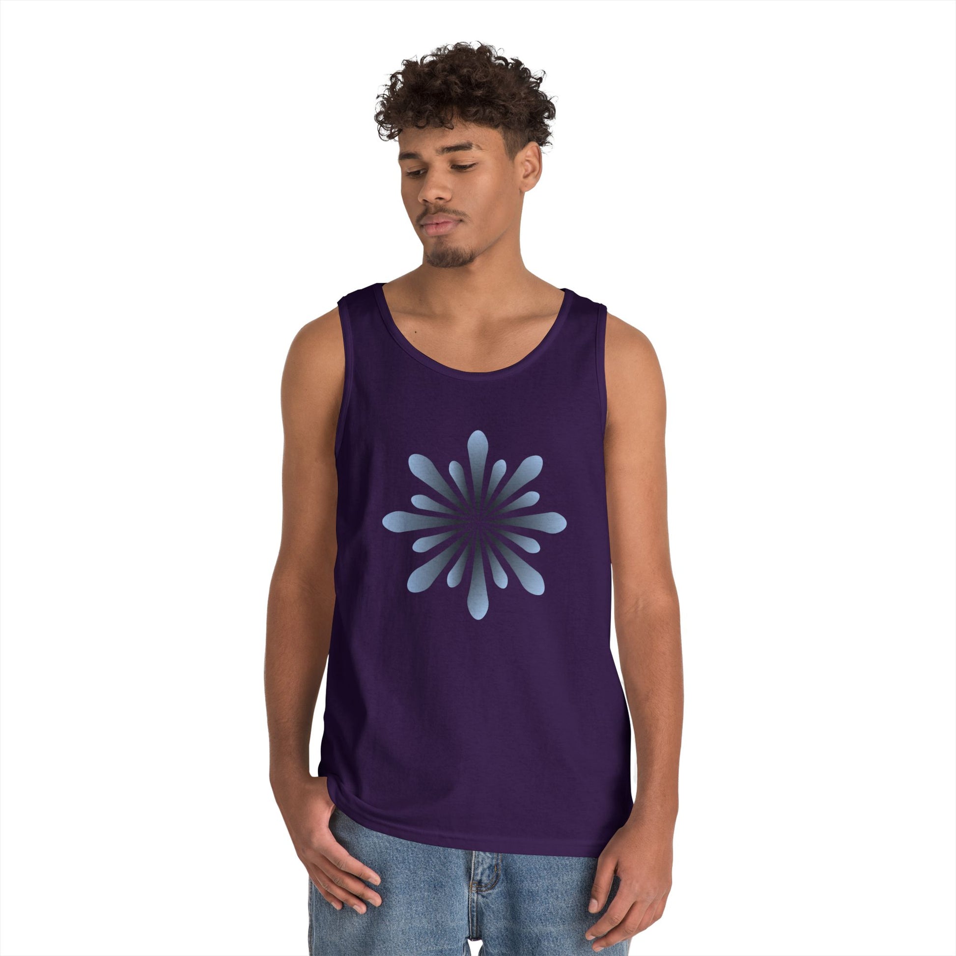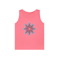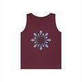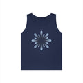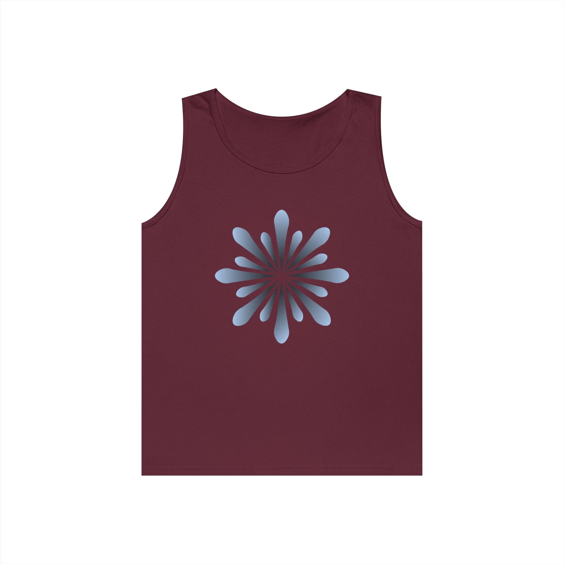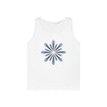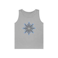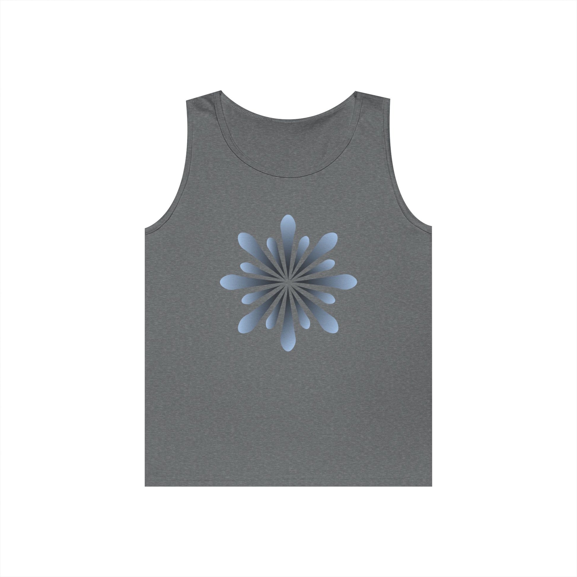 Blue Petal Burst Tank Top — Minimal Floral Sunburst Graphic
