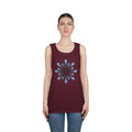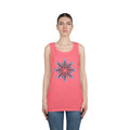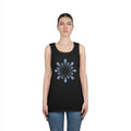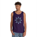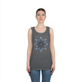 Soft, breathable tank with a calm, minimalist blossom graphic at the center. Lightweight cotton keeps the shape breathable through warm days while the ribbed collar and double-stitched hem hold up to regular wear. The pale blue radial design reads like a slow, meditative spin—subtle enough to layer under a shirt or wear solo on a sunlit walk. Wear it to slow down, move comfortably, and carry a quiet, effortless style into weekend markets, beach afternoons, or studio sessions.