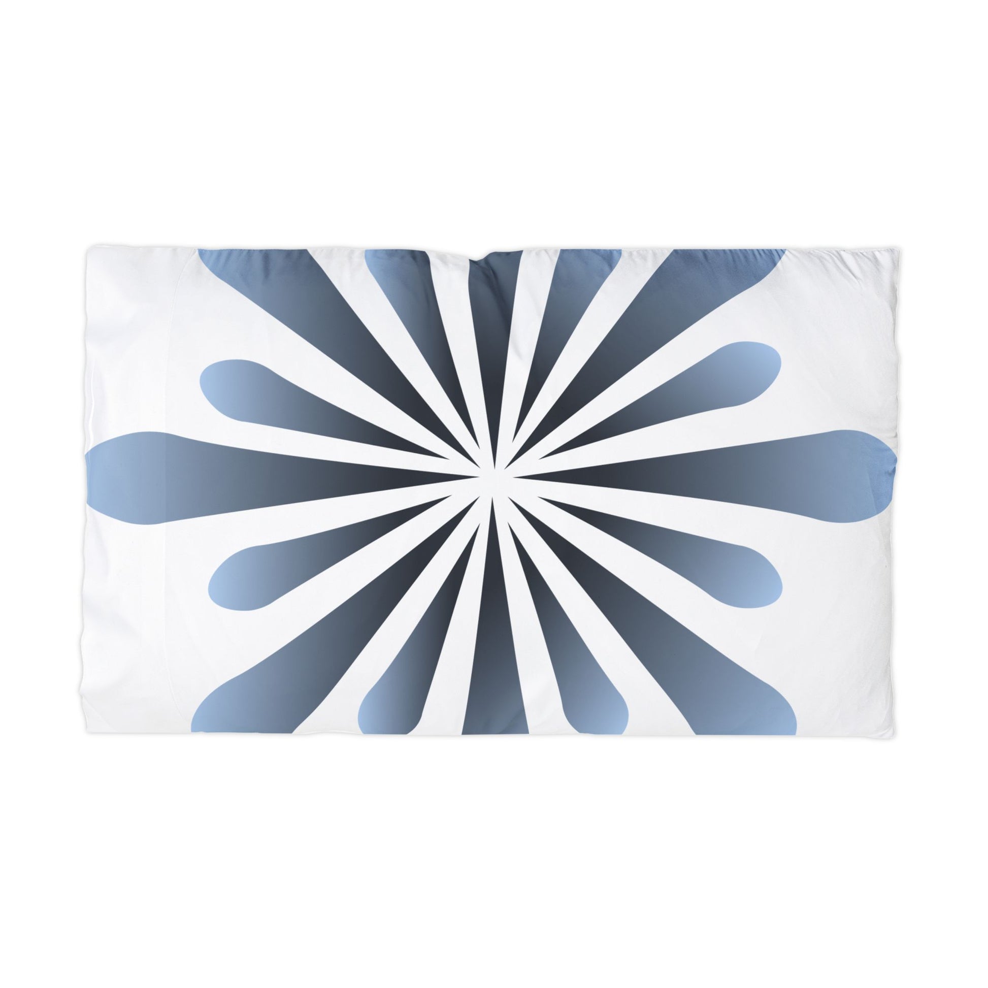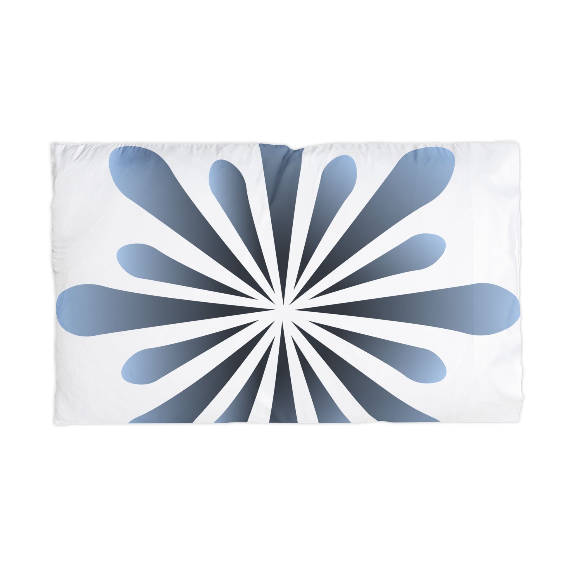 Slide into a cool, silky-soft pillowcase that brings calm geometry to your restful space. The double-sided, all-over print showcases a radial blue bloom — clean lines and softened teardrop petals radiating from the center — set against a crisp white field. Lightweight microfiber feels smooth on the skin and breathes well through the night, while the 3.25" hemmed cuff keeps the case neatly in place. Machine-washable and quick-drying polyester means the colorstay gradient stays fresh after repeated gentle cycles. This pillowcase blends modern, minimalist design with everyday ease, turning a simple pillow into a quietly stylish detail in bedroom or guestroom decor.