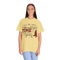 Soft, lived-in T-shirt that carries a quiet, festive charm. The garment-dyed cotton drapes with a relaxed fit and gentle texture, letting a handwritten holiday message and a plaid-accented tree sit comfortably on the chest. It’s the kind of tee you reach for on chilly mornings when you’re making cocoa, stringing lights, or settling in to watch an old holiday movie. Breathable, medium-weight fabric and a pre-shrunk knit mean it wears well through seasons of celebrations and low-key gatherings. Subtle details — tubular construction, double-needle seams, and a sewn-in label — keep it durable without stealing focus from the cozy graphic. Available in many colors and sizes, it blends classic comfort with warm, seasonal style.