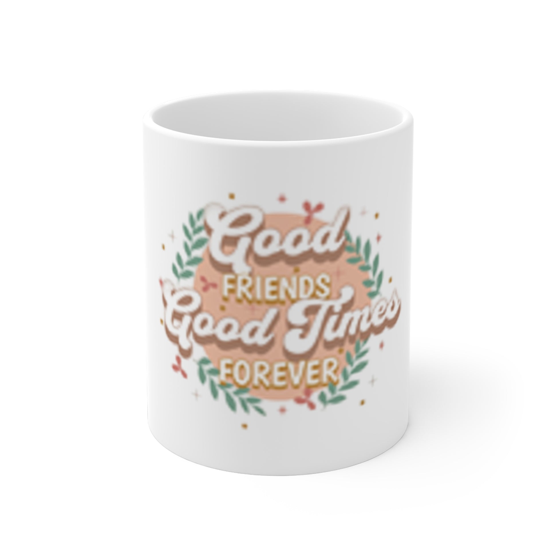 Coffee Mug — 'Good Vibes & Sweet Times' Floral Ceramic Coffee Cup (11/15/20oz)