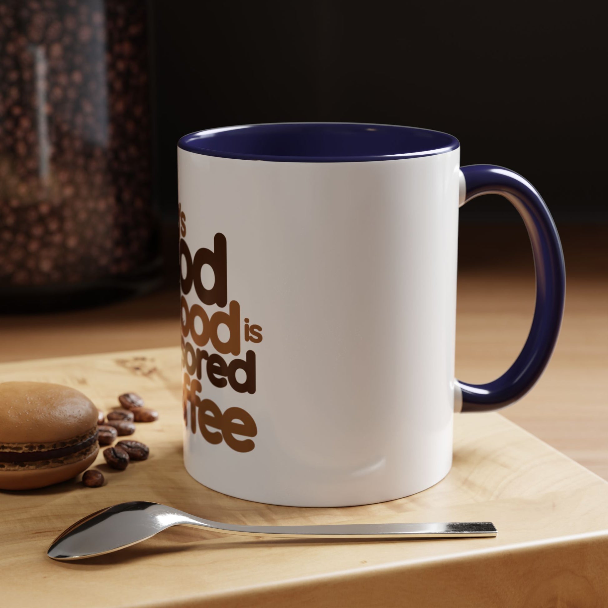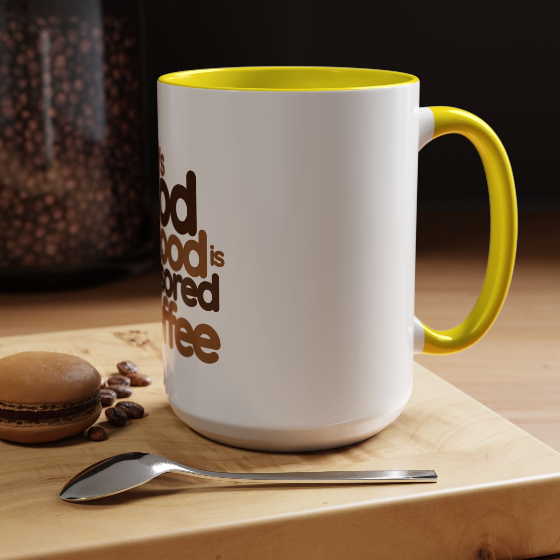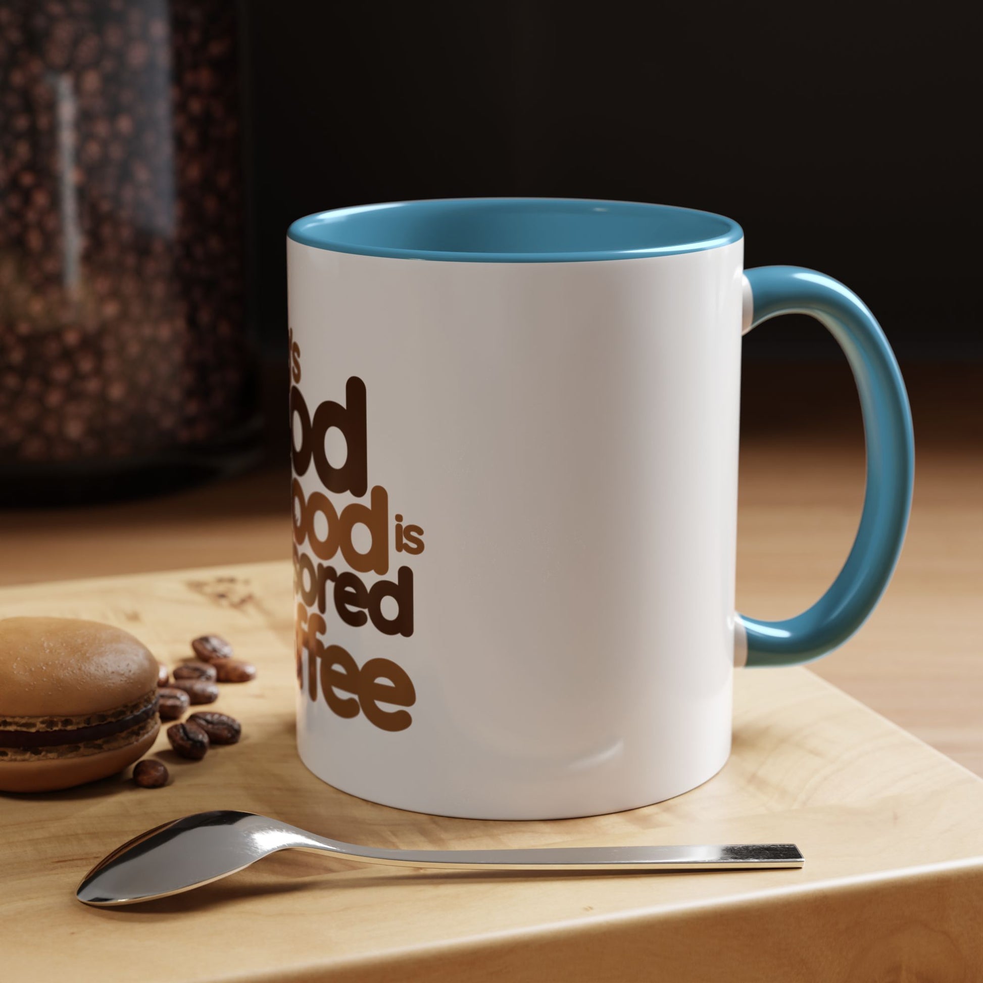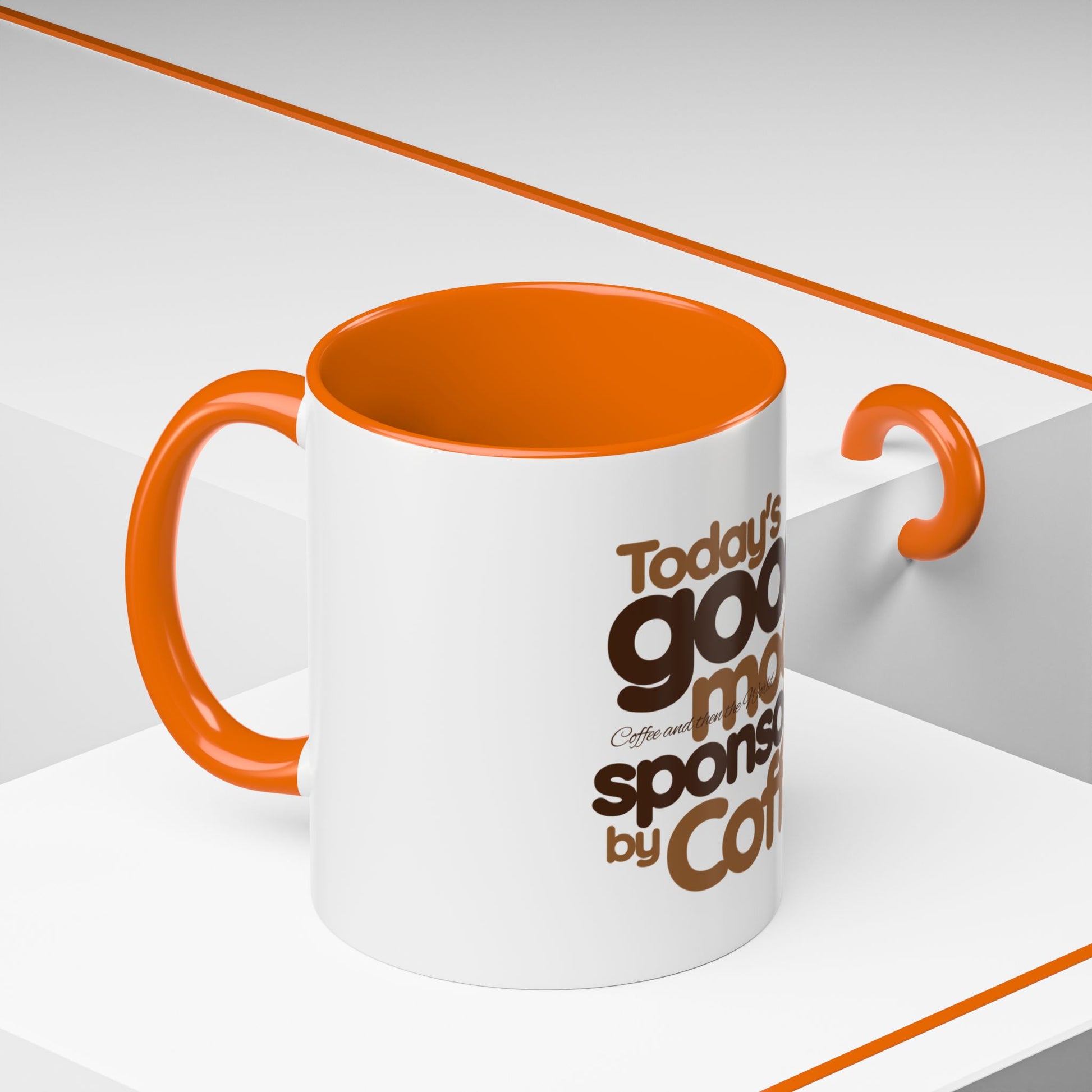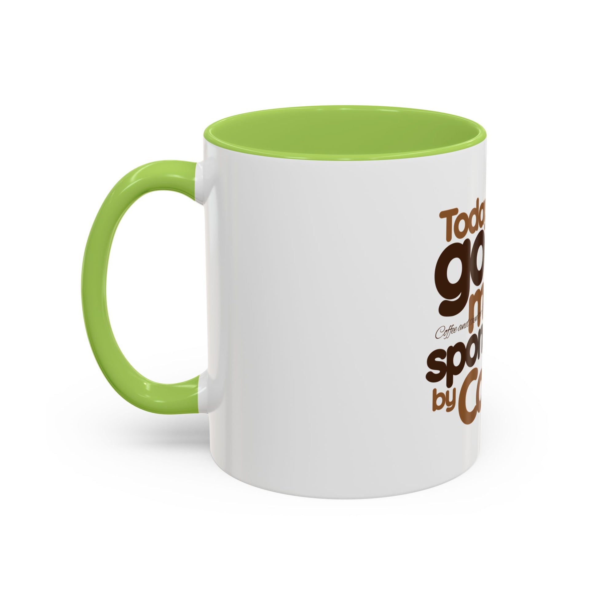 Warm wake-ups start here. This ceramic accent mug wears a playful vintage‑inspired slogan in rich coffee tones: “Today’s good mood is sponsored by Coffee.” The high‑gloss white body contrasts with a colored interior and handle that amplifies the retro brown lettering. Whether it’s a slow morning at the kitchen table, a quick break between meetings, or a cozy weekend ritual, this mug brings a small, cheerful nudge to the daily coffee routine. Sturdy C‑handle comfort, microwave and dishwasher durability, and vibrant printing keep the message bright and the cup ready for everyday use.