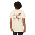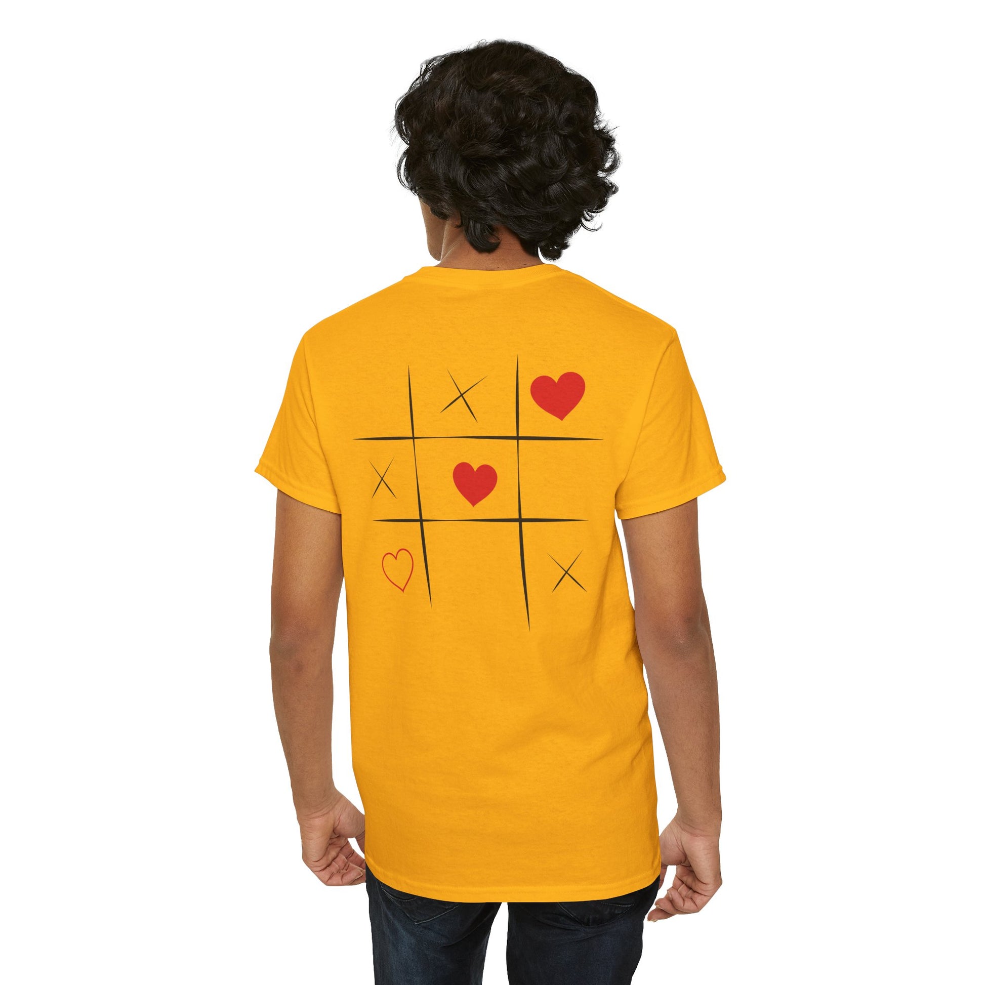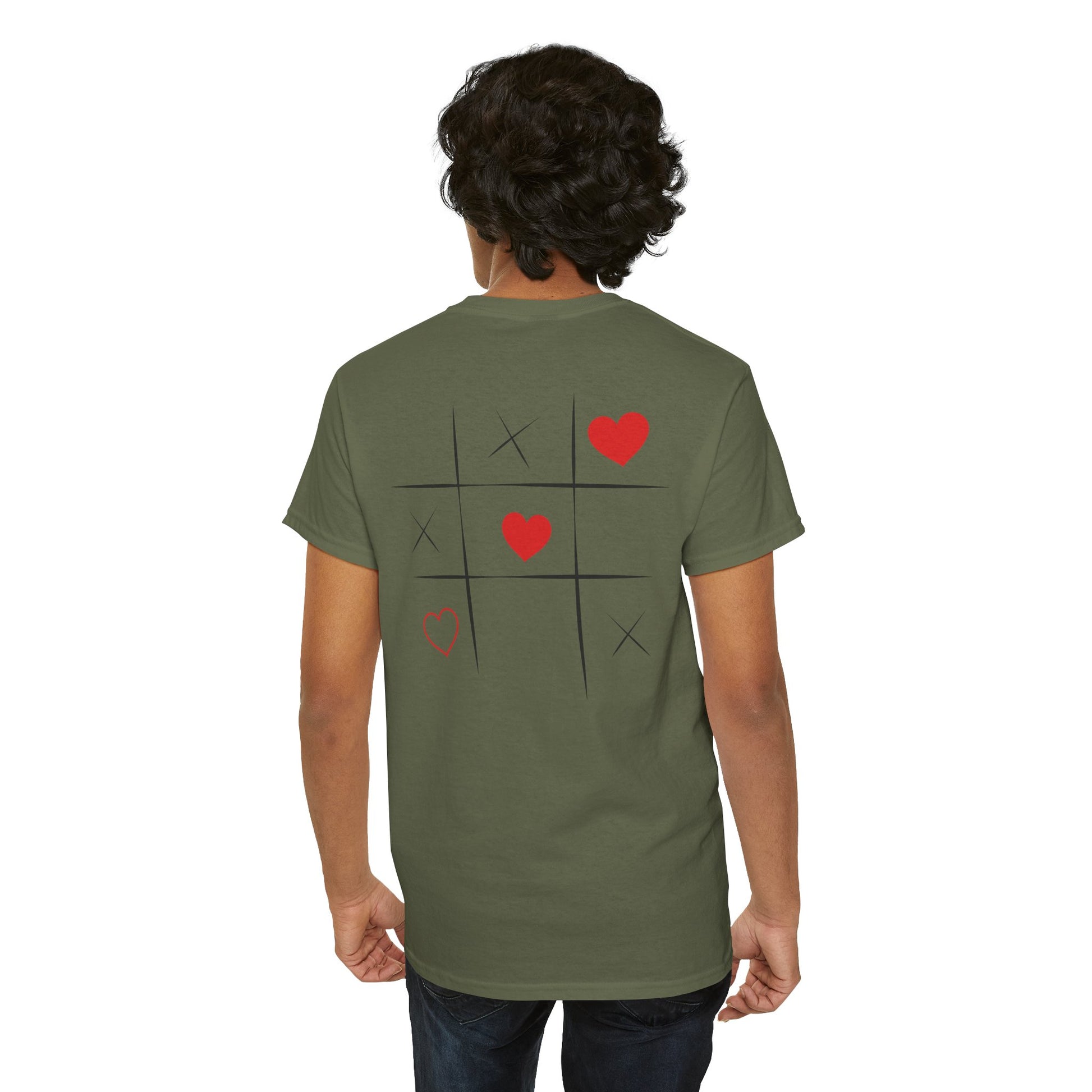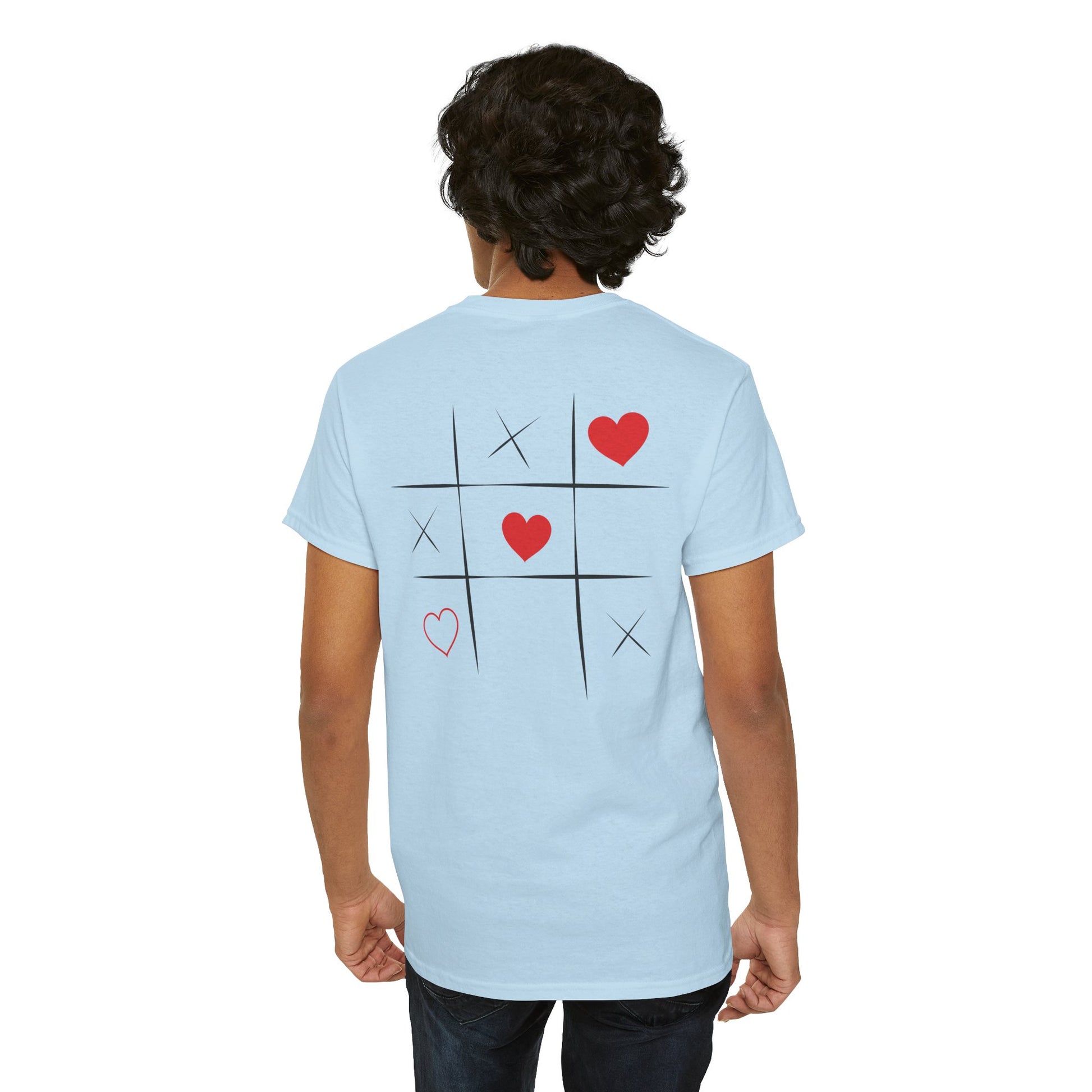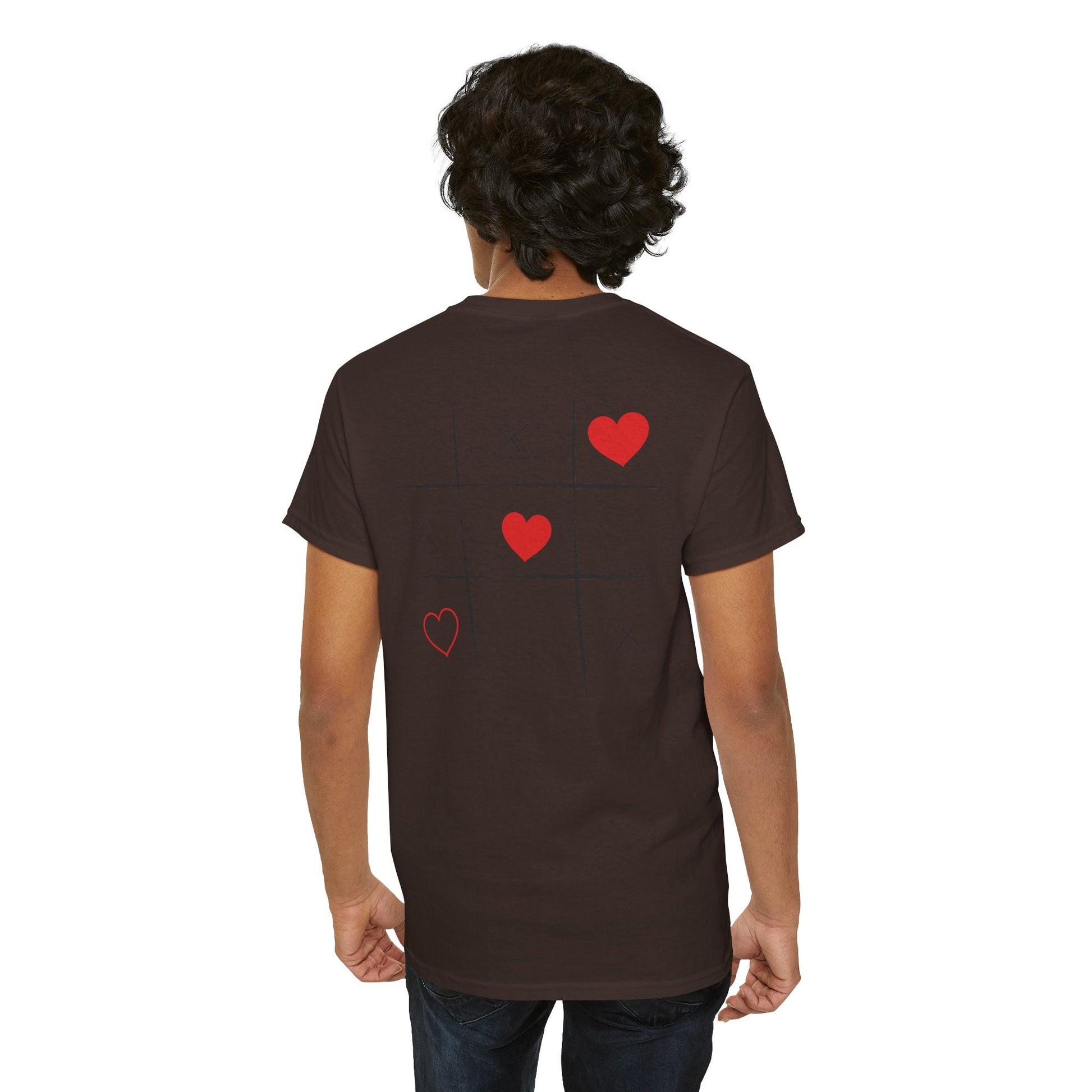 Soft, casual tee that reads like a playful note from someone who loves clever, low-key romance. The front shows bold, slightly vintage lettering reading “Cuter Than Cupid” with a small heart accent, framed by tiny patterned borders. The back keeps things light: a minimalist tic‑tac‑toe grid dotted with little hearts and Xs — simple, sweet, and a touch cheeky. It feels like a warm, easygoing layer you pull on for coffee dates, school events, or evenings out when you want to wink without saying a word. The fabric has enough weight to hang nicely while staying breathable, and the ribbed collar plus shoulder taping keep the shape after washing so the print stays centered and crisp. This tee sits comfortably in wardrobes that favor casual charm and quietly romantic statements.