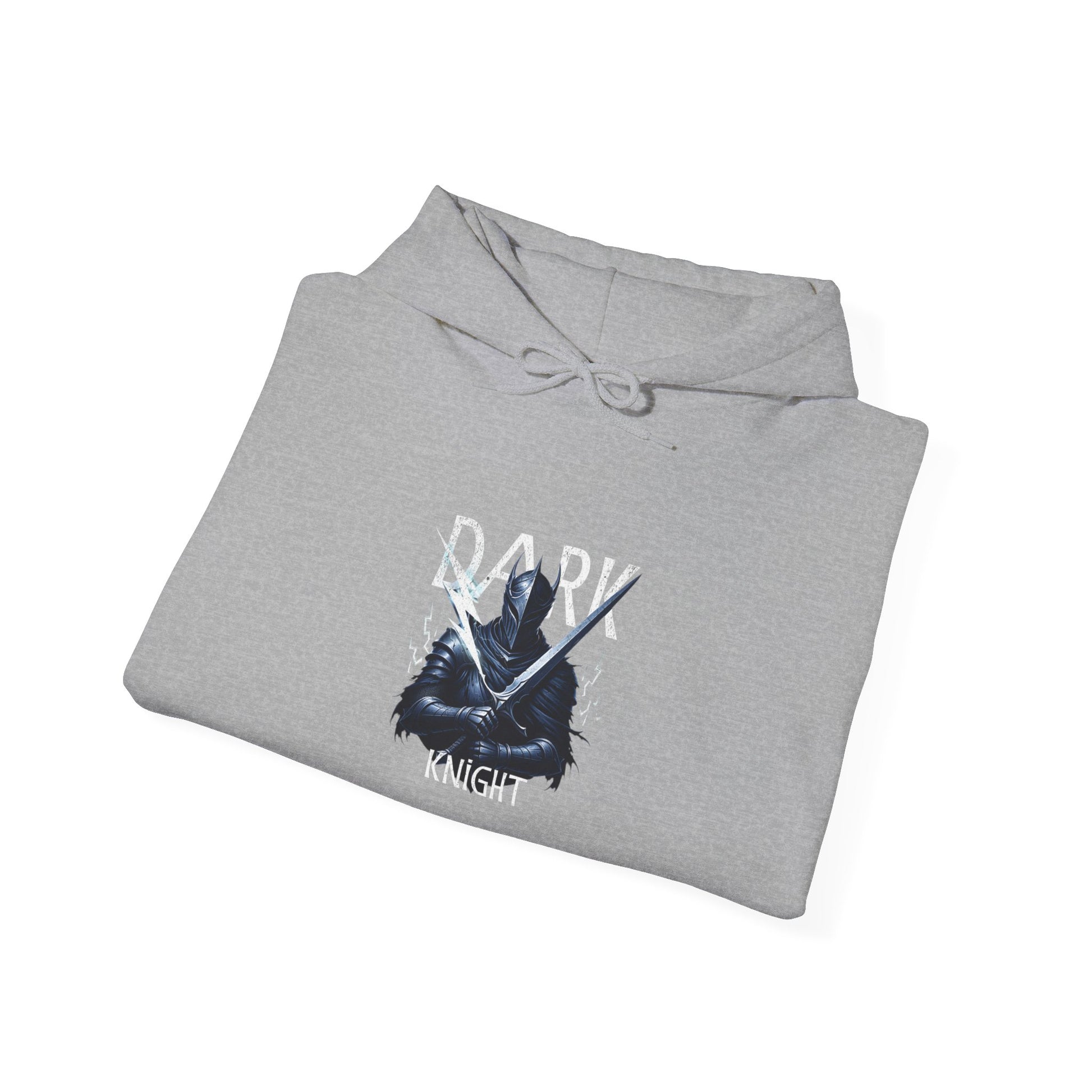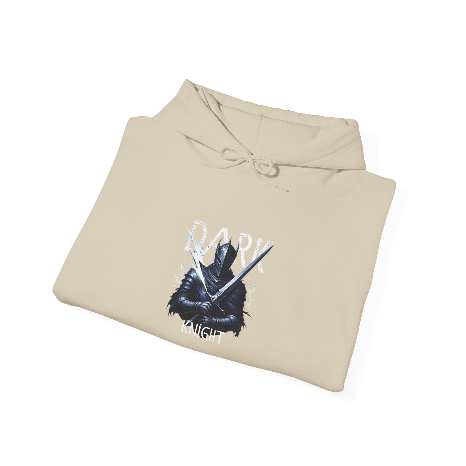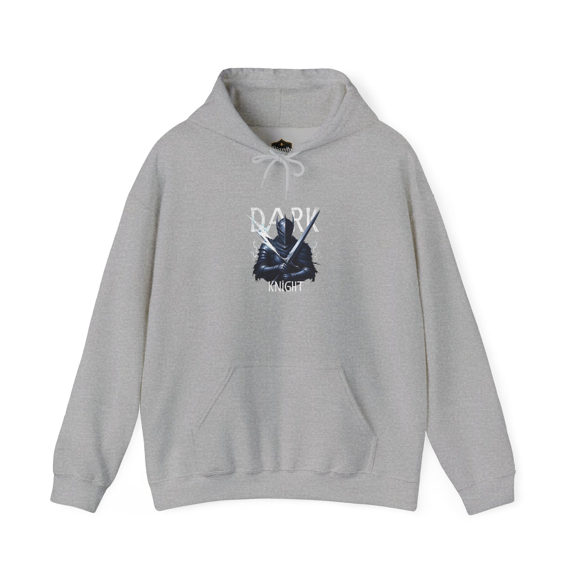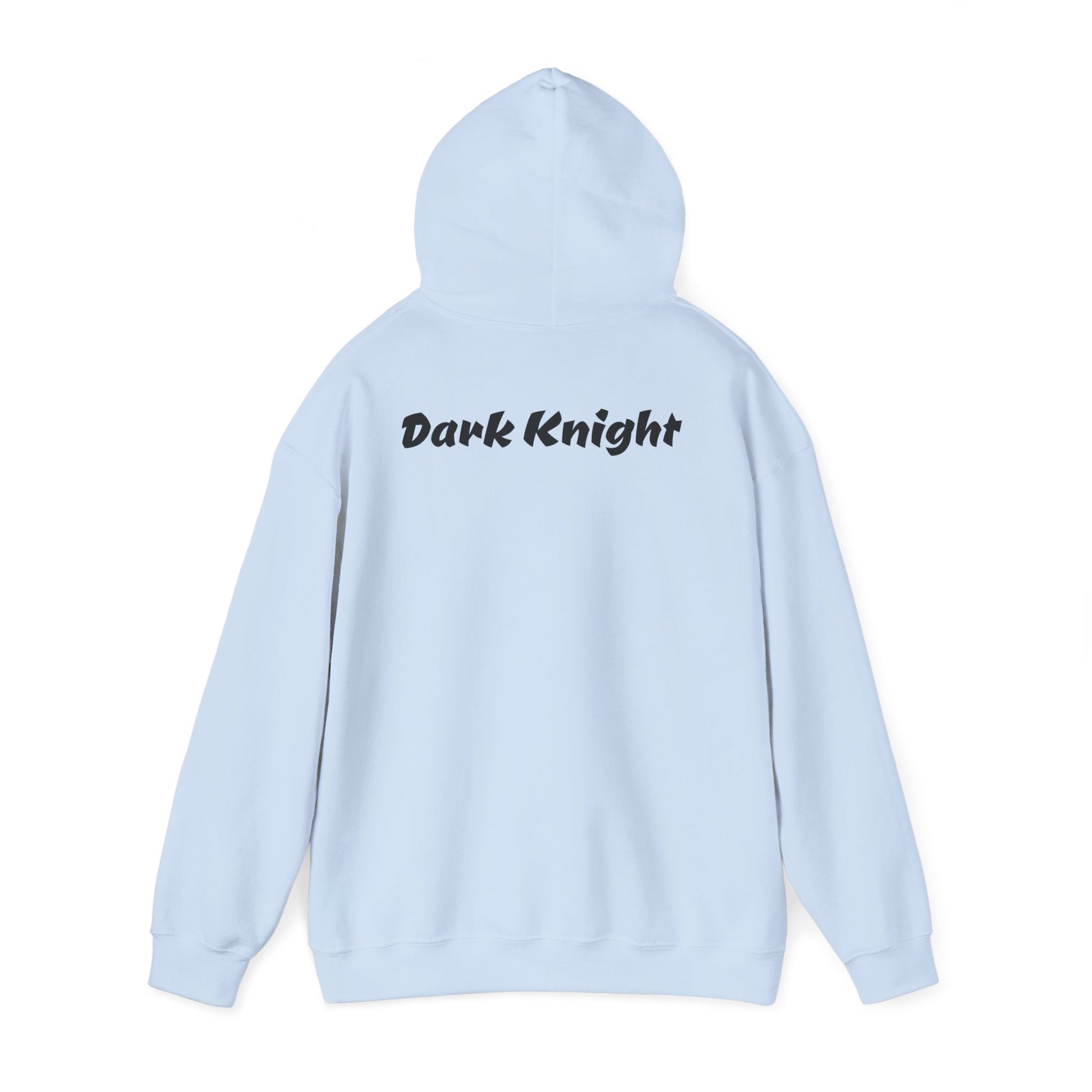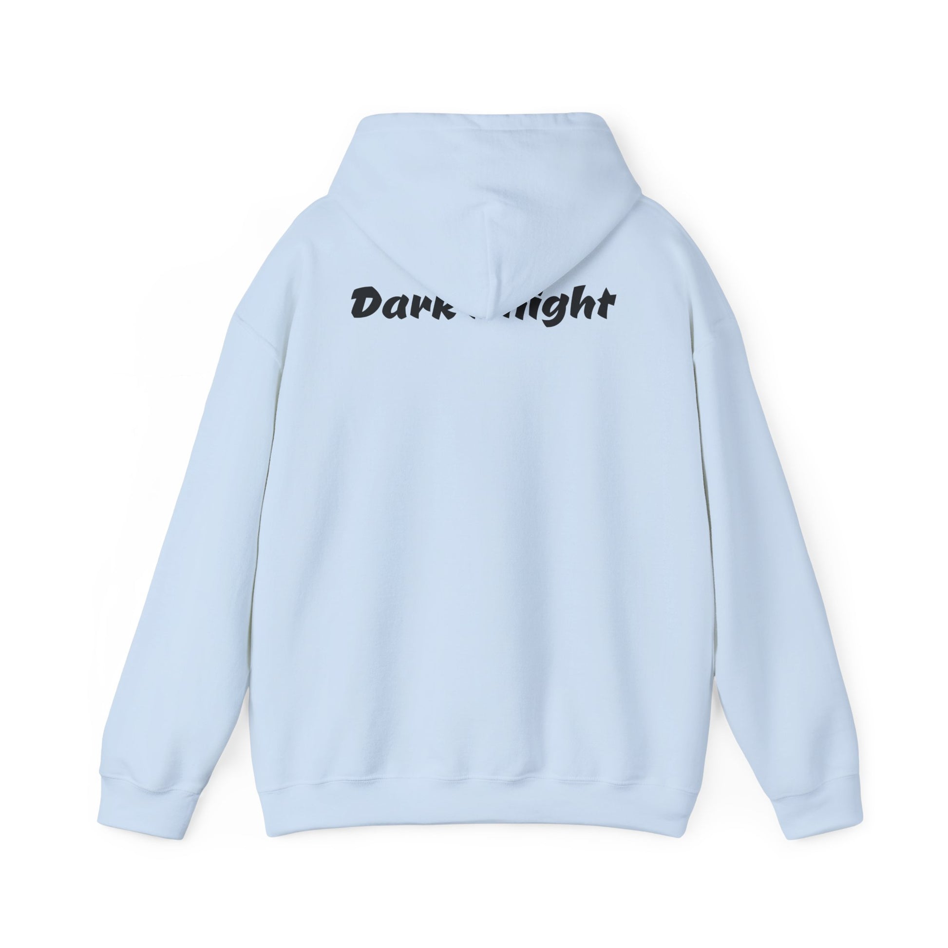 Wrap yourself in a quiet, cinematic kind of comfort. This soft, medium-heavy hoodie carries a moody graphic — a lone, armored silhouette framed by shards of light and the word “DARK” above a smaller “KNIGHT” — that feels like a night walk through neon rain or the final scene of a midnight film. The pouch pocket warms your hands; the double-lined hood and color-matched drawcord add subtle, durable detailing. It’s the layer you reach for when you want to feel grounded, low-key bold, and a little mysterious.