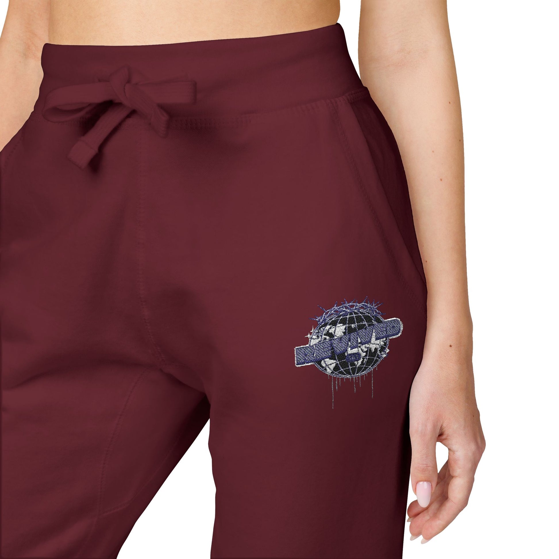 Embroidered Floral Lips Sweatpants — Cozy Fleece Joggers