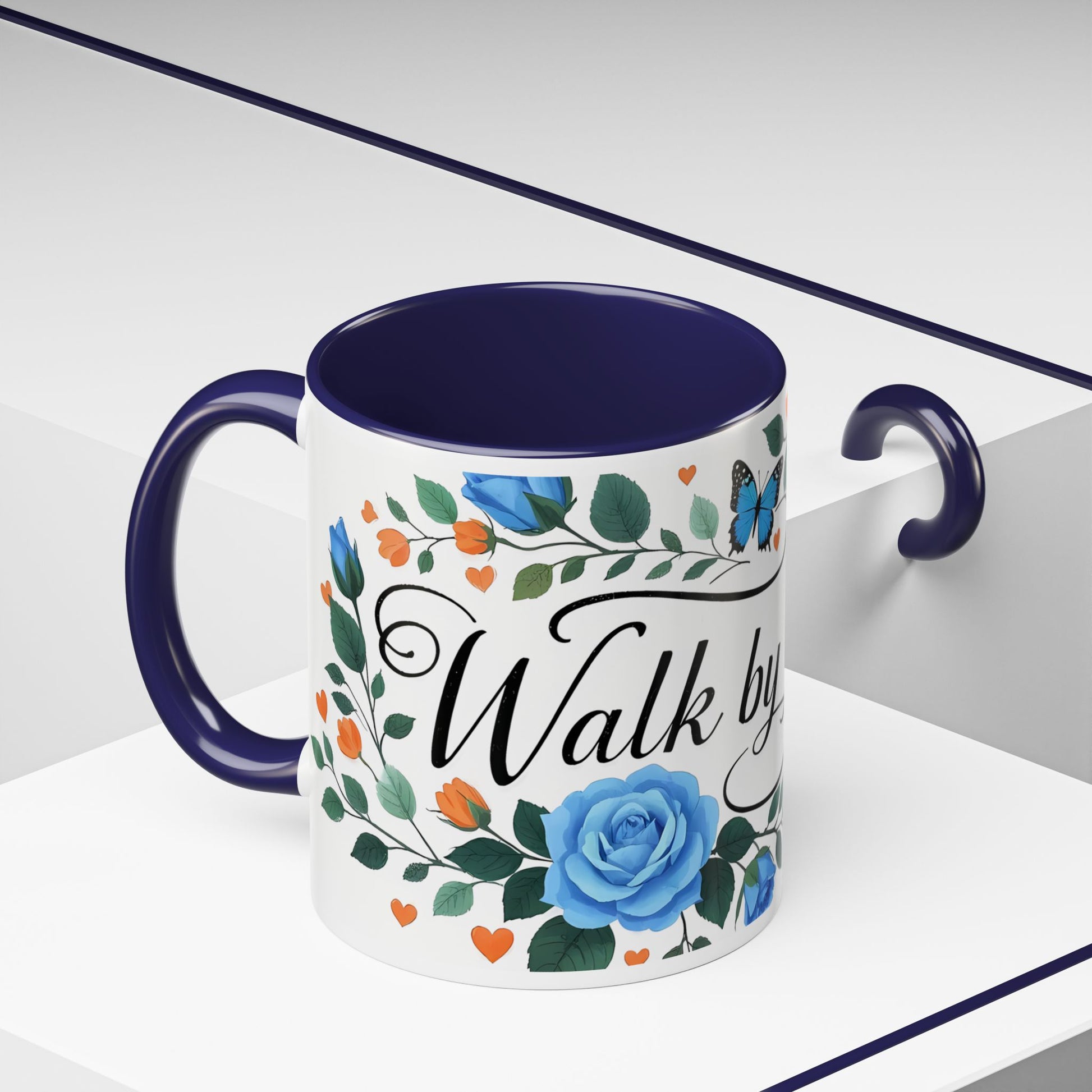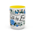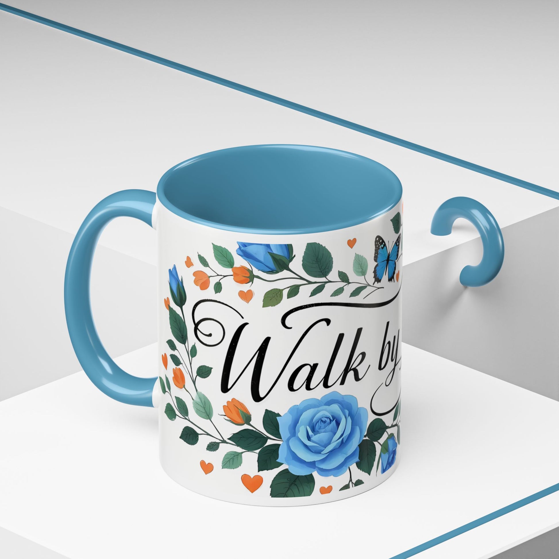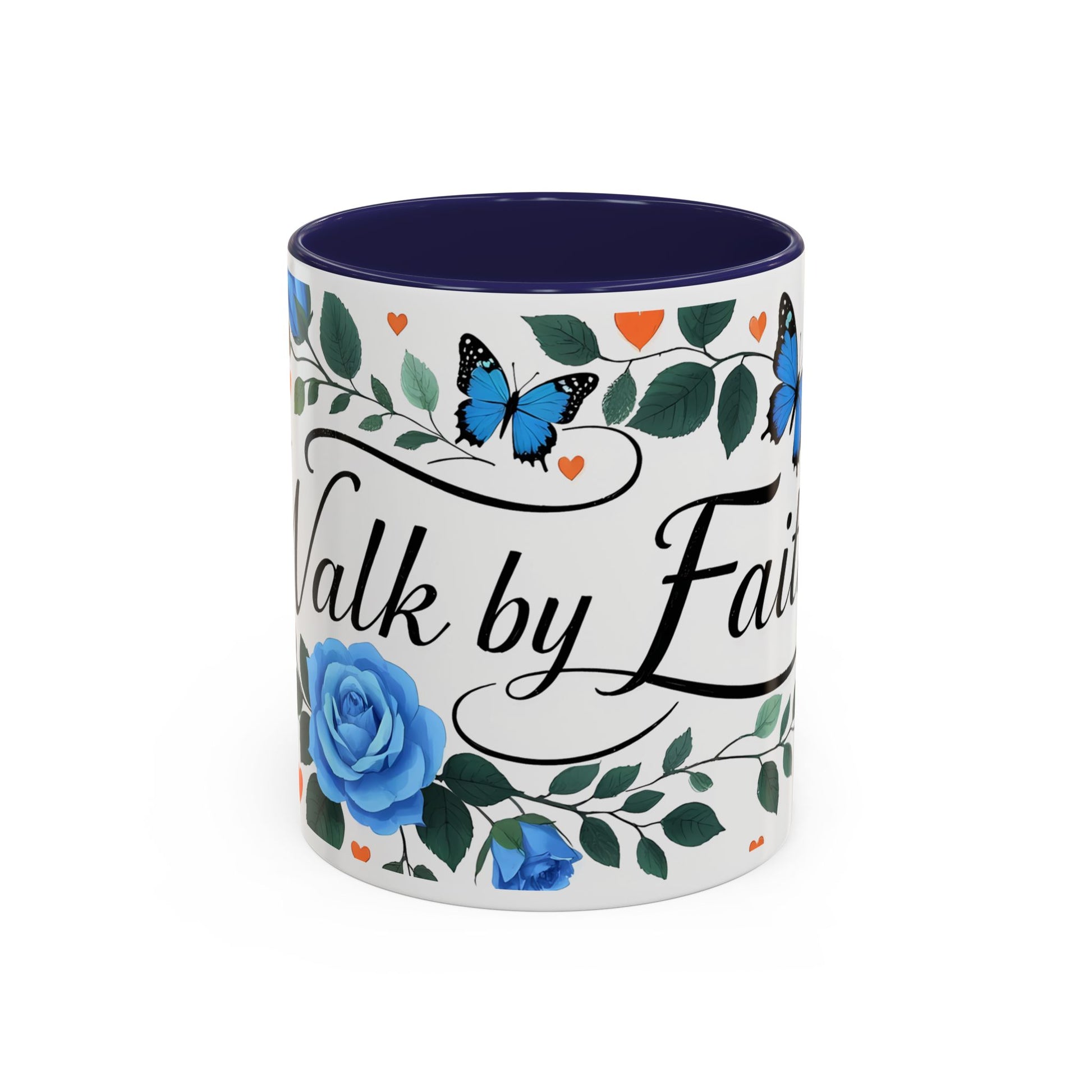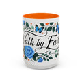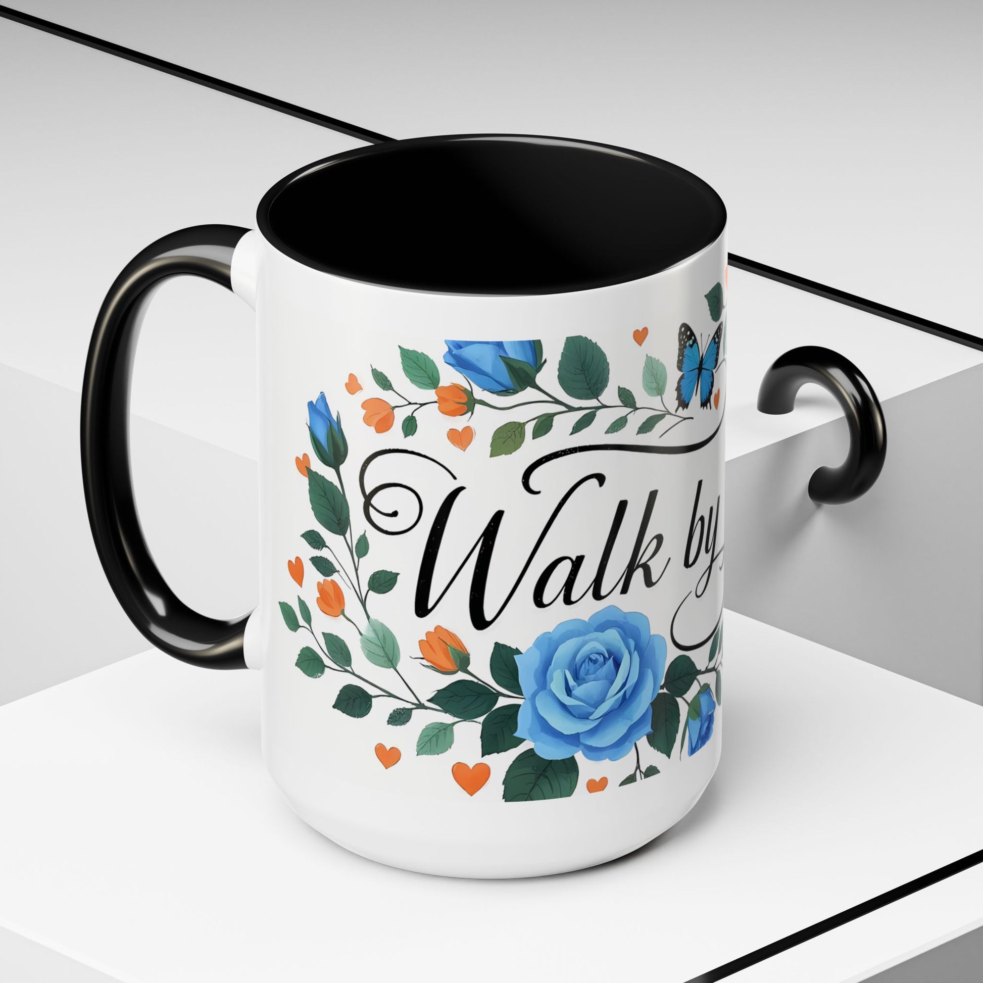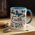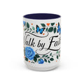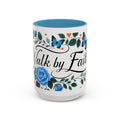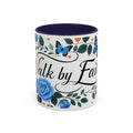 Faith Floral Coffee Mug — “Walk by Faith” Blue Roses & Butterflies Accent Mug