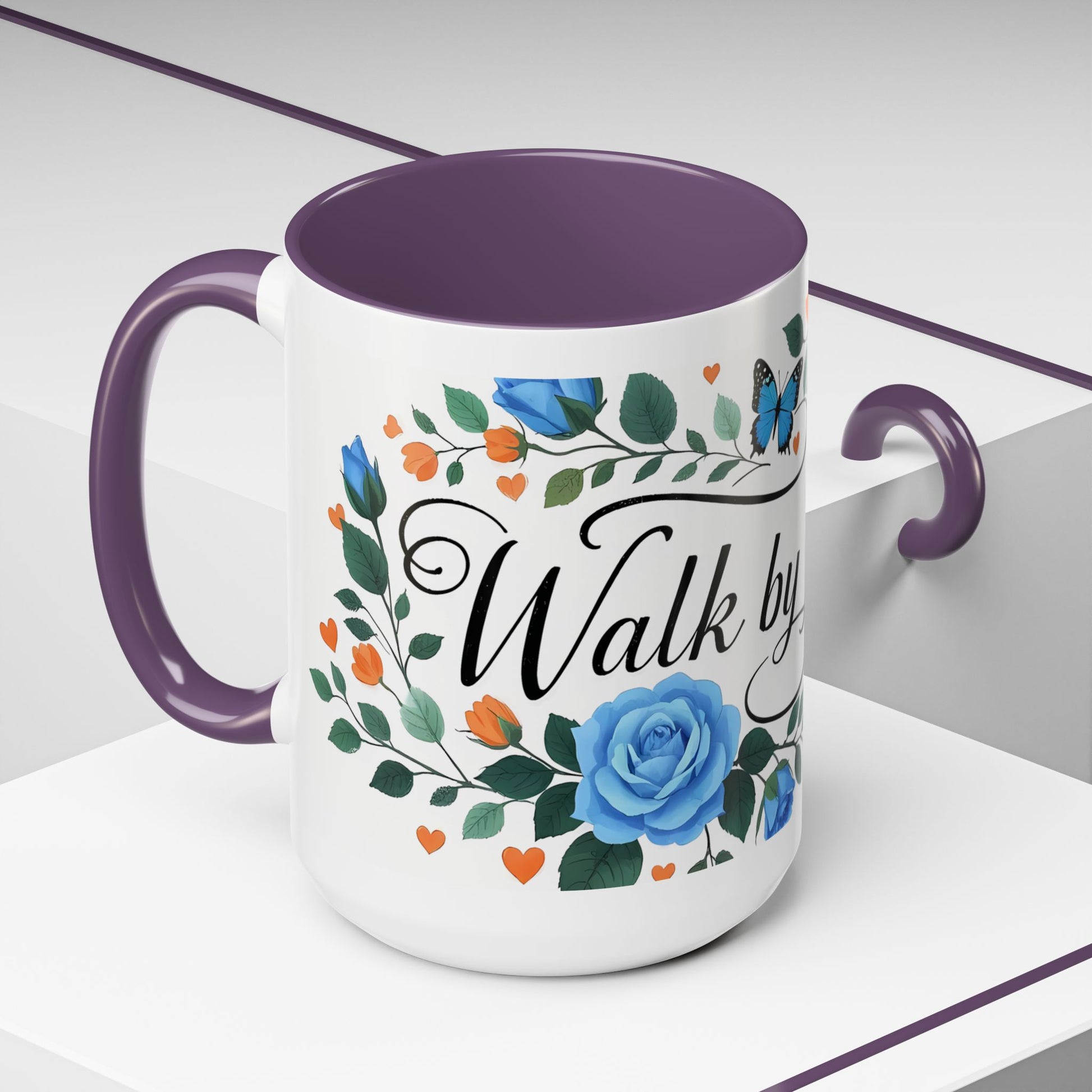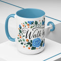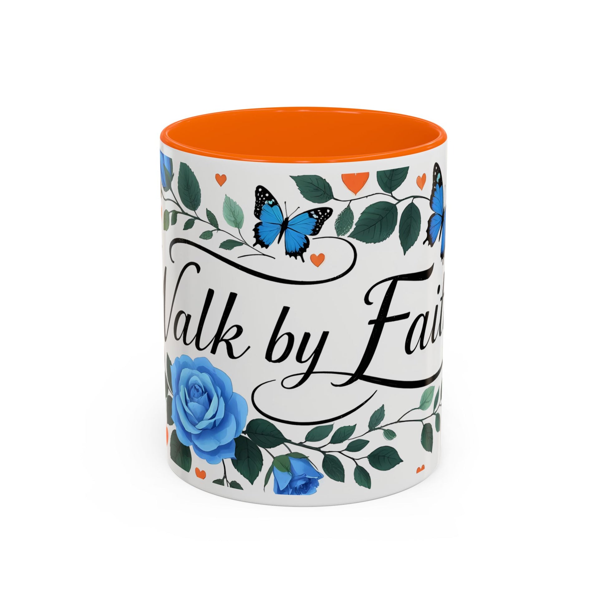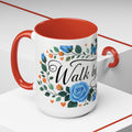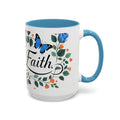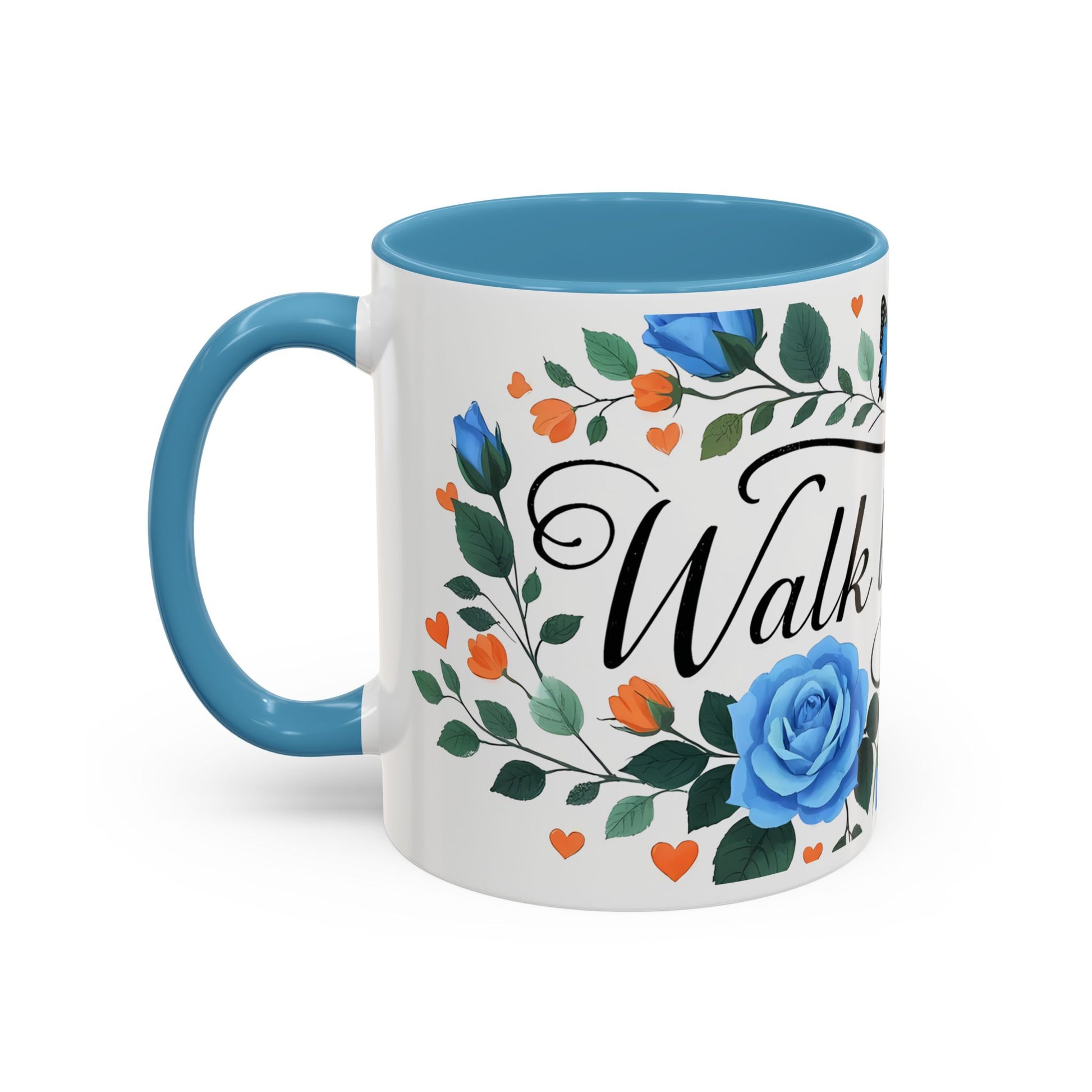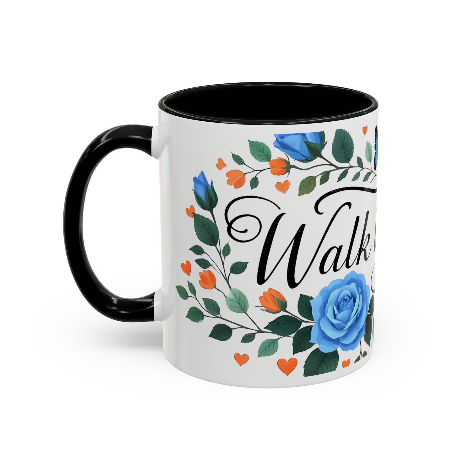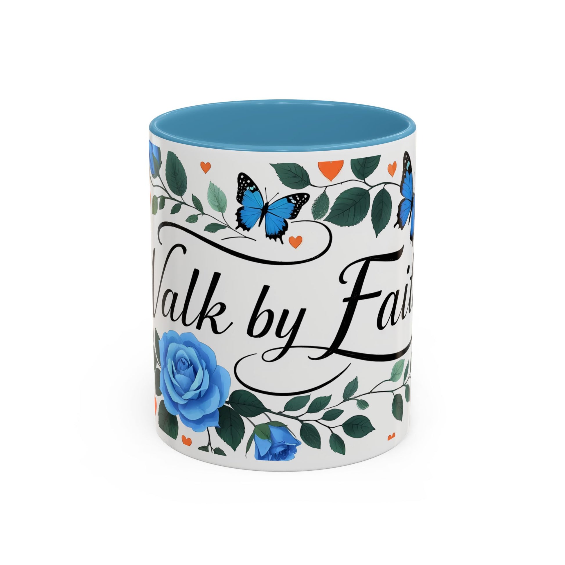 Faith Floral Coffee Mug — “Walk by Faith” Blue Roses & Butterflies Accent Mug