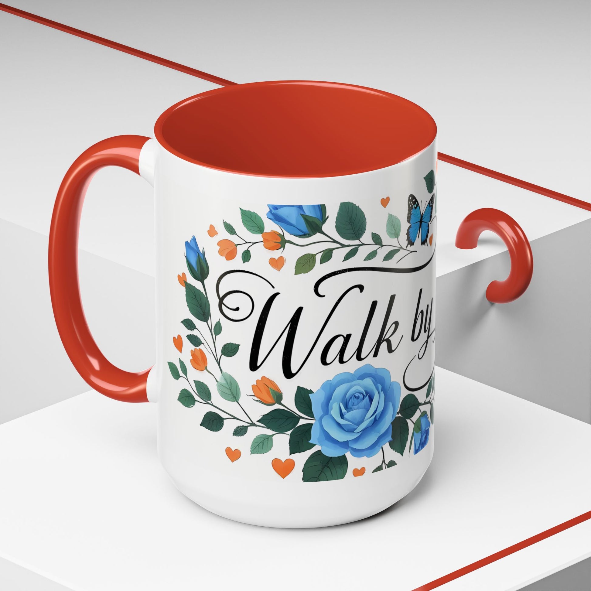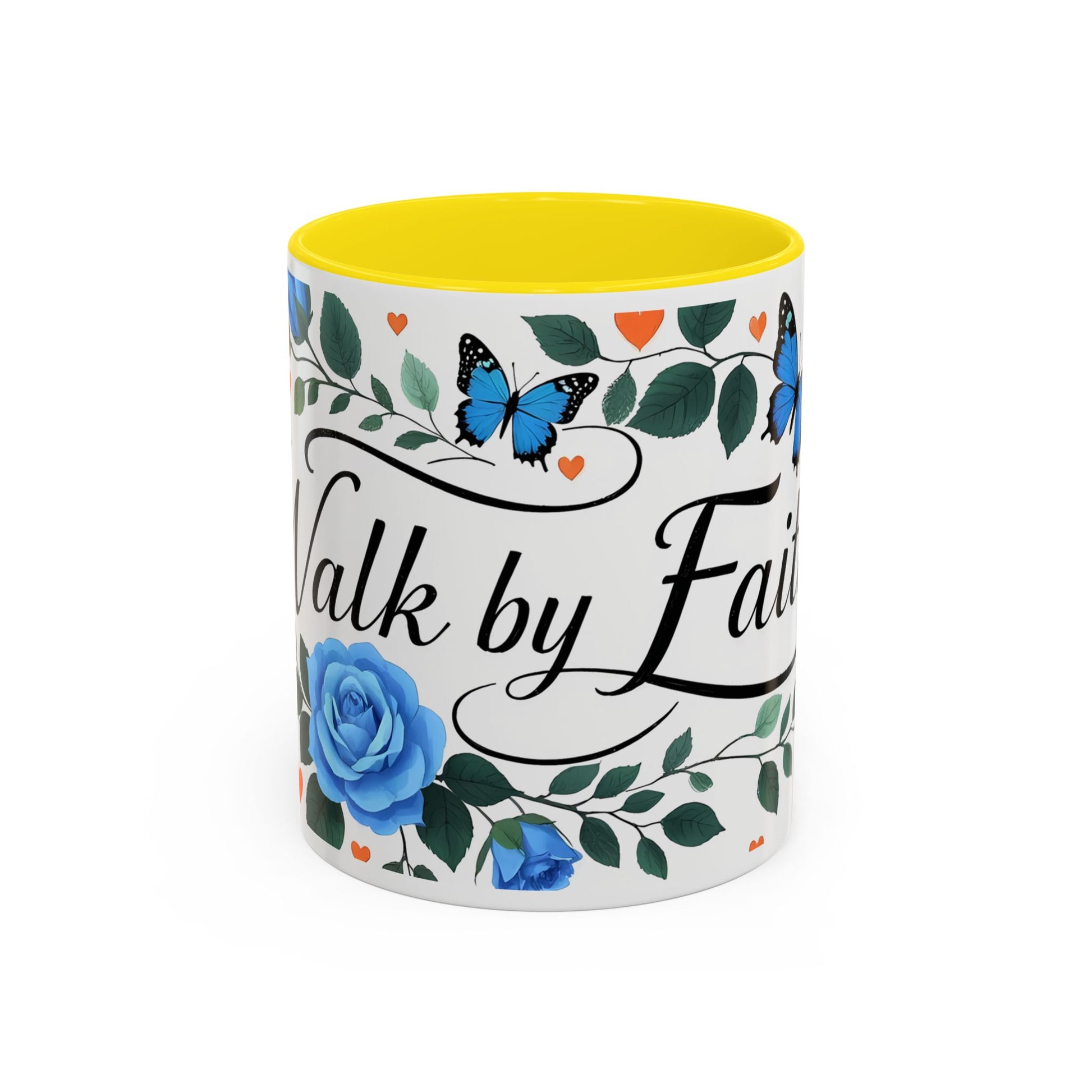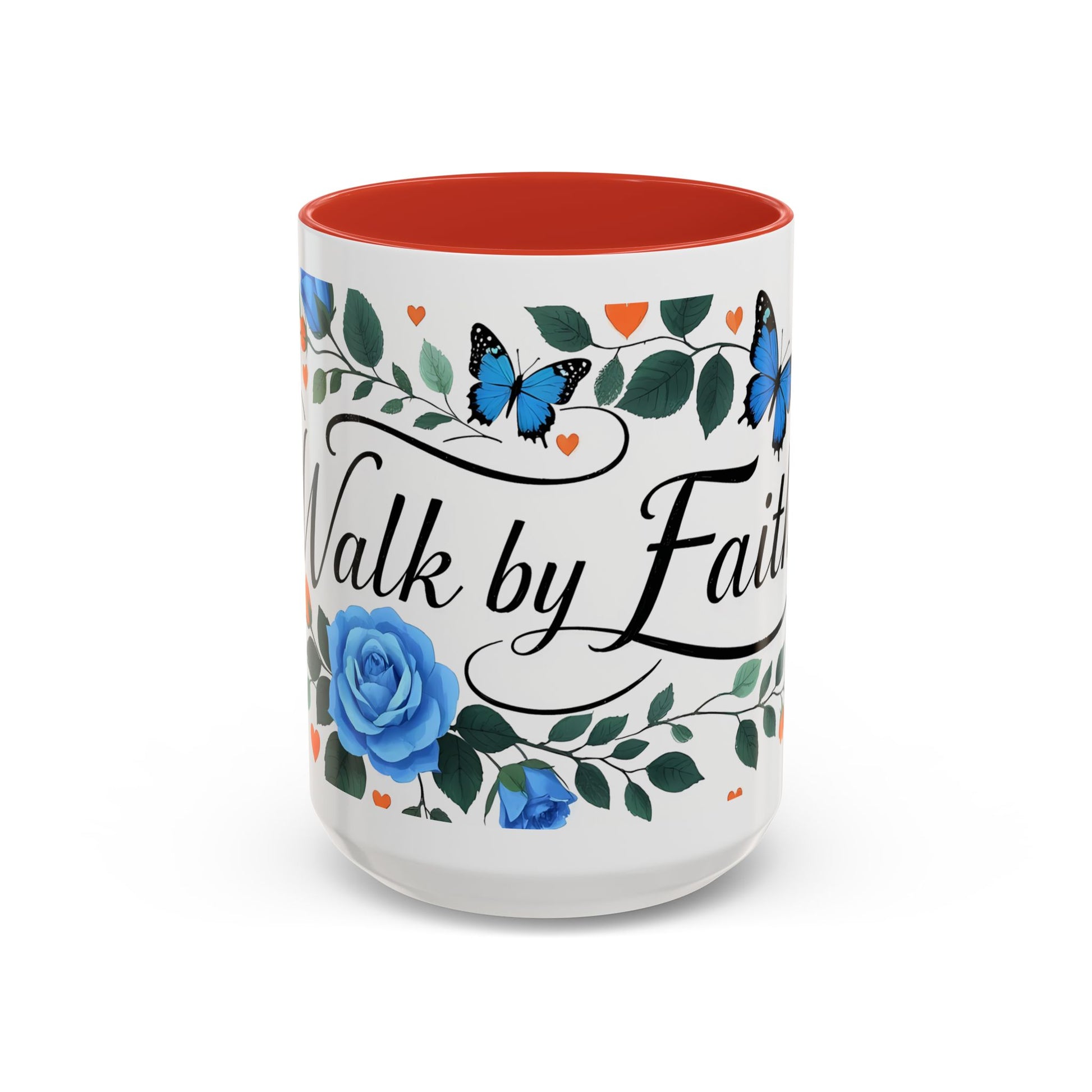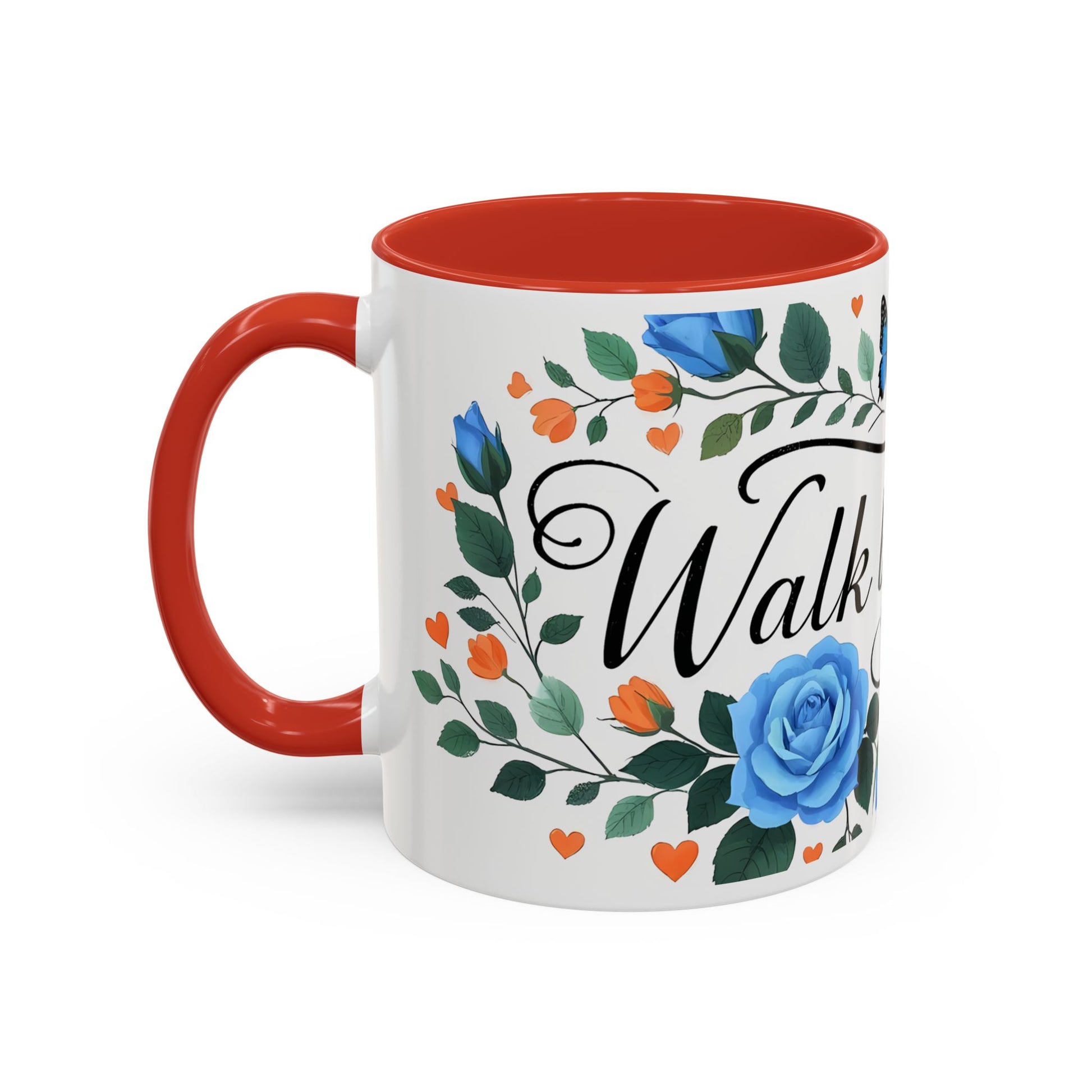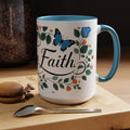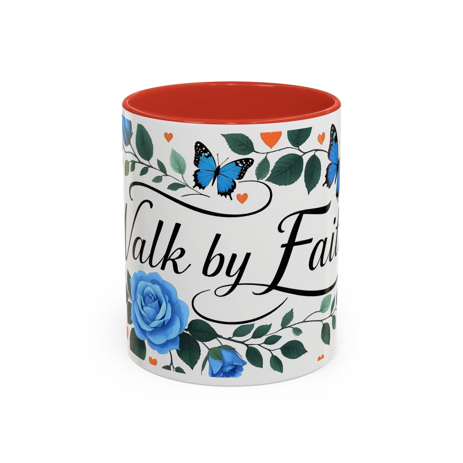 Faith Floral Coffee Mug — “Walk by Faith” Blue Roses & Butterflies Accent Mug