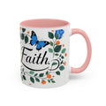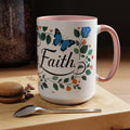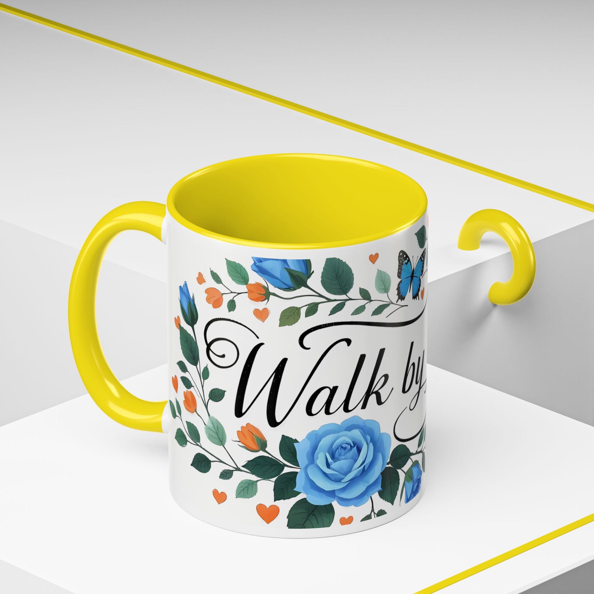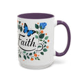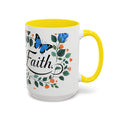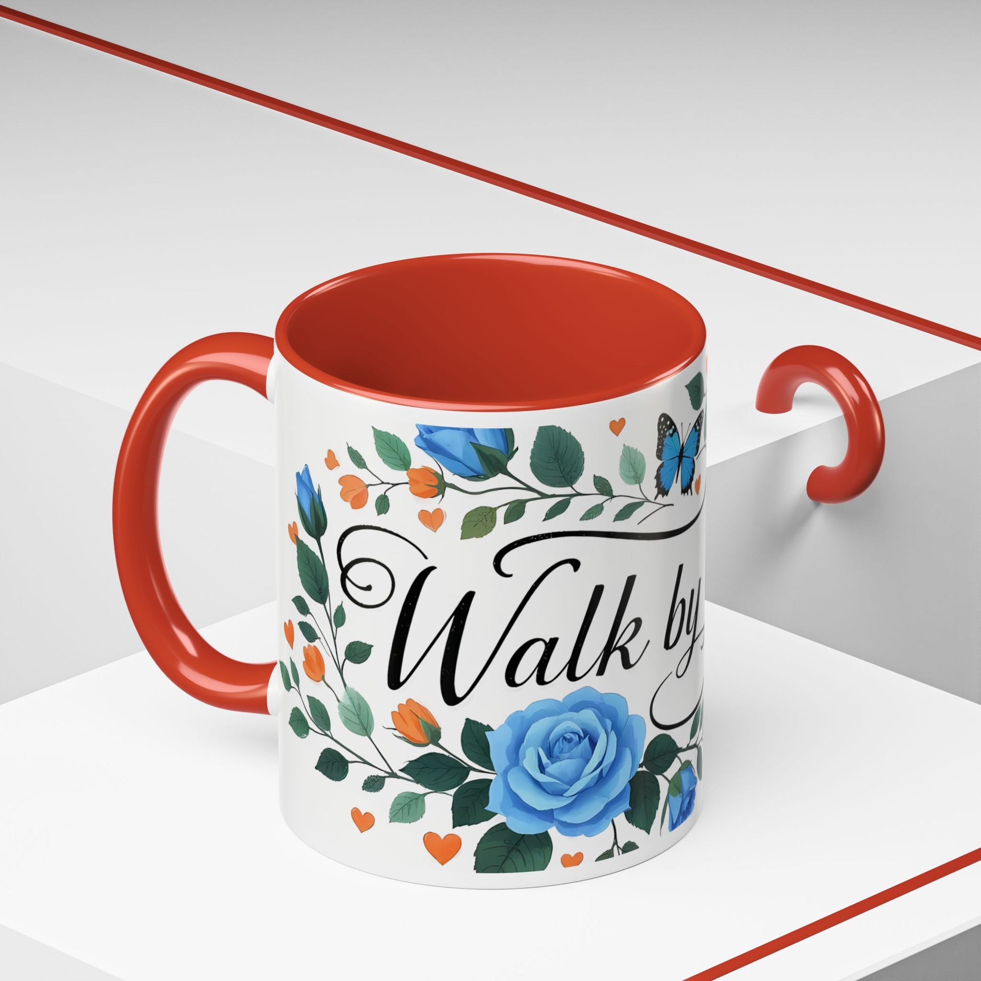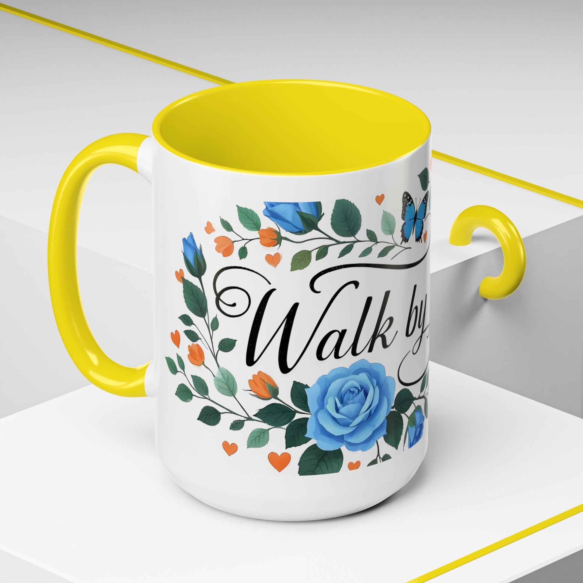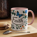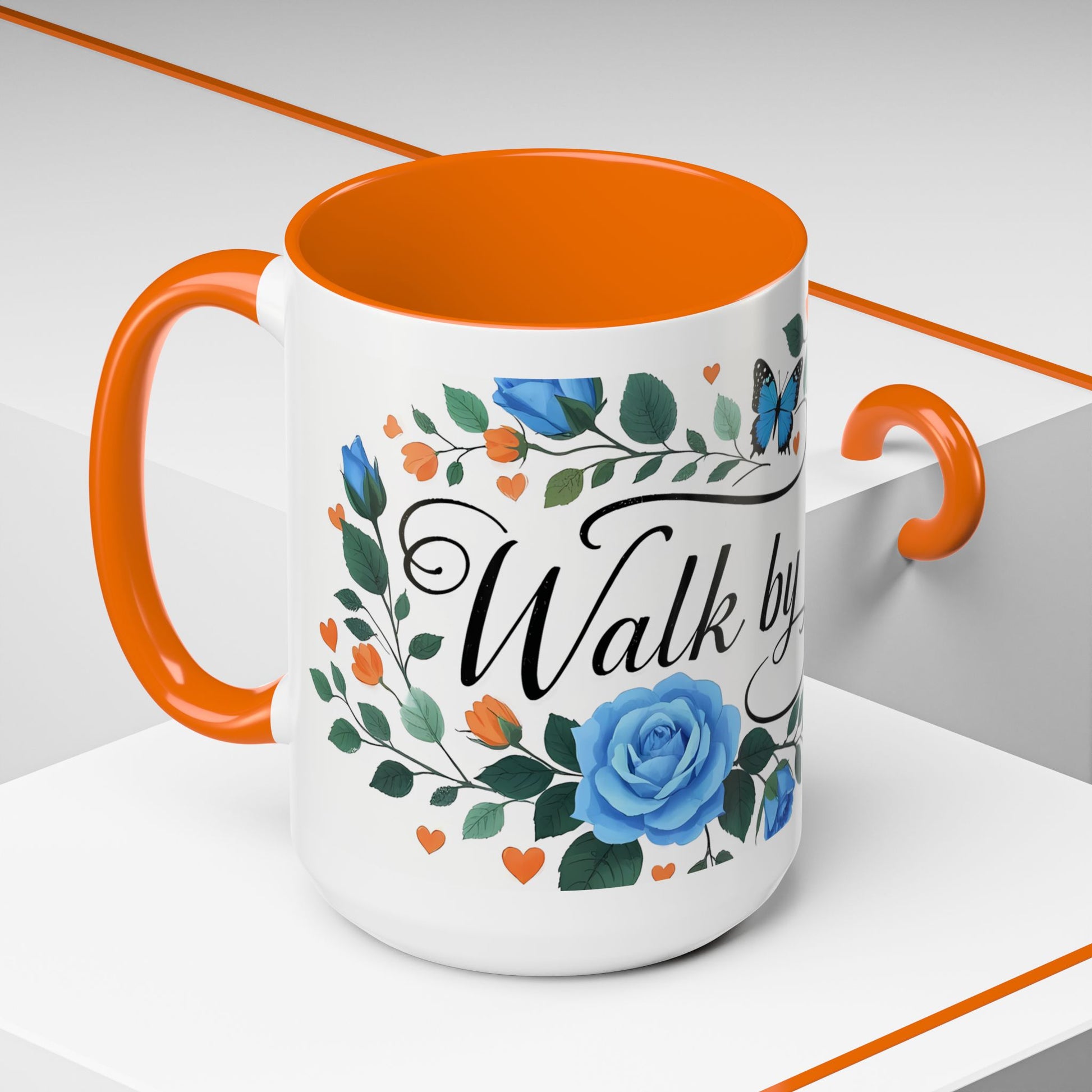 Faith Floral Coffee Mug — “Walk by Faith” Blue Roses & Butterflies Accent Mug