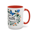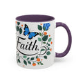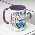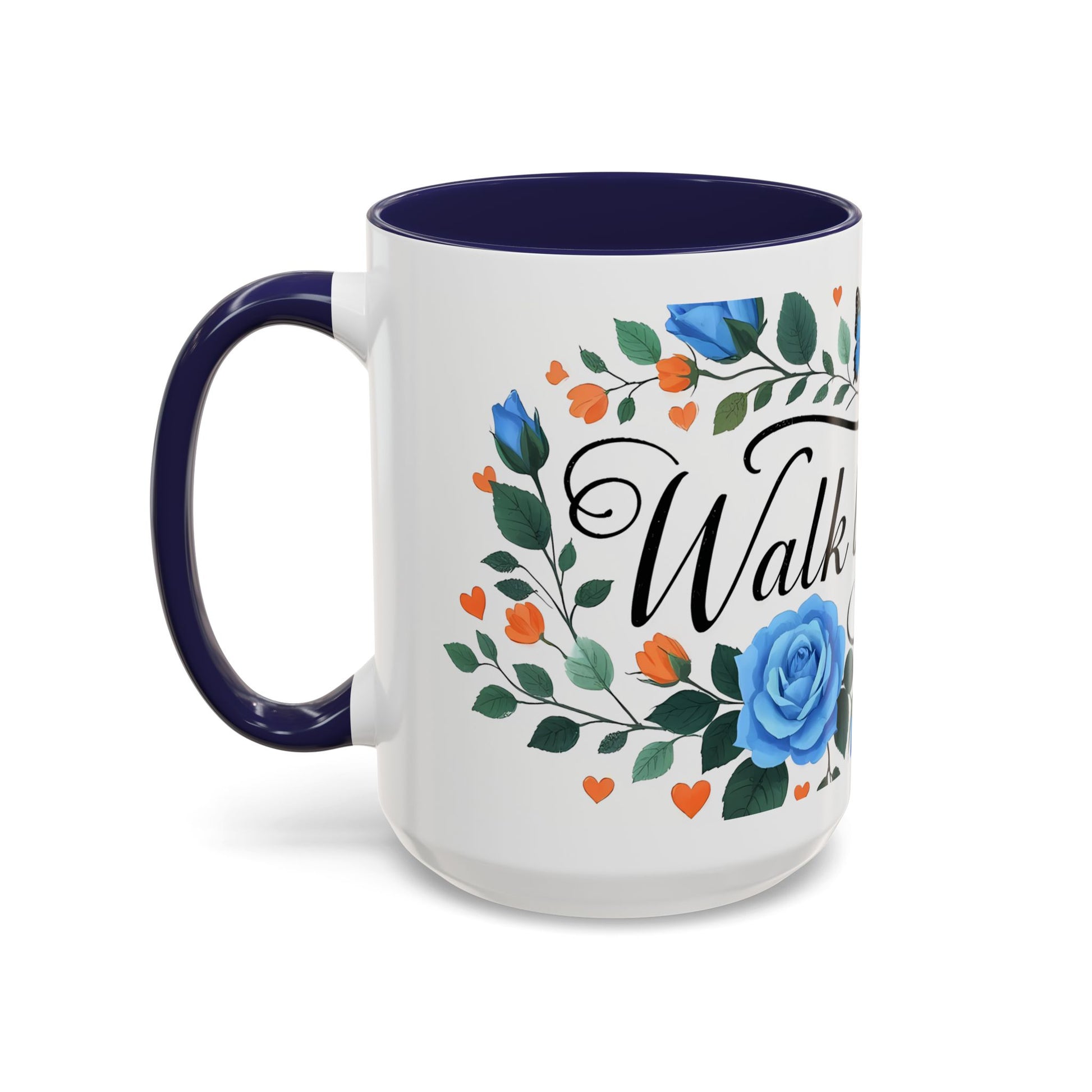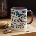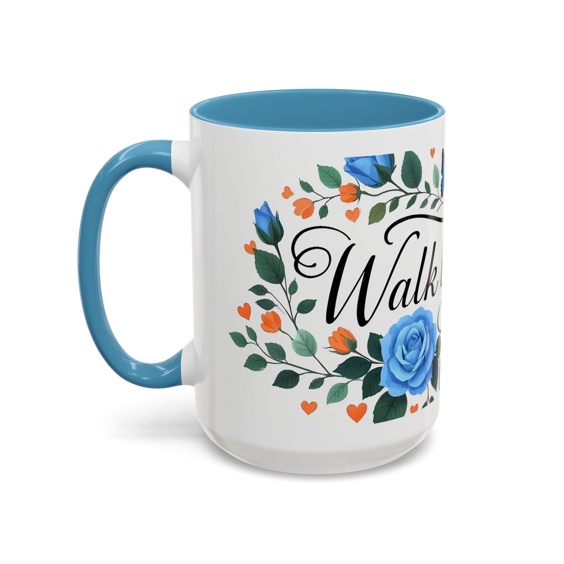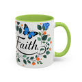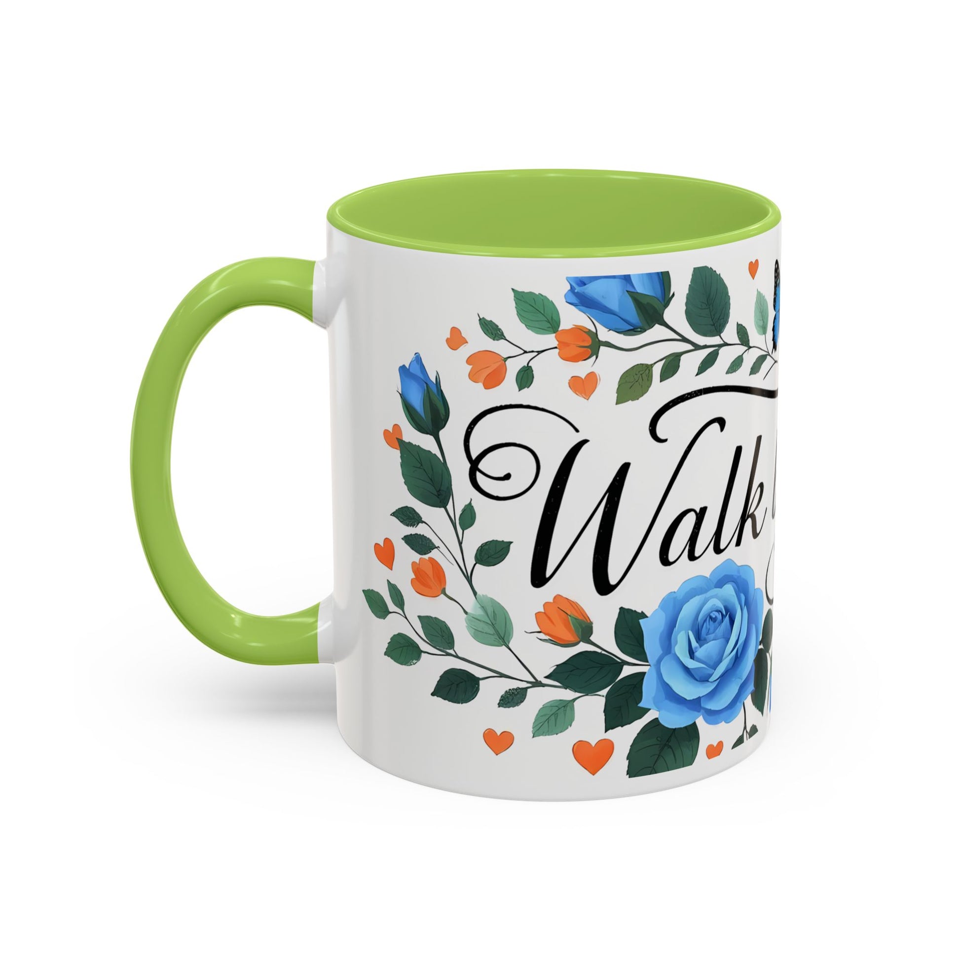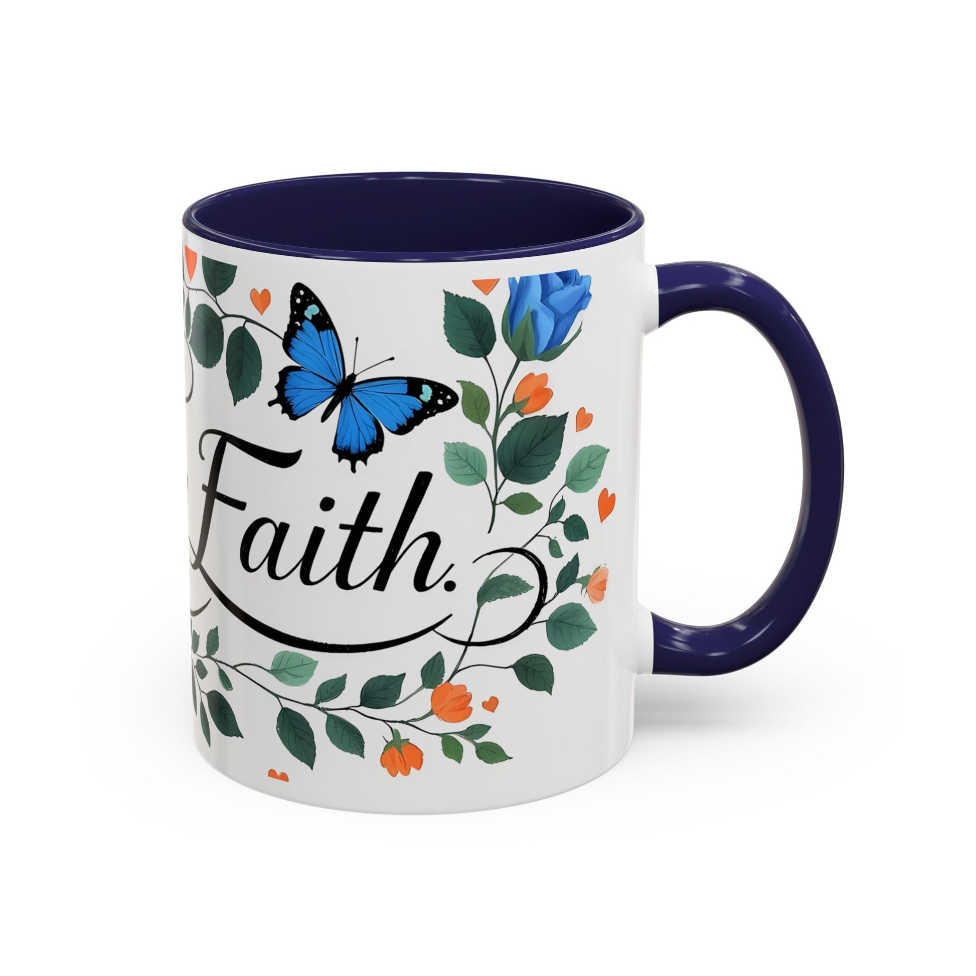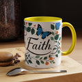 Faith Floral Coffee Mug — “Walk by Faith” Blue Roses & Butterflies Accent Mug