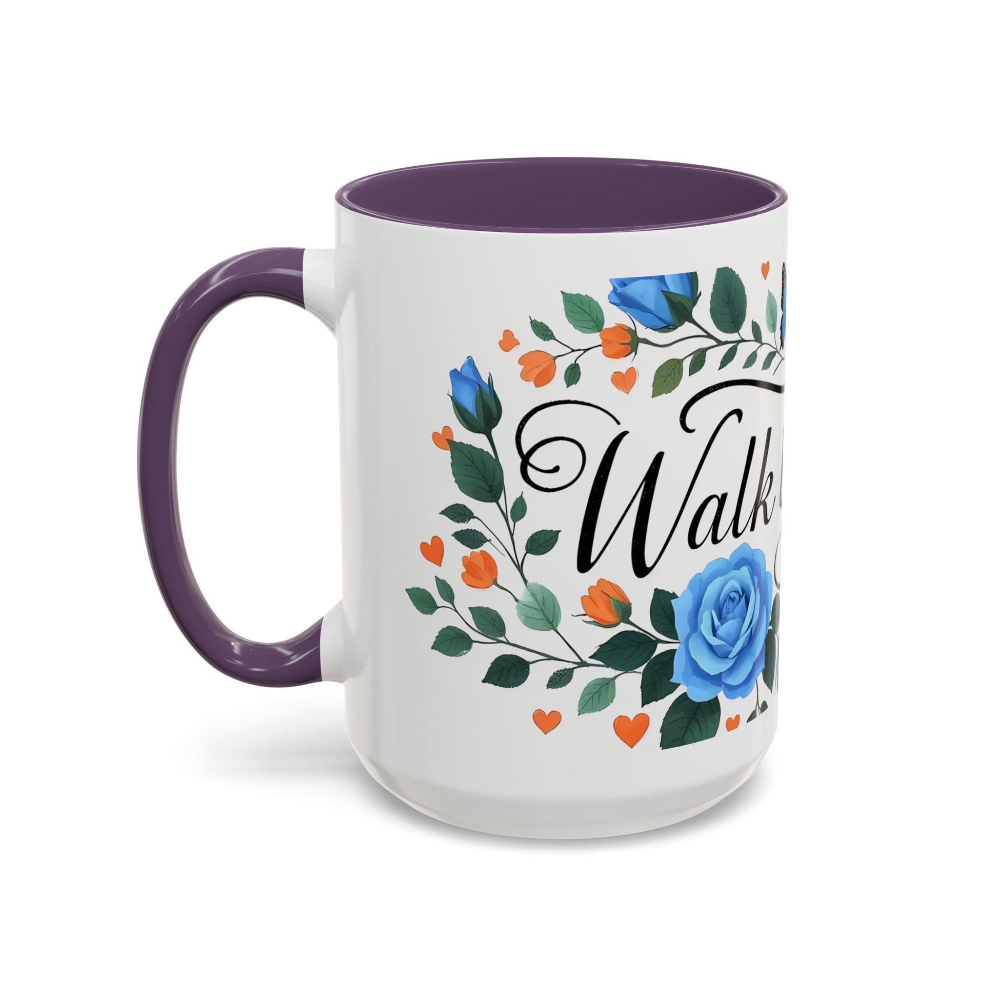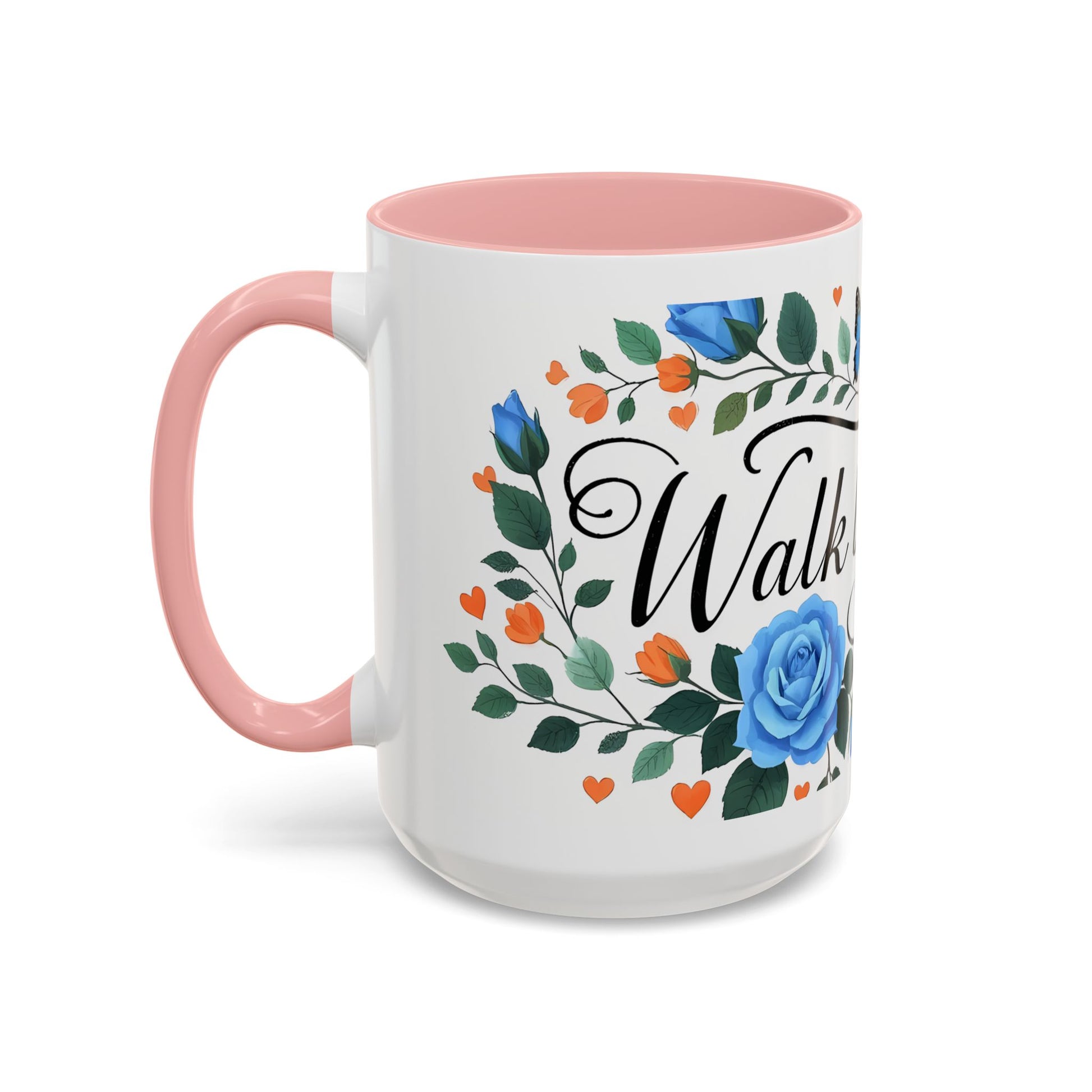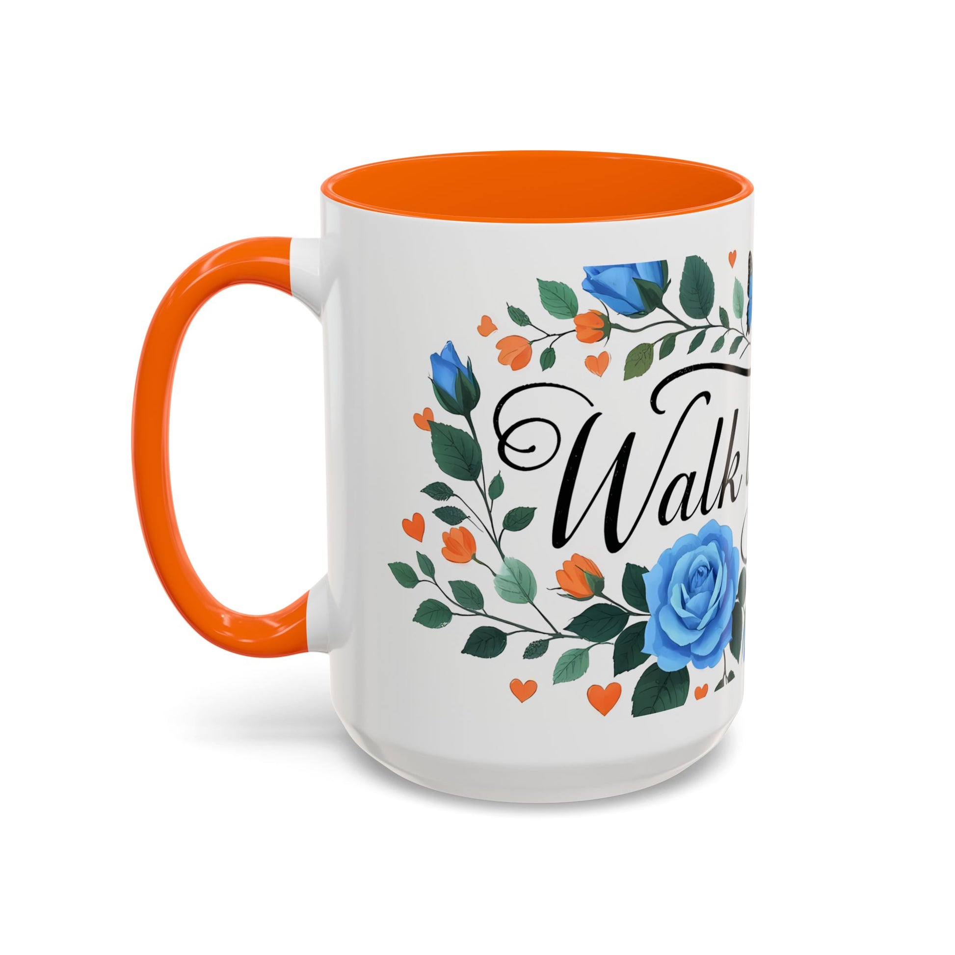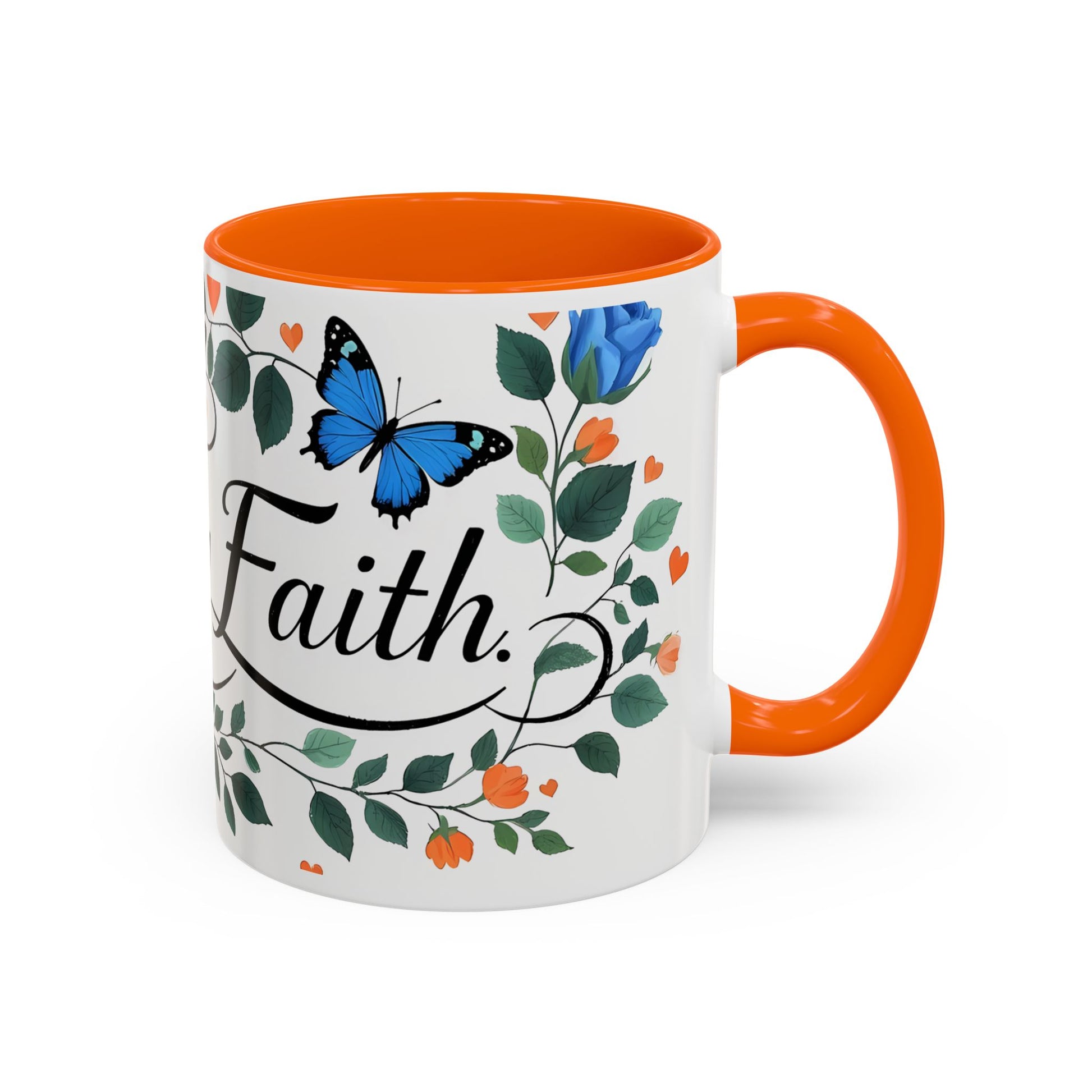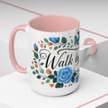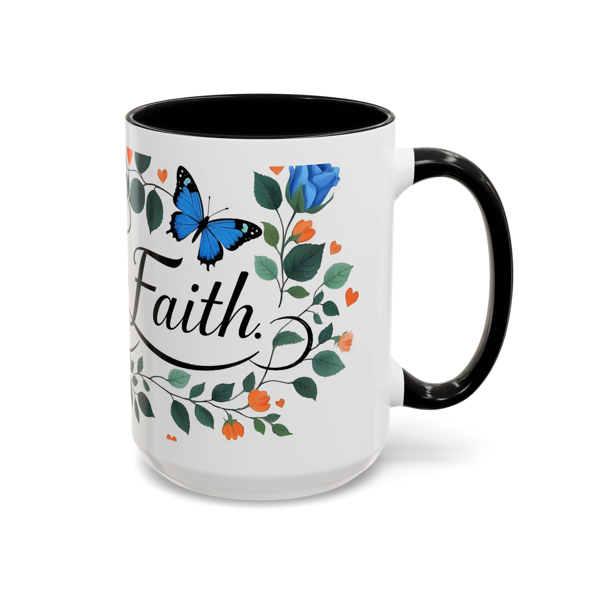Faith Floral Coffee Mug — “Walk by Faith” Blue Roses & Butterflies Accent Mug