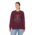 A soft, midweight crewneck that reads like a quiet declaration. The clean white canvas carries a vintage-inspired graphic—bold red lettering above a subtle monochrome portrait and swirled script—so the message lands without shouting. It sits comfortably in the rhythm of everyday wear: layer it over a tee for cool mornings, pull it on for travel days, or let it anchor a relaxed outfit on a weekend coffee run. The feel is familiar and steady; the design hints at conviction and calm rather than flash. This sweatshirt ages into your rotation, keeping its shape and character through washes while the embroidery and print details retain their clarity.