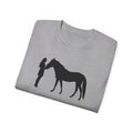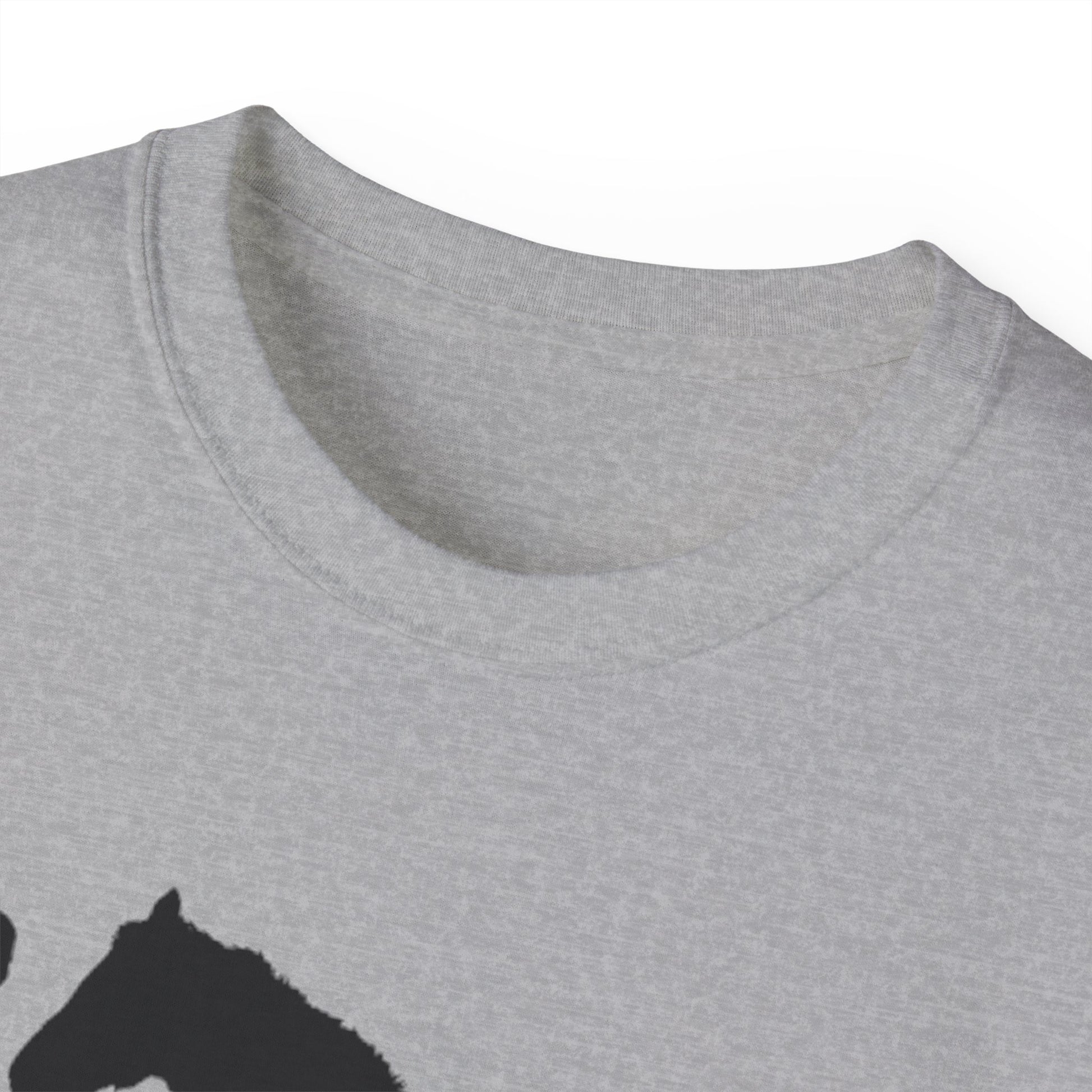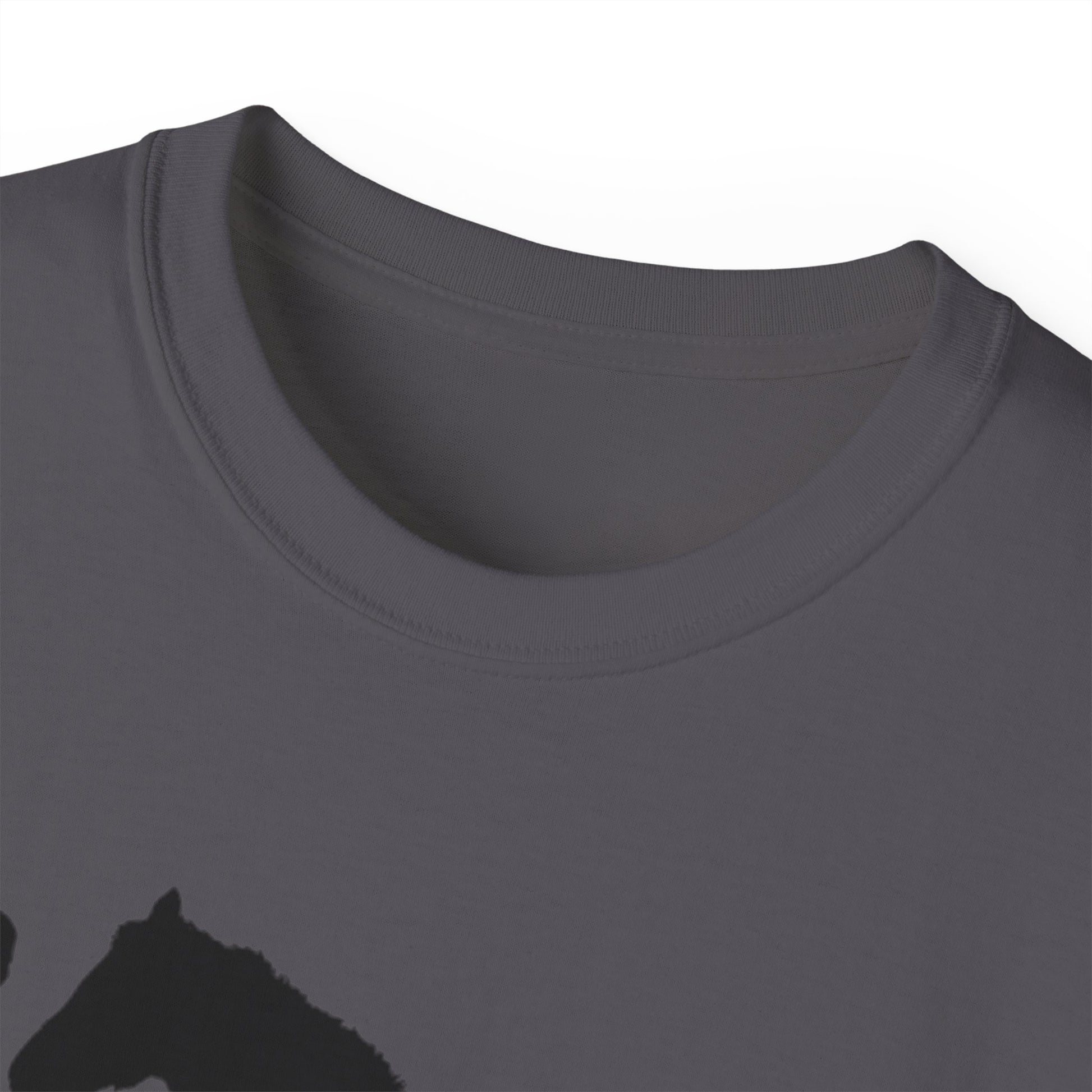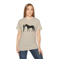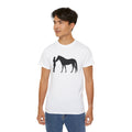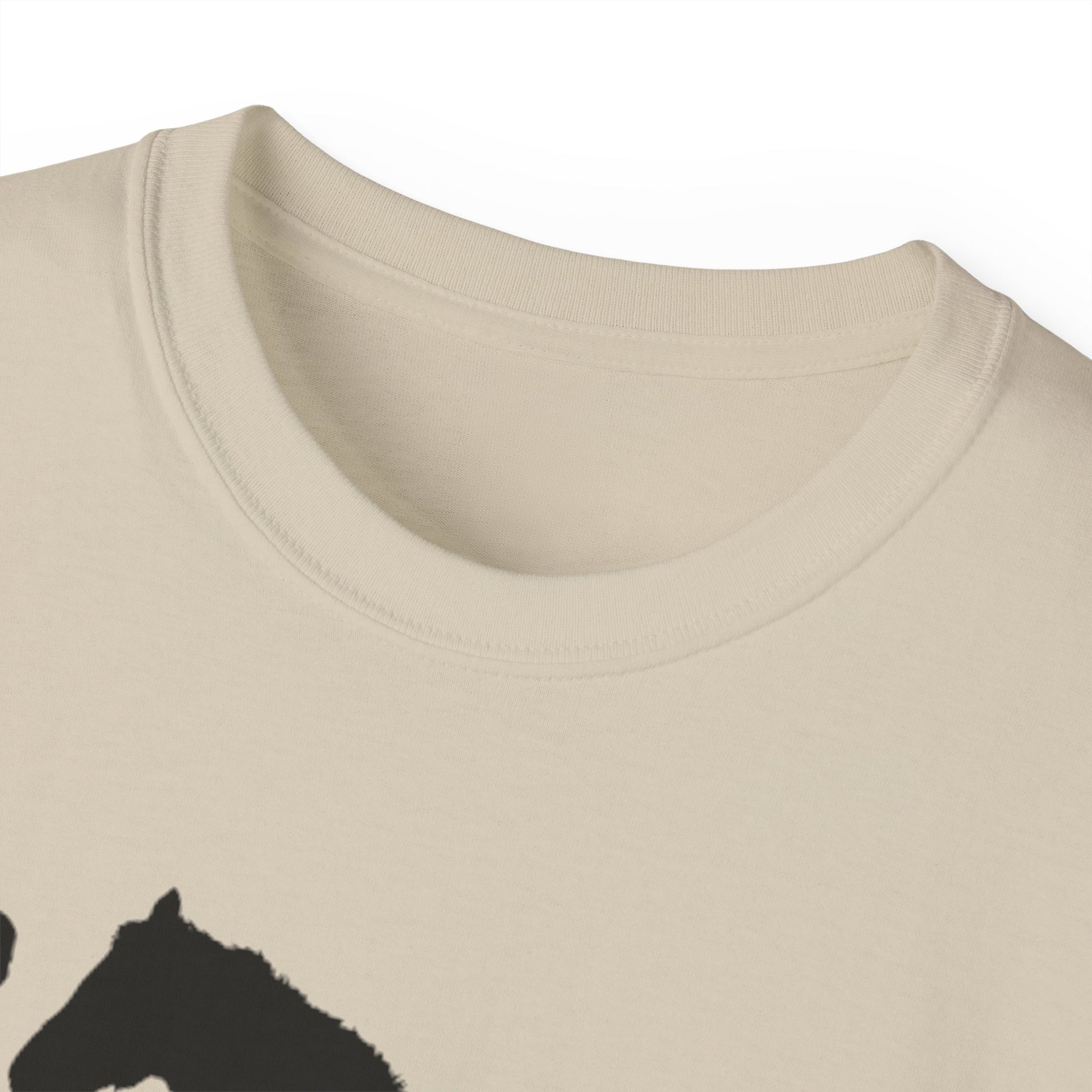 A soft, vintage-feel tee that speaks quietly to anyone who lives for the barn, the trail, or slow mornings with a faithful horse at their side. The front shows a simple black silhouette of a person and horse—intimate and calm—so the shirt reads like a small, everyday tribute to the quiet bond between rider and companion. It sits a little roomy for easy layering over a flannel or under a vest, so it goes from early-morning chores to a casual night around the fire without fuss. Ethically grown U.S. cotton gives the fabric a lived-in weight and subtle texture that only improves over washes. Wear it when you want comfort that feels honest and a design that starts conversations rather than shouting for attention.