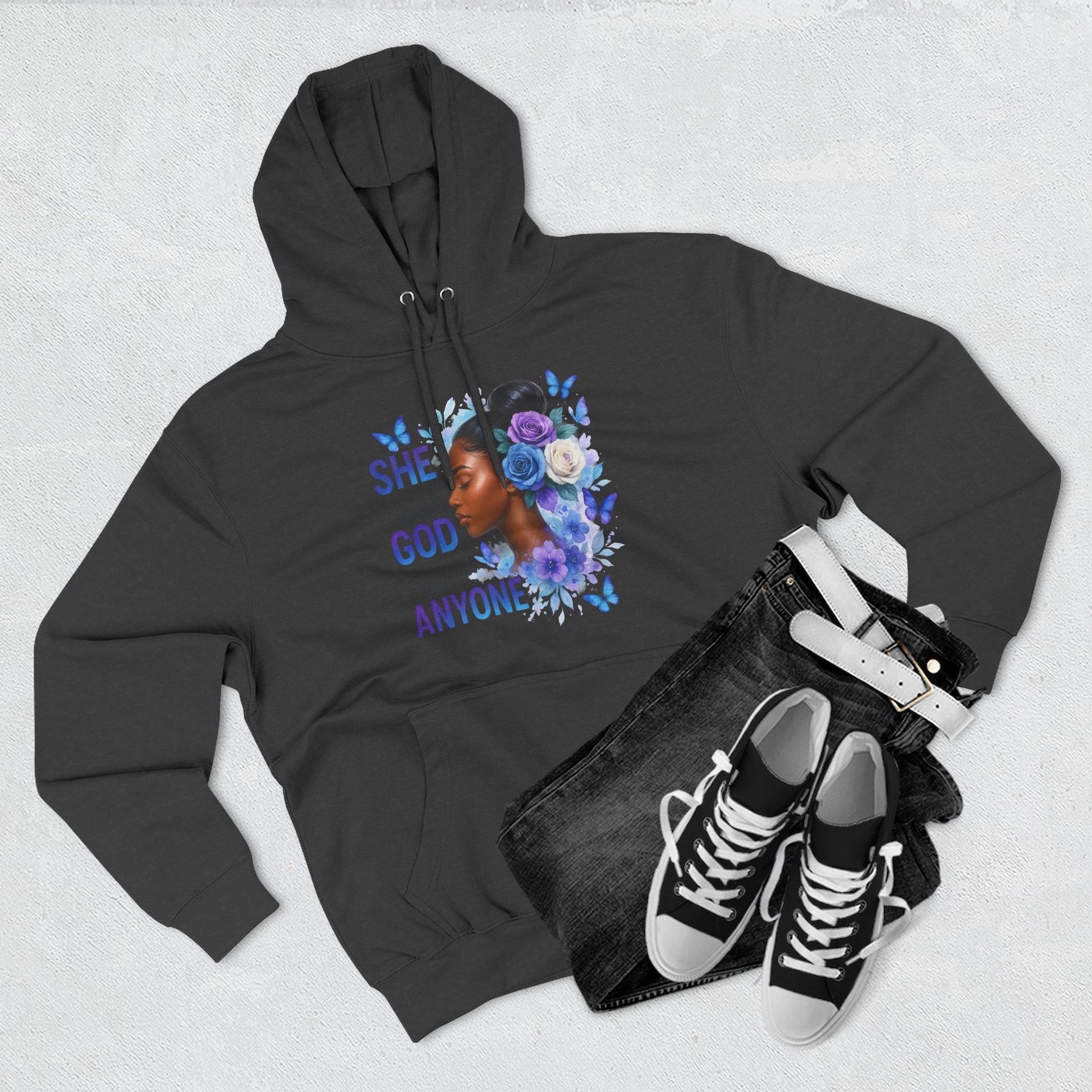 Inspirational Faith Hoodie — "She Who Believes in God Can Stand Against Anyone"
