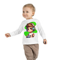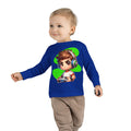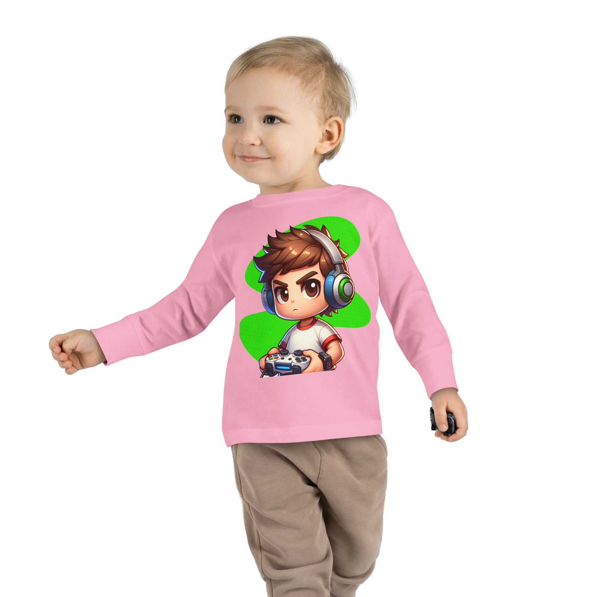 A cozy long-sleeve tee made for little gamers who love bright, playful style. Soft, lightweight cotton gently moves with active toddlers while the colorful cartoon gamer print brings personality to everyday play. The ribbed collar and cuffs hold their shape through wear and wash, and side seams give the tee a tidy fit that layers easily under jackets or overalls. This shirt sits comfortably on tiny shoulders and the tear-away label keeps irritation away — great for days at the park, casual family game nights, or whenever a youngster wants to show off their love of gaming.