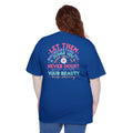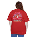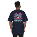 This cotton tee carries a gentle, confident message—soft colors and rounded lettering breathe warmth into a straightforward silhouette. The small, cheerful crest on the chest hints at what waits behind: a larger, uplifting mantra across the back that reads like a pep-talk from a friend. Wear it on slow mornings, errands, or when you need a quiet reminder to trust your own worth. The relaxed, classic fit drapes easily over jeans or layered under a jacket, while the durable construction means the message stays with you wash after wash.