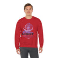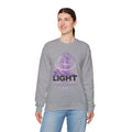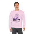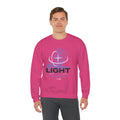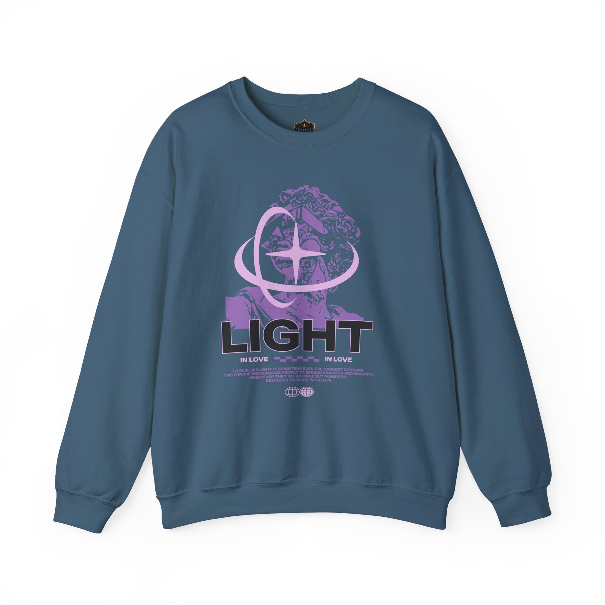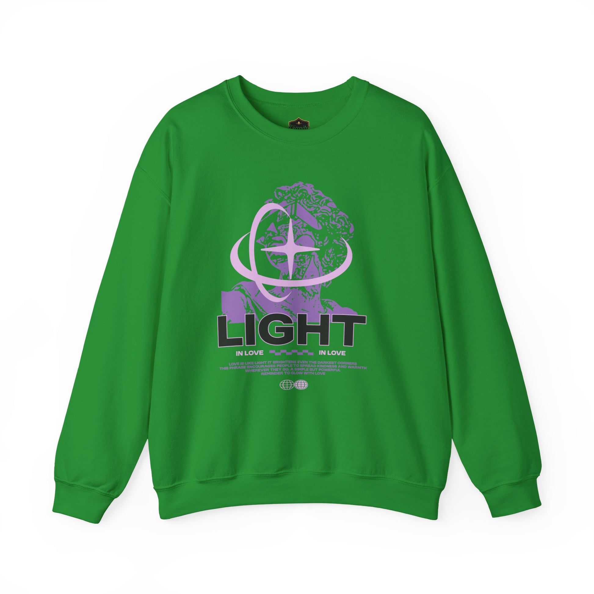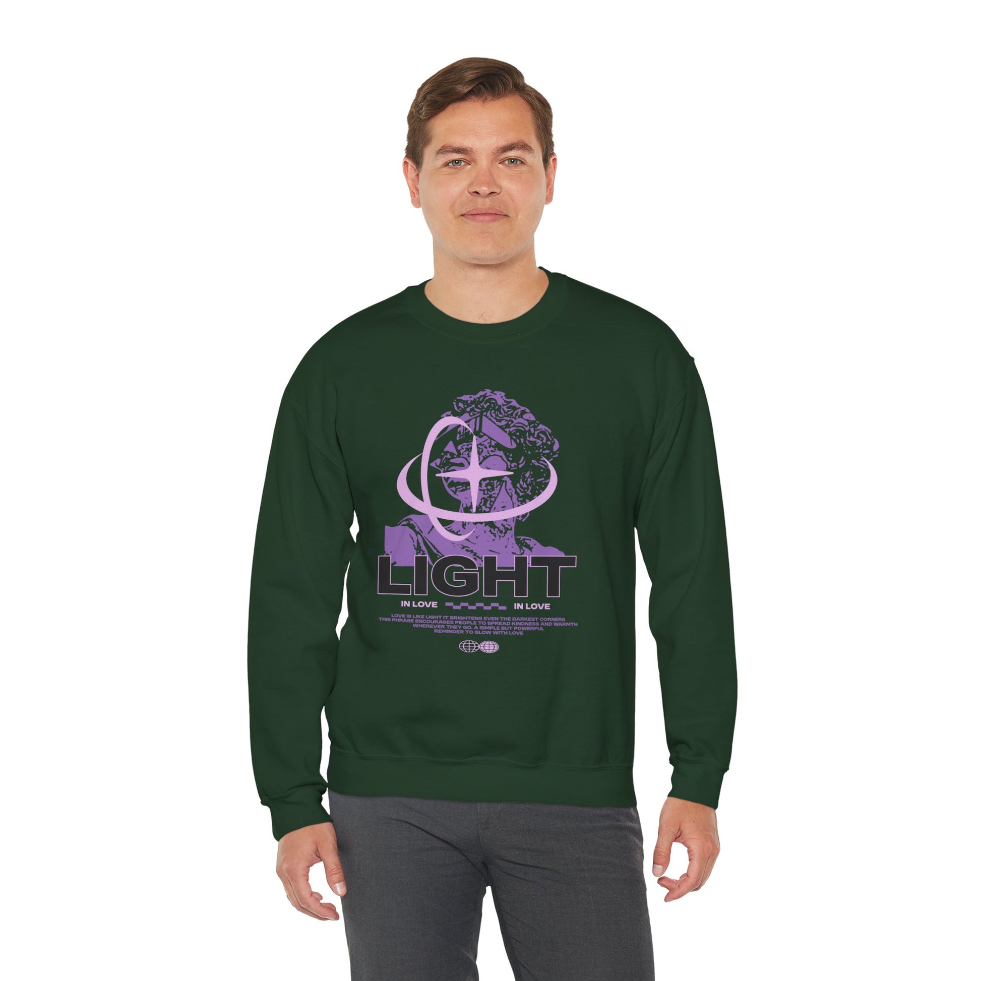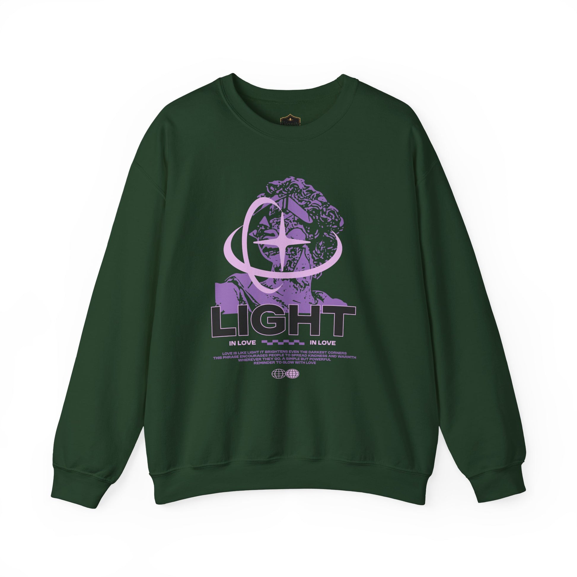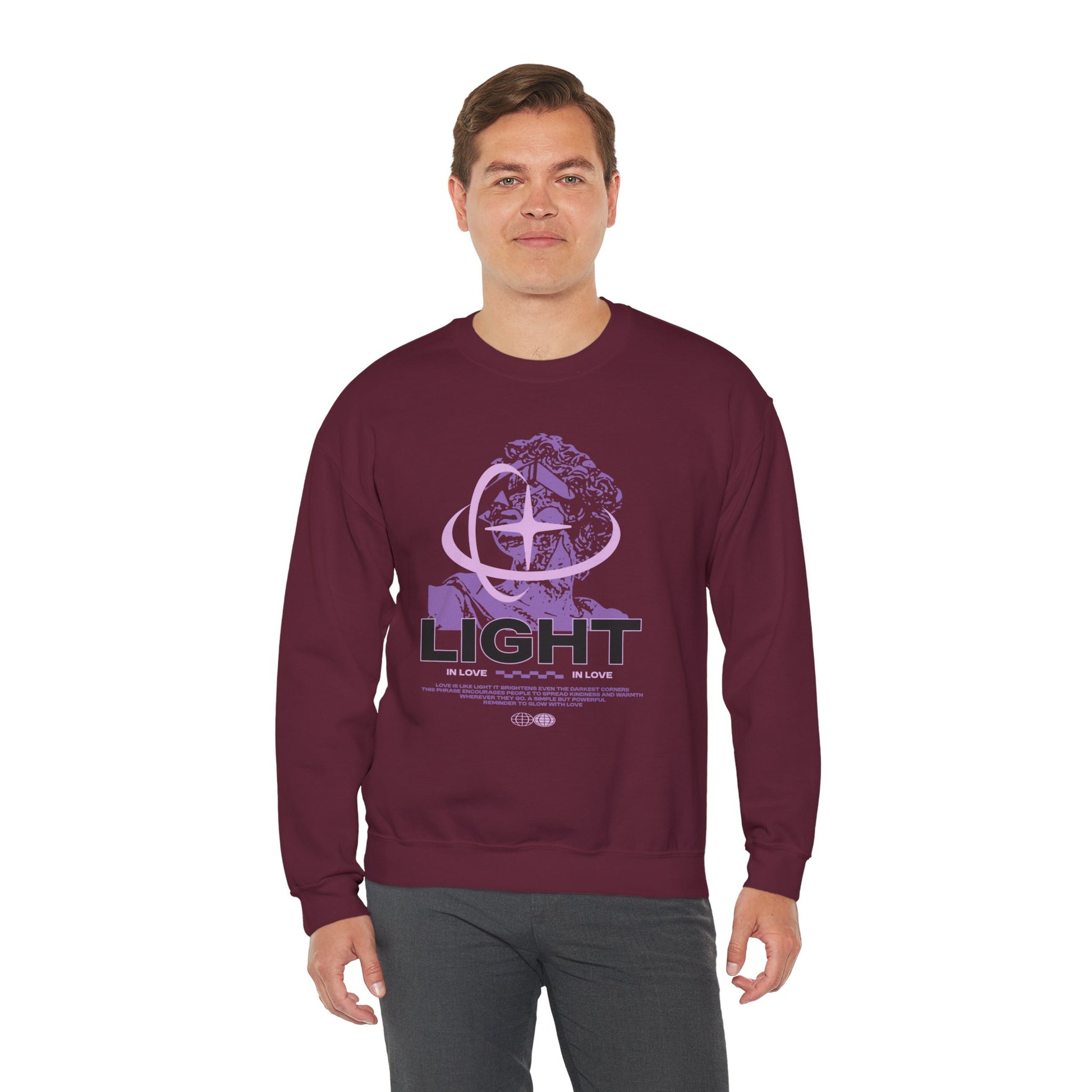 This cozy crewneck sweatshirt carries a quiet, modern vibe — a soft white canvas with a lavender-toned graphic that reads LIGHT beneath an abstract, layered illustration. It feels like an early-morning walk through a city just waking up: calm energy, a little mystery, and a gentle optimism. The medium-heavy cotton blend holds structure while remaining soft against the skin. Wear it on slow weekends, for late-night studio sessions, or layered under a coat for crisp evenings. The pared-back colorway and clean silhouette make it easy to pair with denim or joggers, while the graphic gives a subtle, artful edge that speaks to people who favor thoughtful, understated style.
