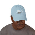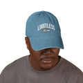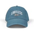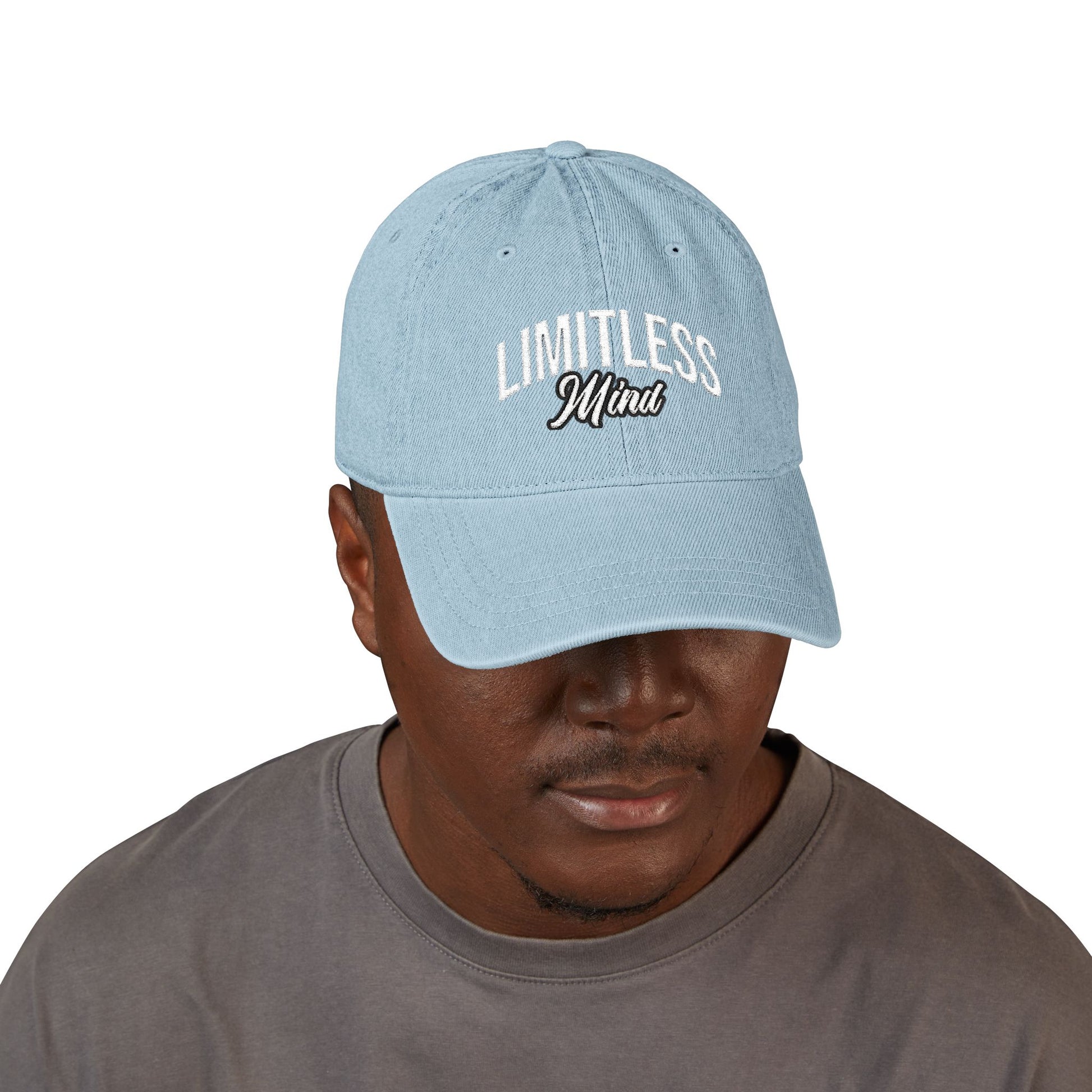 A lived-in, low-profile denim cap embroidered with a bold “LIMITLESS Mind” script across the front. The pigment-dyed cotton gives the hat a worn, vintage depth that softens with each wear. It sits low on the brow with a soft crown and six-panel unstructured build, so it drifts comfortably into your everyday rotation — whether you’re running morning errands, heading to a creative session, or stepping out for a casual meet-up. The embroidered lettering reads confident without shouting; it’s a quiet reminder to move through the day with curiosity and grit. The adjustable strap and roomy fit make it easy to share, pass along, or keep as a personal token of momentum.