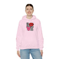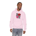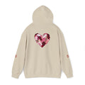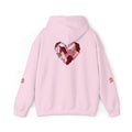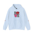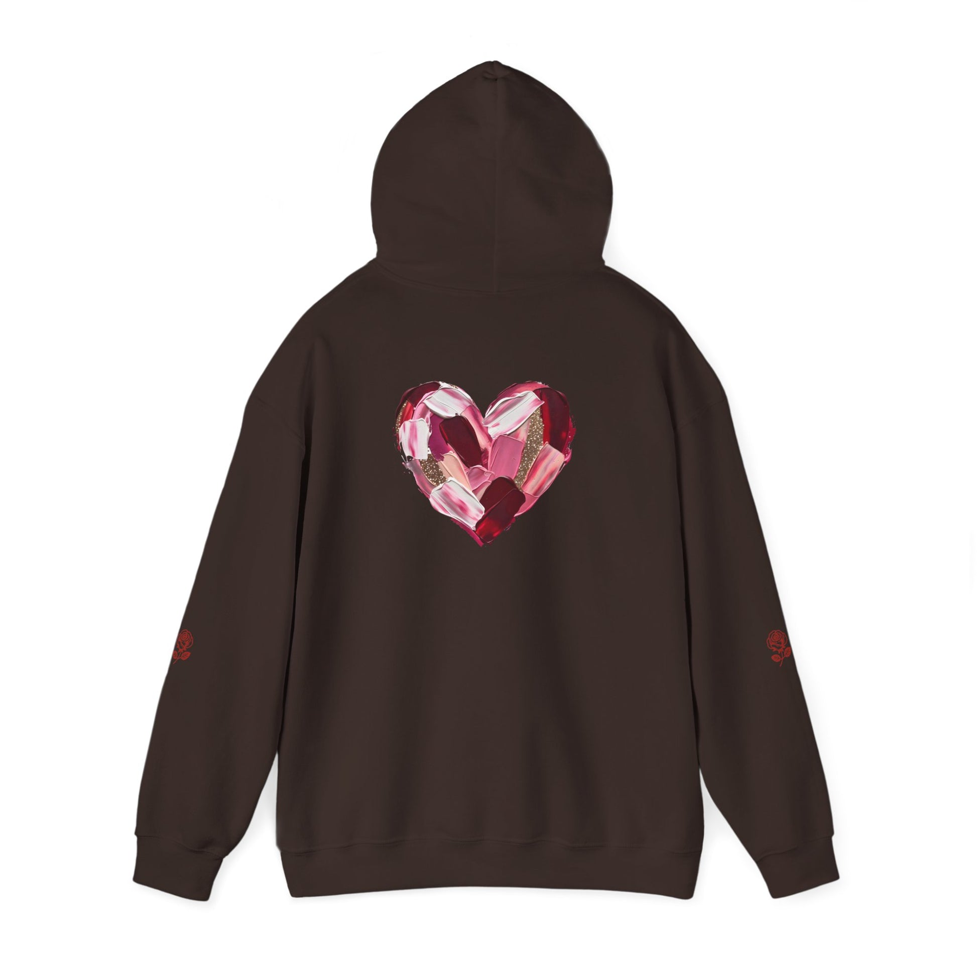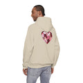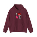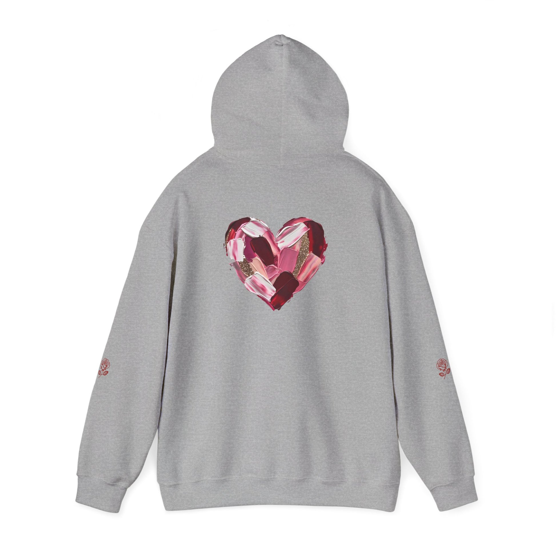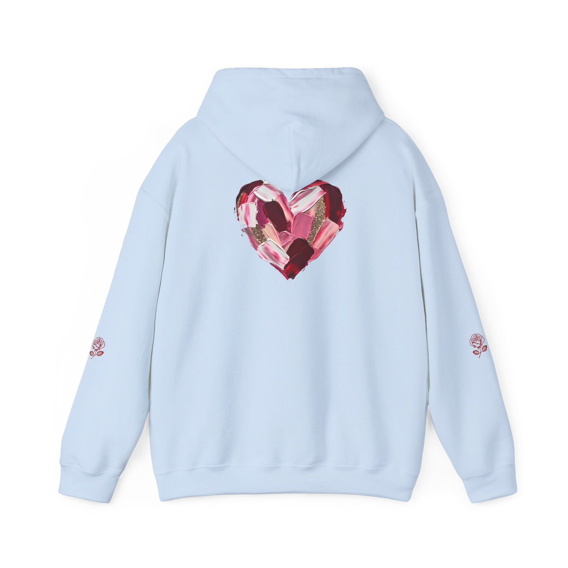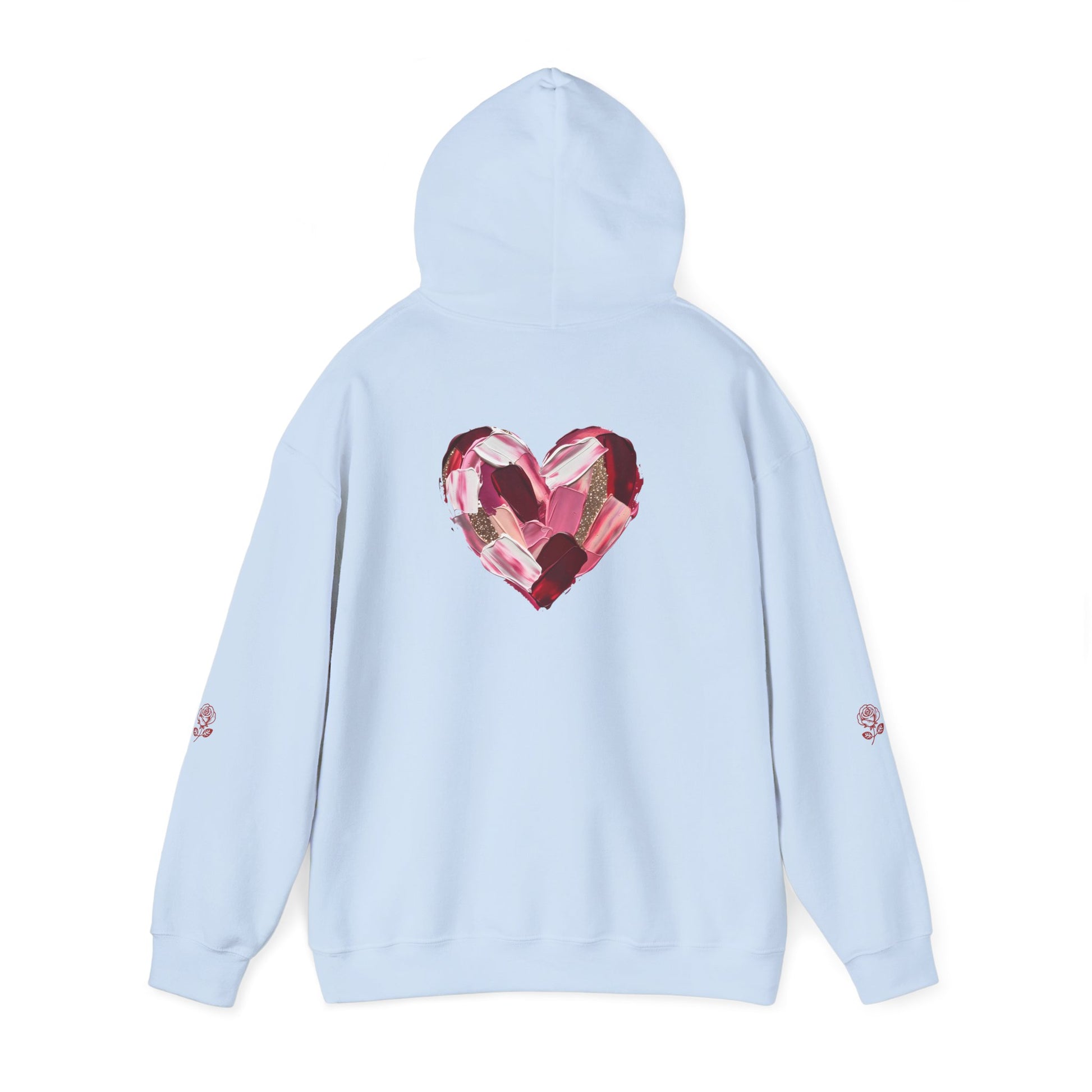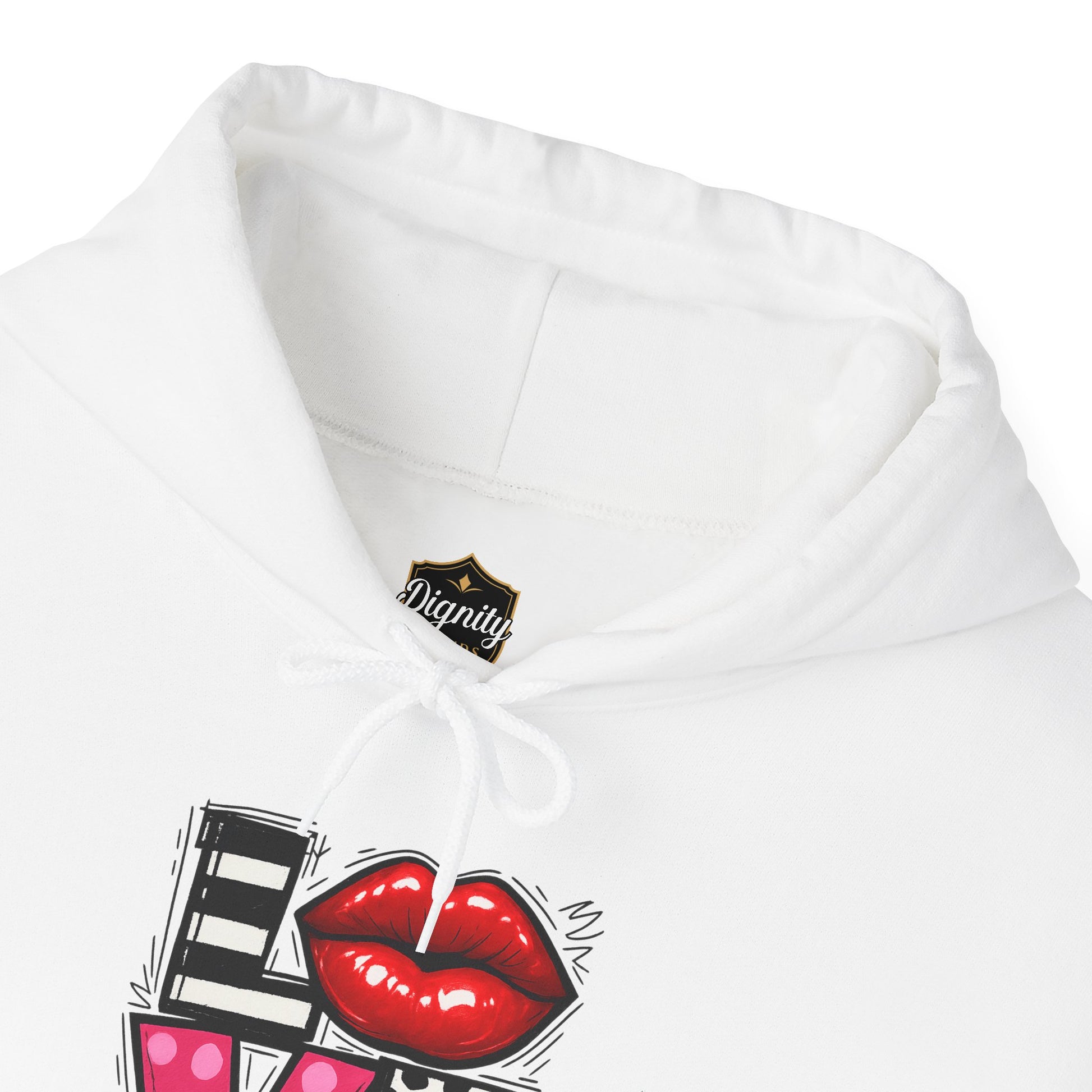This cozy hoodie carries a playful, artsy take on love—bold lip art and patterned letter blocks on the front, and a painterly heart brushed across the back. It feels like slipping into a warm studio moment: soft, slightly oversized, and made to be lived in. Wear it when you want a touch of personality with everyday comfort—layer over a tee for errands, drape it on after a long day, or pull it on for a casual date night. The kangaroo pocket and double-lined hood add practical warmth, while the subtle wrist and sleeve details extend the artwork in a low-key, stylish way.