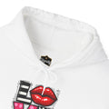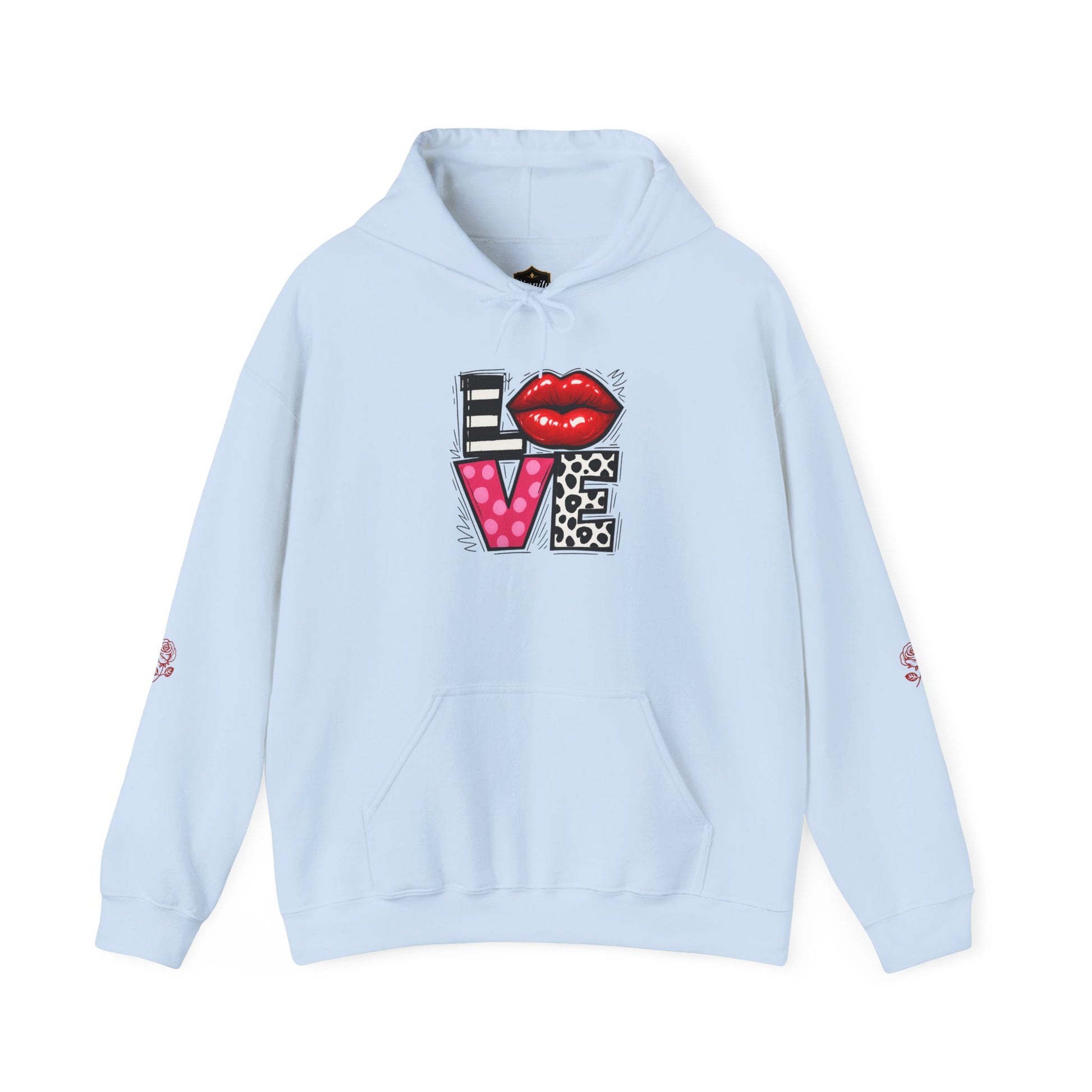 Love Graphic Hoodie — Lip & Leopard 'LOVE' Front with Brushstroke Heart Back