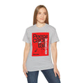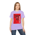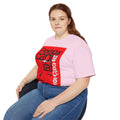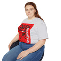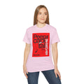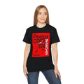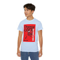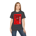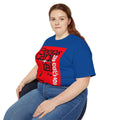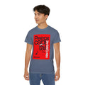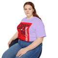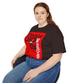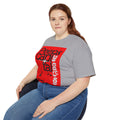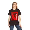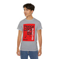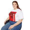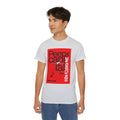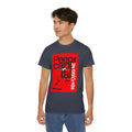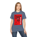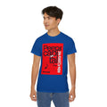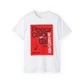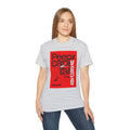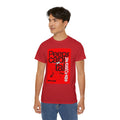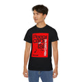 A clean, statement tee with bold, graphic energy — this midweight cotton shirt brings street-style attitude into everyday wear. The front panel features a stacked typographic design in high-contrast red and black that reads like an underground poster: chunky lettering, distressed accents, and vertical text that catches the eye. The shirt’s vintage-feel cotton and roomy cut make it comfortable for long days, while the tubular knit and taped shoulders keep the silhouette neat. Wear it to shows, creative meetups, or when you want an effortless pop of color and attitude.