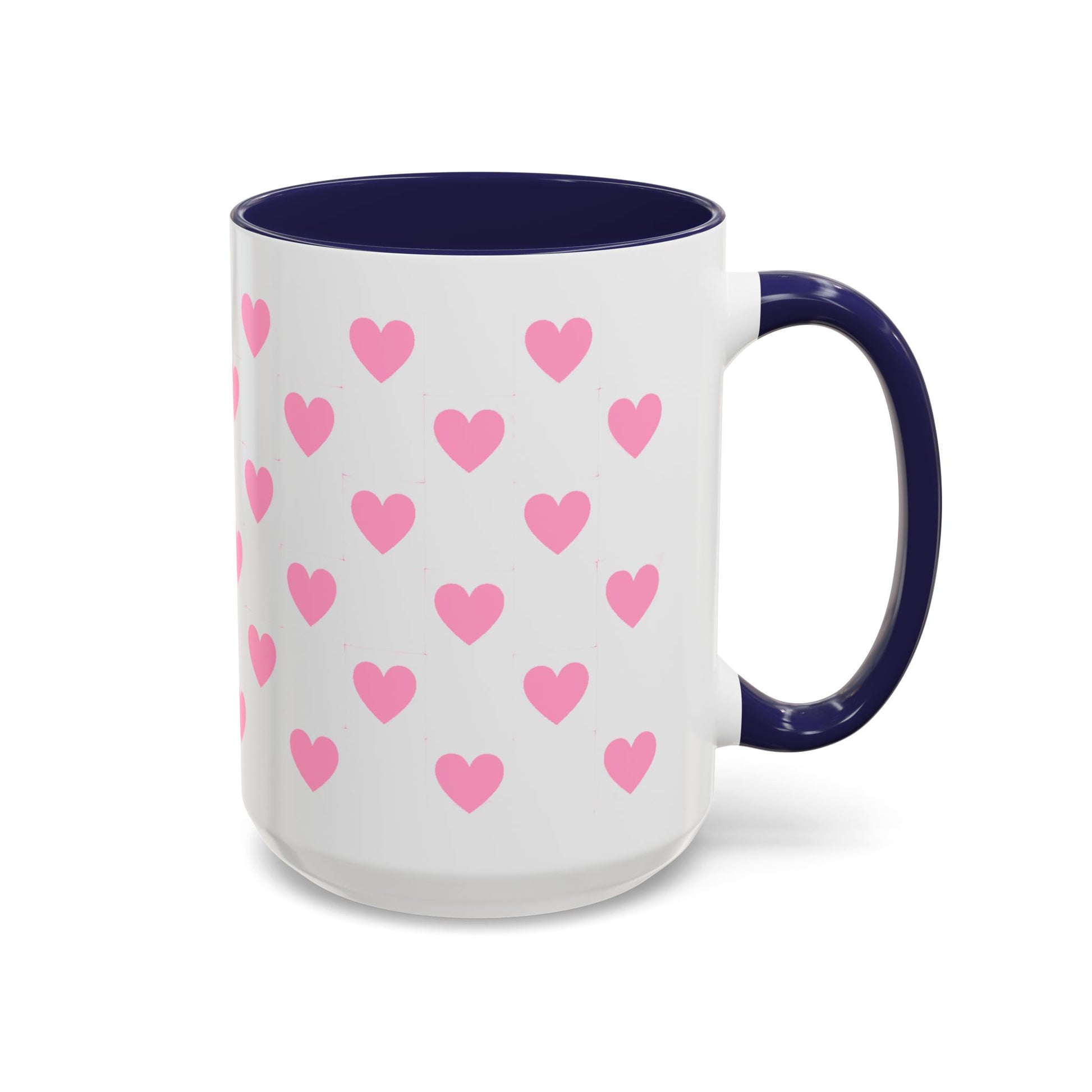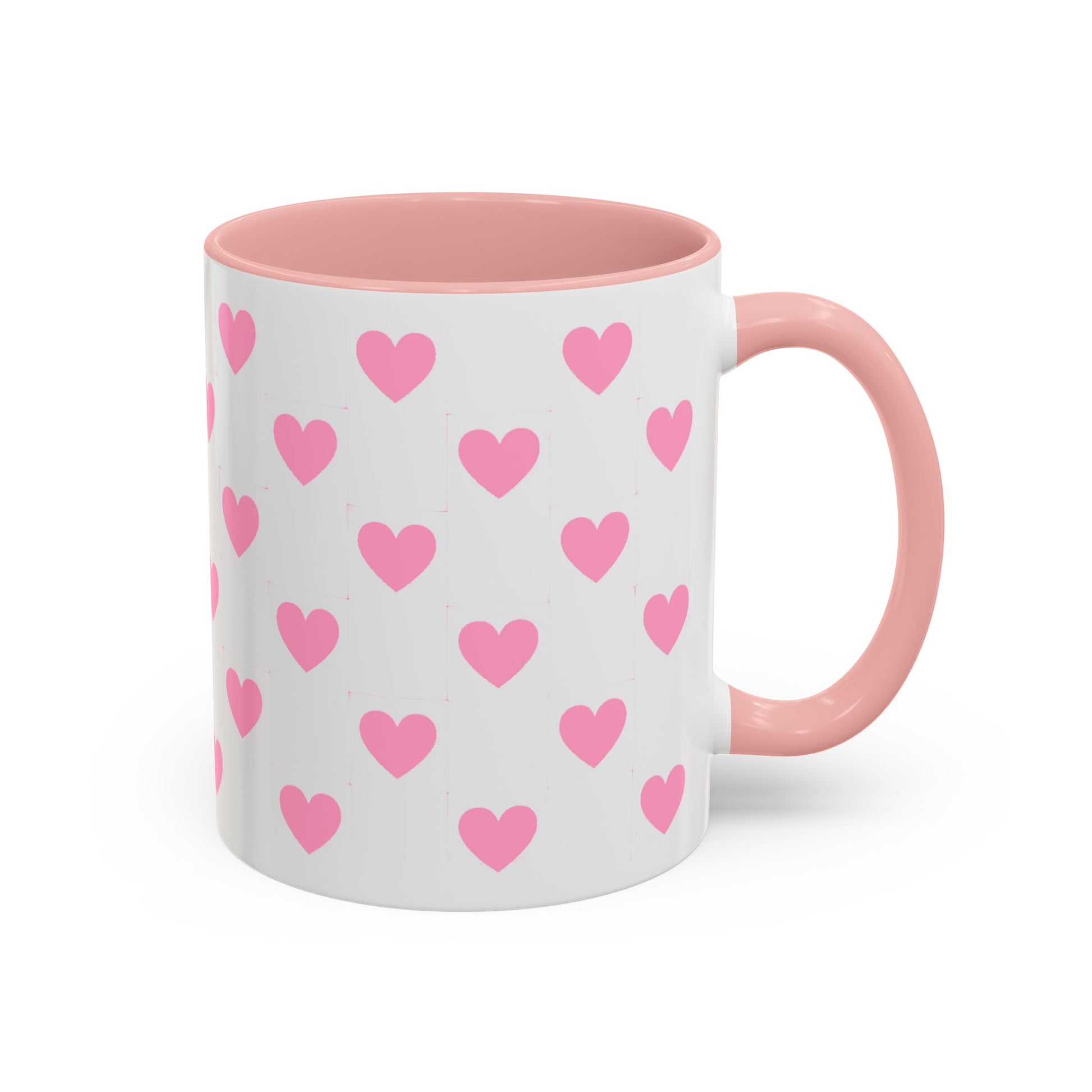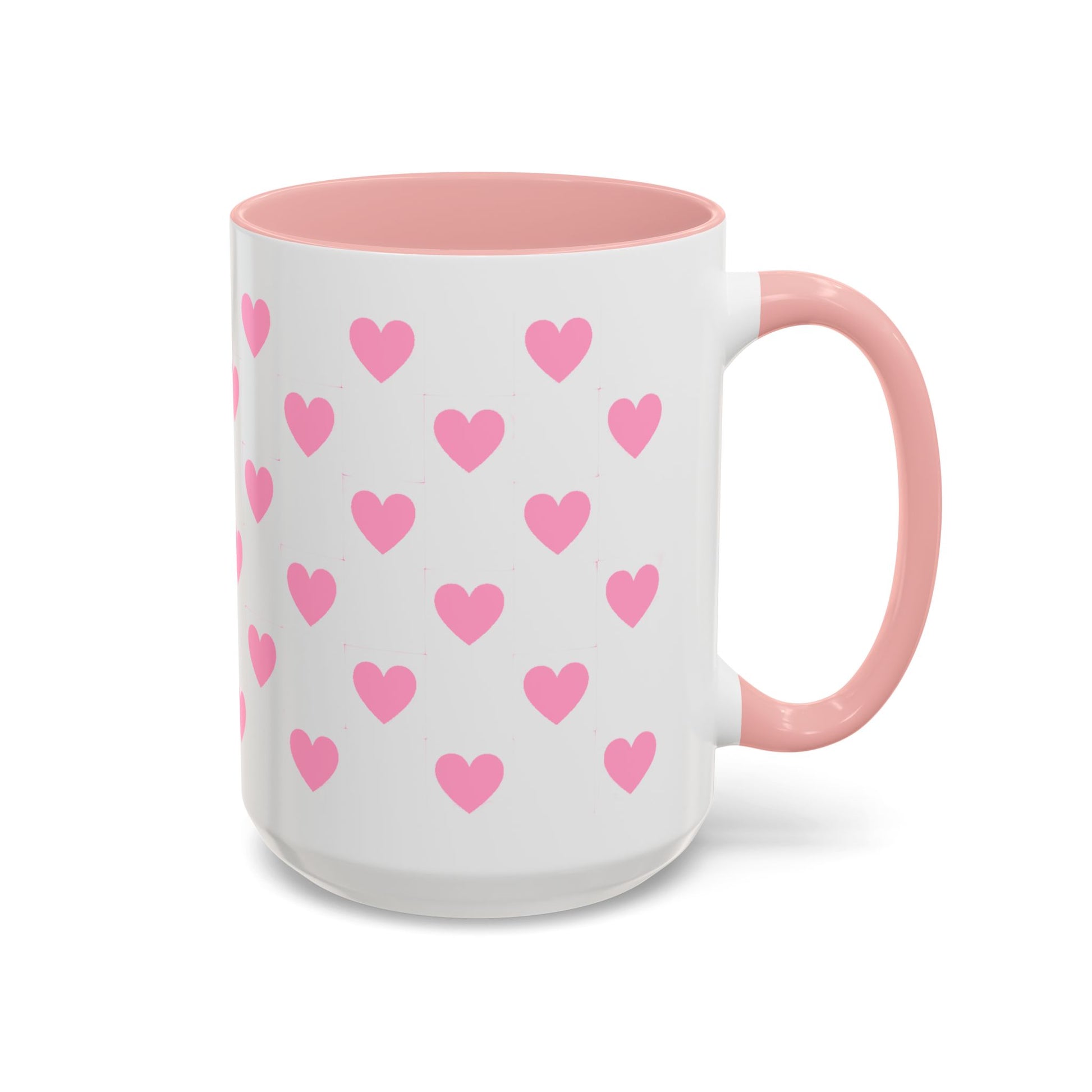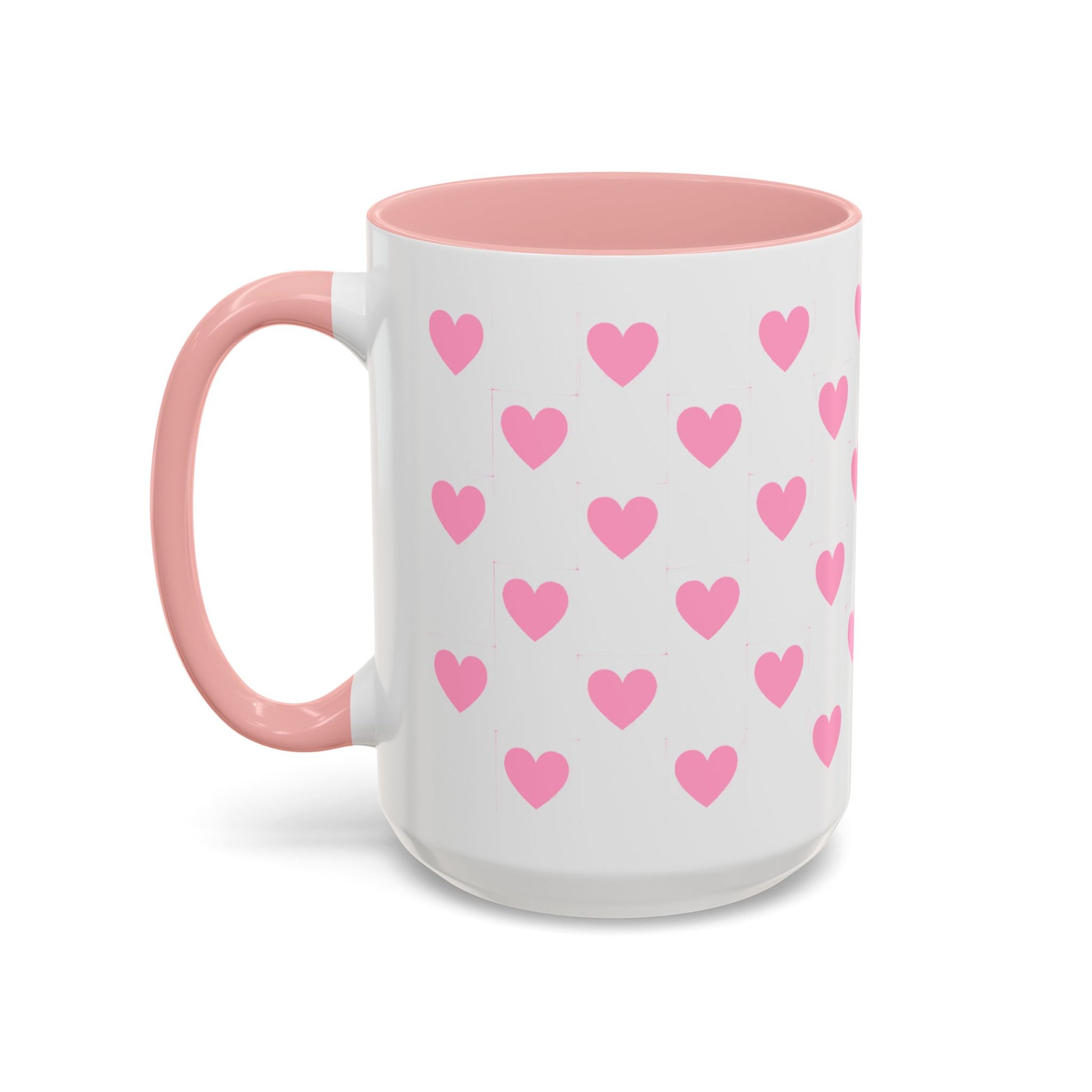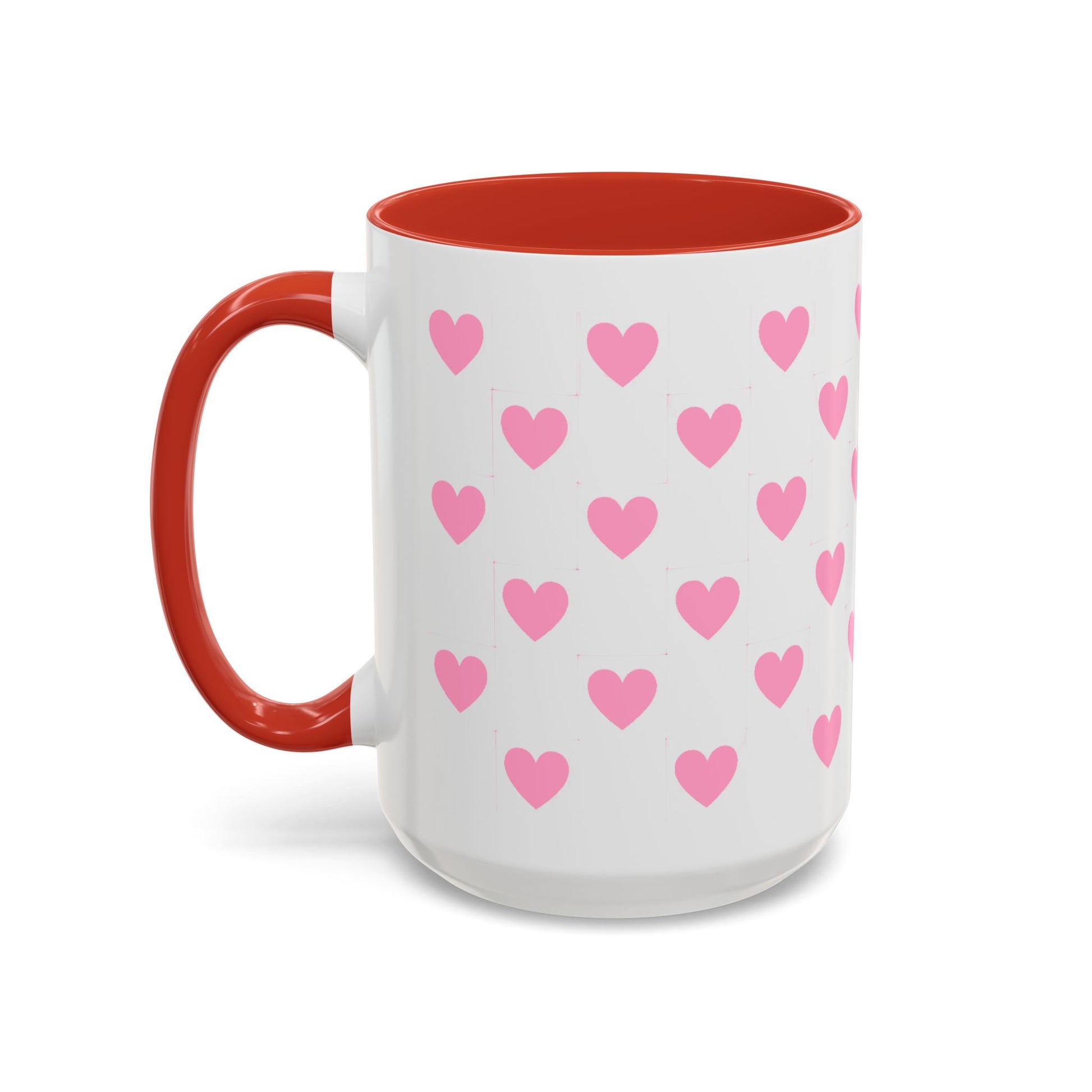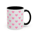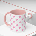 Pink Heart Pattern Accent Coffee Mug – Cute Valentine Tea & Coffee Cup (11/15oz)